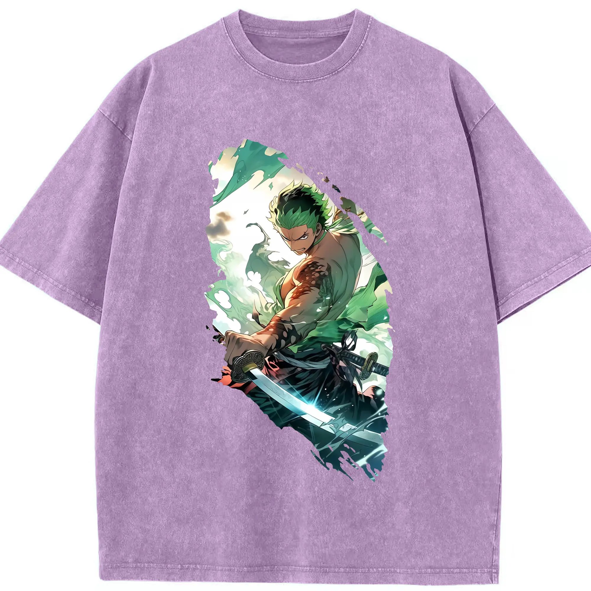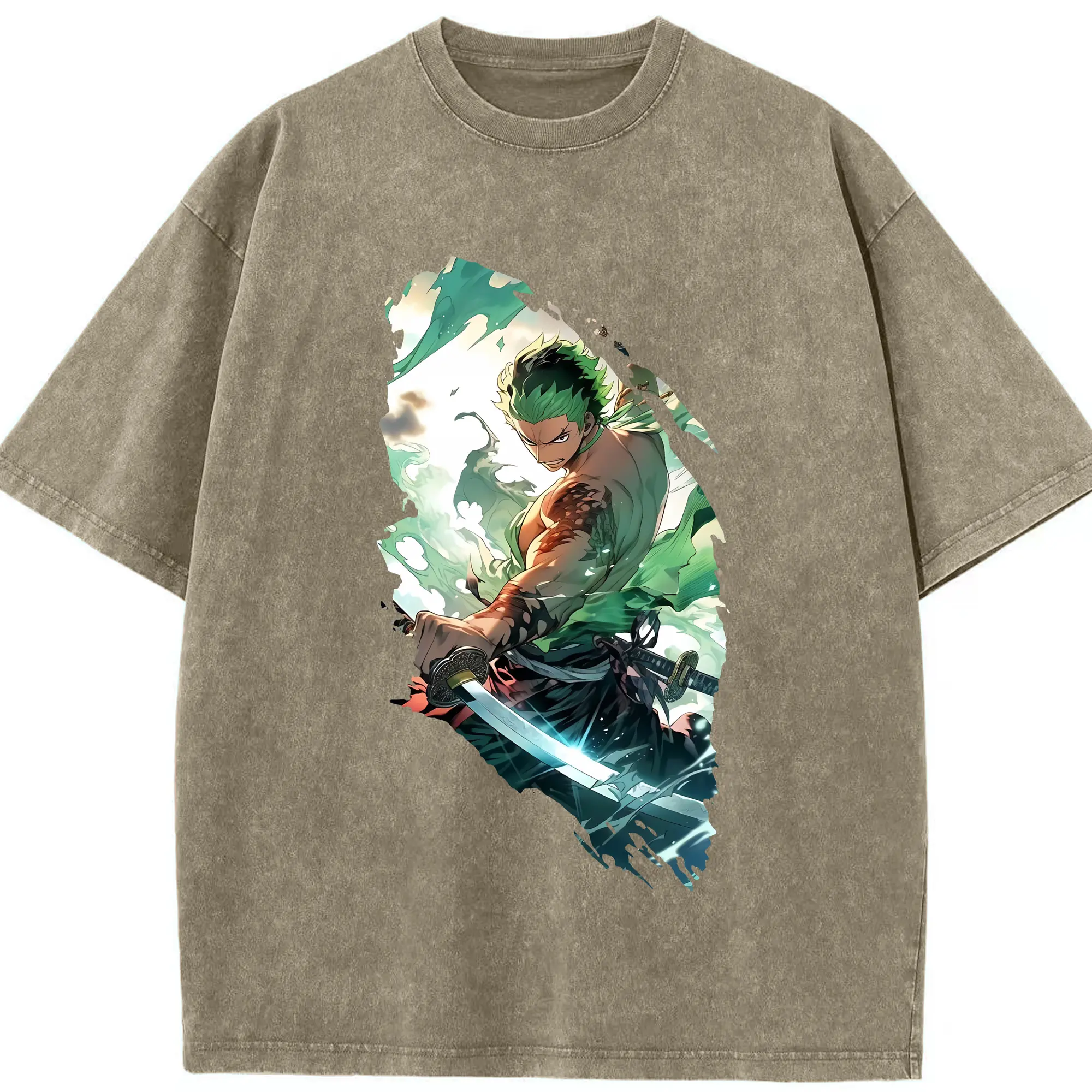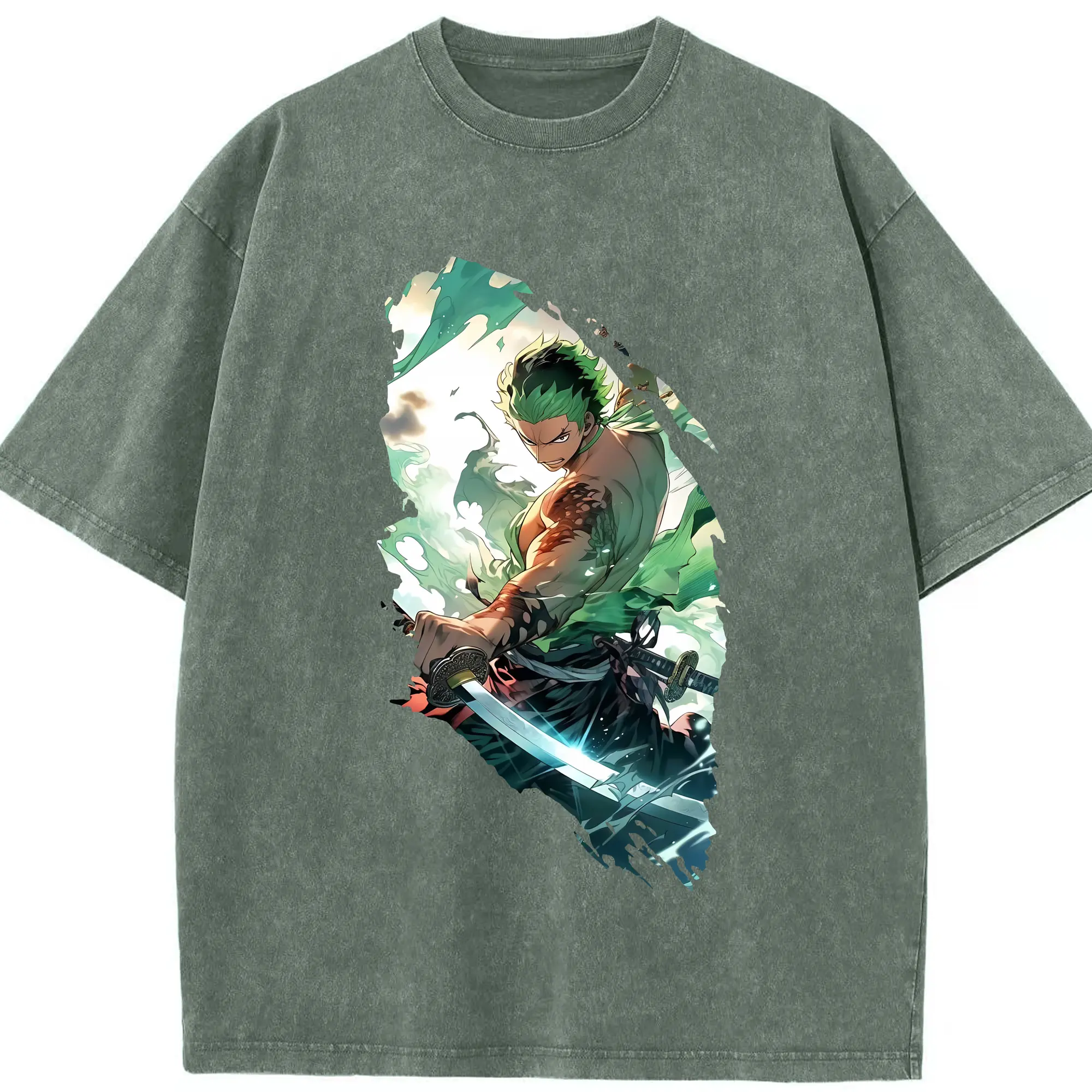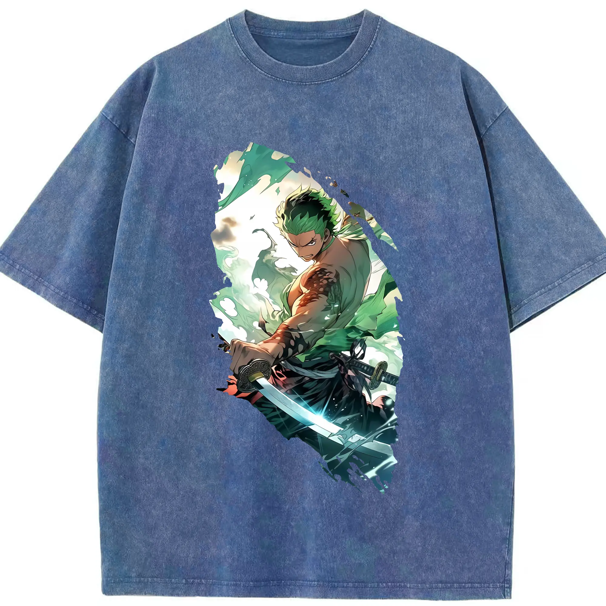ワンピース グッズ ロロノア・ゾロ - 綿100% ヴィンテージ風 半袖Tシャツ ・ 背面プリント ・ 柔らか肌触り ・ 通気性 快適 ・ スポーツ カジュアル 外出用