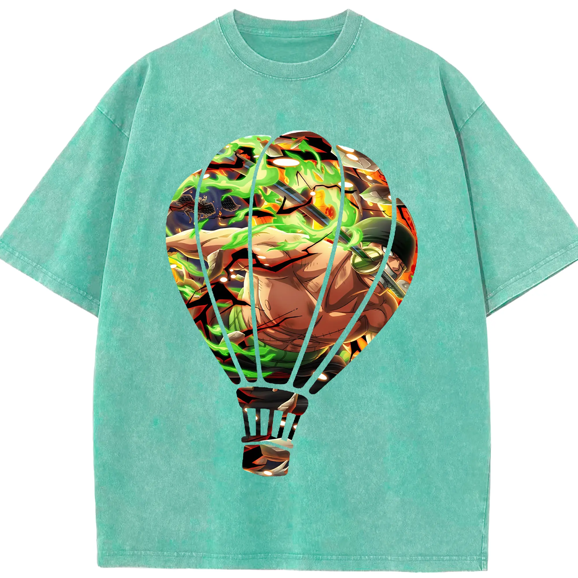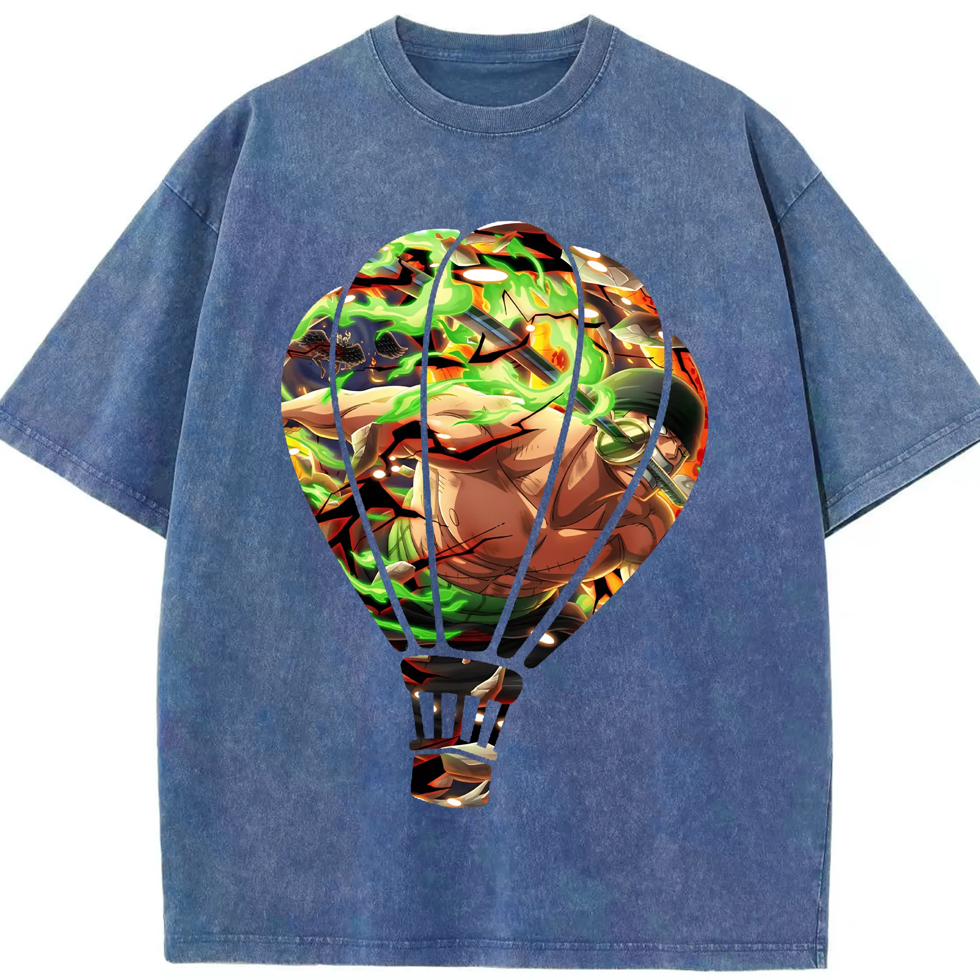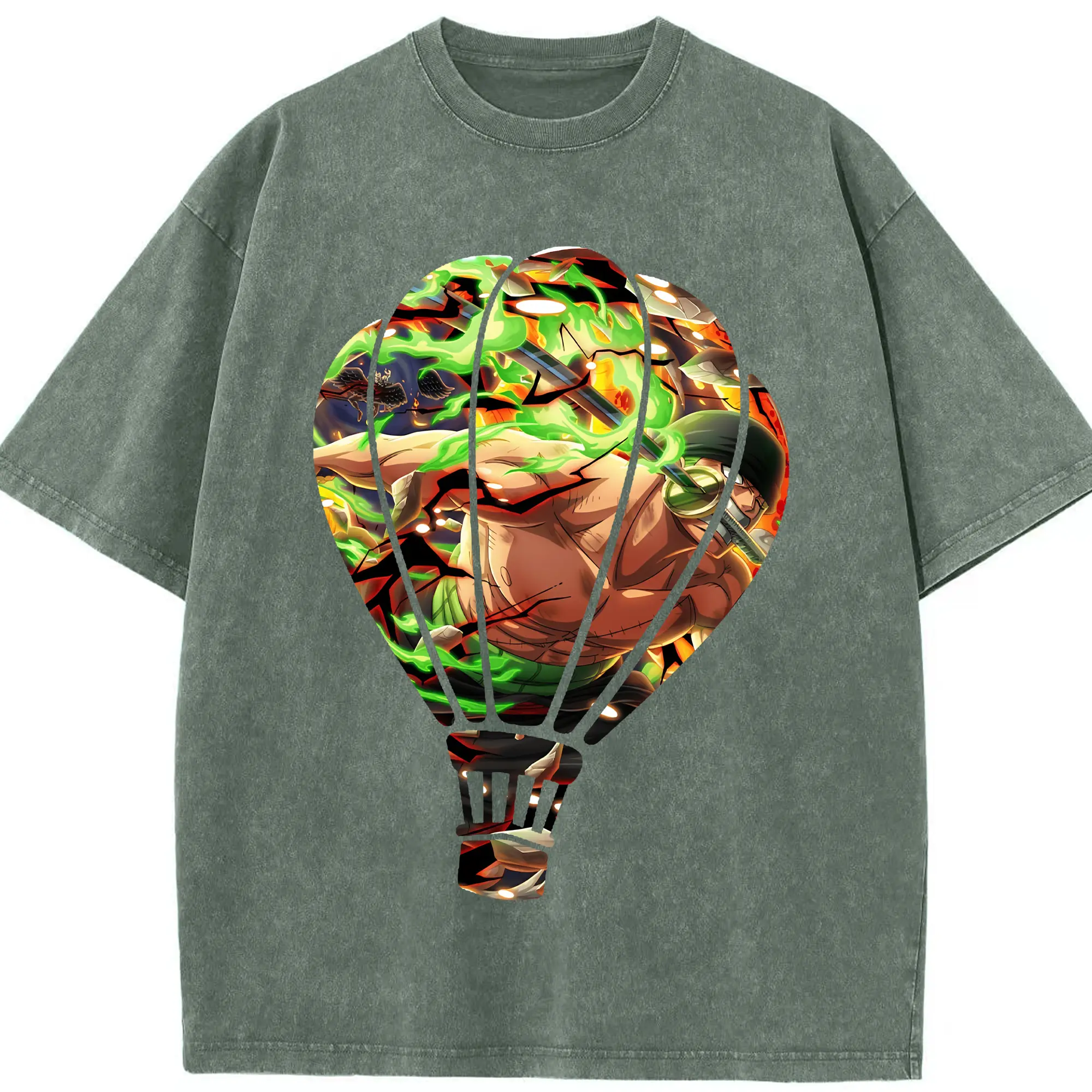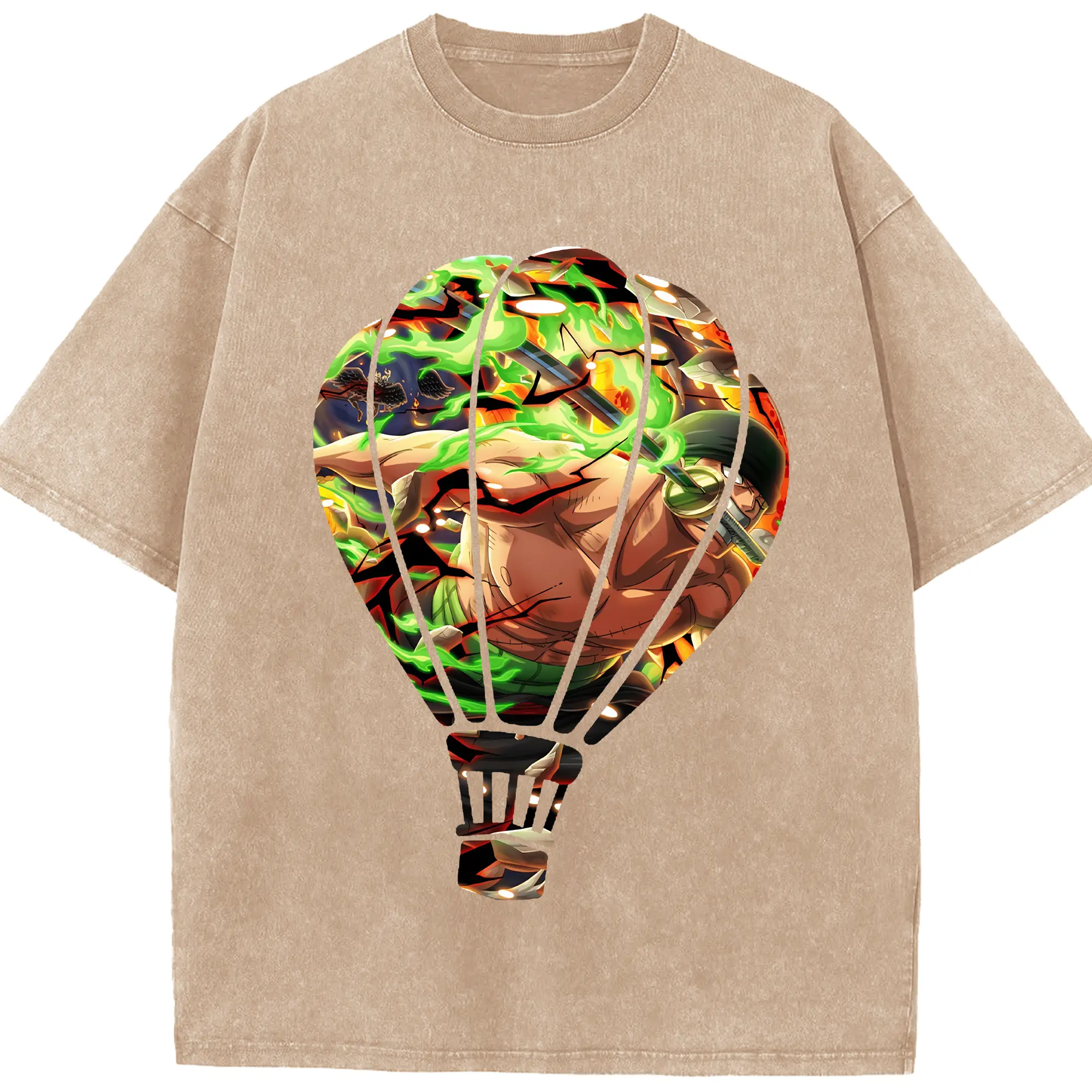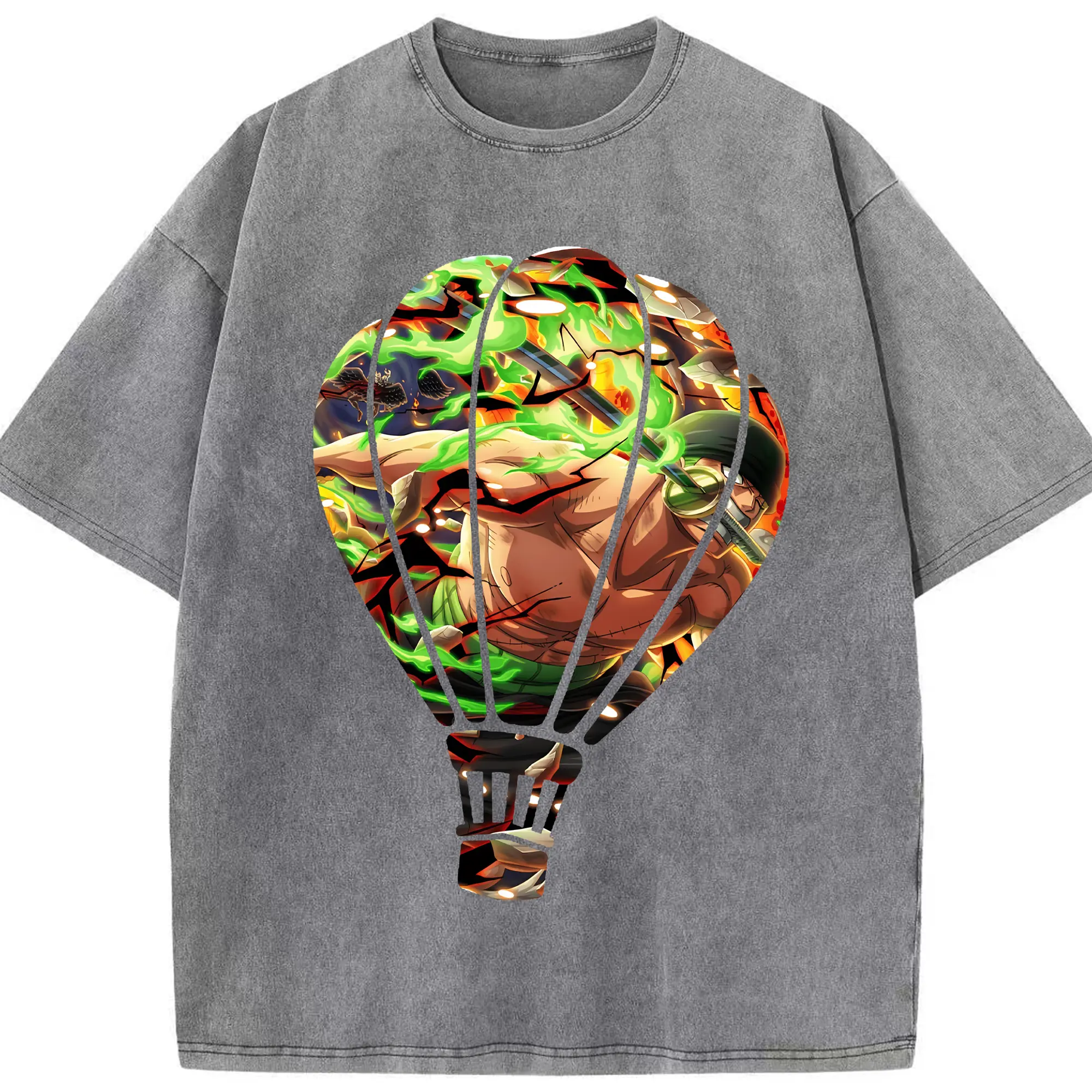 ワンピース グッズ ロロノア・ゾロ - 綿100% ヴィンテージ風 半袖Tシャツ ・ 背面プリント ・ 柔らか肌触り ・ 通気性 快適 ・ スポーツ カジュアル 外出用