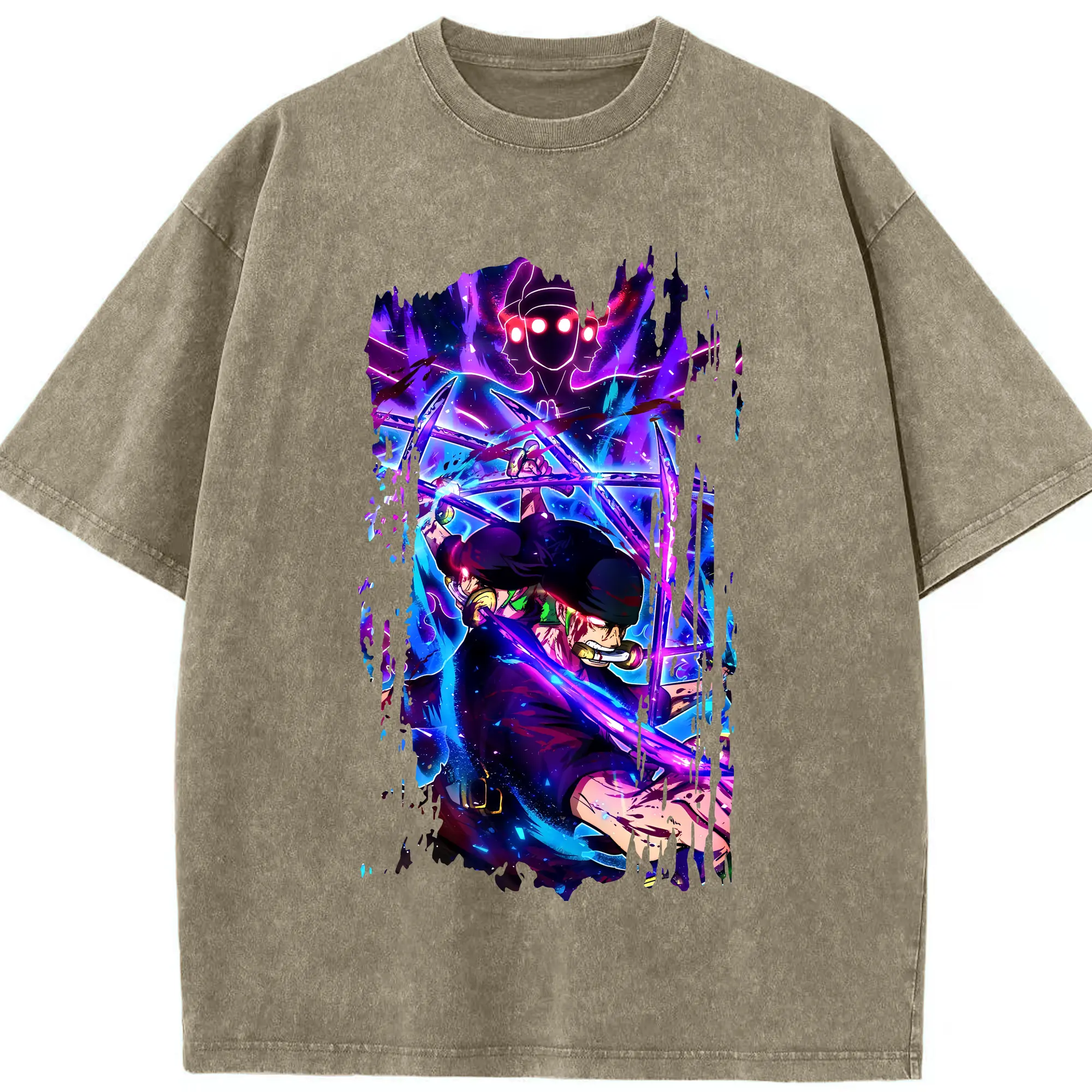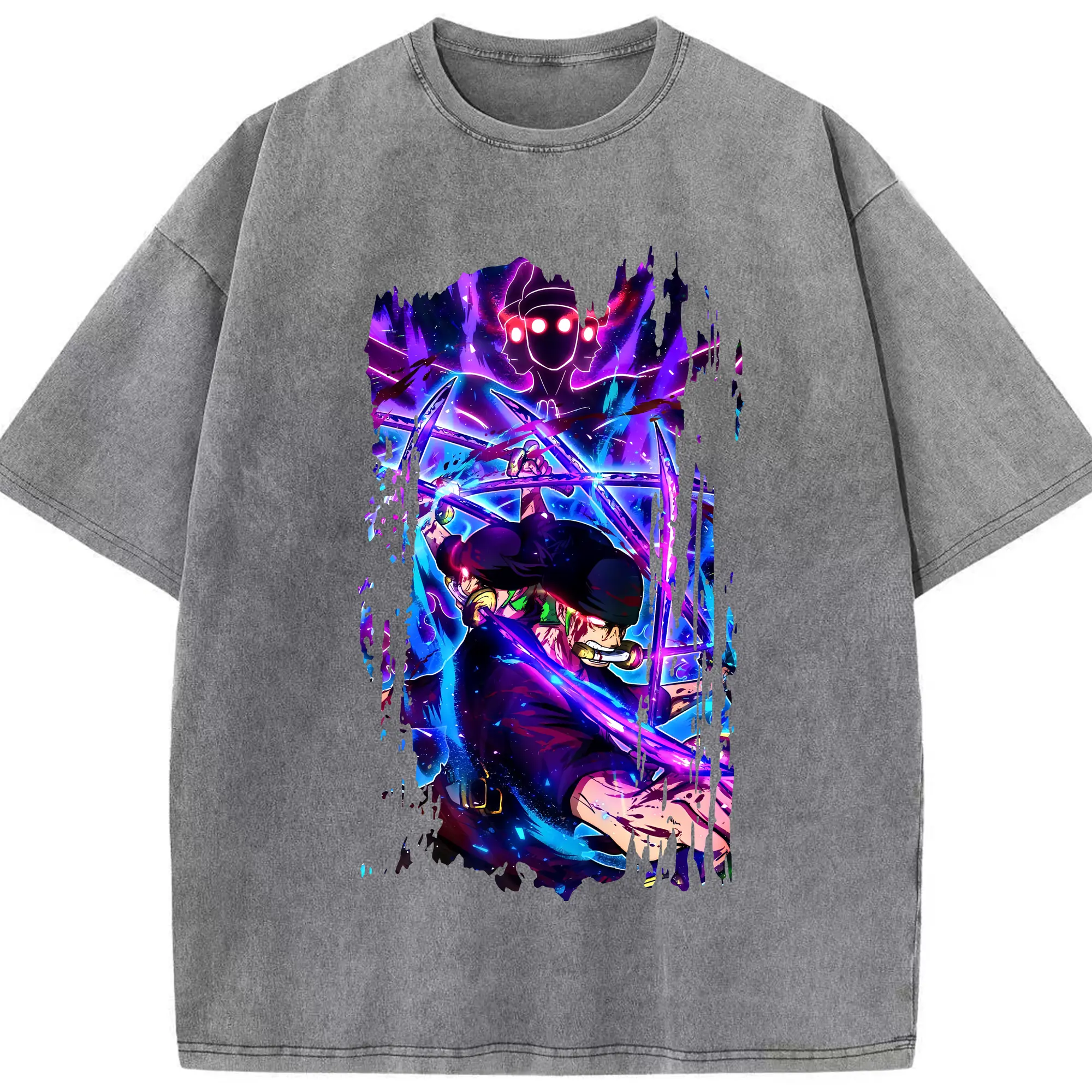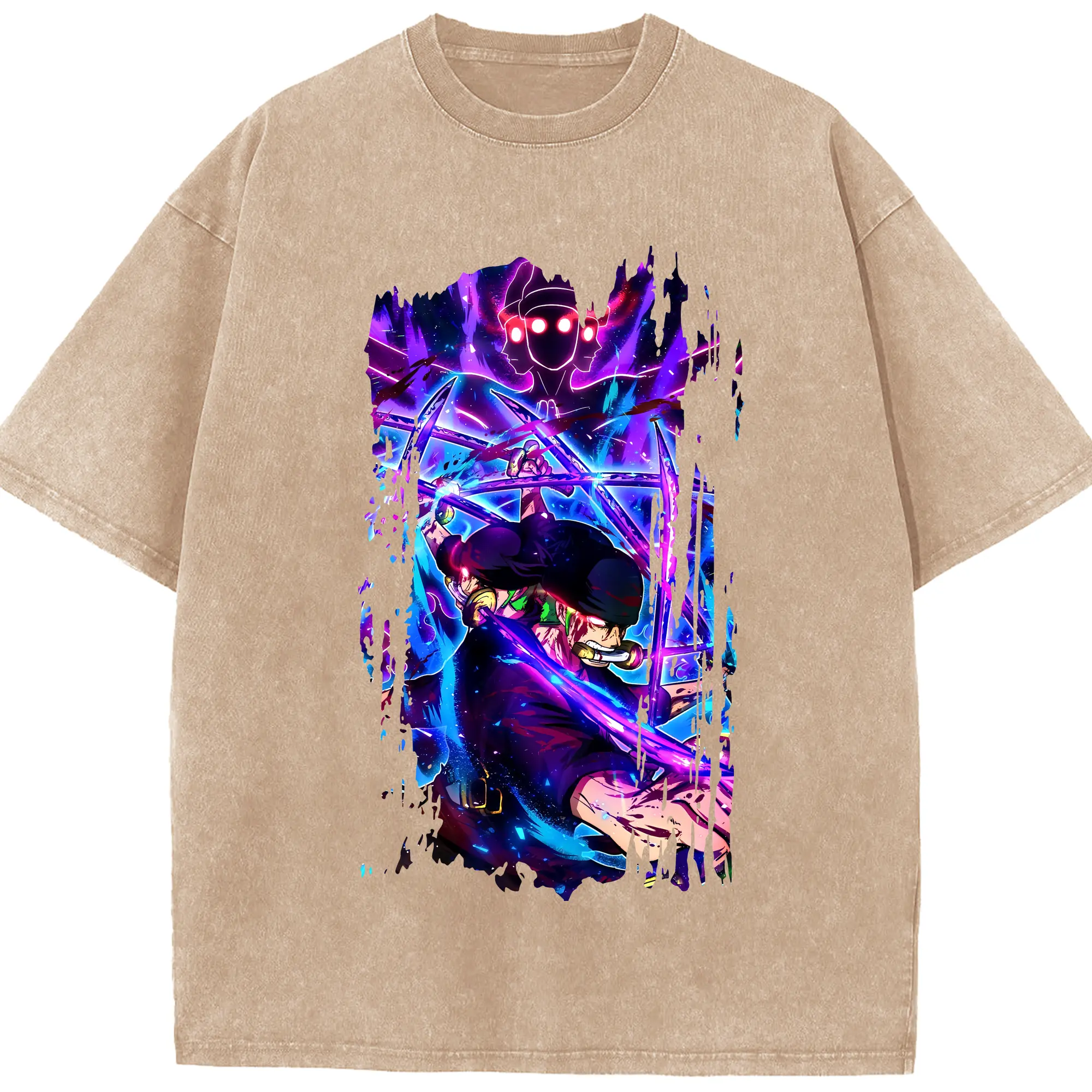 ワンピース グッズ ロロノア・ゾロ - 綿100% ヴィンテージ風 半袖Tシャツ ・ 背面プリント ・ 柔らか肌触り ・ 通気性 快適 ・ スポーツ カジュアル 外出用