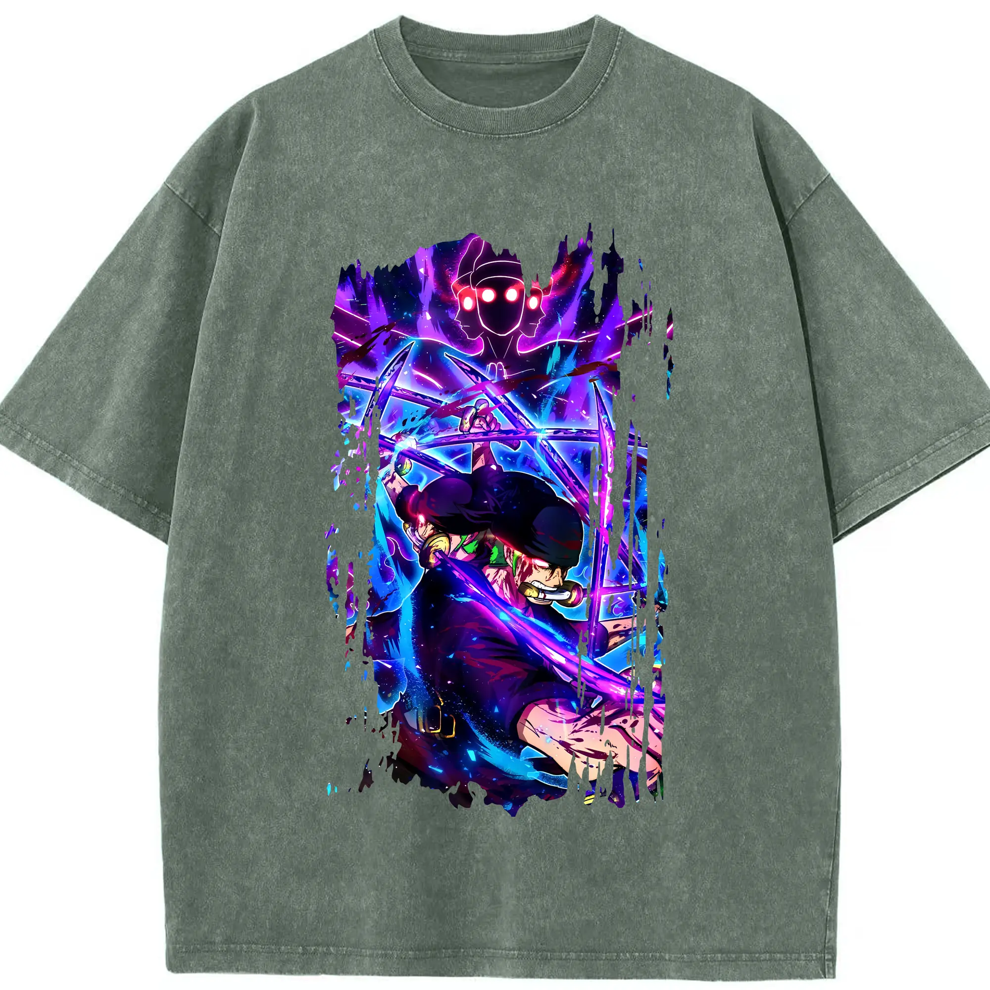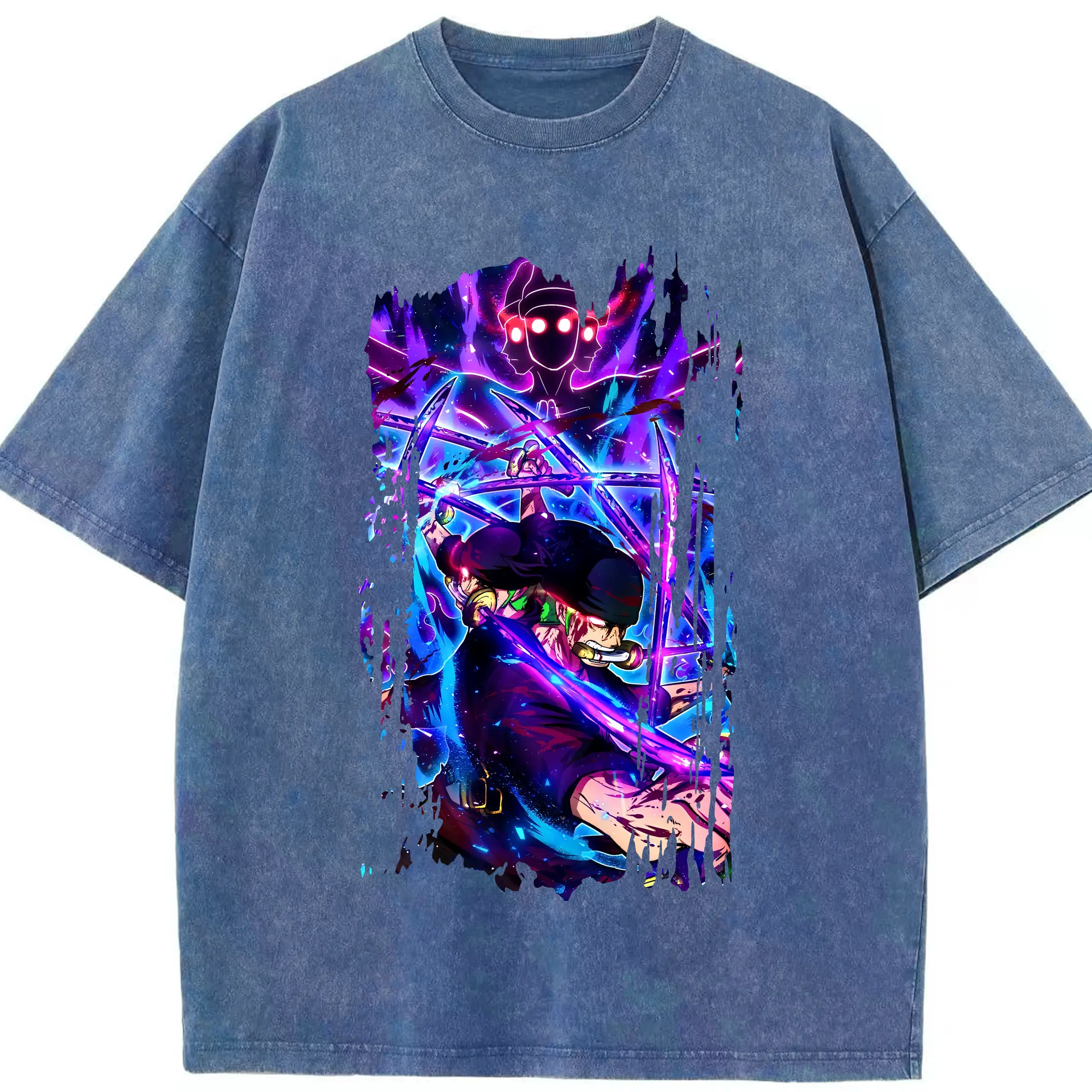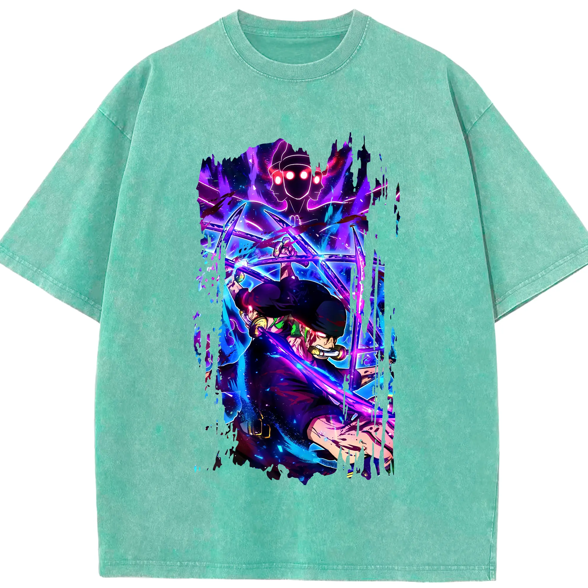 ワンピース グッズ ロロノア・ゾロ - 綿100% ヴィンテージ風 半袖Tシャツ ・ 背面プリント ・ 柔らか肌触り ・ 通気性 快適 ・ スポーツ カジュアル 外出用
