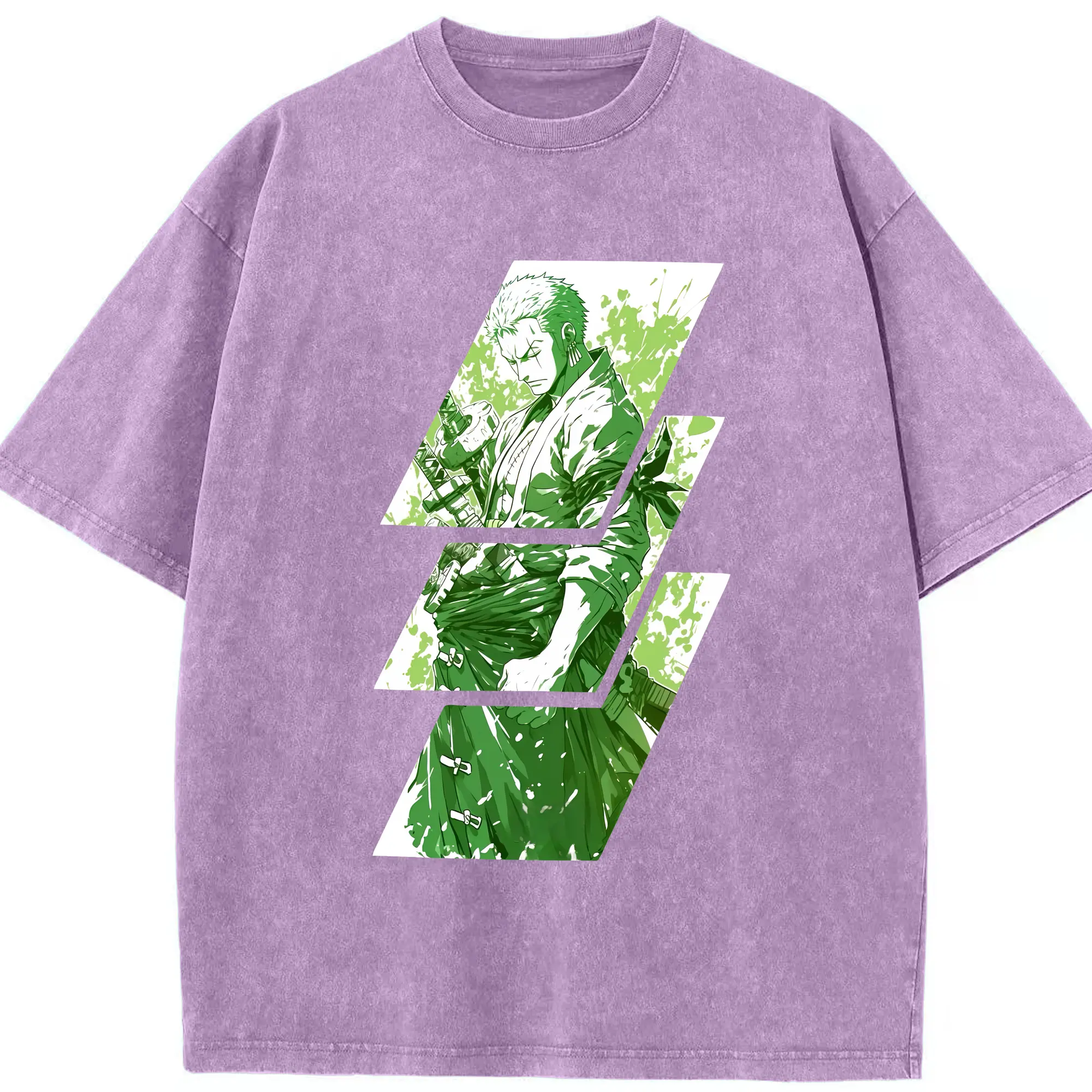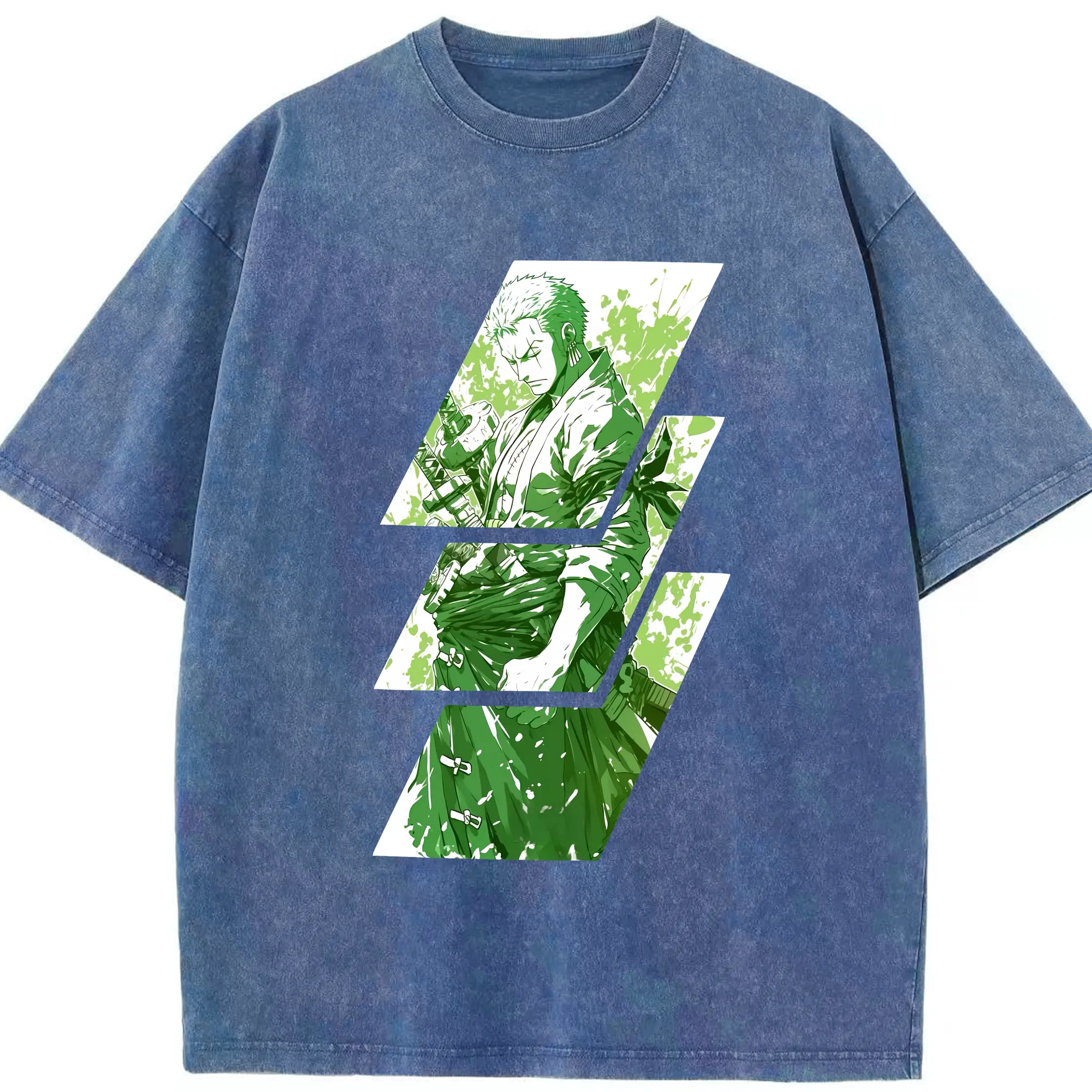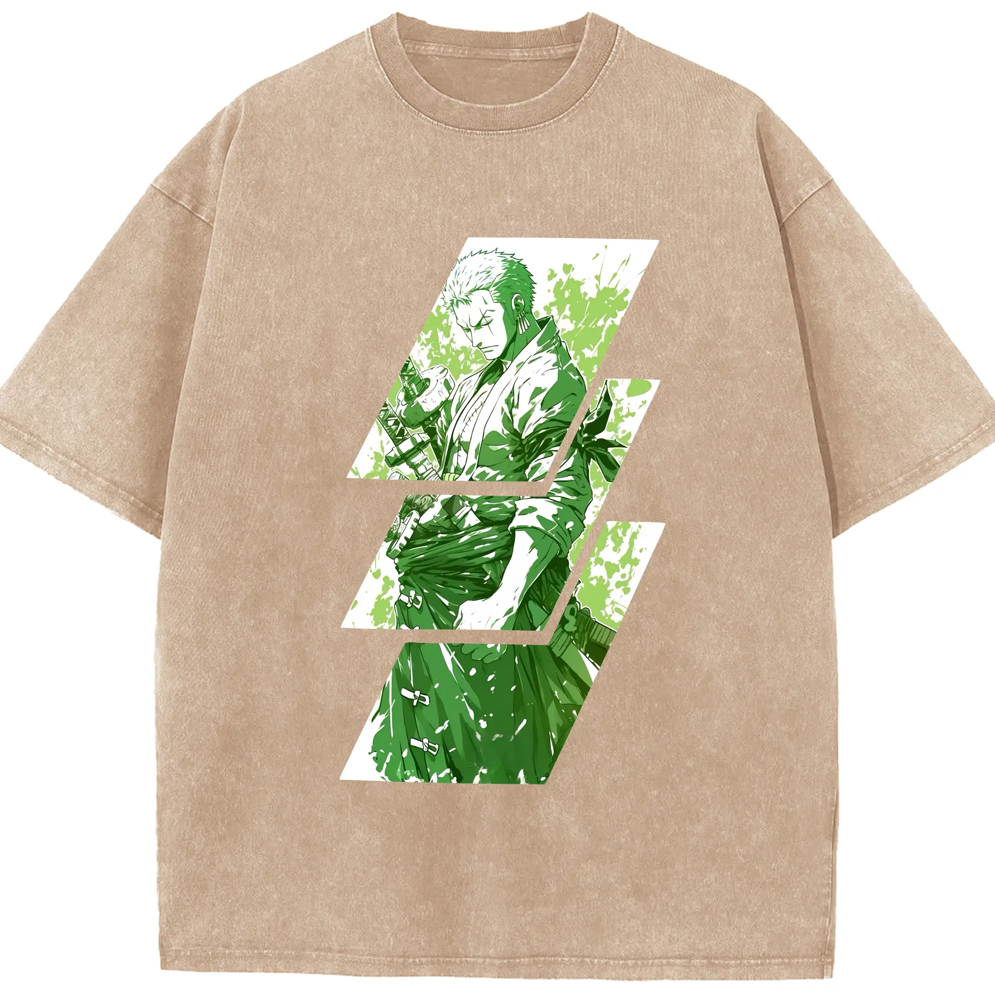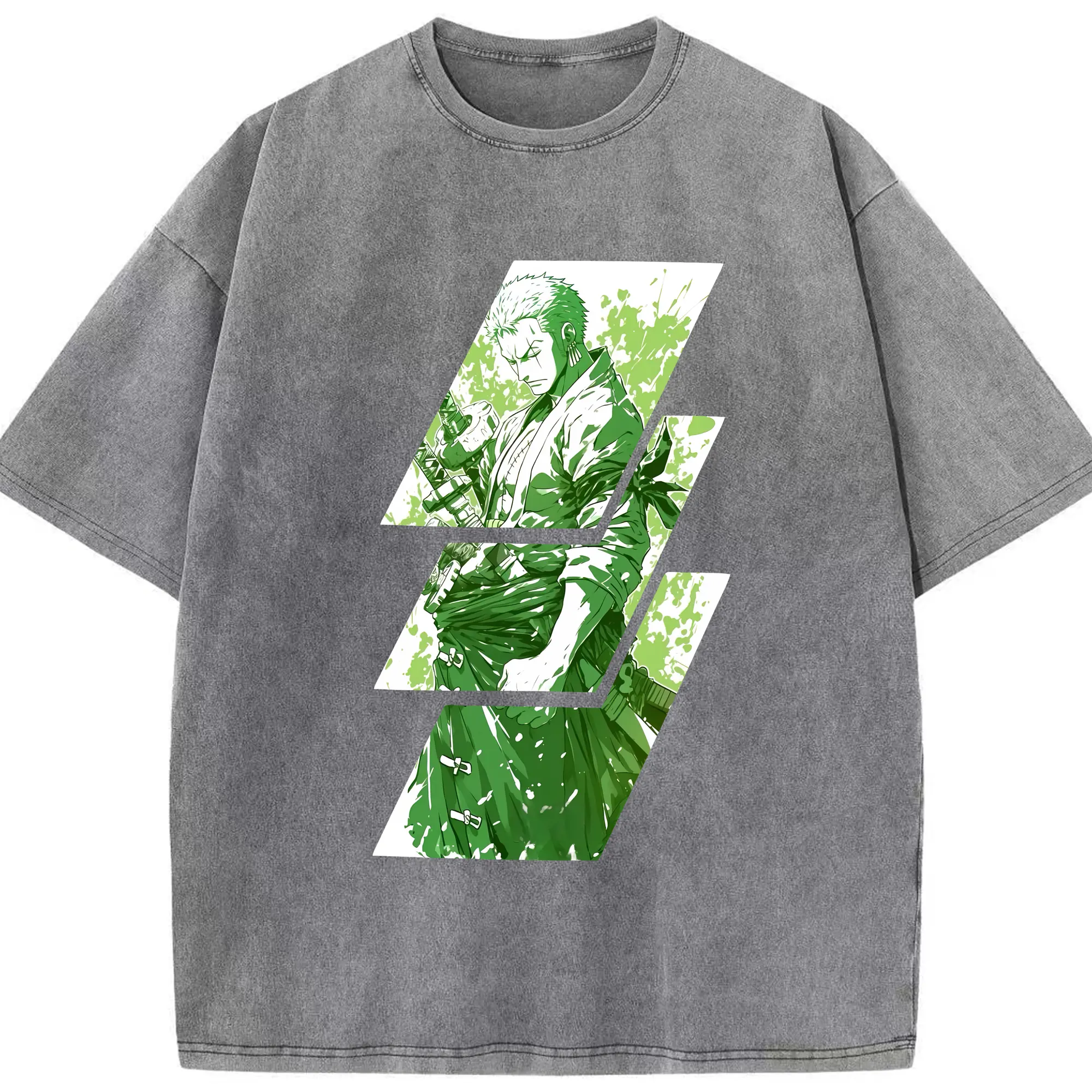 ワンピース グッズ ロロノア・ゾロ - 綿100% ヴィンテージ風 半袖Tシャツ ・ 背面プリント ・ 柔らか肌触り ・ 通気性 快適 ・ スポーツ カジュアル 外出用