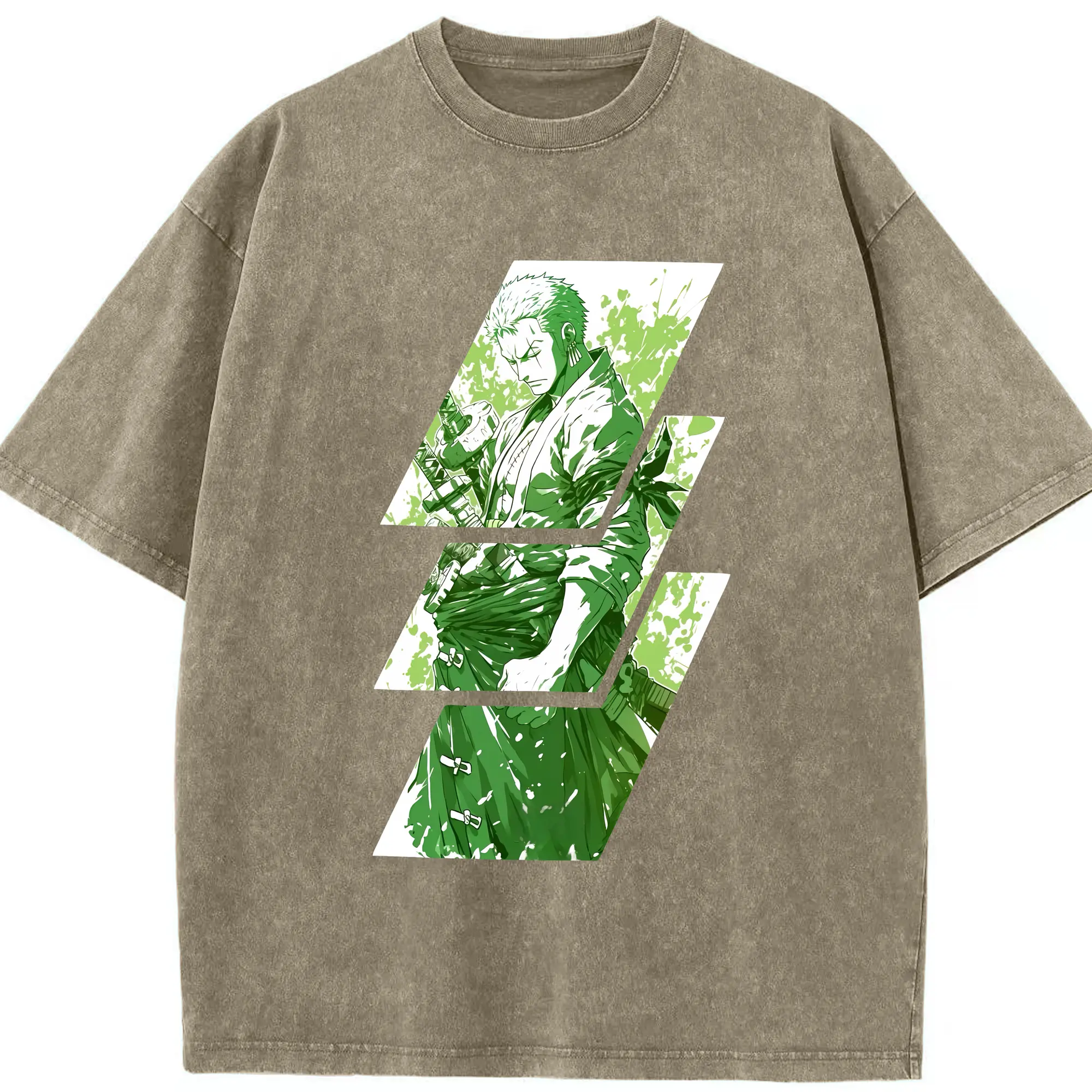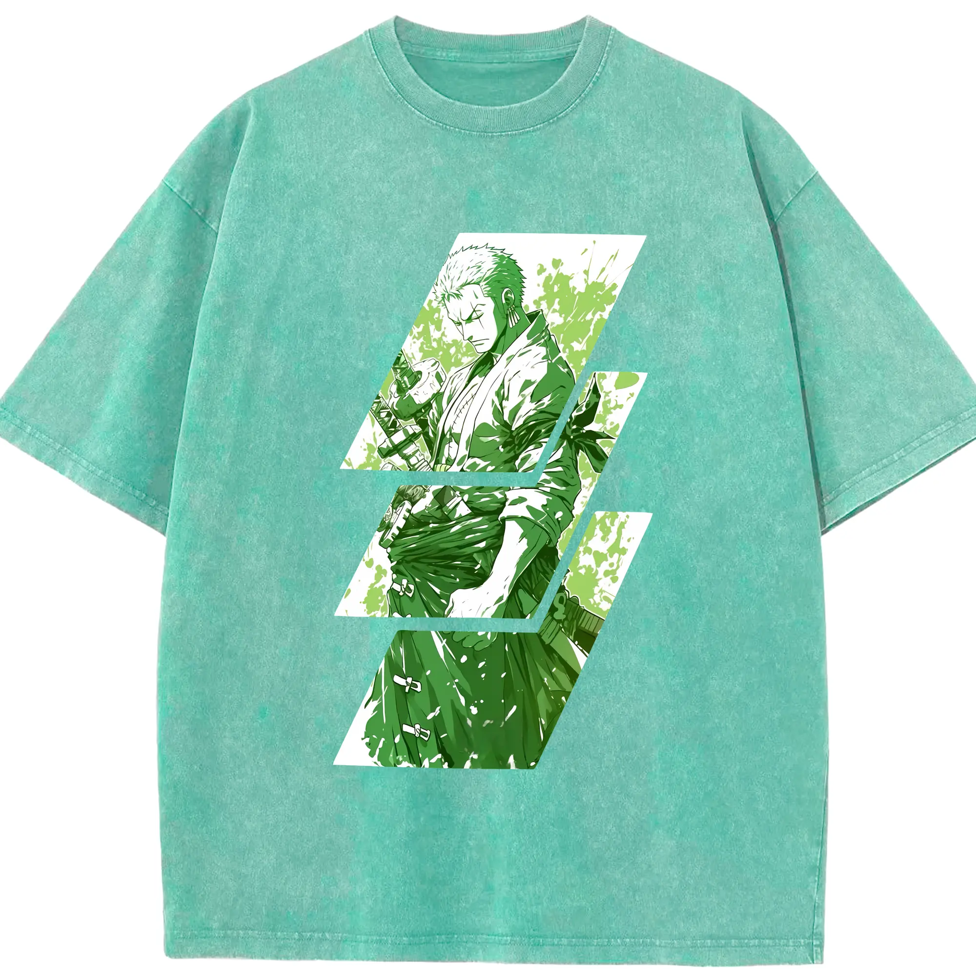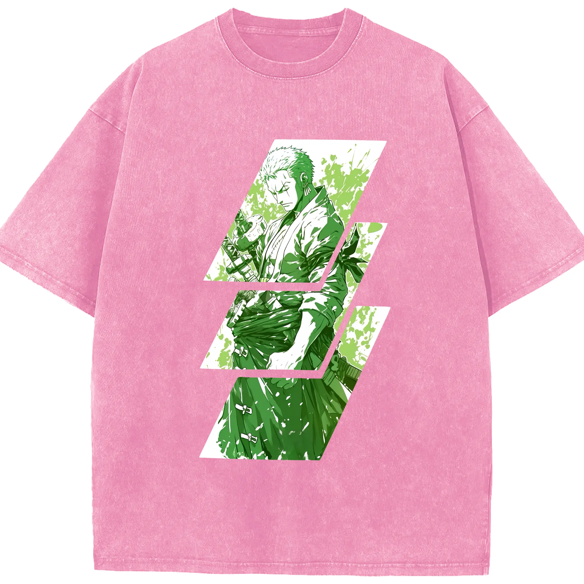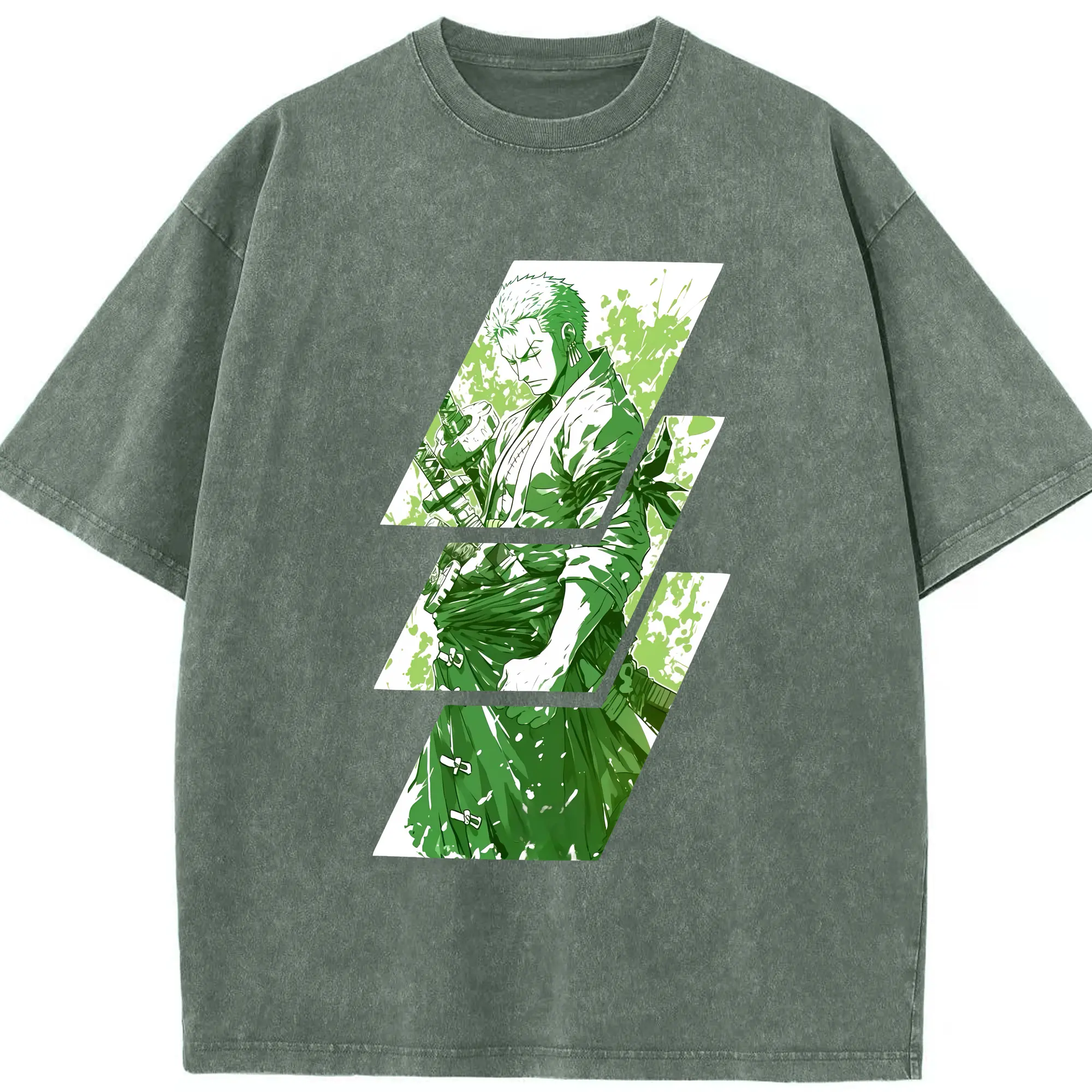 ワンピース グッズ ロロノア・ゾロ - 綿100% ヴィンテージ風 半袖Tシャツ ・ 背面プリント ・ 柔らか肌触り ・ 通気性 快適 ・ スポーツ カジュアル 外出用