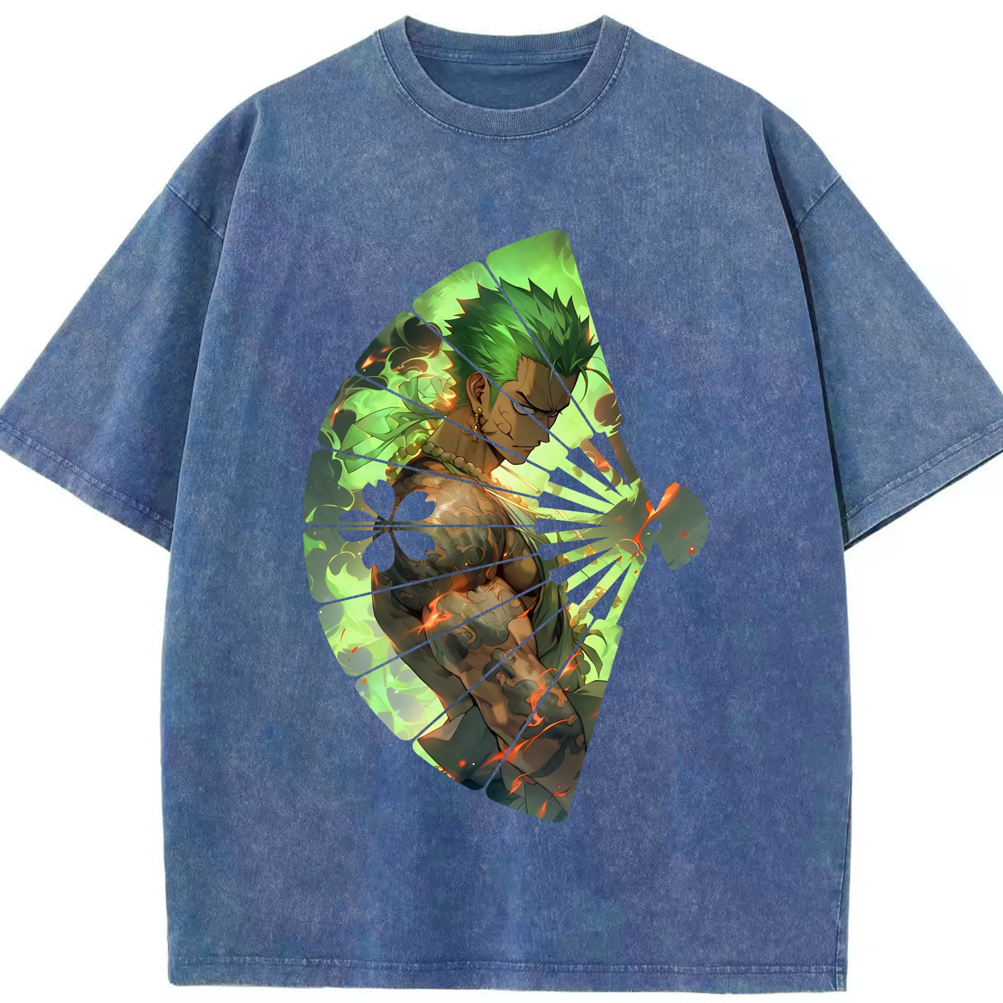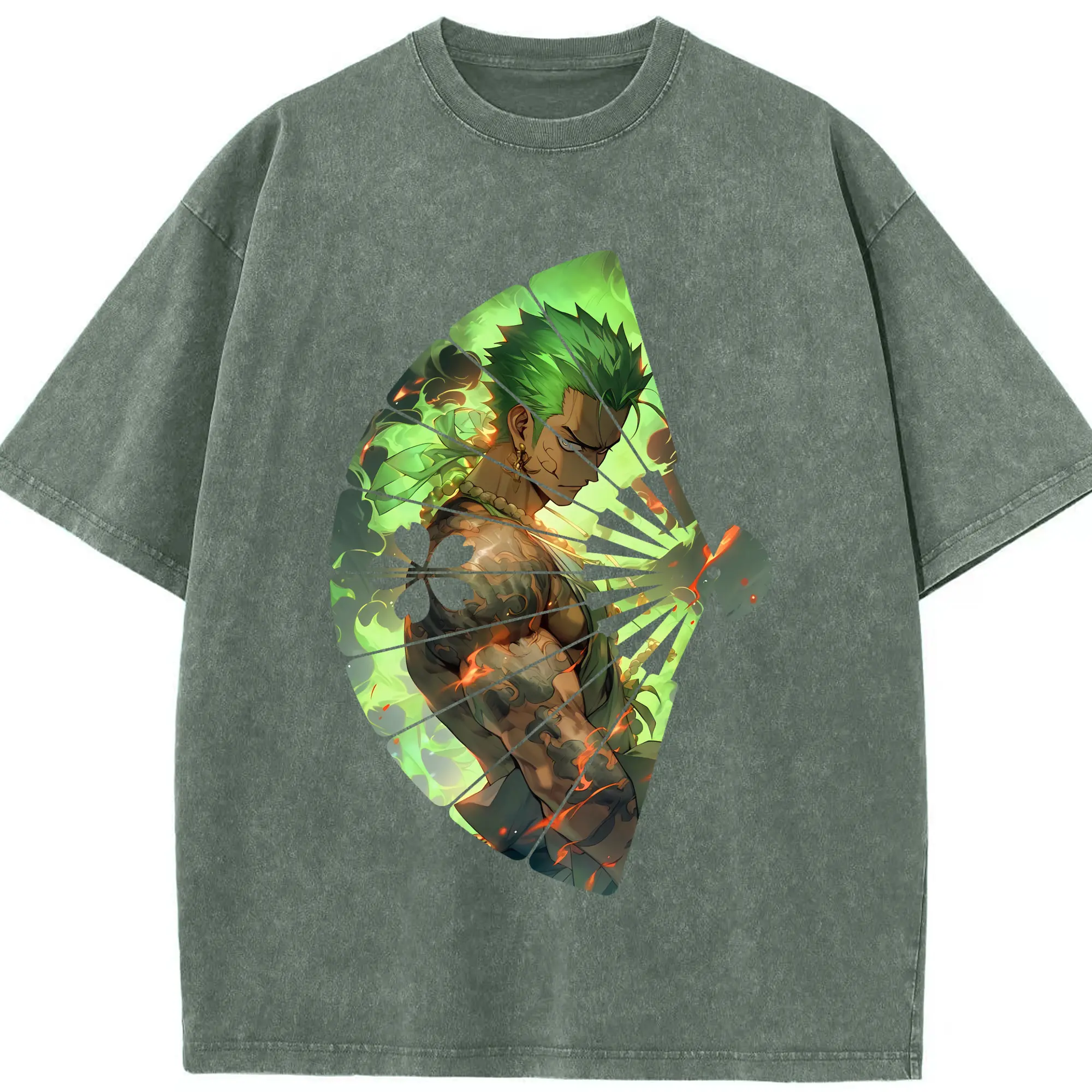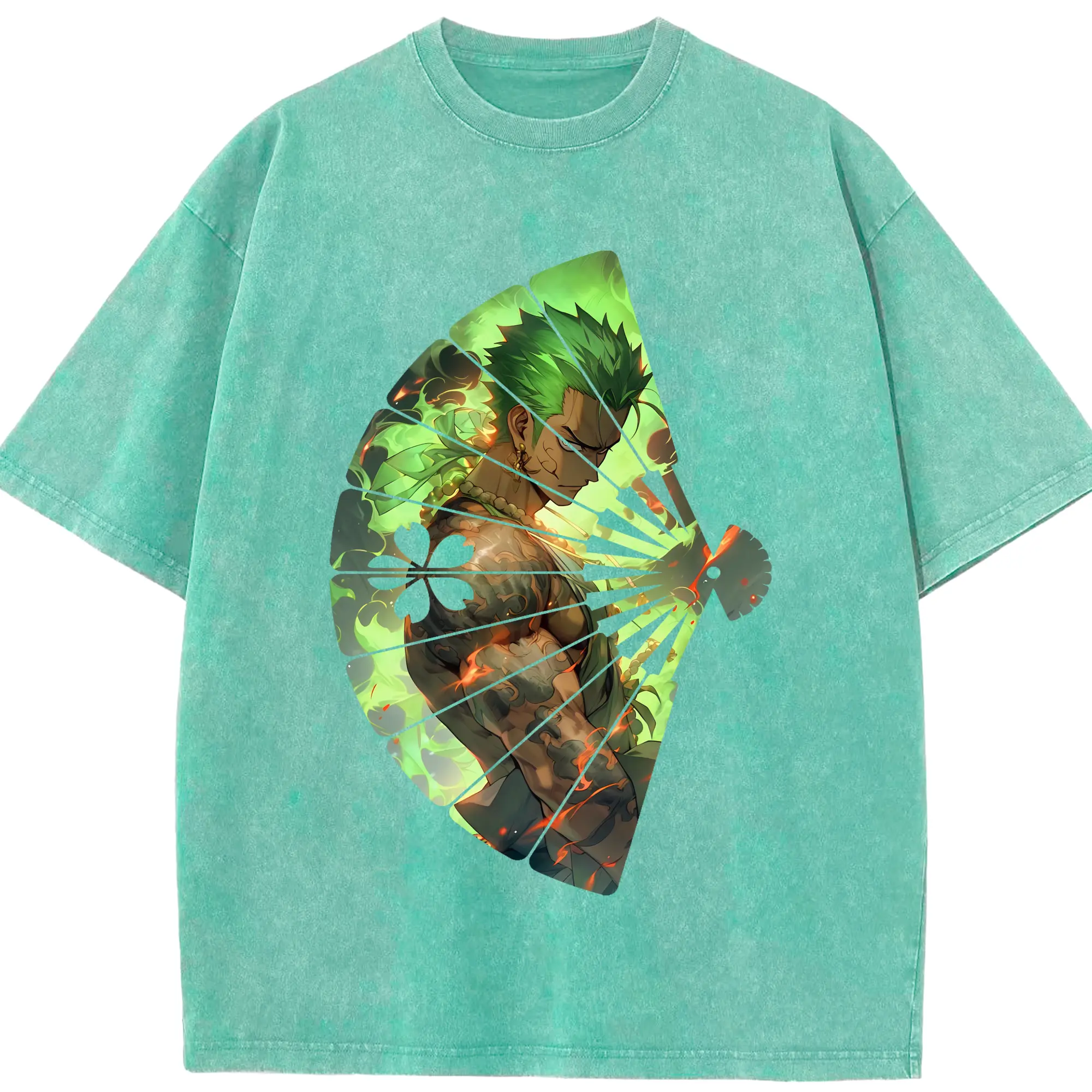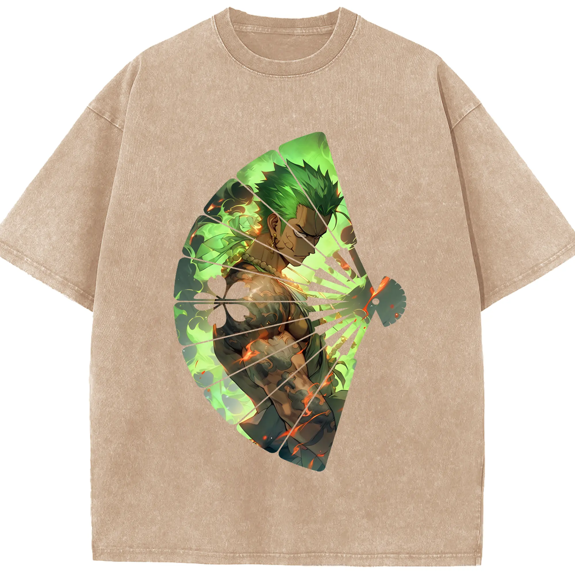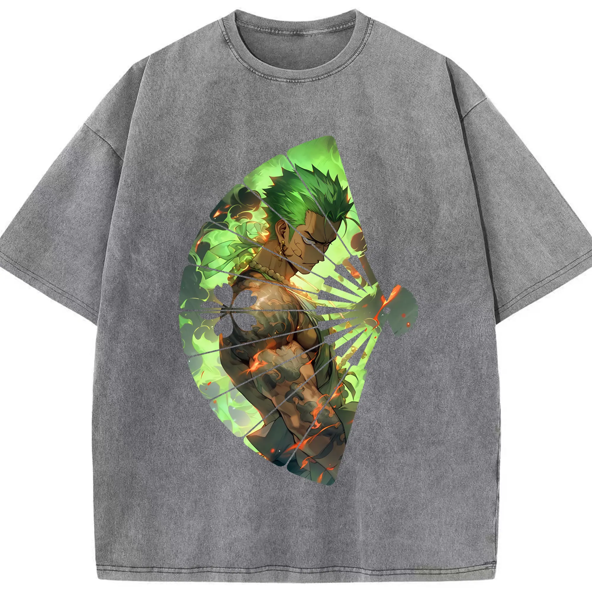 ワンピース グッズ ロロノア・ゾロ - 綿100% ヴィンテージ風 半袖Tシャツ ・ 背面プリント ・ 柔らか肌触り ・ 通気性 快適 ・ スポーツ カジュアル 外出用