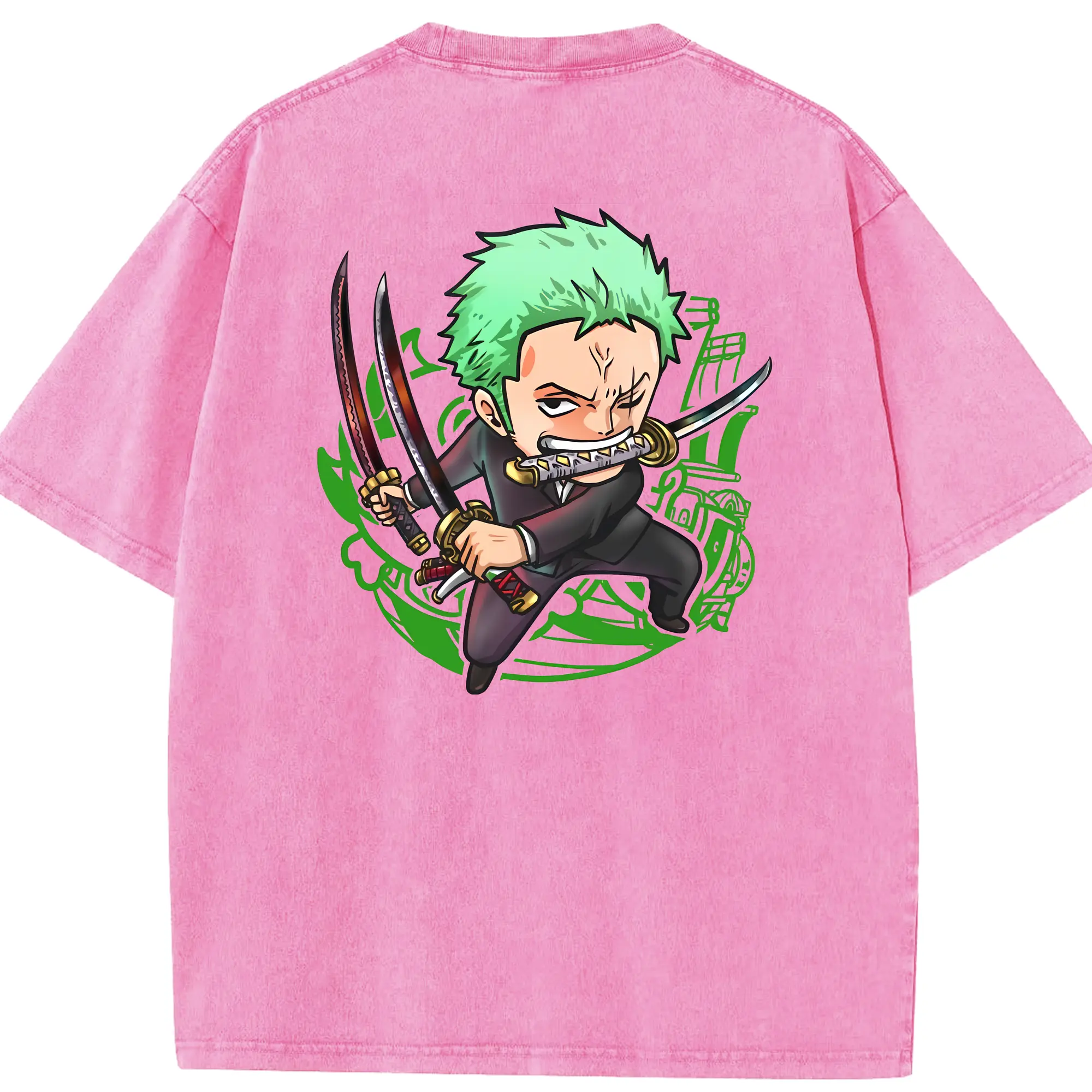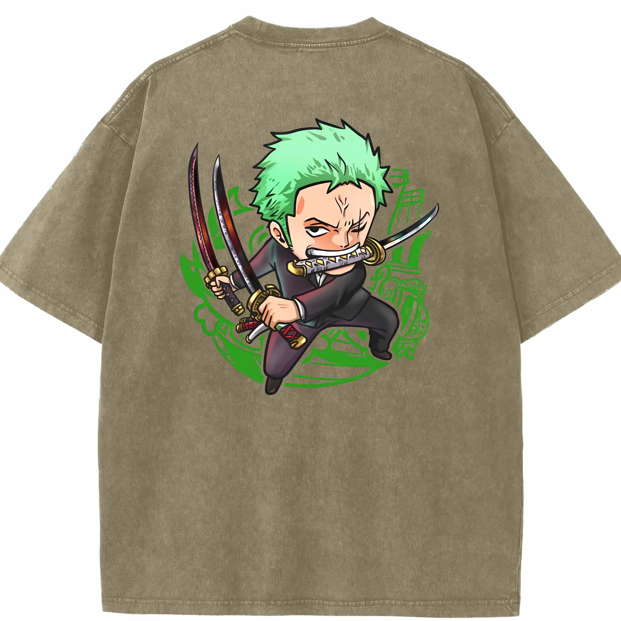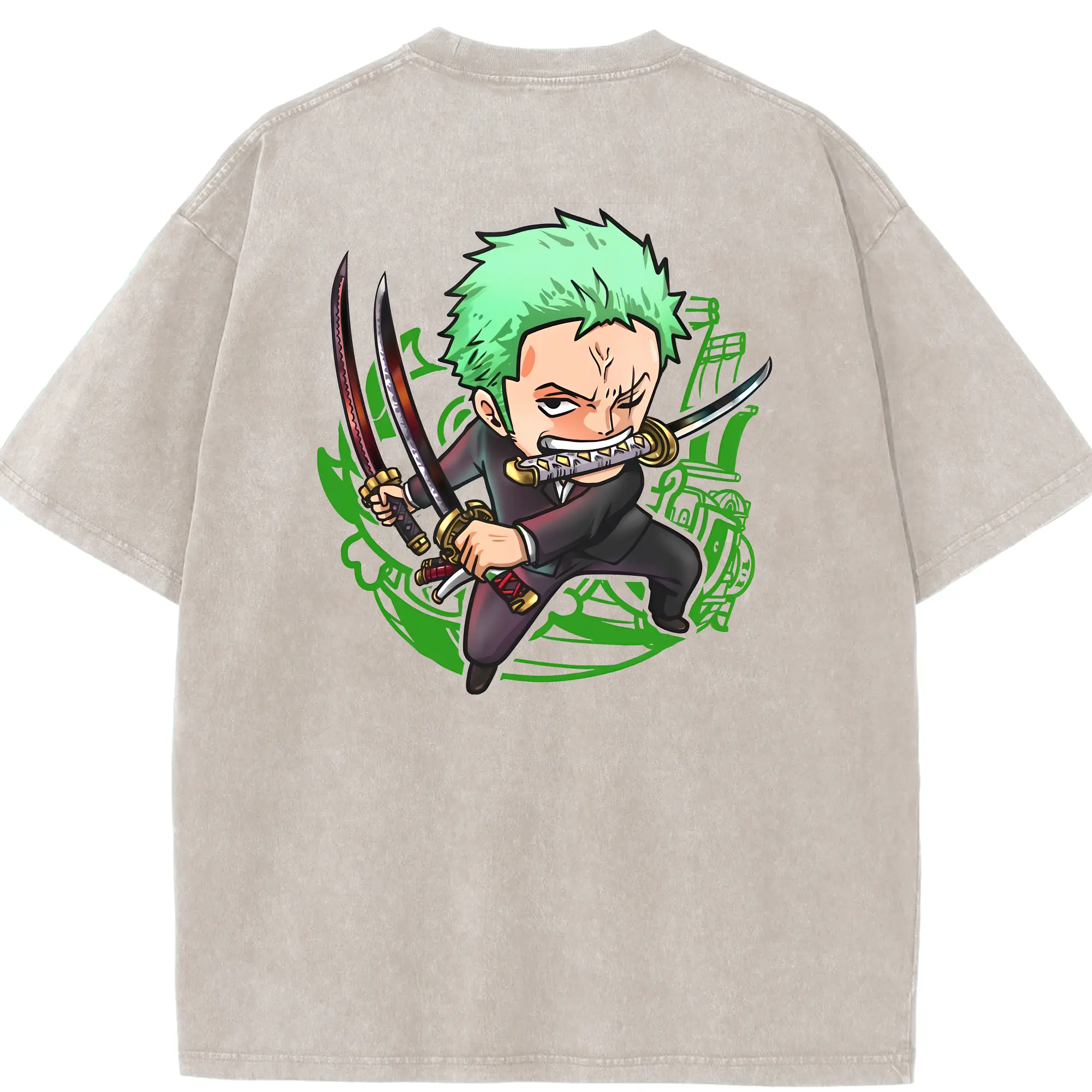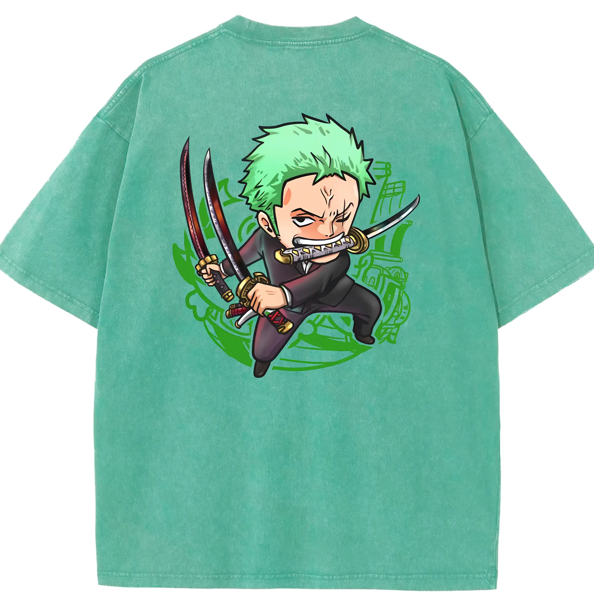 ワンピース グッズ ロロノア・ゾロ - 綿100% ヴィンテージ風 半袖Tシャツ ・ フロントプリント ・ 柔らか肌触り ・ 通気性 快適 ・ スポーツ カジュアル 外出用