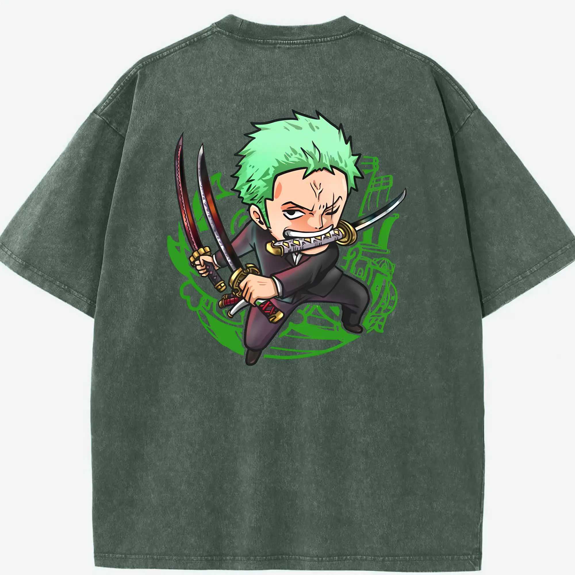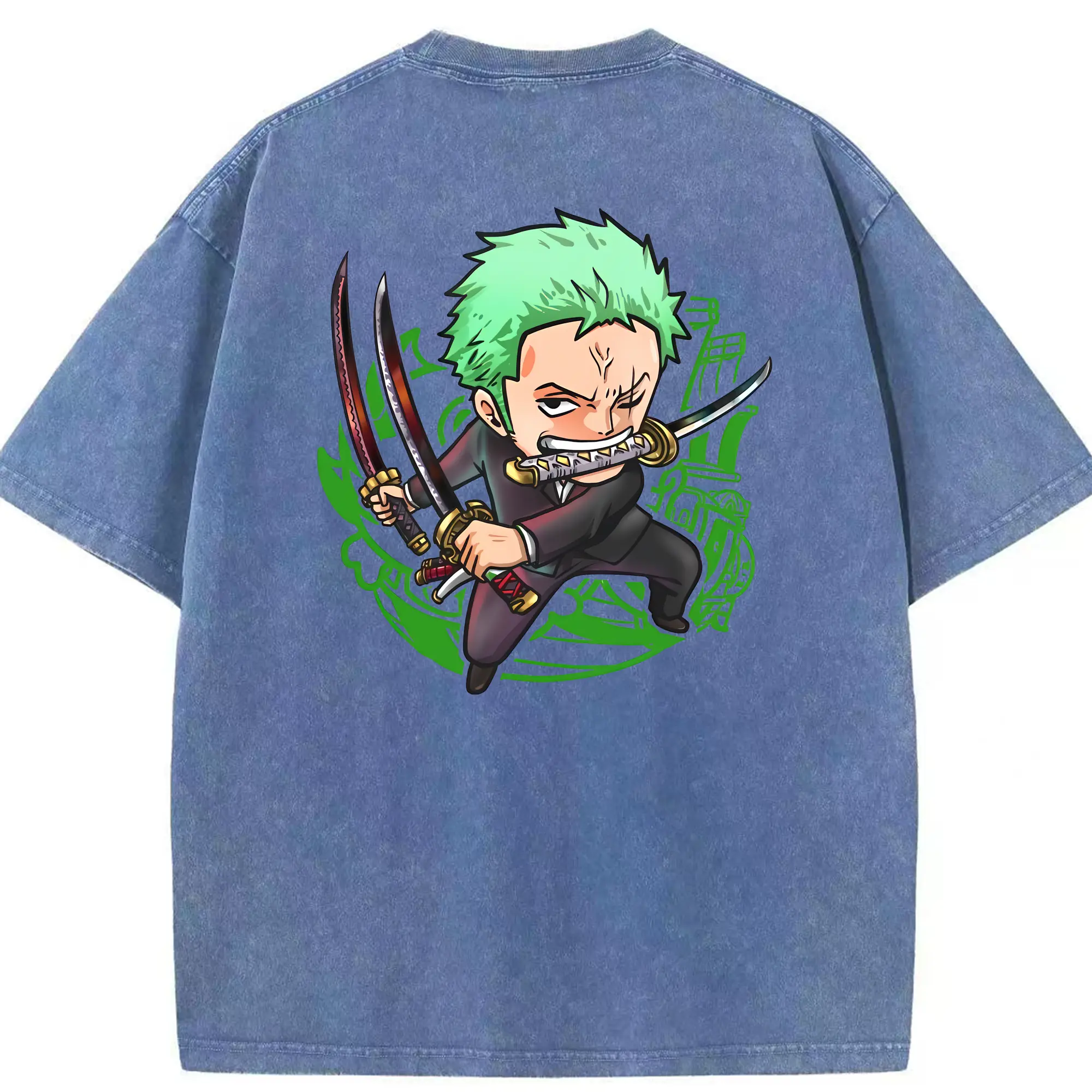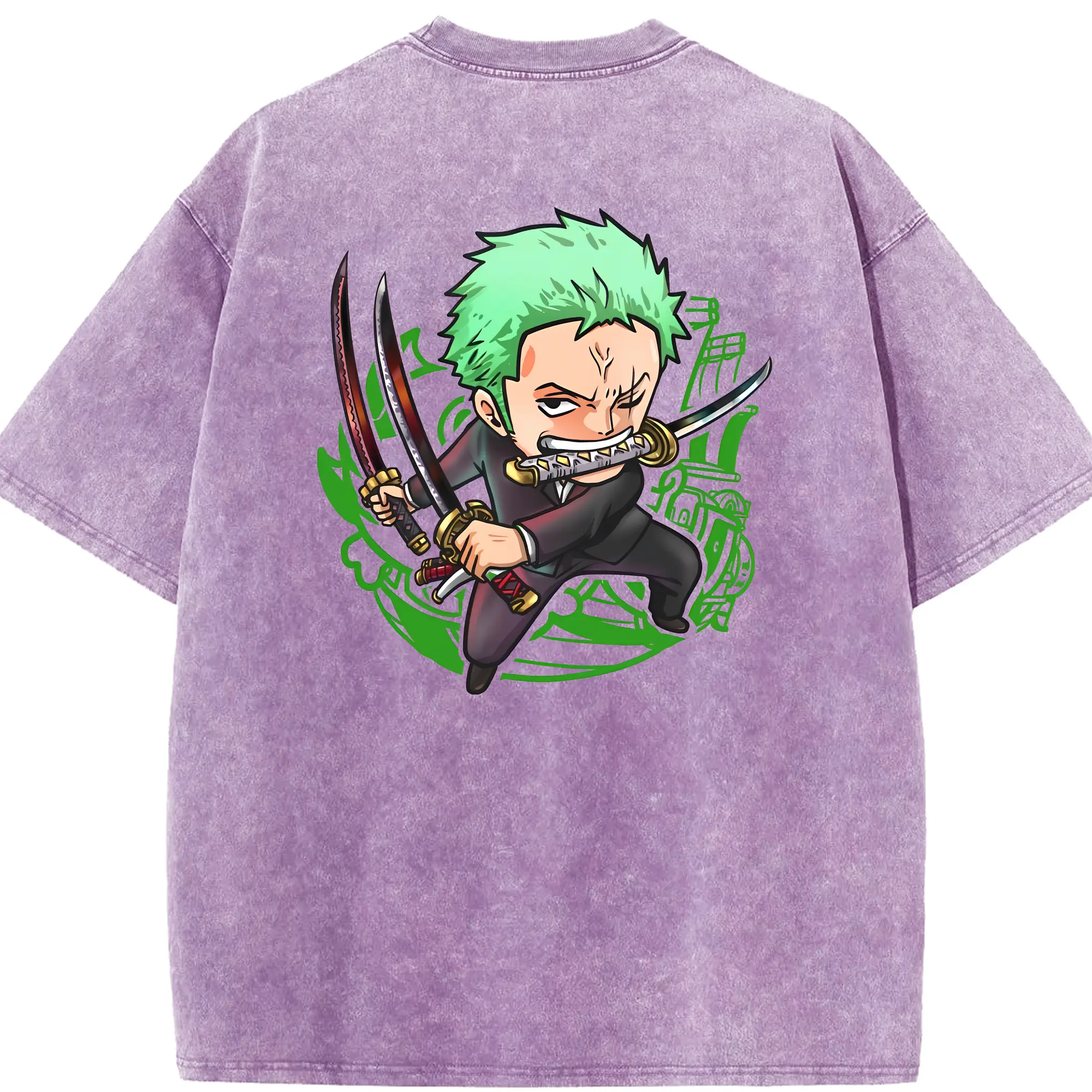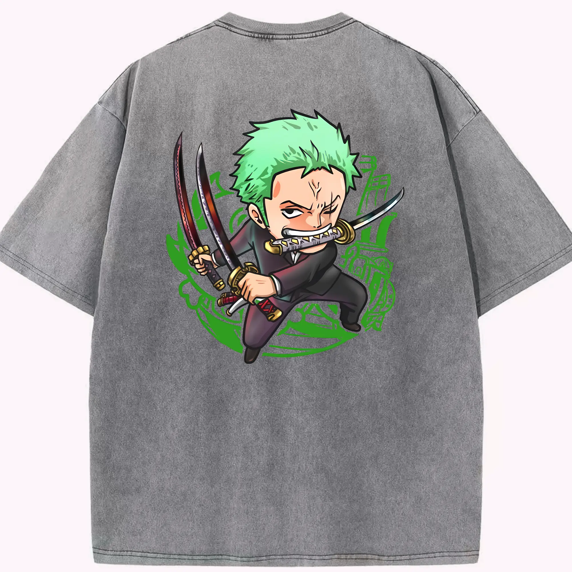 ワンピース グッズ ロロノア・ゾロ - 綿100% ヴィンテージ風 半袖Tシャツ ・ フロントプリント ・ 柔らか肌触り ・ 通気性 快適 ・ スポーツ カジュアル 外出用