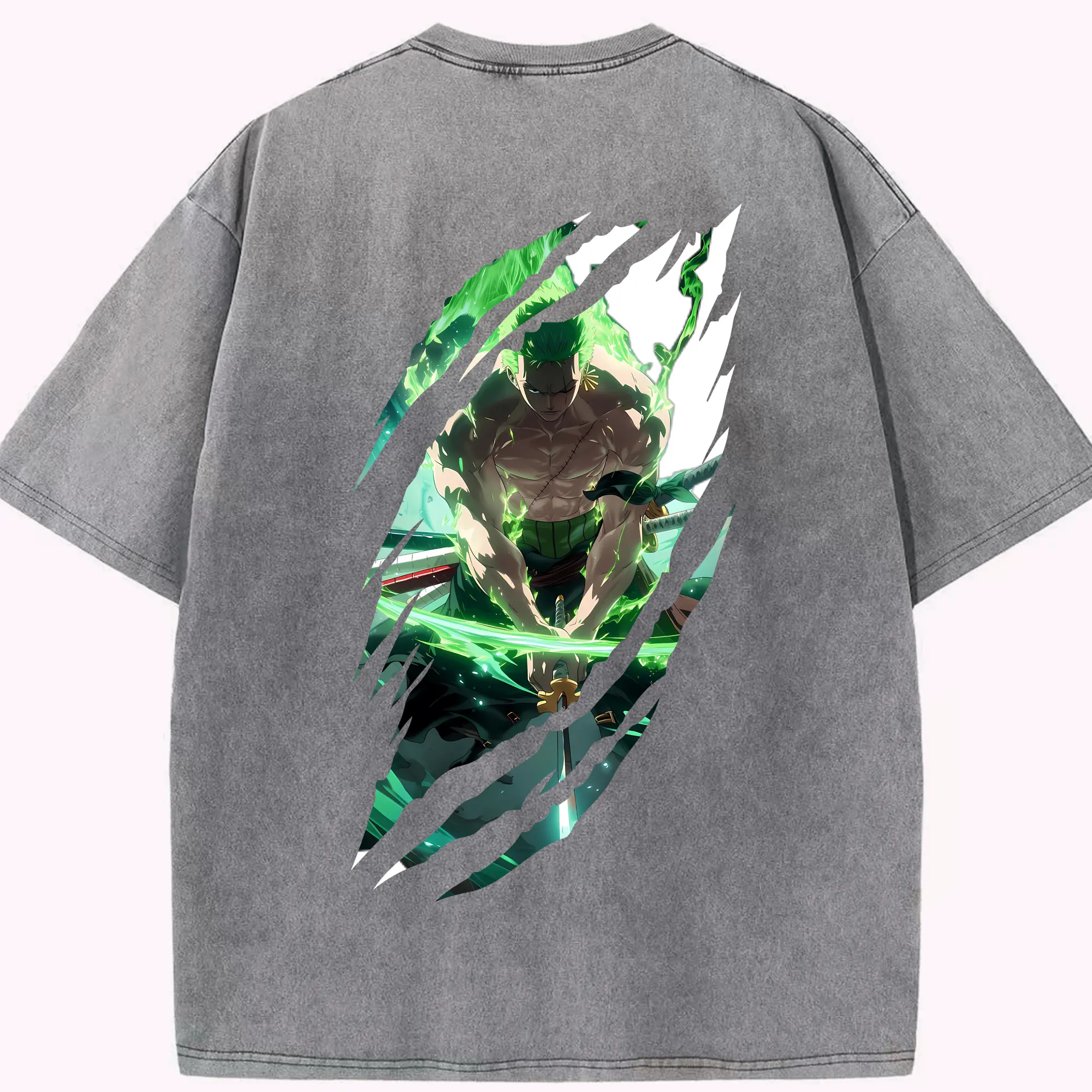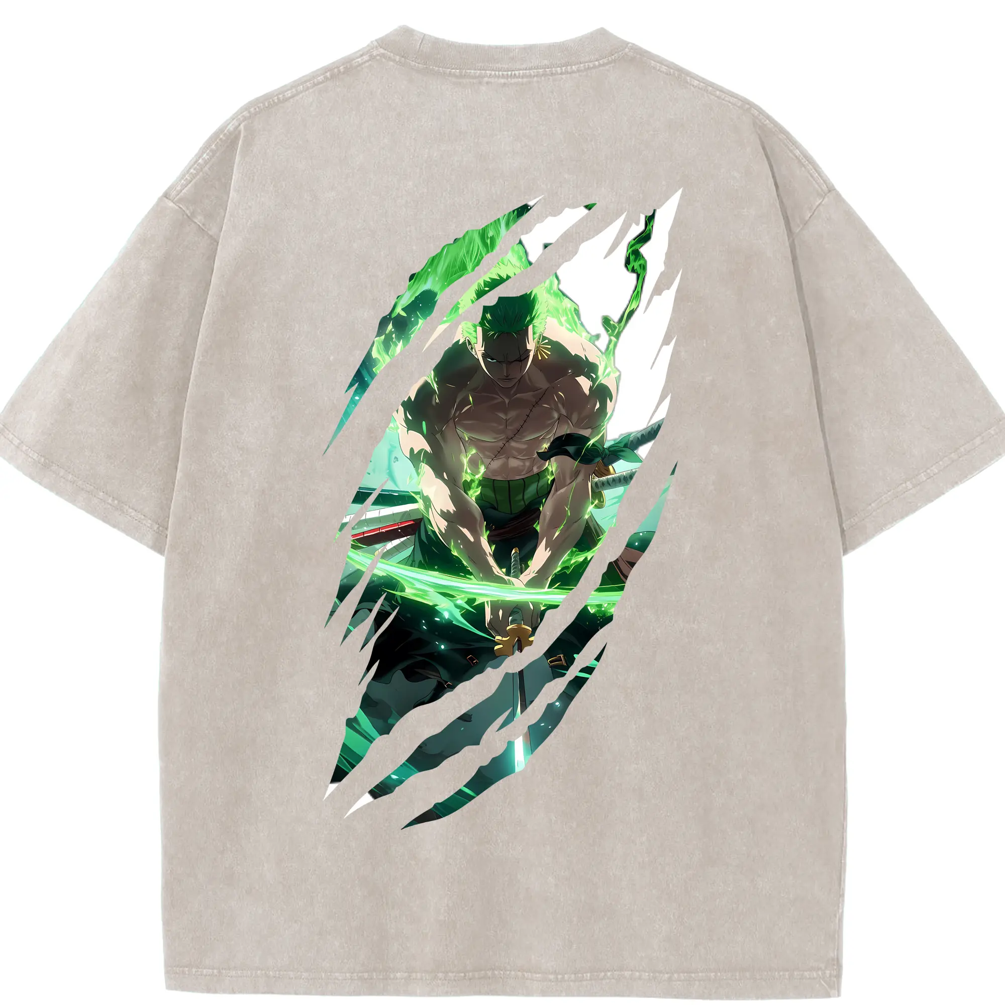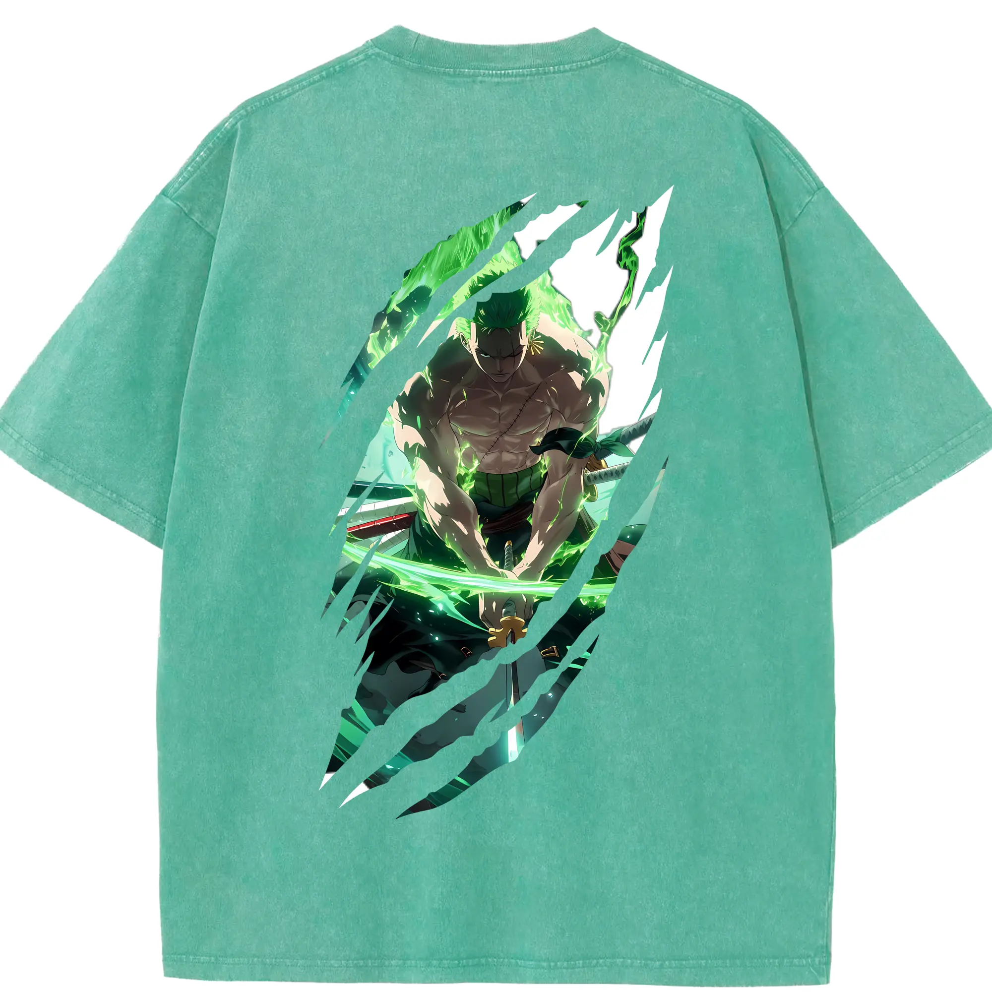 ワンピース グッズ ロロノア・ゾロ - 綿100% ヴィンテージ風 半袖Tシャツ ・ フロントプリント ・ 柔らか肌触り ・ 通気性 快適 ・ スポーツ カジュアル 外出用