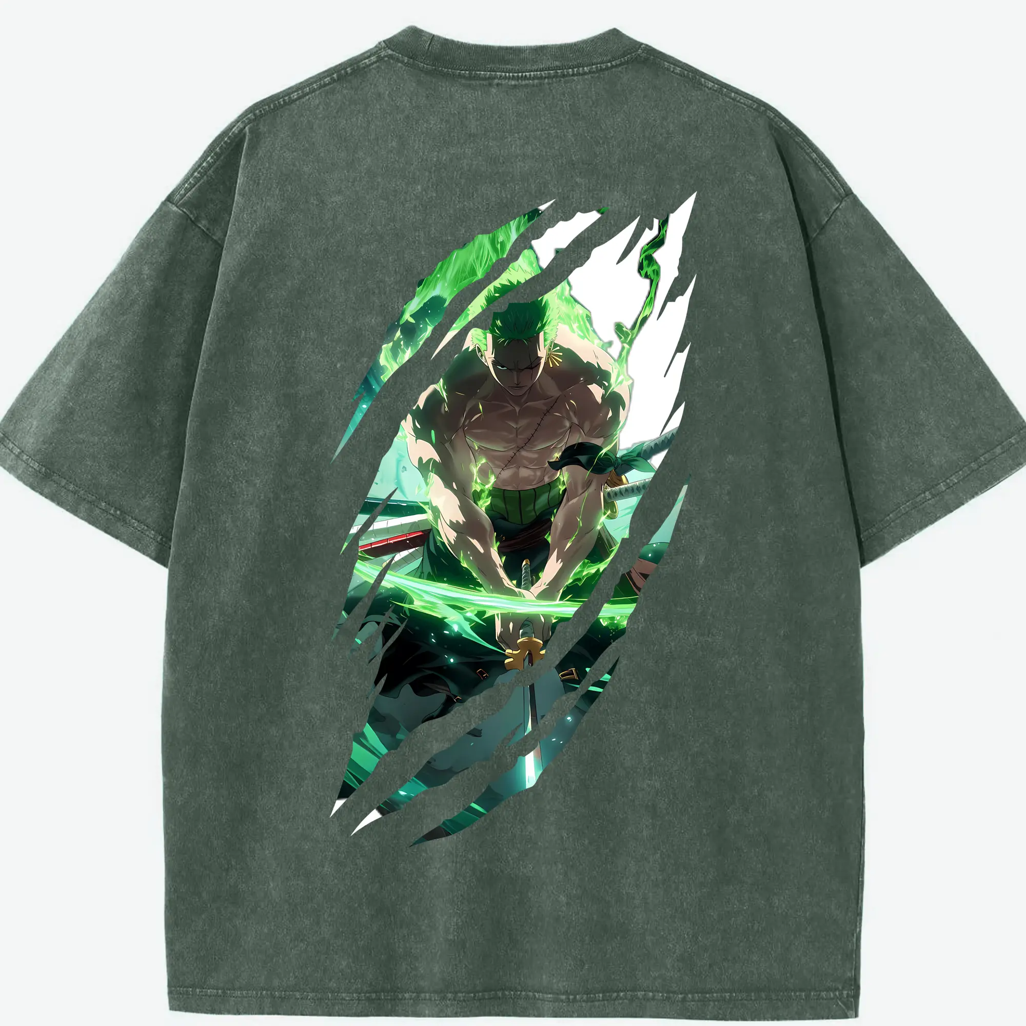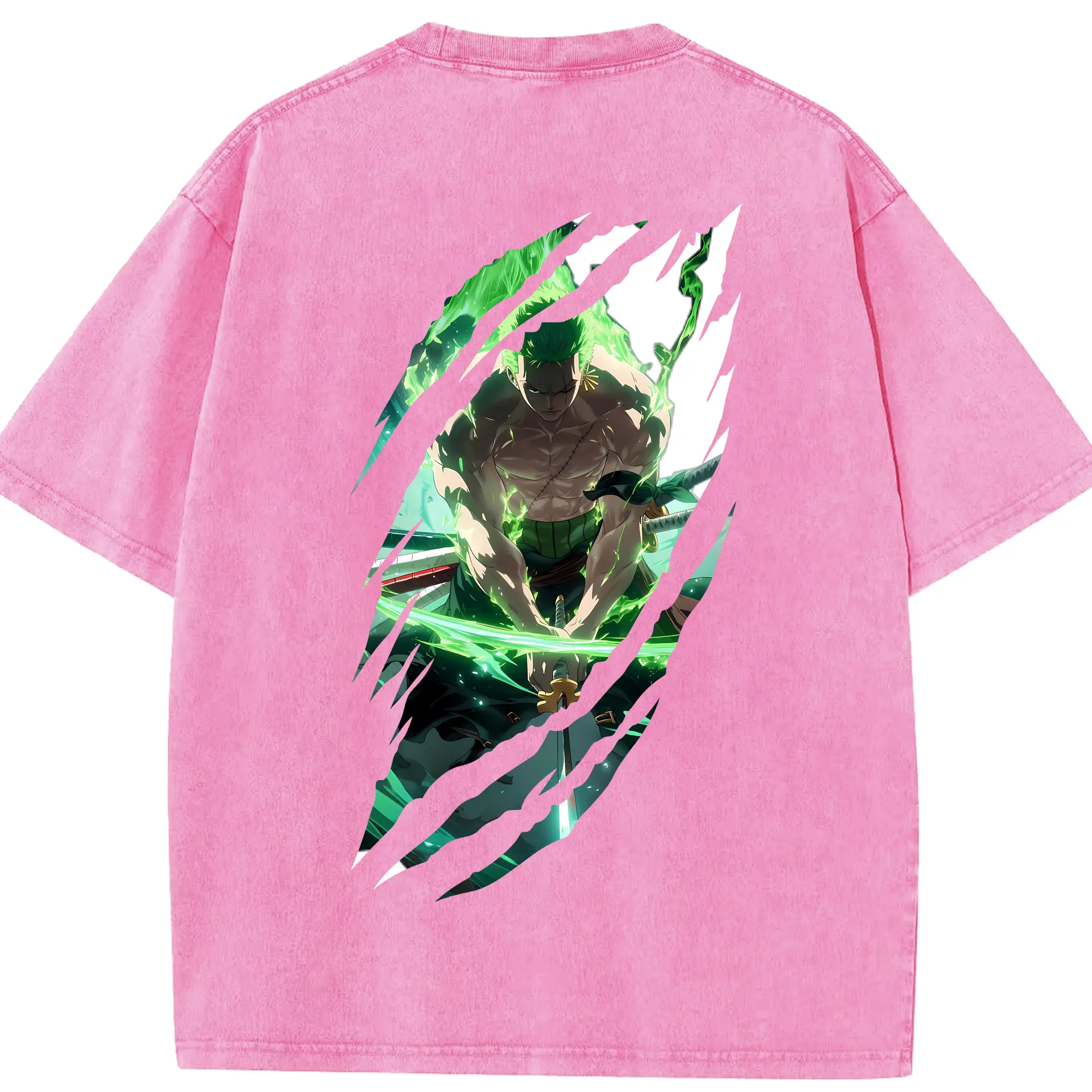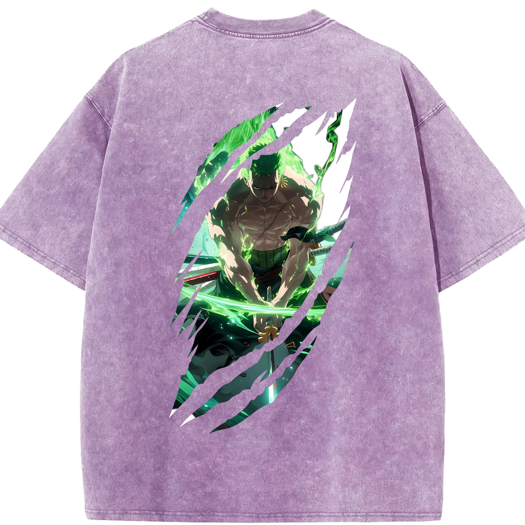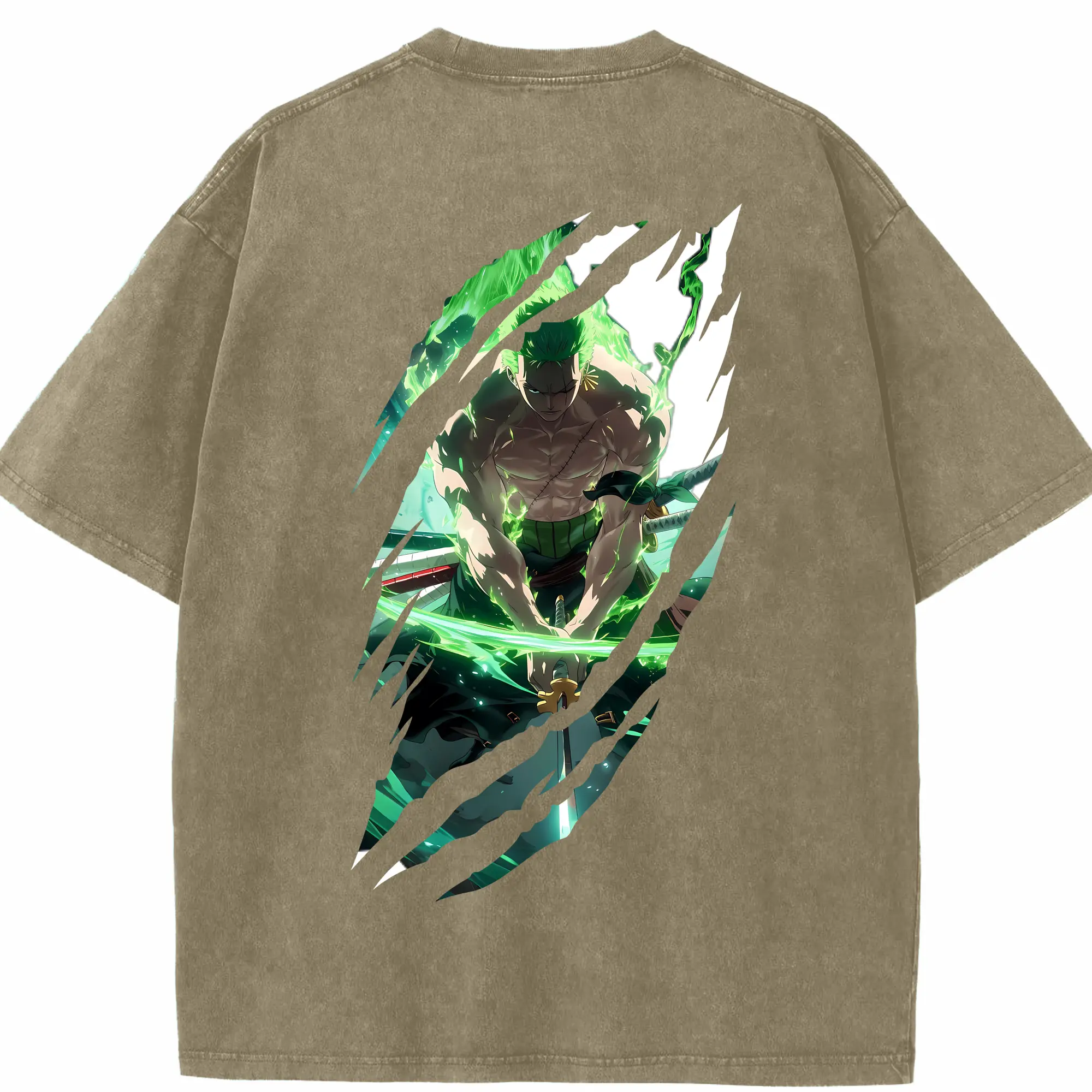 ワンピース グッズ ロロノア・ゾロ - 綿100% ヴィンテージ風 半袖Tシャツ ・ フロントプリント ・ 柔らか肌触り ・ 通気性 快適 ・ スポーツ カジュアル 外出用