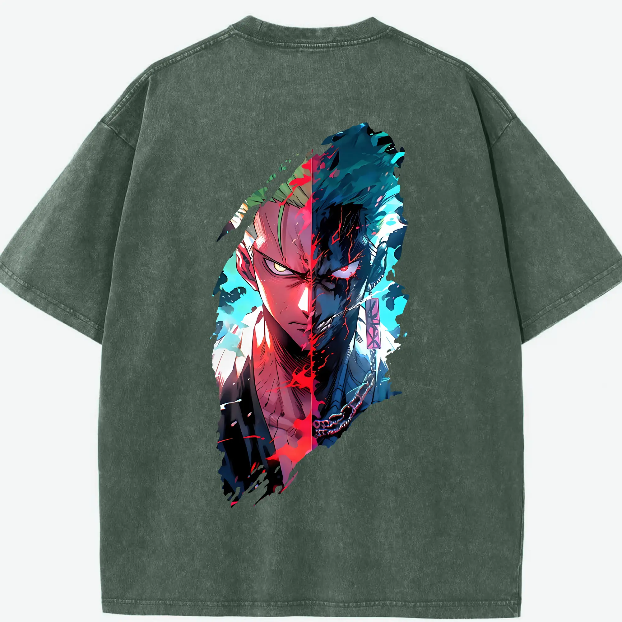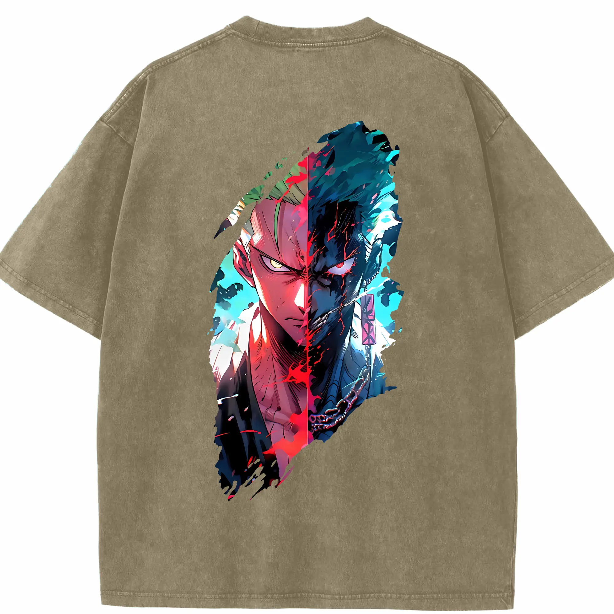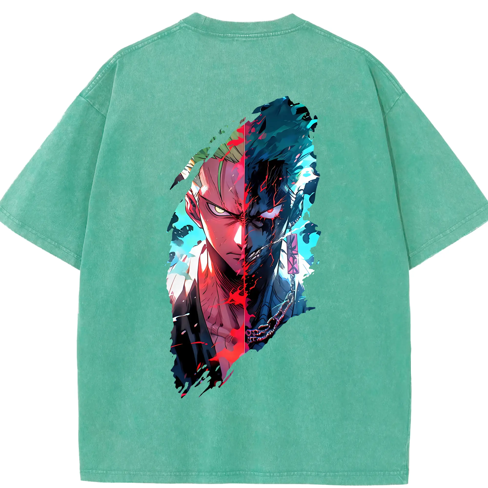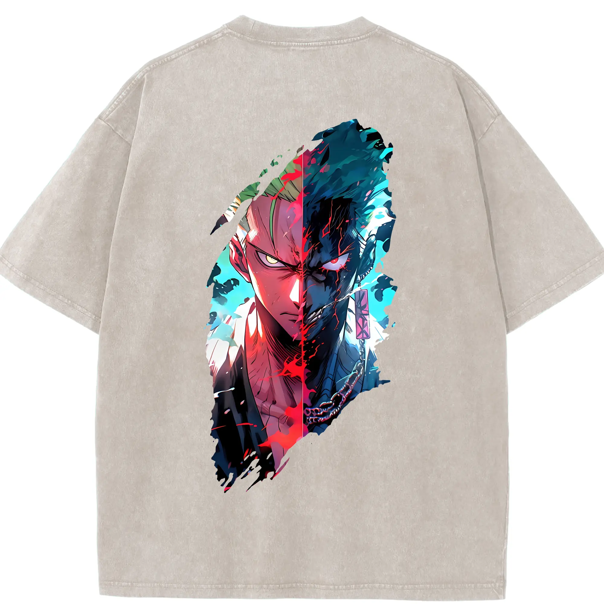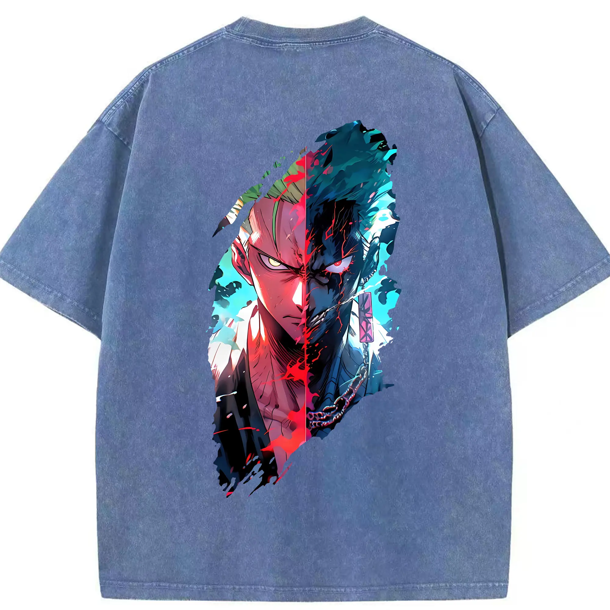 ワンピース グッズ ロロノア・ゾロ - 綿100% ヴィンテージ風 半袖Tシャツ ・ フロントプリント ・ 柔らか肌触り ・ 通気性 快適 ・ スポーツ カジュアル 外出用