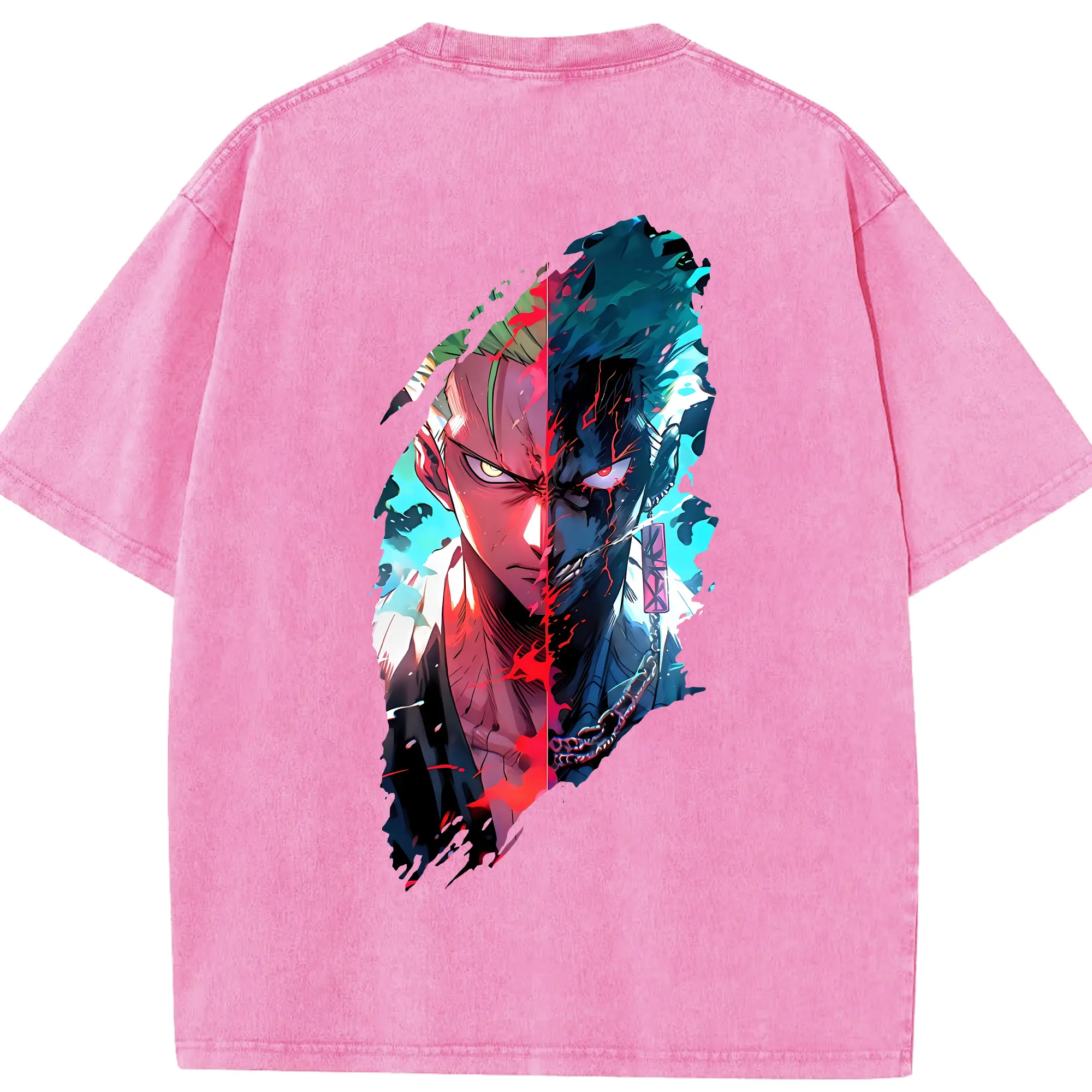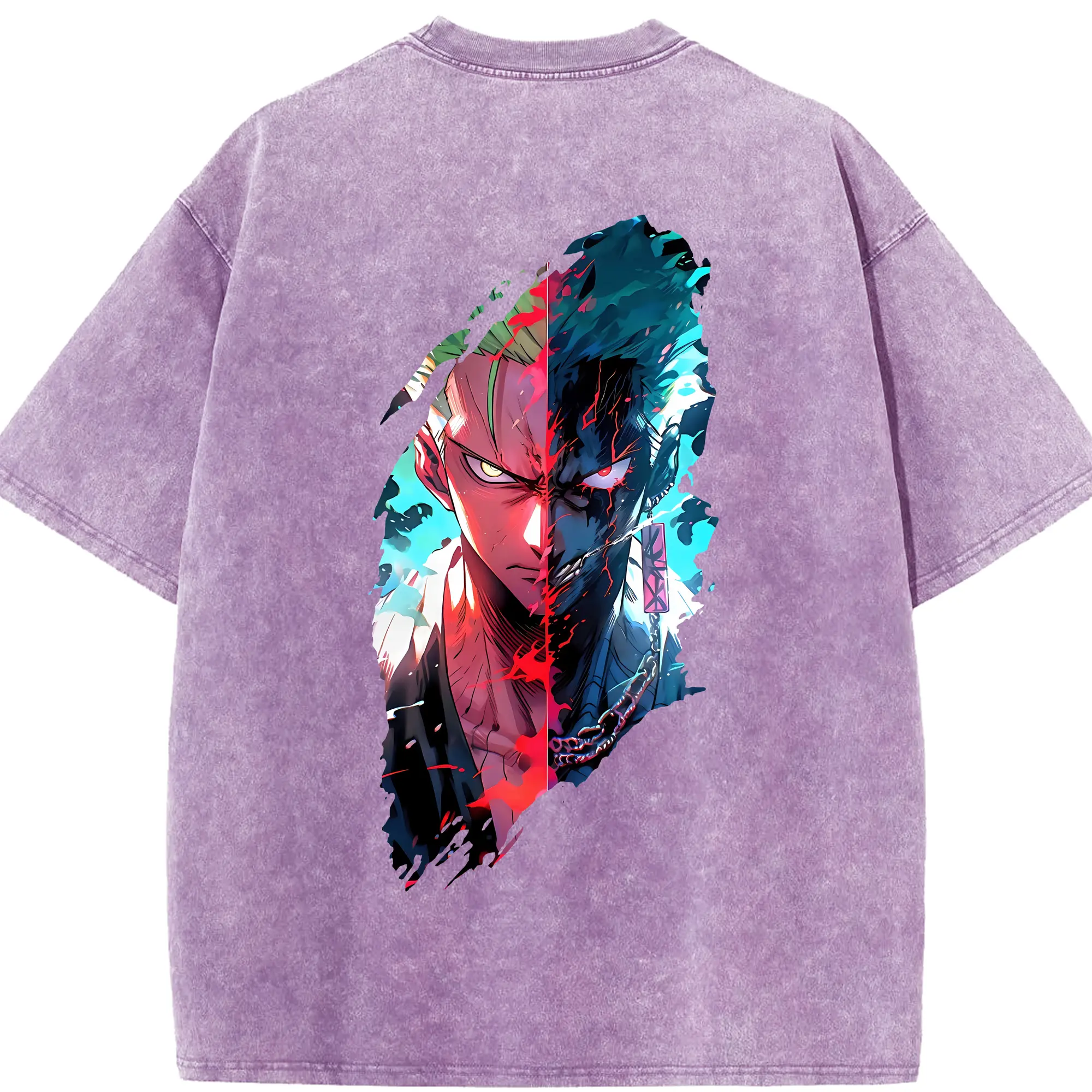ワンピース グッズ ロロノア・ゾロ - 綿100% 半袖Tシャツ ・ バックプリント ・ 快適 通気性 ・ 日常使い 散歩 スポーツ用