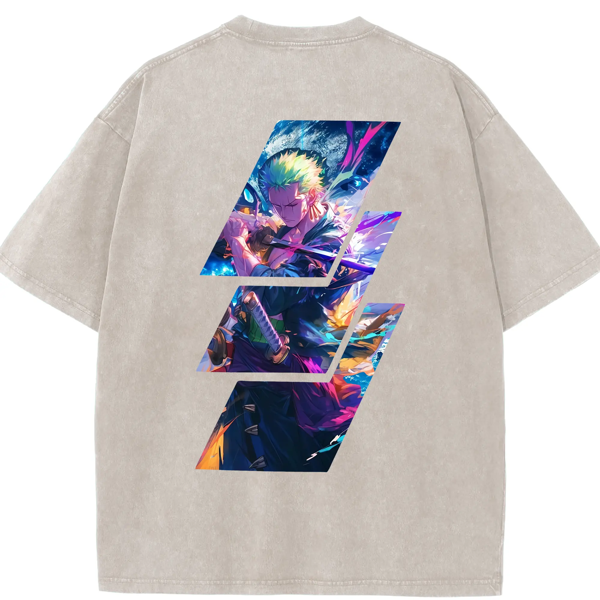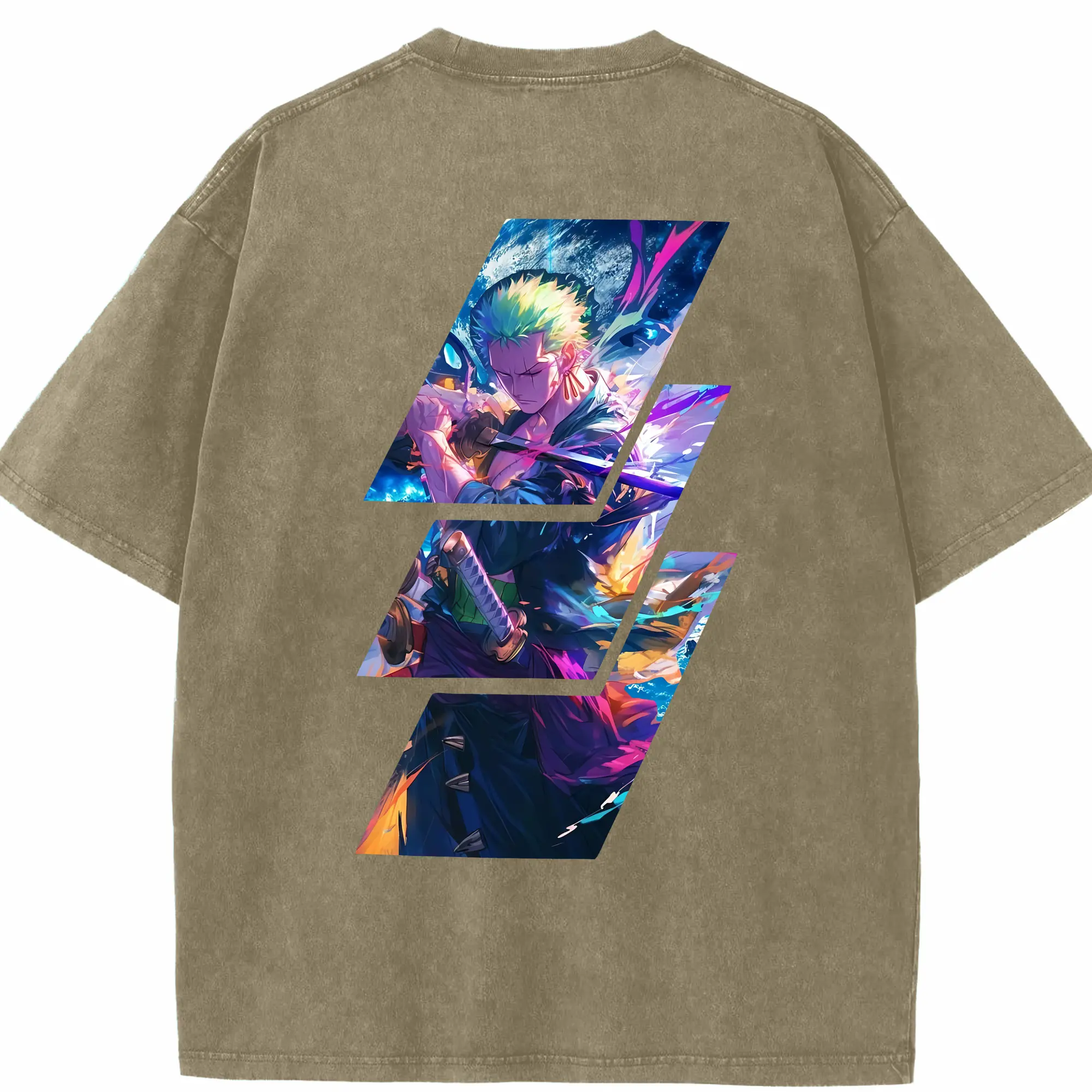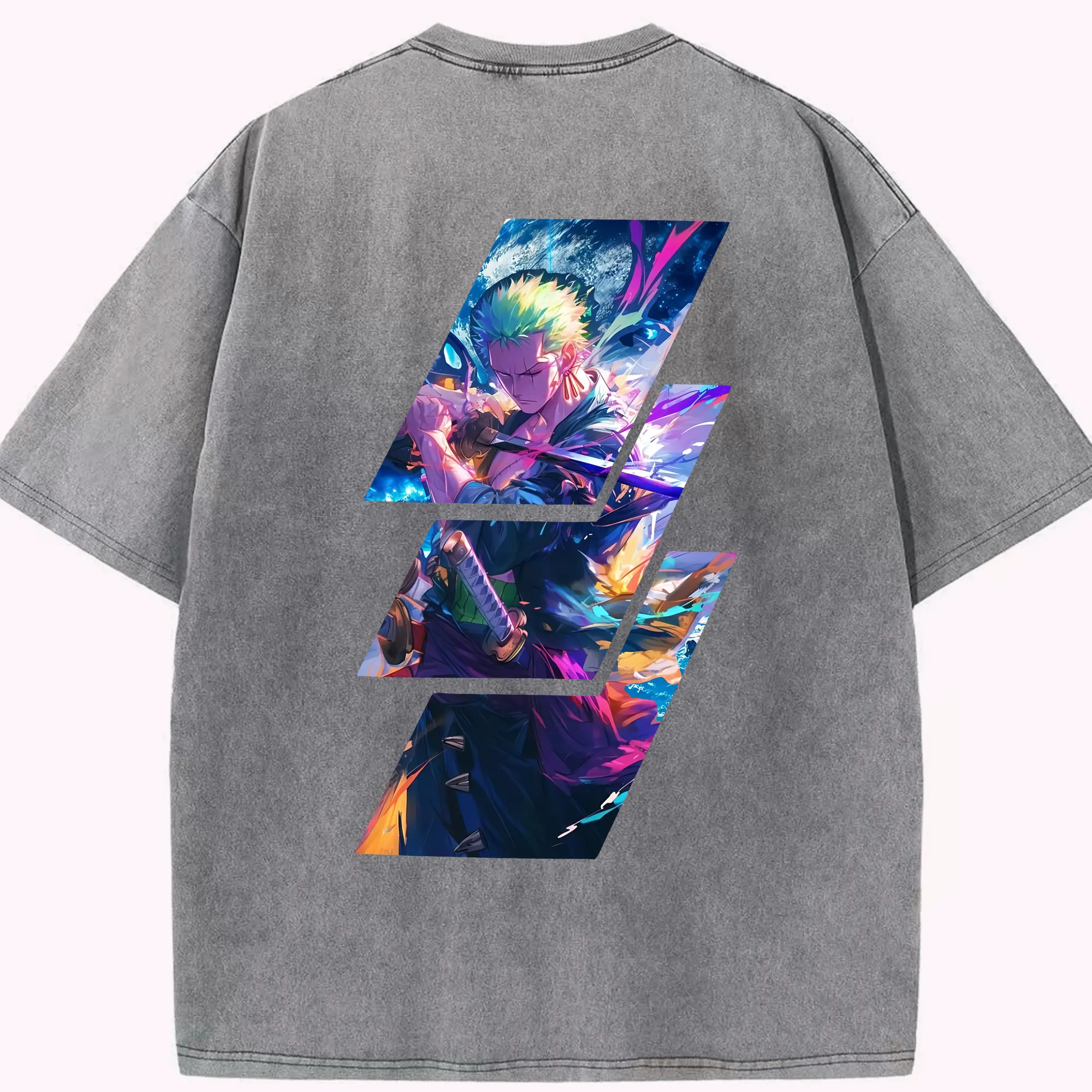 ワンピース グッズ ロロノア・ゾロ - 綿100% ヴィンテージ風 半袖Tシャツ ・ フロントプリント ・ 柔らか肌触り ・ 通気性 快適 ・ スポーツ カジュアル 外出用