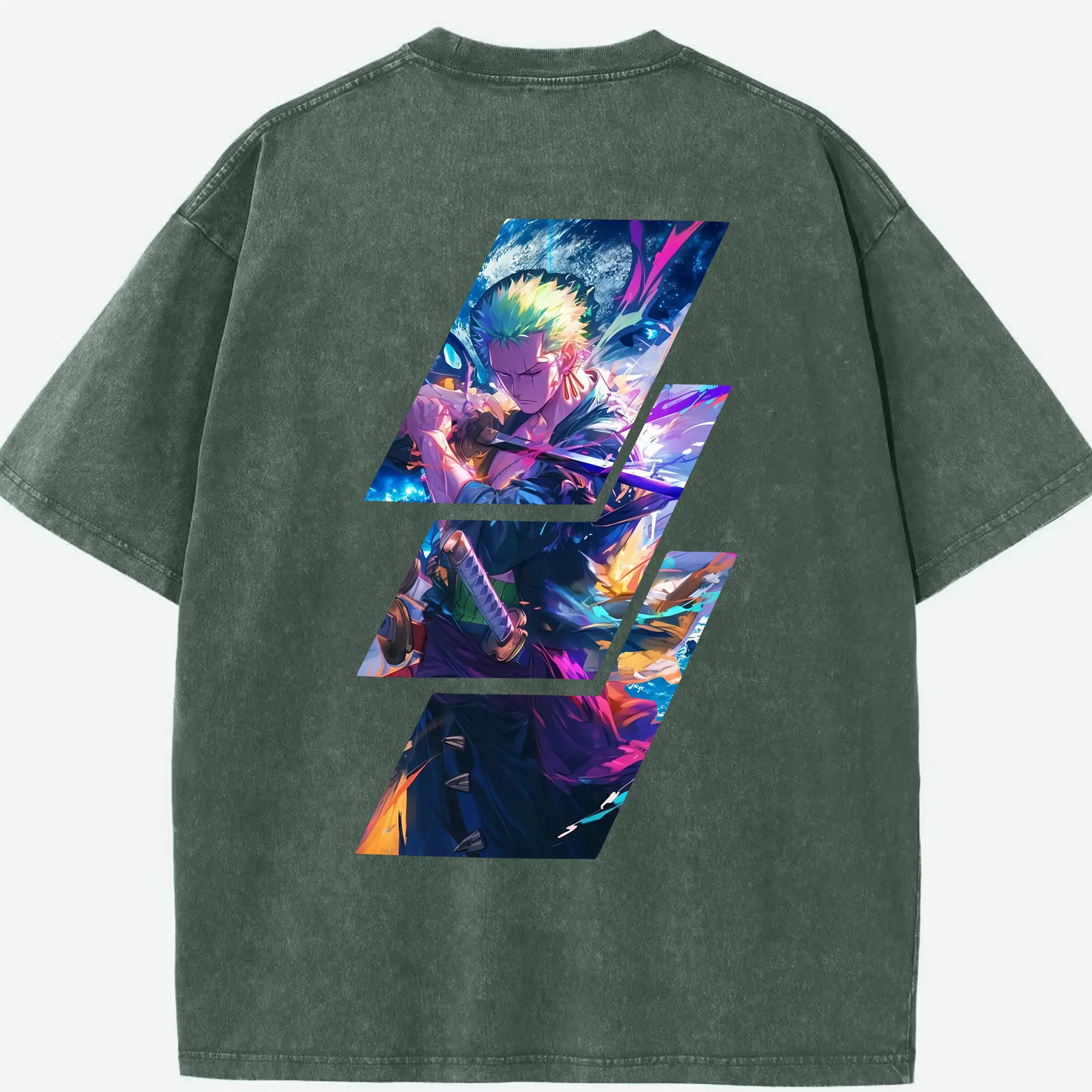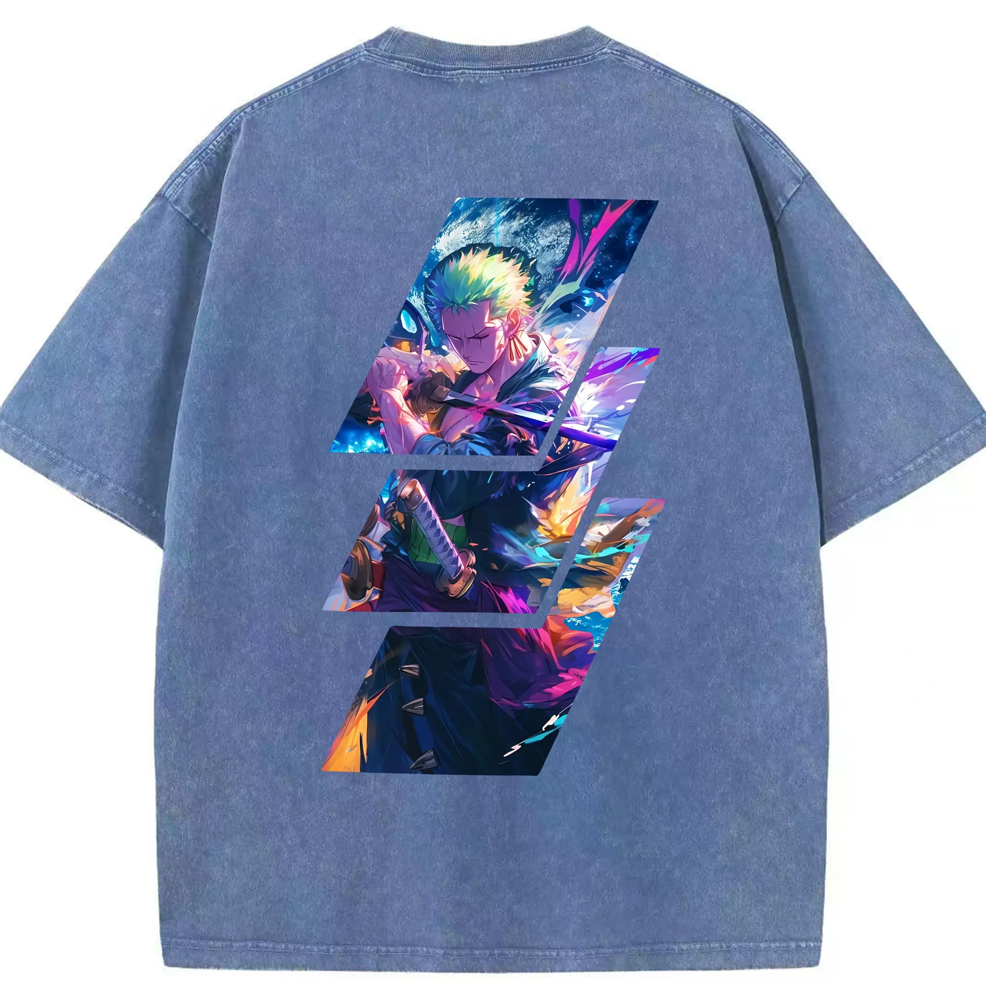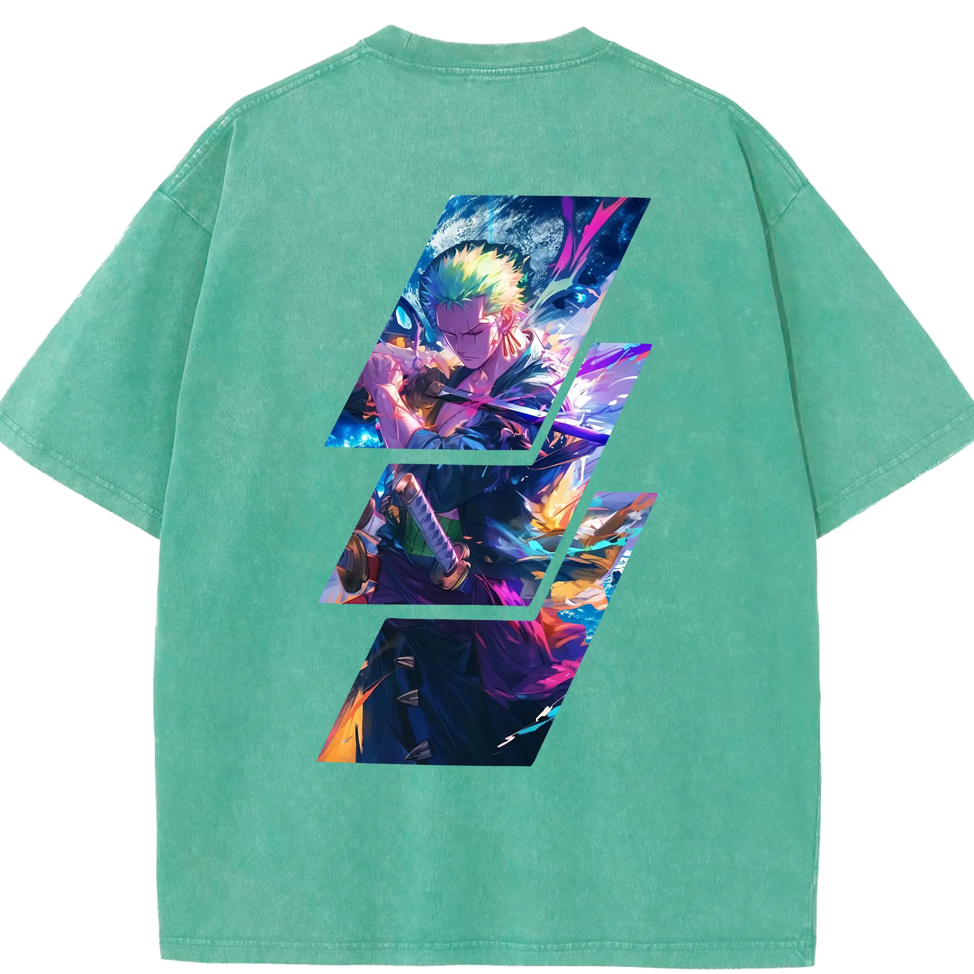 ワンピース グッズ ロロノア・ゾロ - 綿100% ヴィンテージ風 半袖Tシャツ ・ フロントプリント ・ 柔らか肌触り ・ 通気性 快適 ・ スポーツ カジュアル 外出用