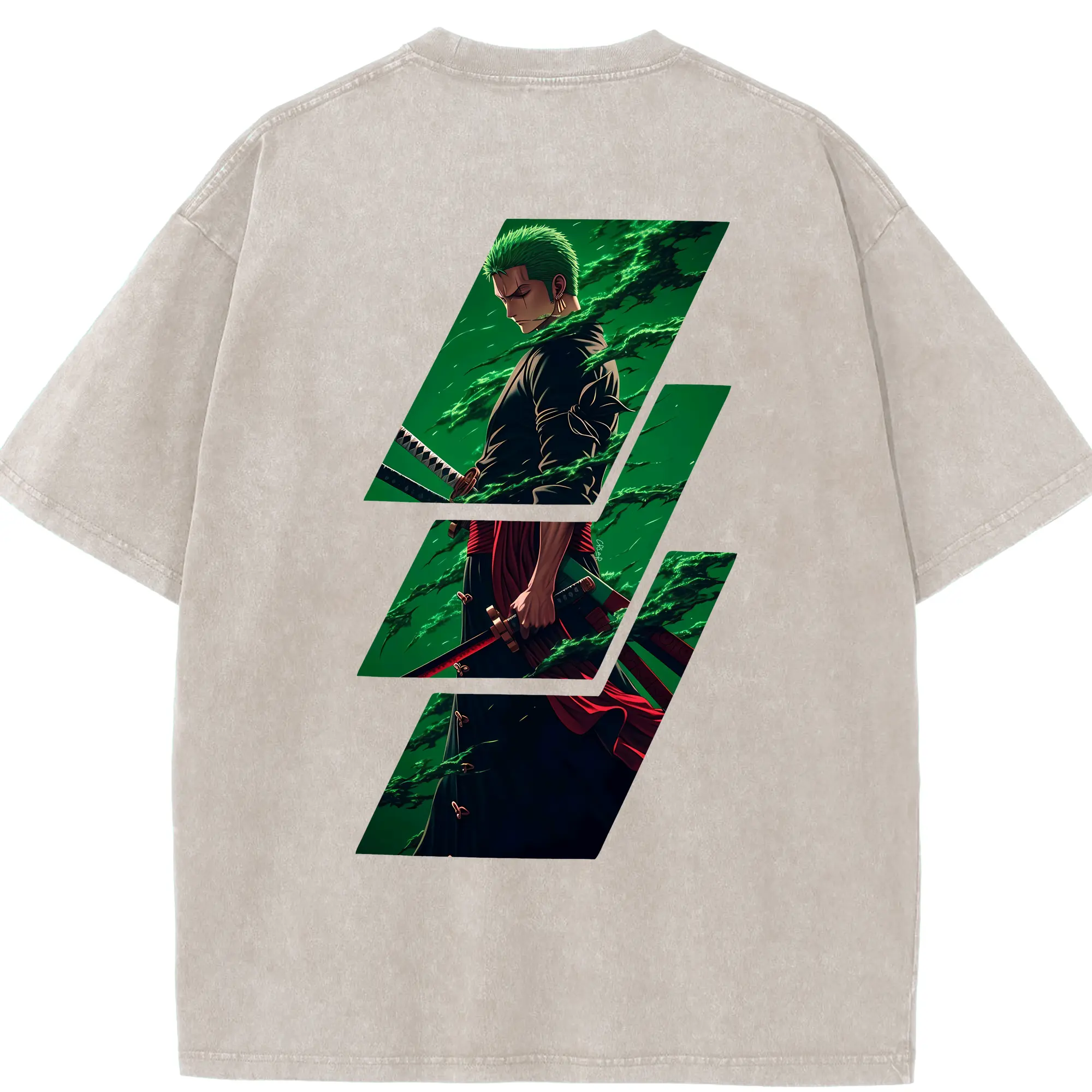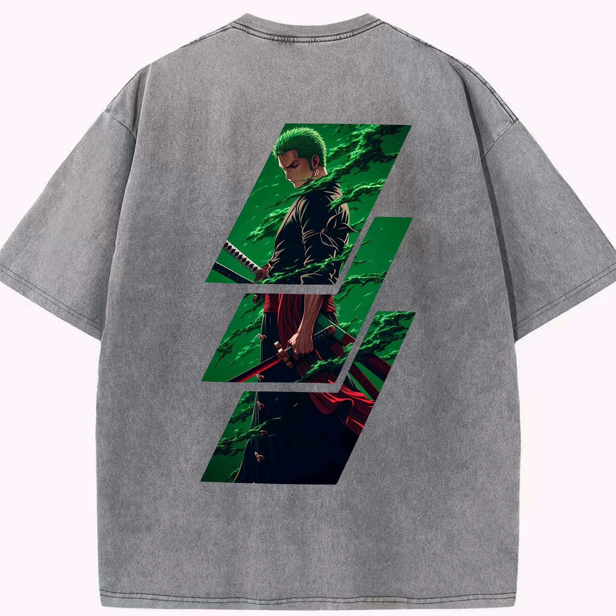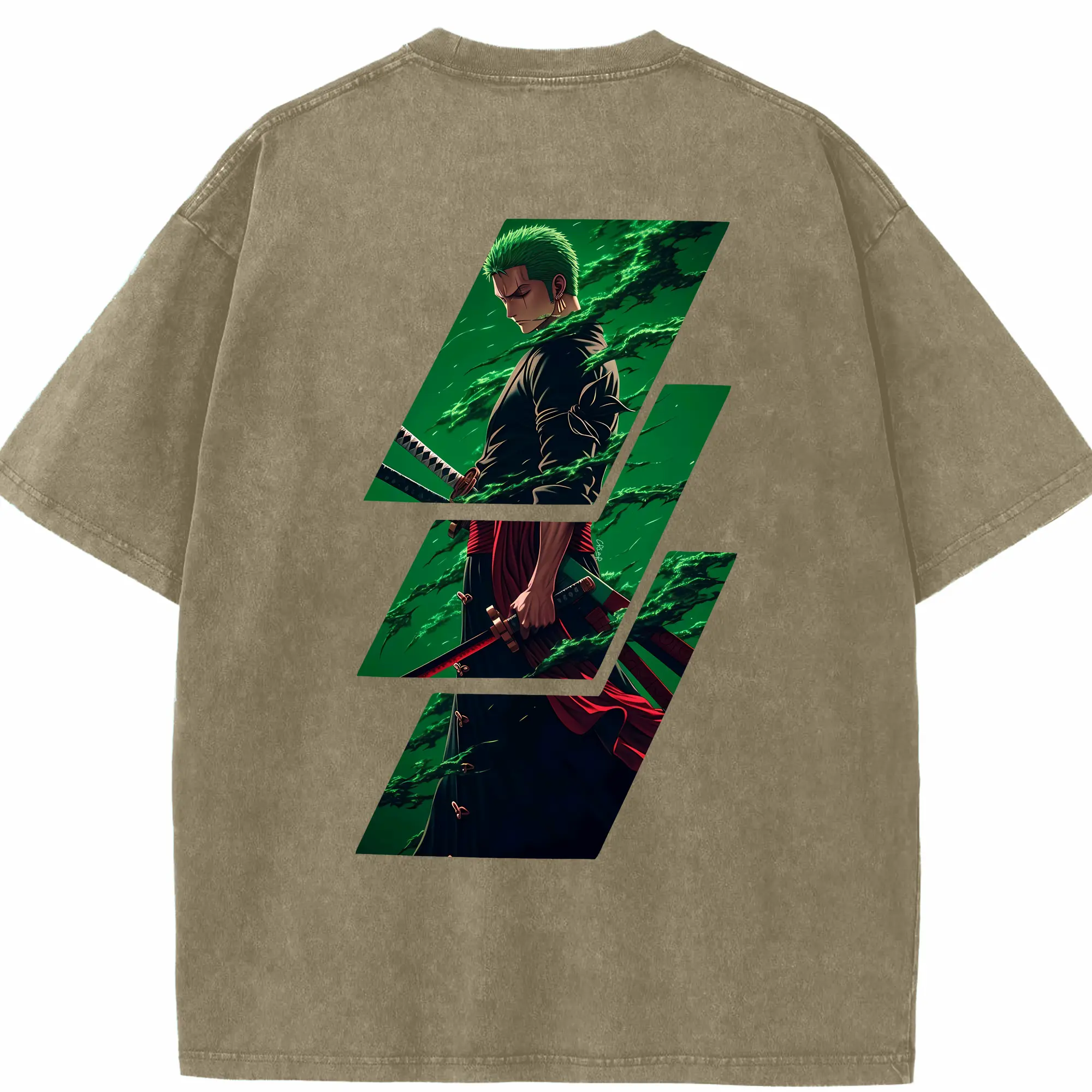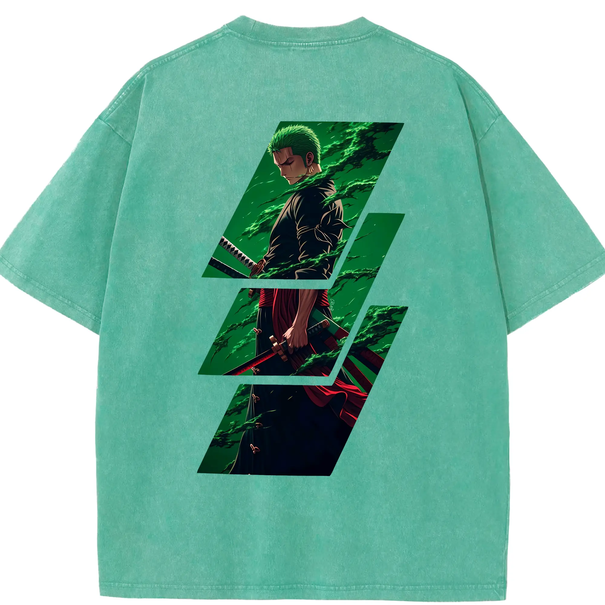 ワンピース グッズ ロロノア・ゾロ - 綿100% ヴィンテージ風 半袖Tシャツ ・ フロントプリント ・ 柔らか肌触り ・ 通気性 快適 ・ スポーツ カジュアル 外出用