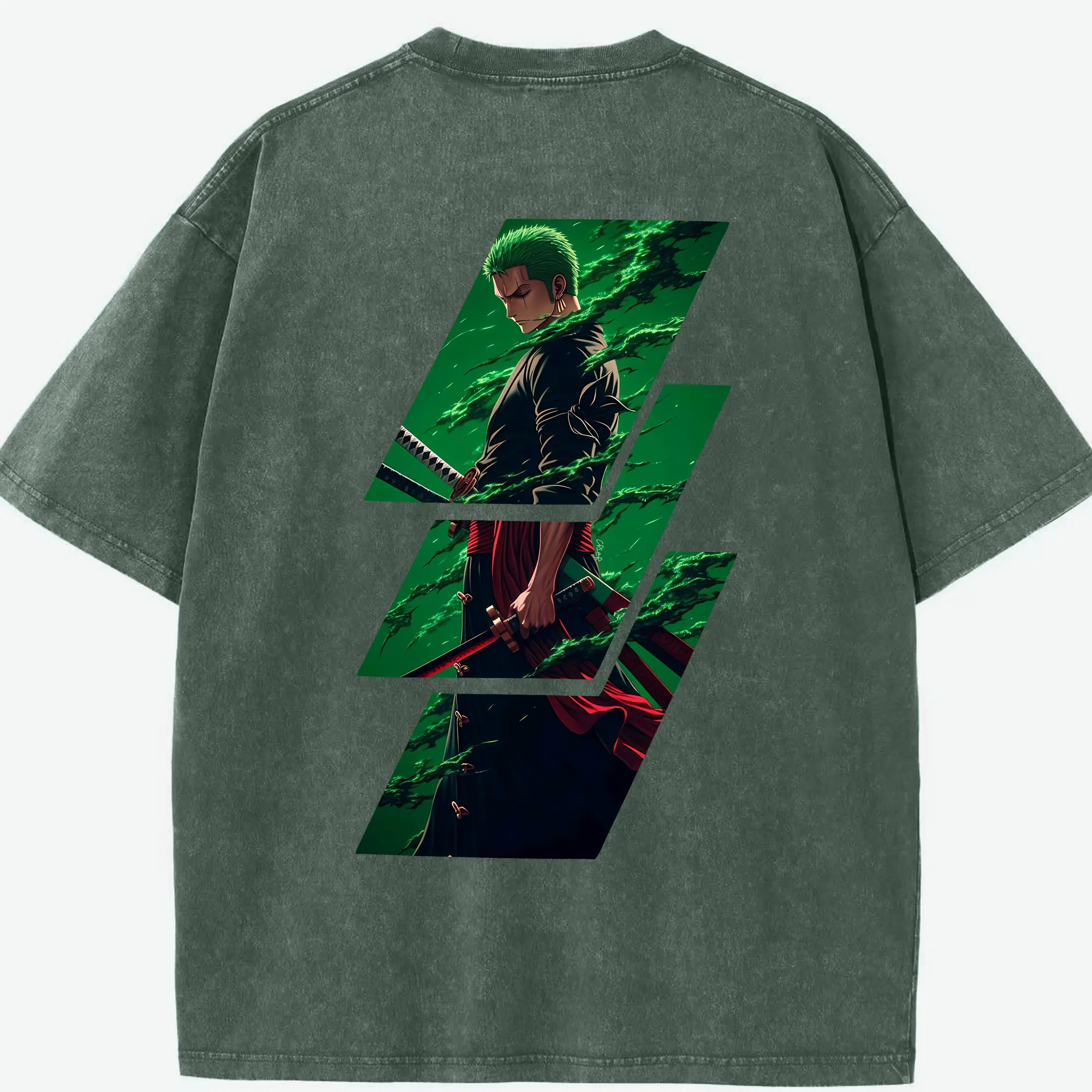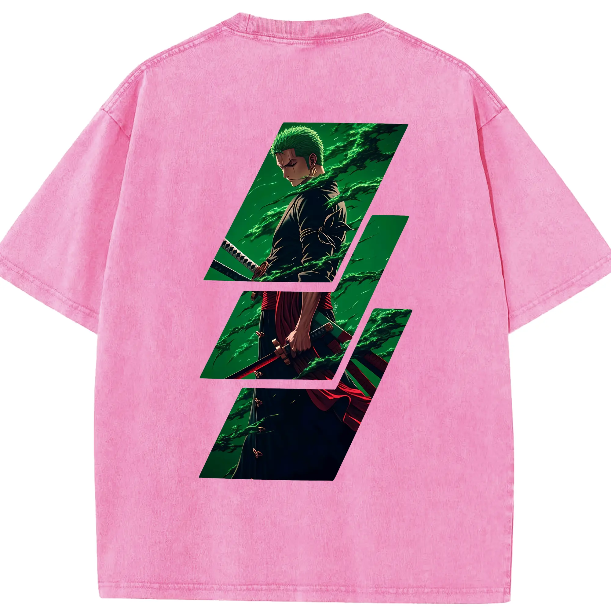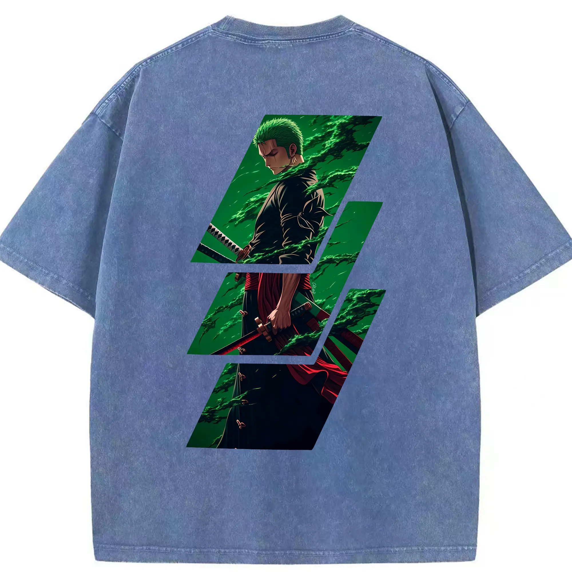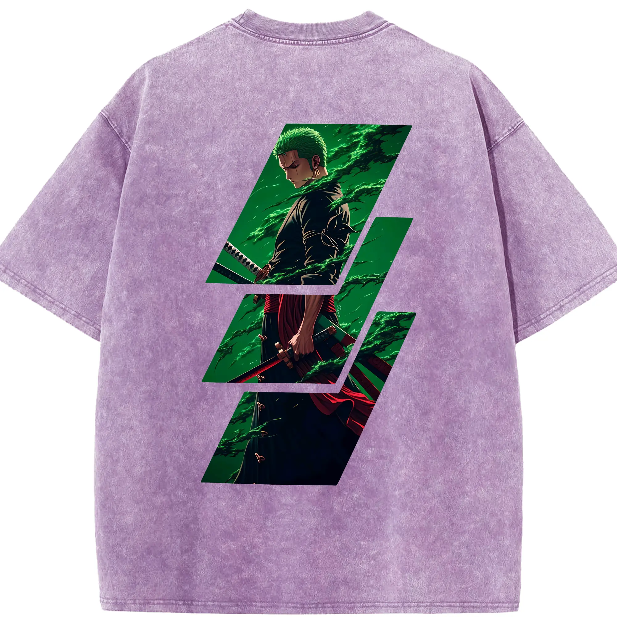 ワンピース グッズ ロロノア・ゾロ - 綿100% ヴィンテージ風 半袖Tシャツ ・ フロントプリント ・ 柔らか肌触り ・ 通気性 快適 ・ スポーツ カジュアル 外出用