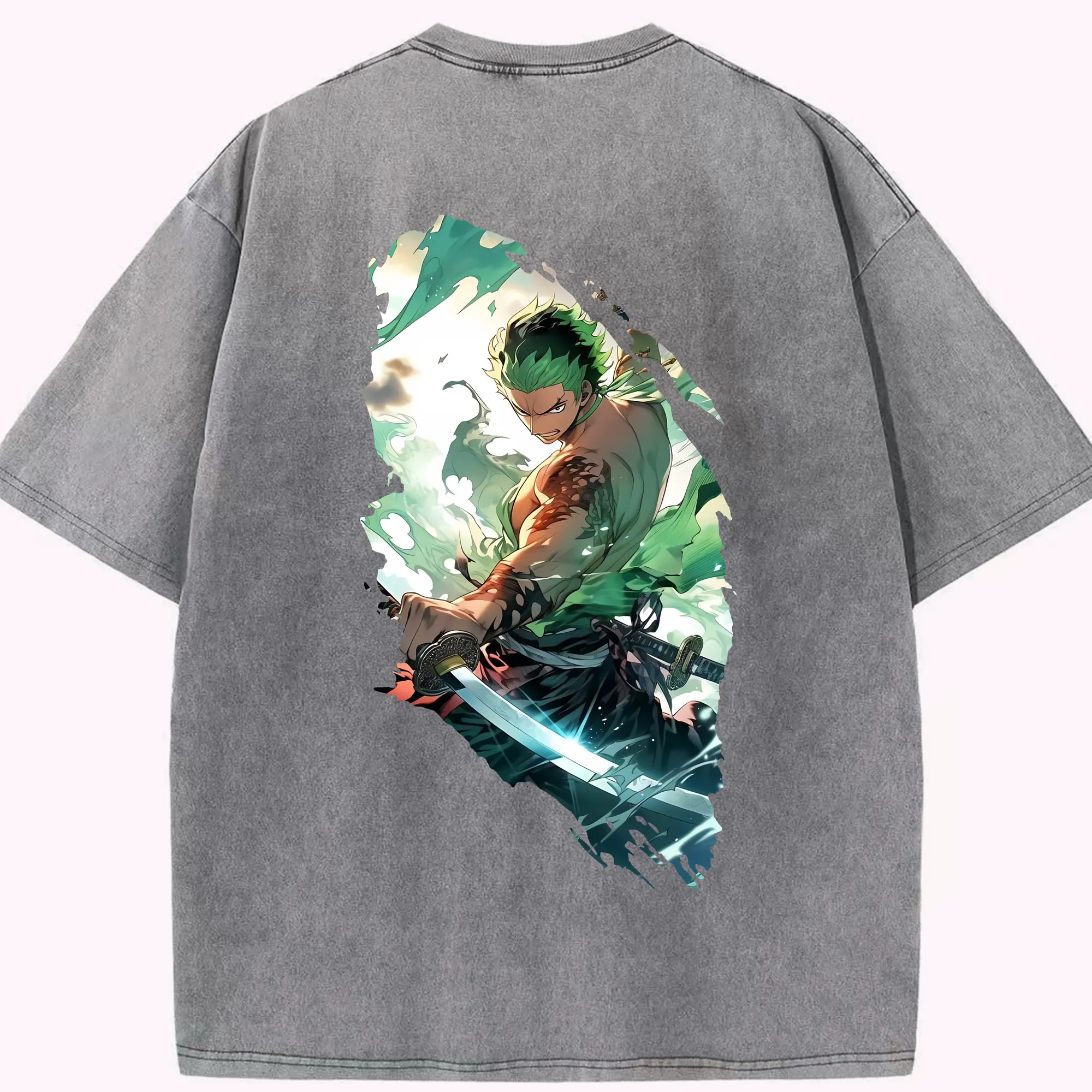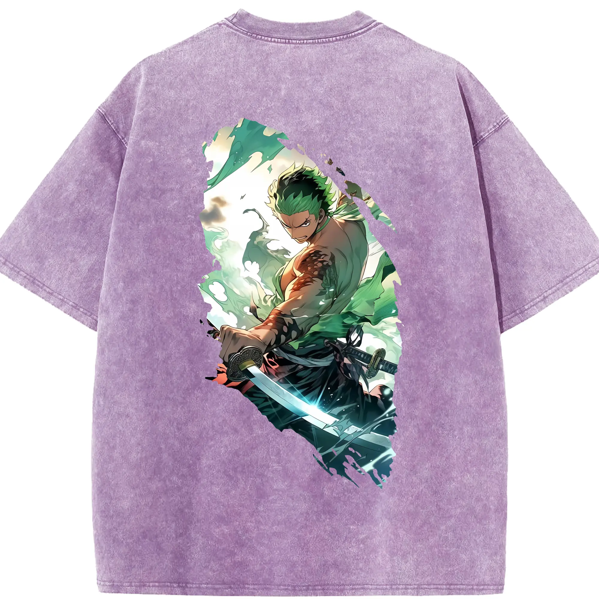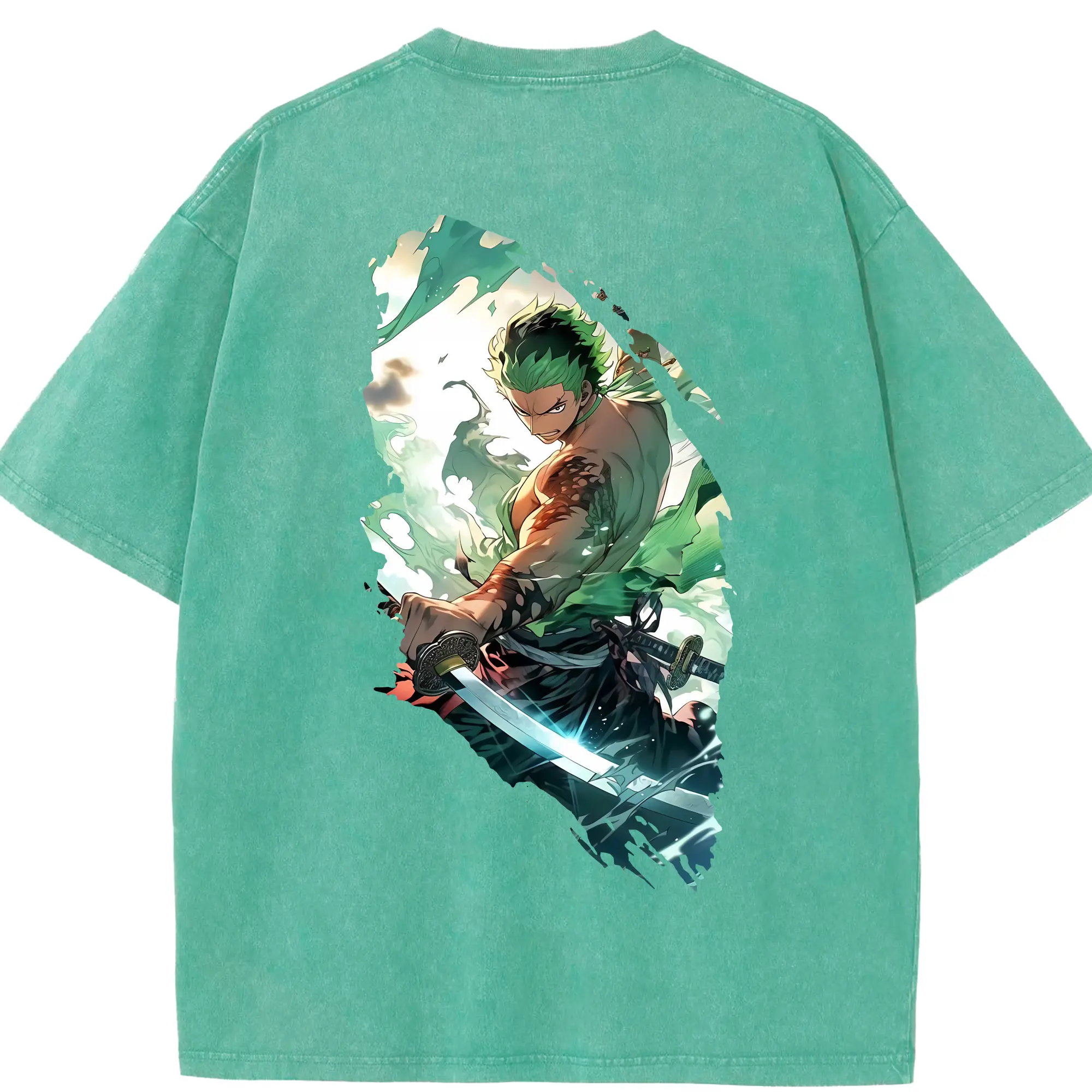 ワンピース グッズ ロロノア・ゾロ - 綿100% ヴィンテージ風 半袖Tシャツ ・ フロントプリント ・ 柔らか肌触り ・ 通気性 快適 ・ スポーツ カジュアル 外出用