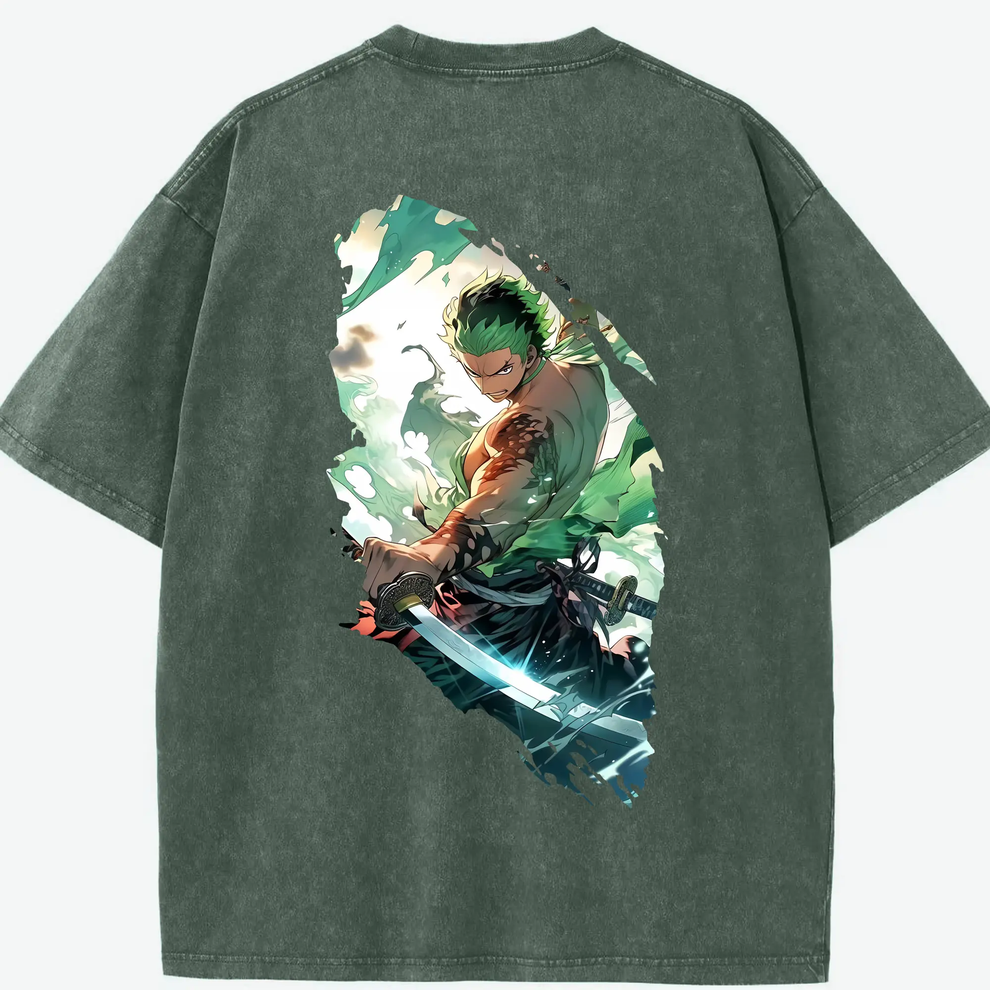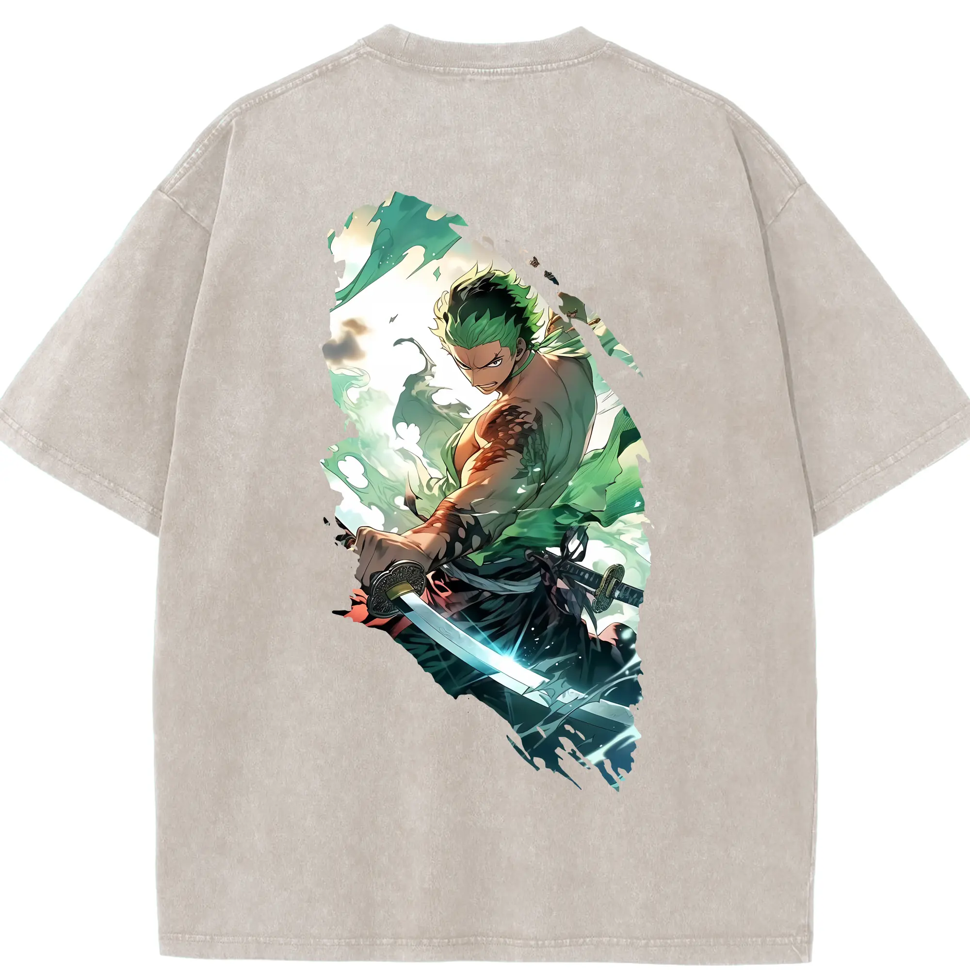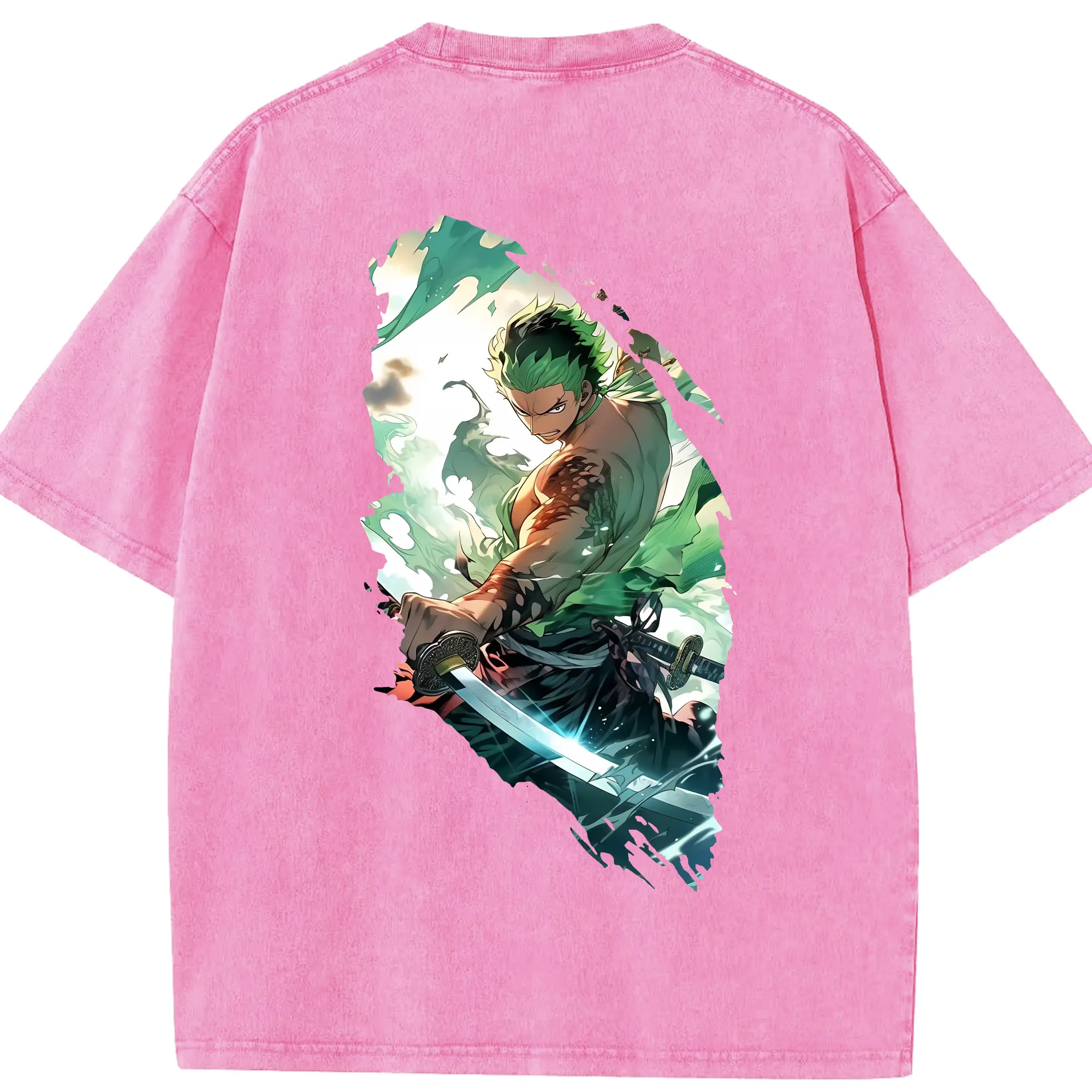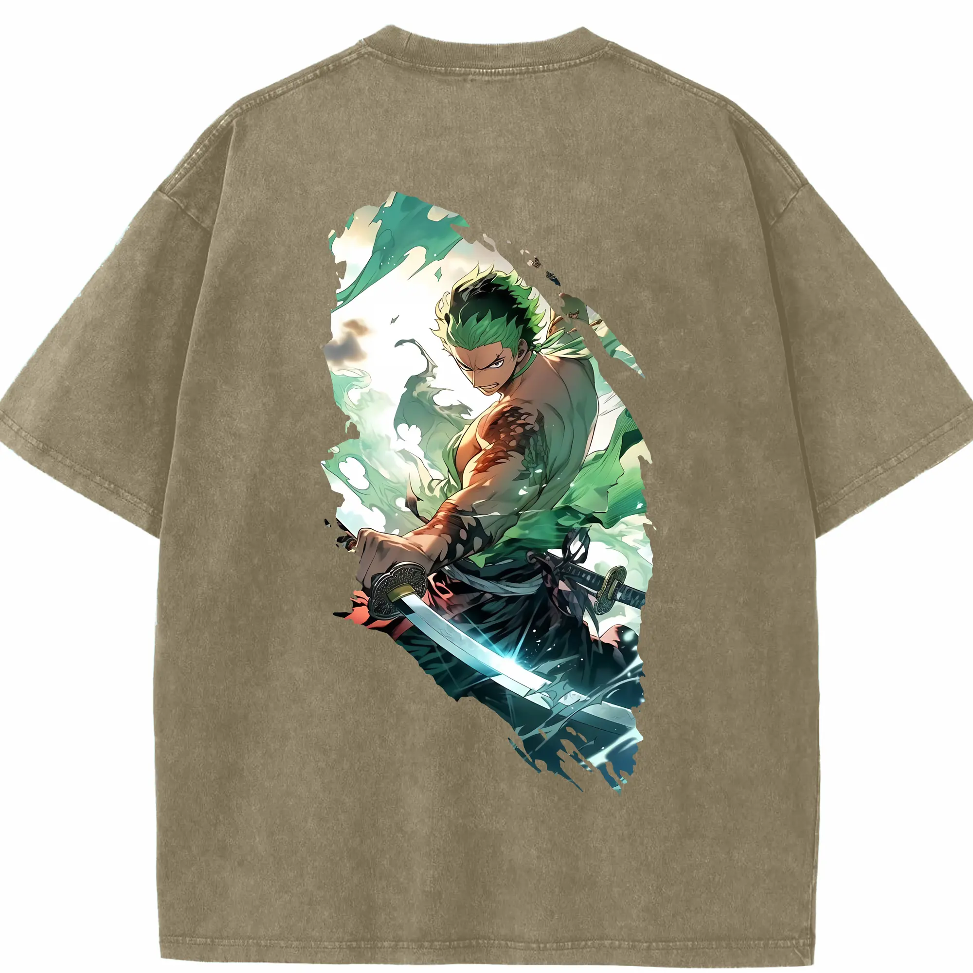 ワンピース グッズ ロロノア・ゾロ - 綿100% ヴィンテージ風 半袖Tシャツ ・ フロントプリント ・ 柔らか肌触り ・ 通気性 快適 ・ スポーツ カジュアル 外出用