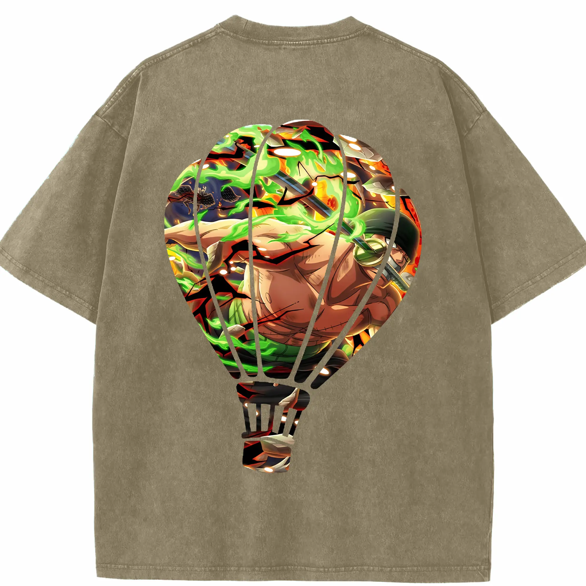 ワンピース グッズ ロロノア・ゾロ - 綿100% ヴィンテージ風 半袖Tシャツ ・ フロントプリント ・ 柔らか肌触り ・ 通気性 快適 ・ スポーツ カジュアル 外出用