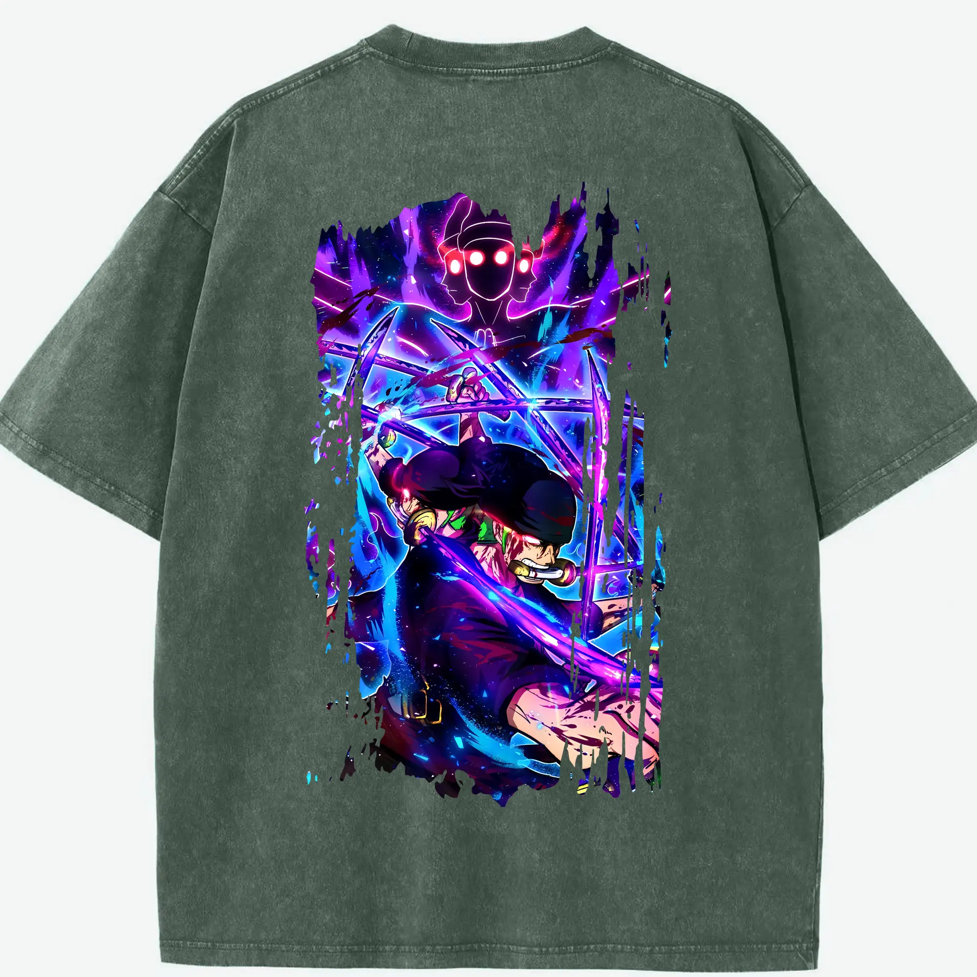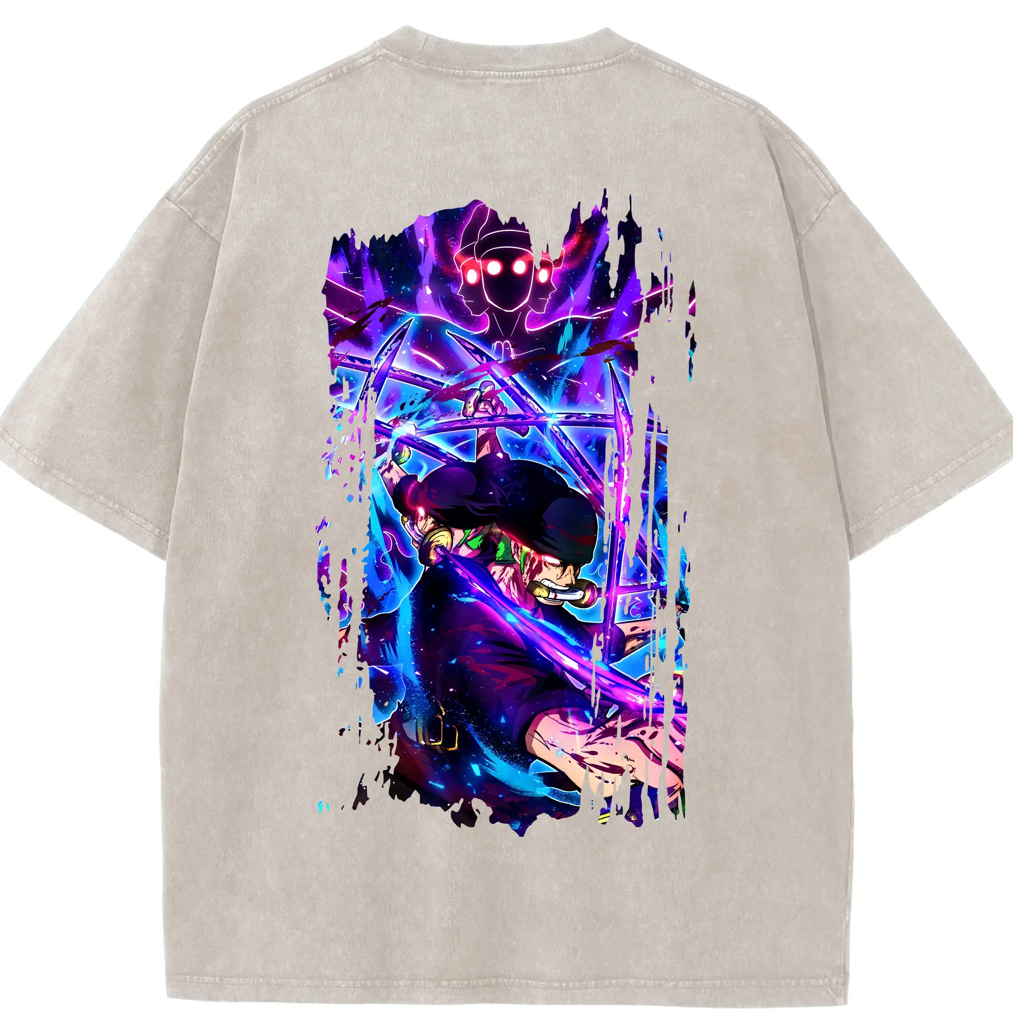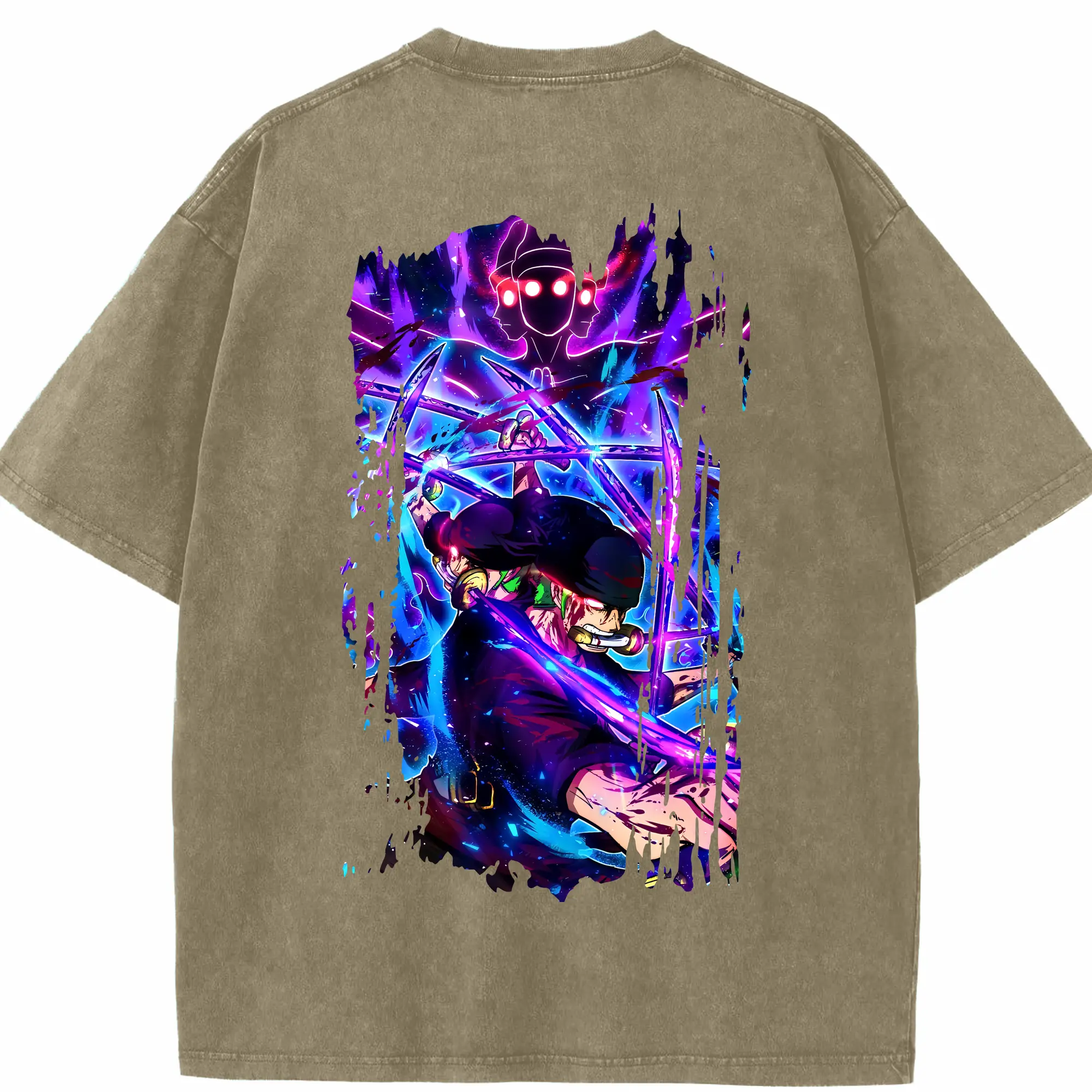 ワンピース グッズ ロロノア・ゾロ - 綿100% ヴィンテージ風 半袖Tシャツ ・ フロントプリント ・ 柔らか肌触り ・ 通気性 快適 ・ スポーツ カジュアル 外出用