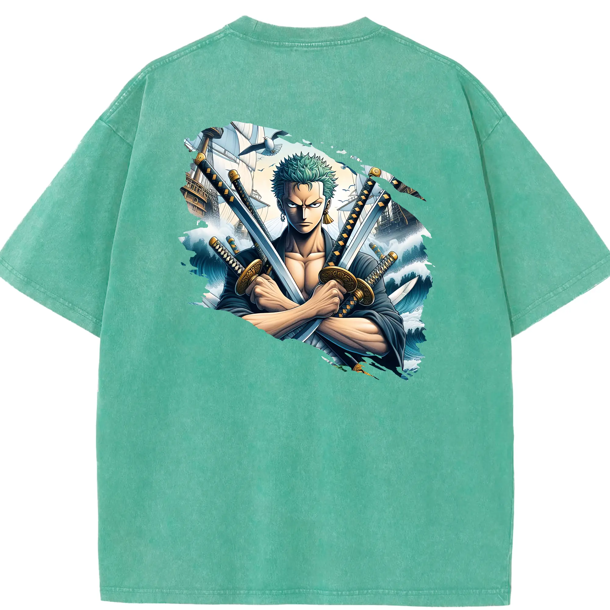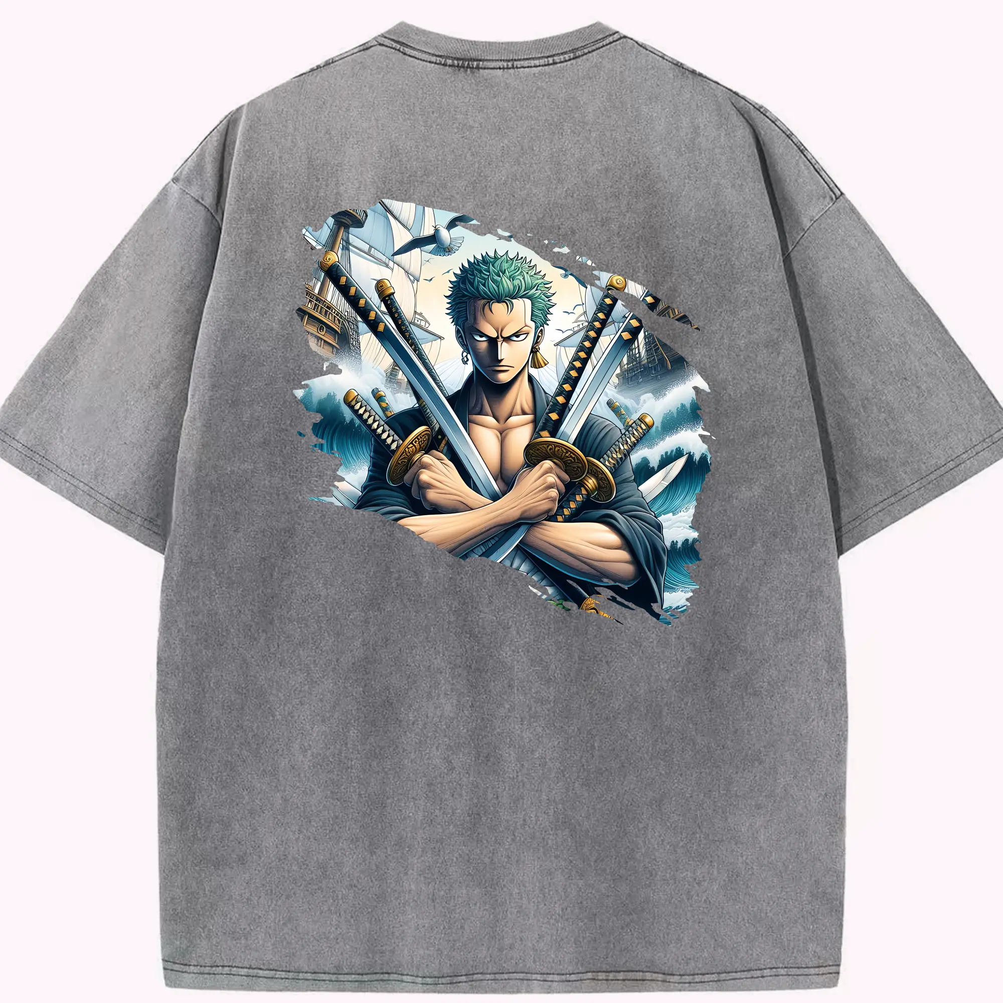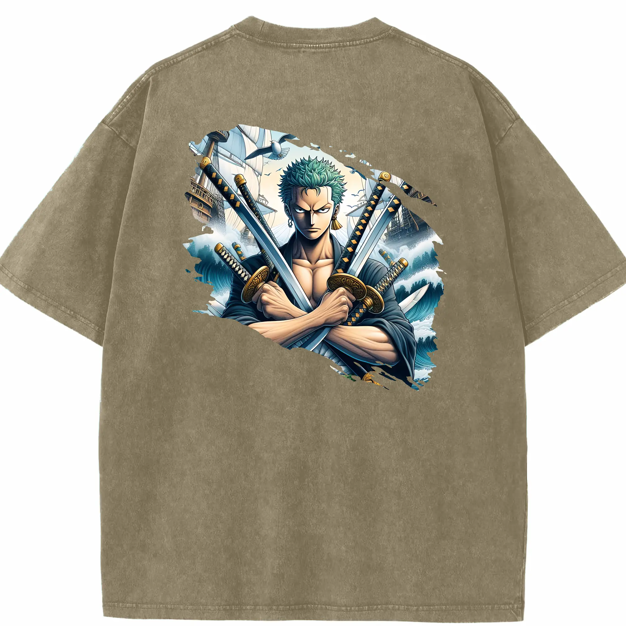 ワンピース グッズ ロロノア・ゾロ - 綿100% ヴィンテージ風 半袖Tシャツ ・ フロントプリント ・ 柔らか肌触り ・ 通気性 快適 ・ スポーツ カジュアル 外出用