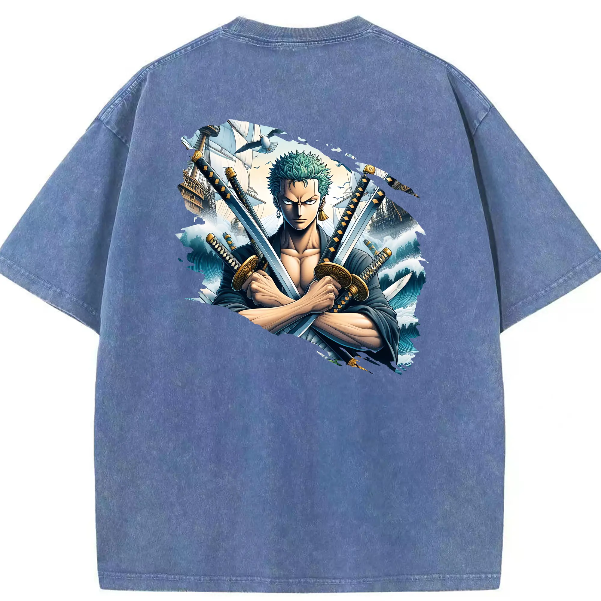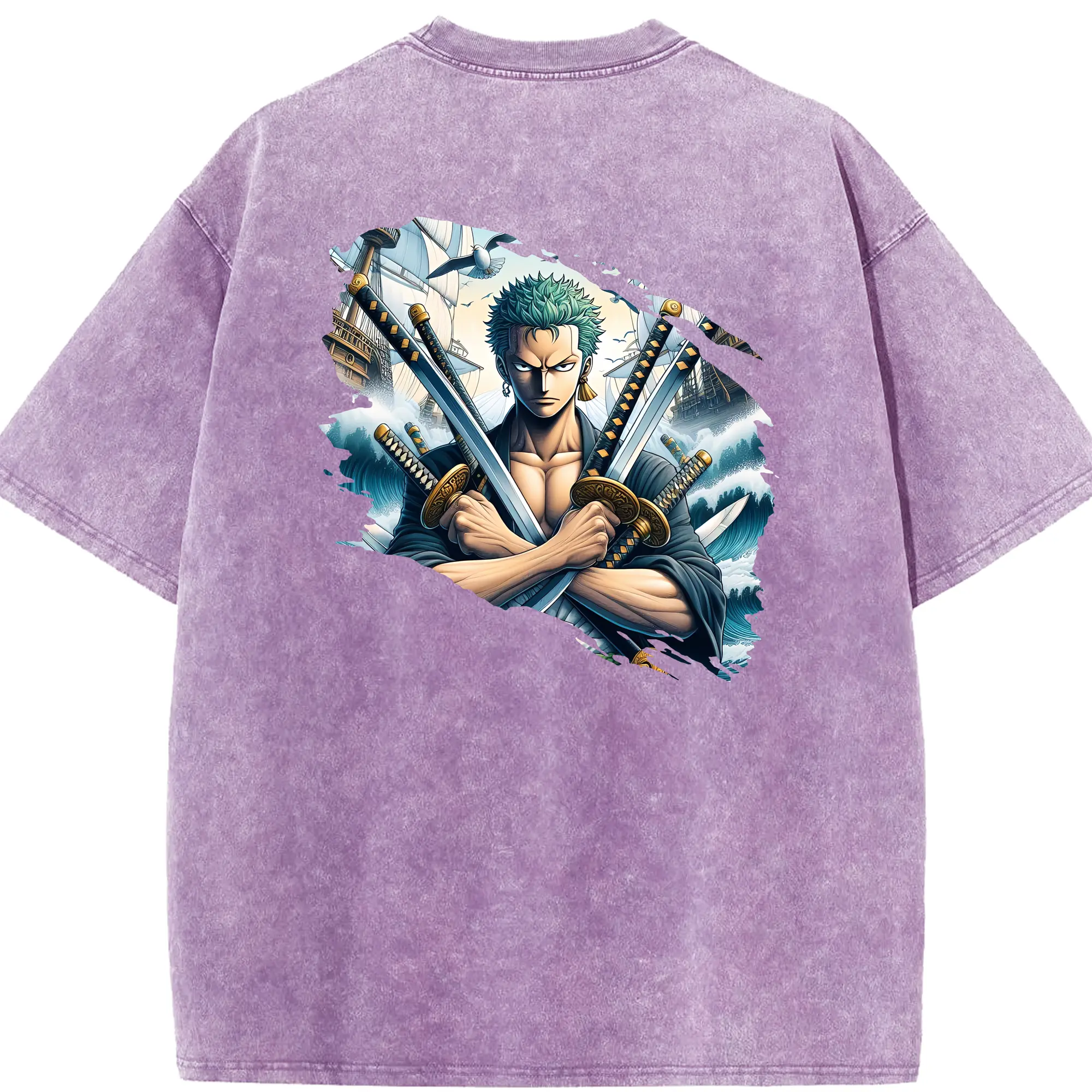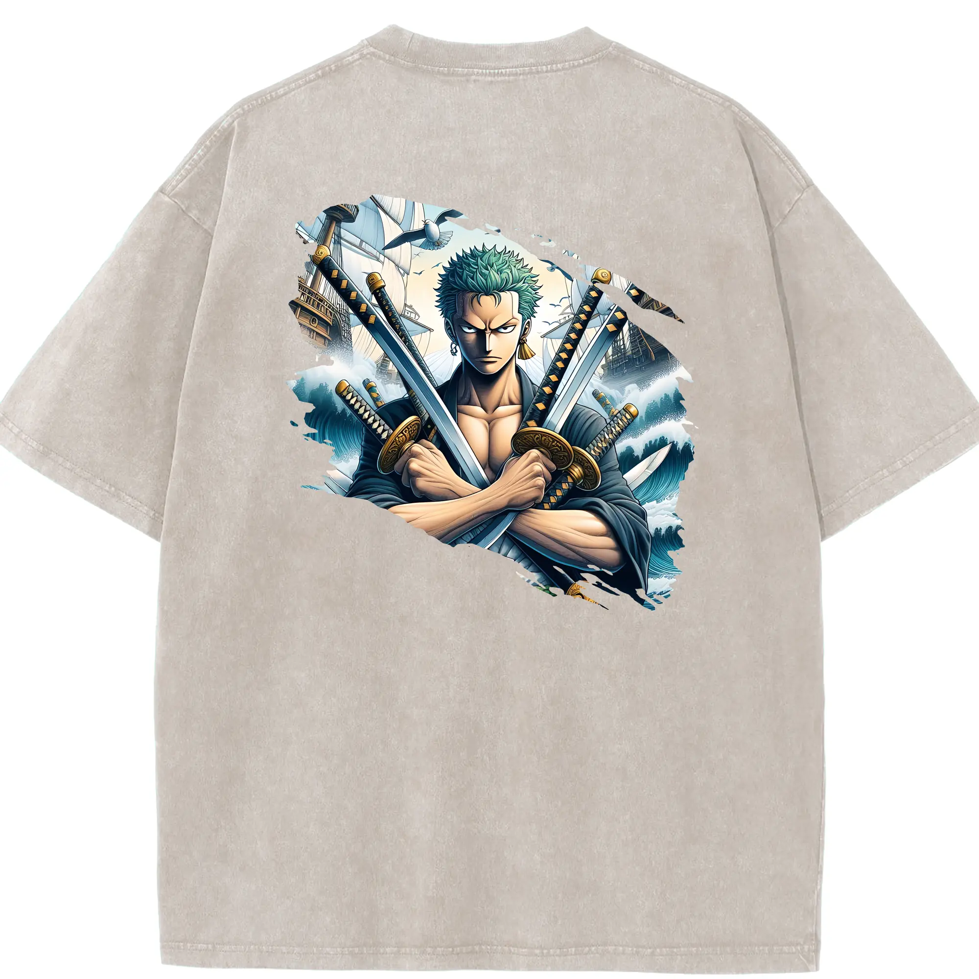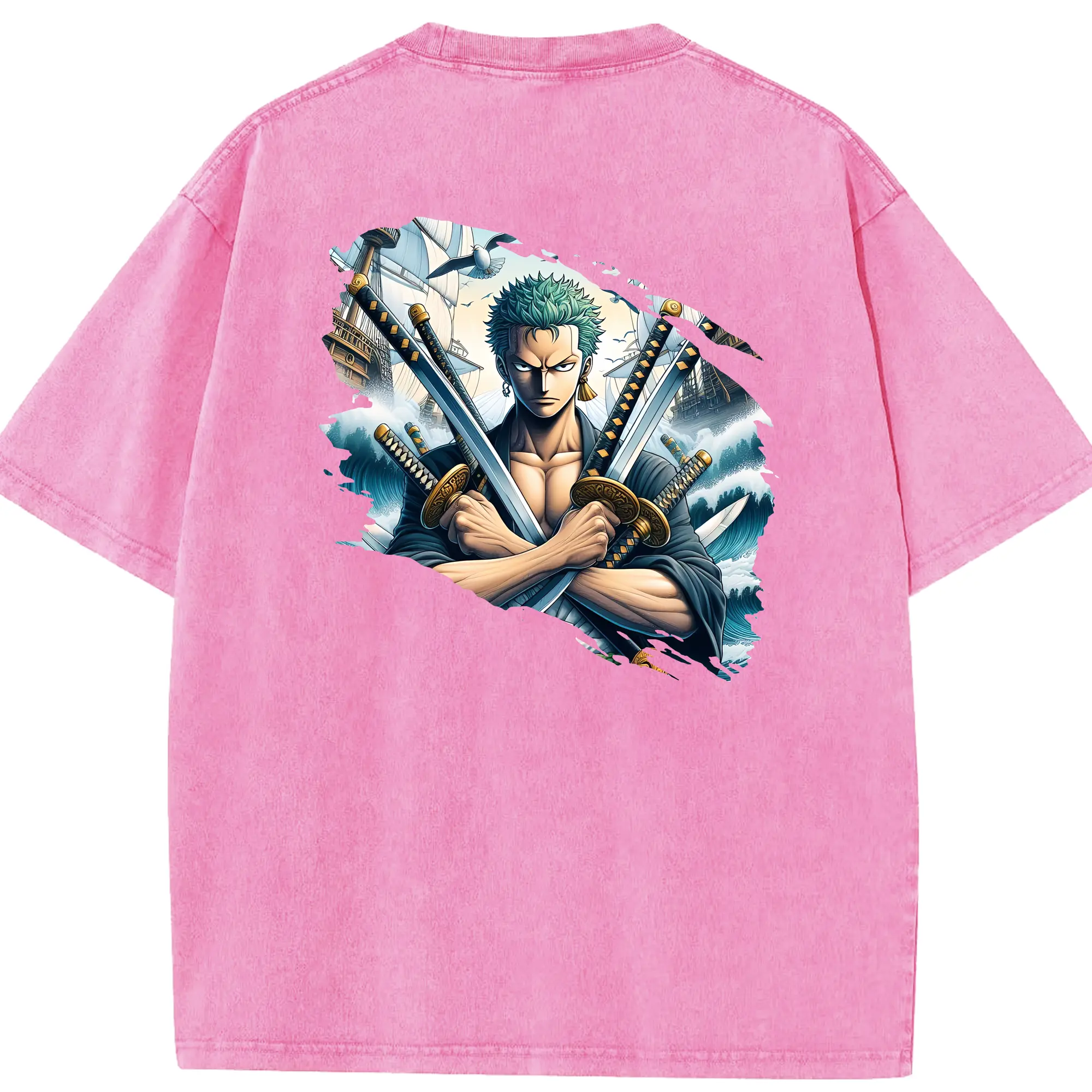 ワンピース グッズ ロロノア・ゾロ - 綿100% ヴィンテージ風 半袖Tシャツ ・ フロントプリント ・ 柔らか肌触り ・ 通気性 快適 ・ スポーツ カジュアル 外出用