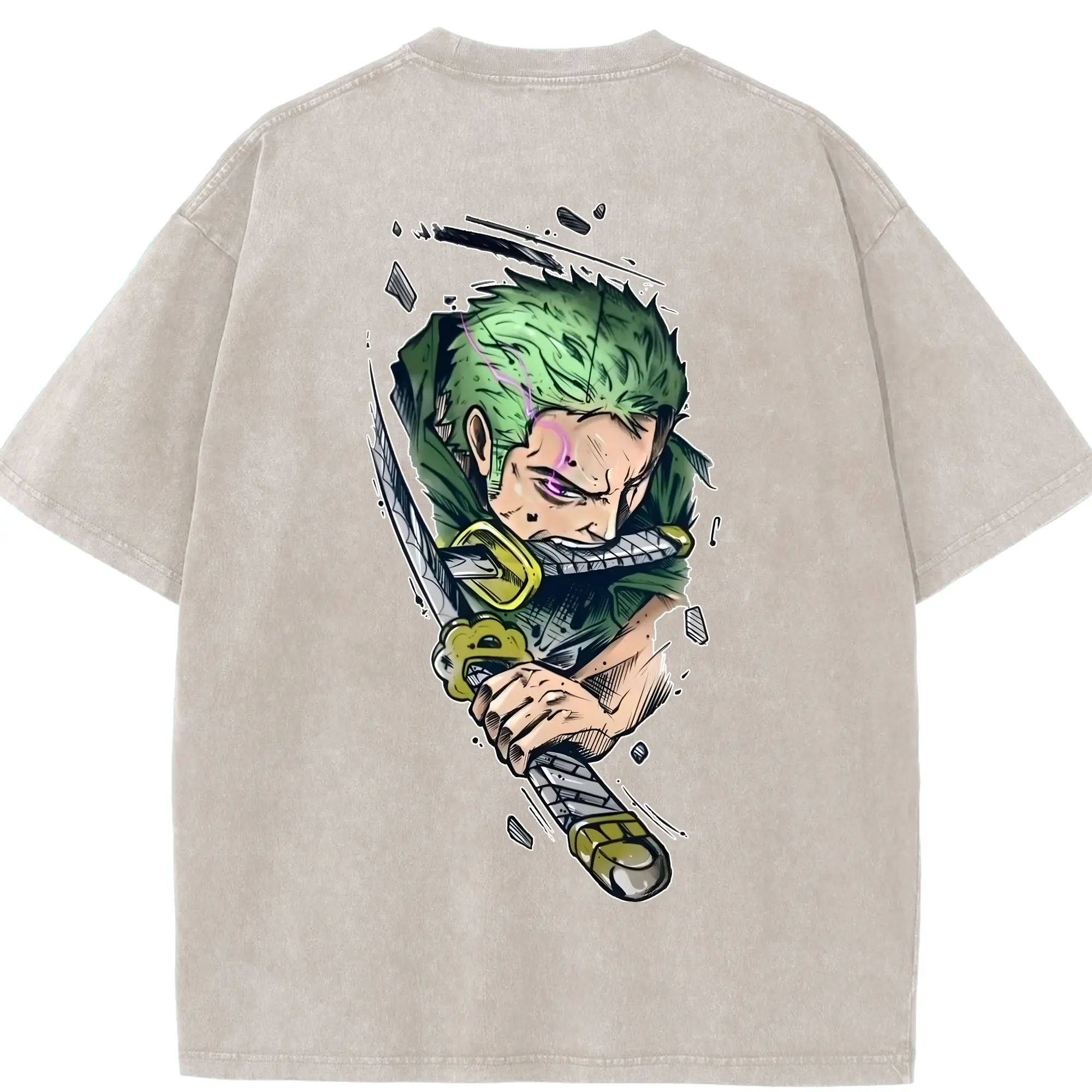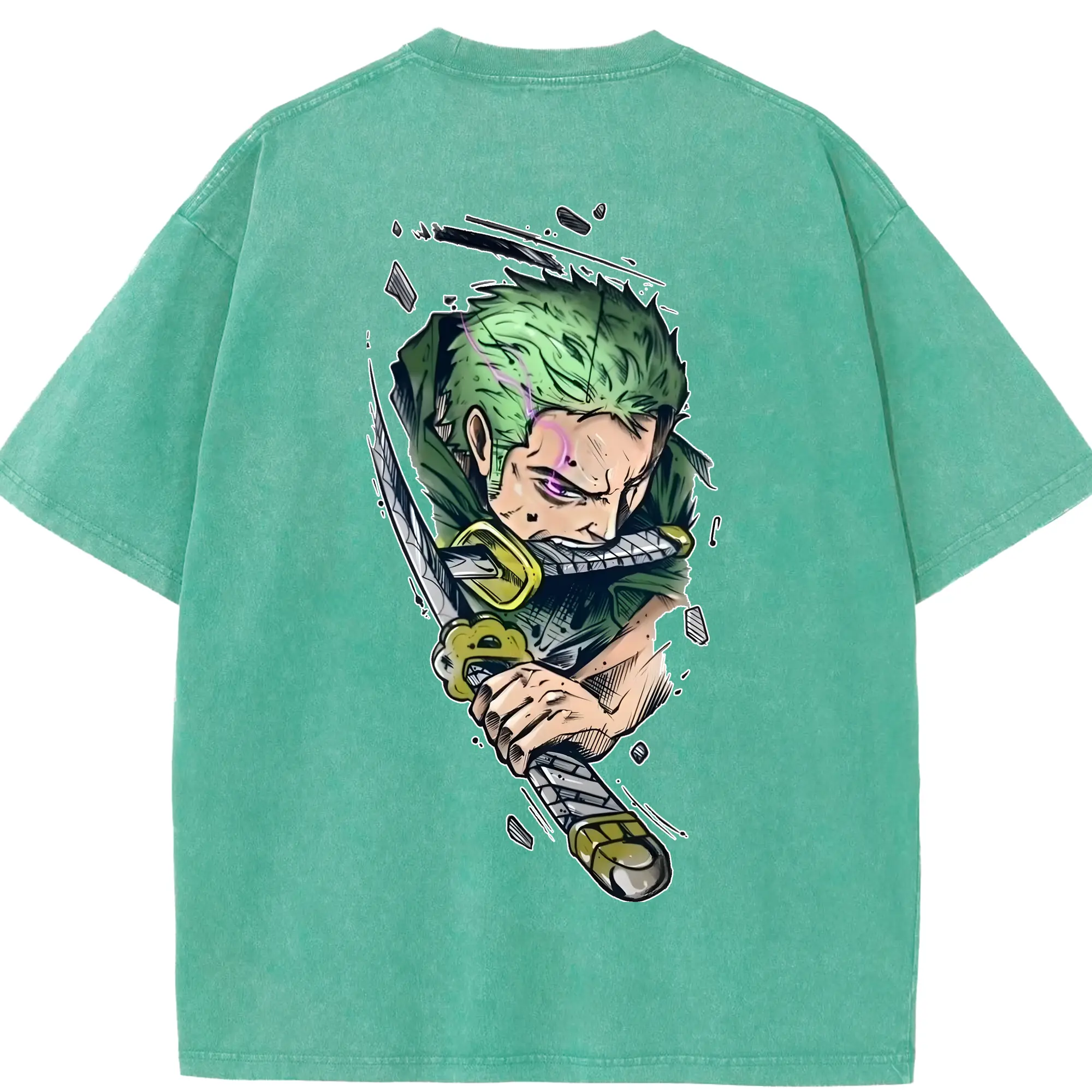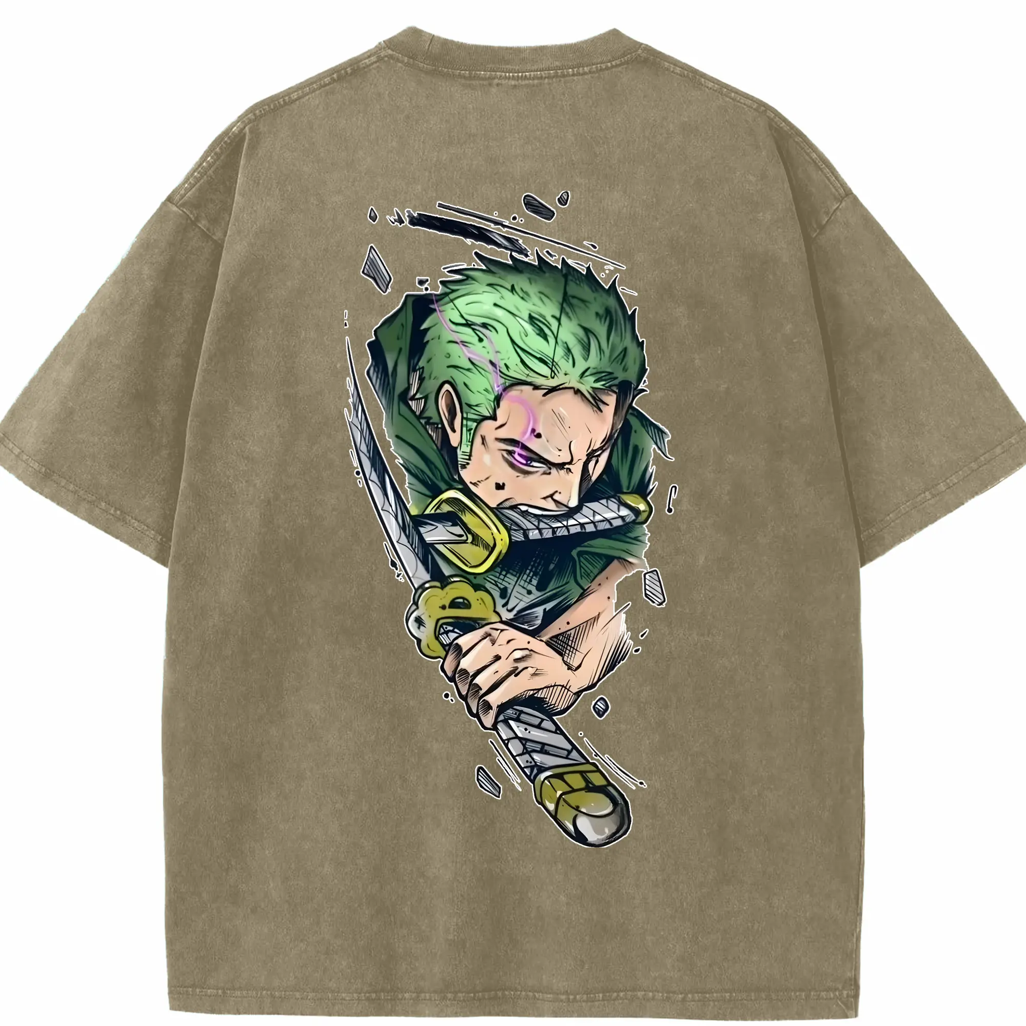 ワンピース グッズ ロロノア・ゾロ - 綿100% ヴィンテージ風 半袖Tシャツ ・ フロントプリント ・ 柔らか肌触り ・ 通気性 快適 ・ スポーツ カジュアル 外出用