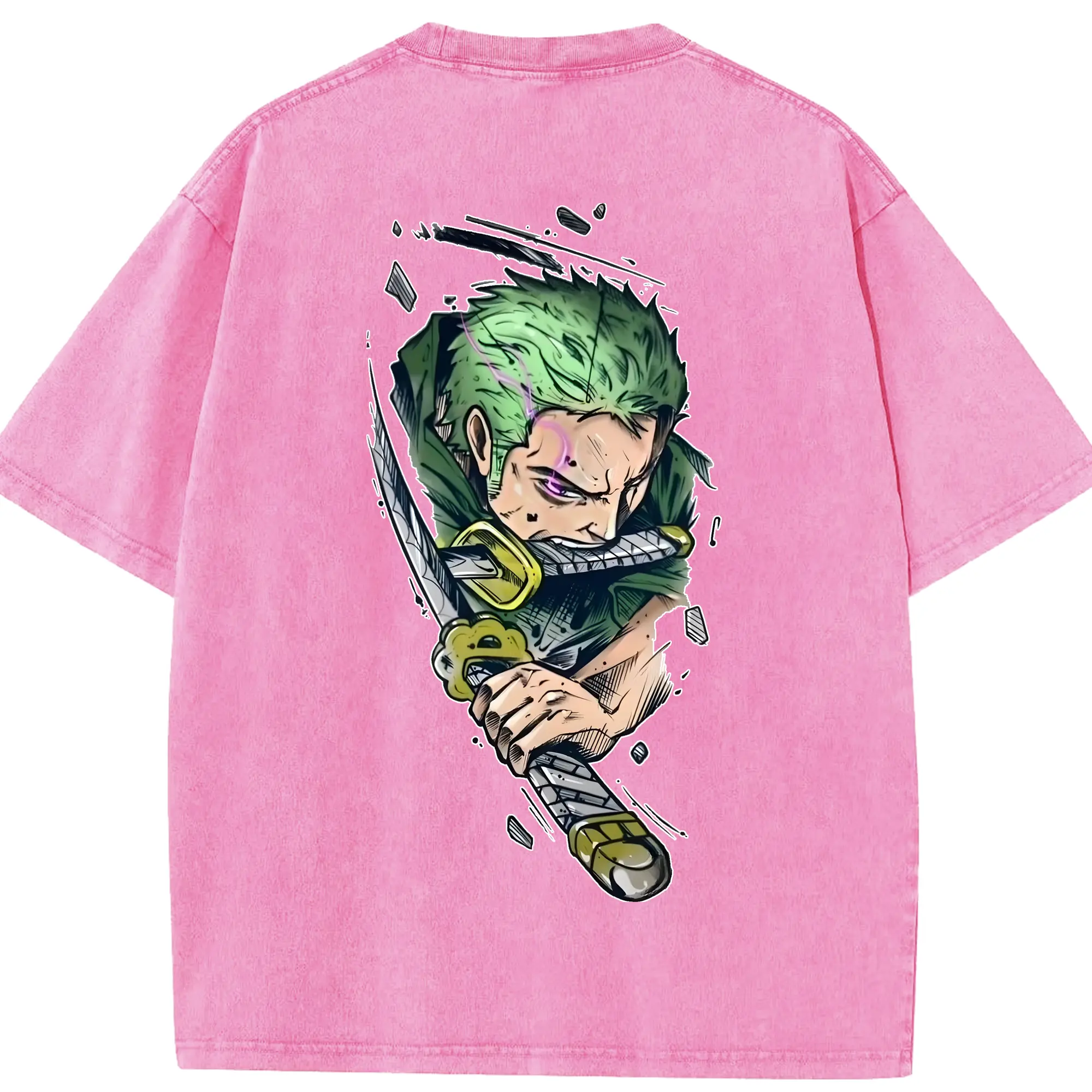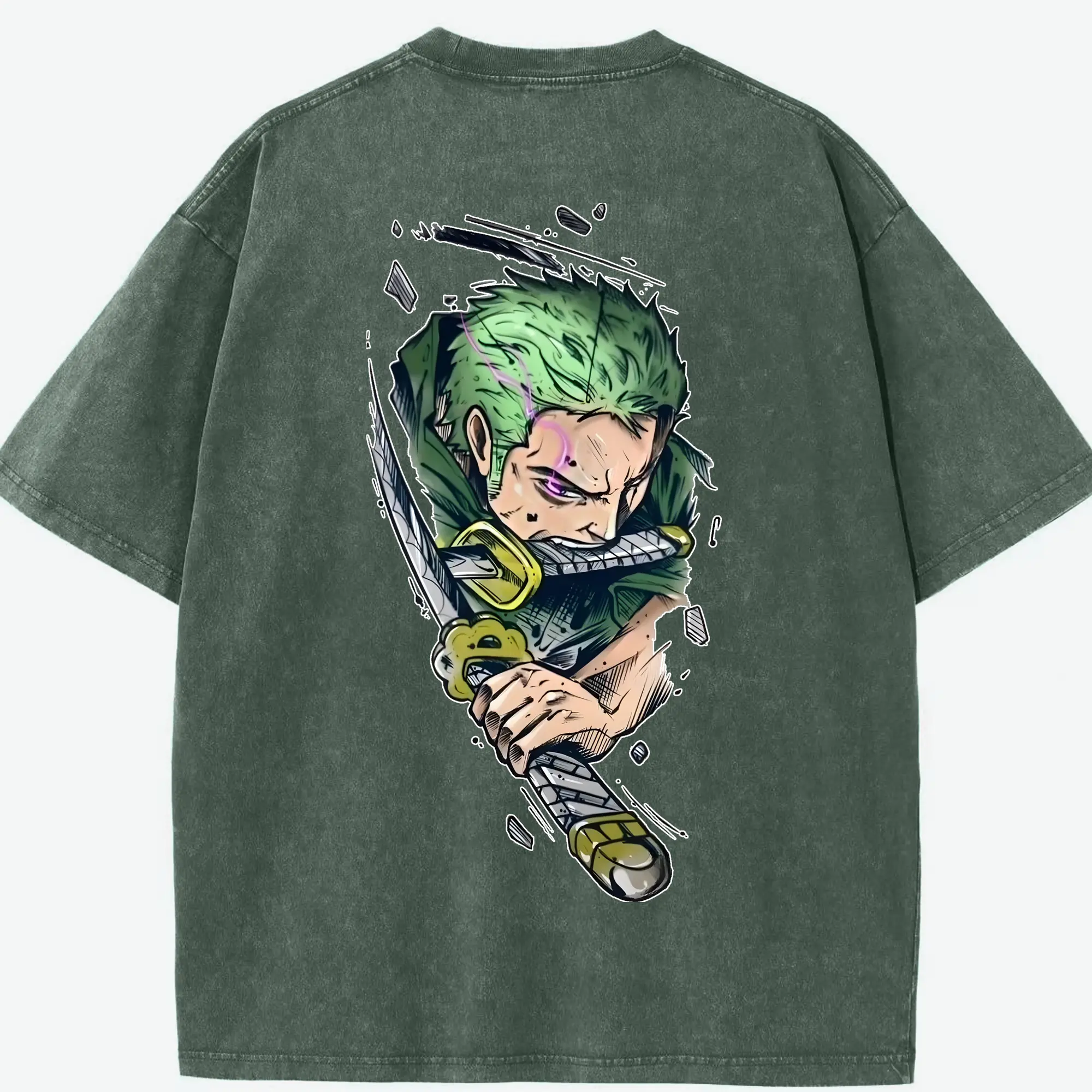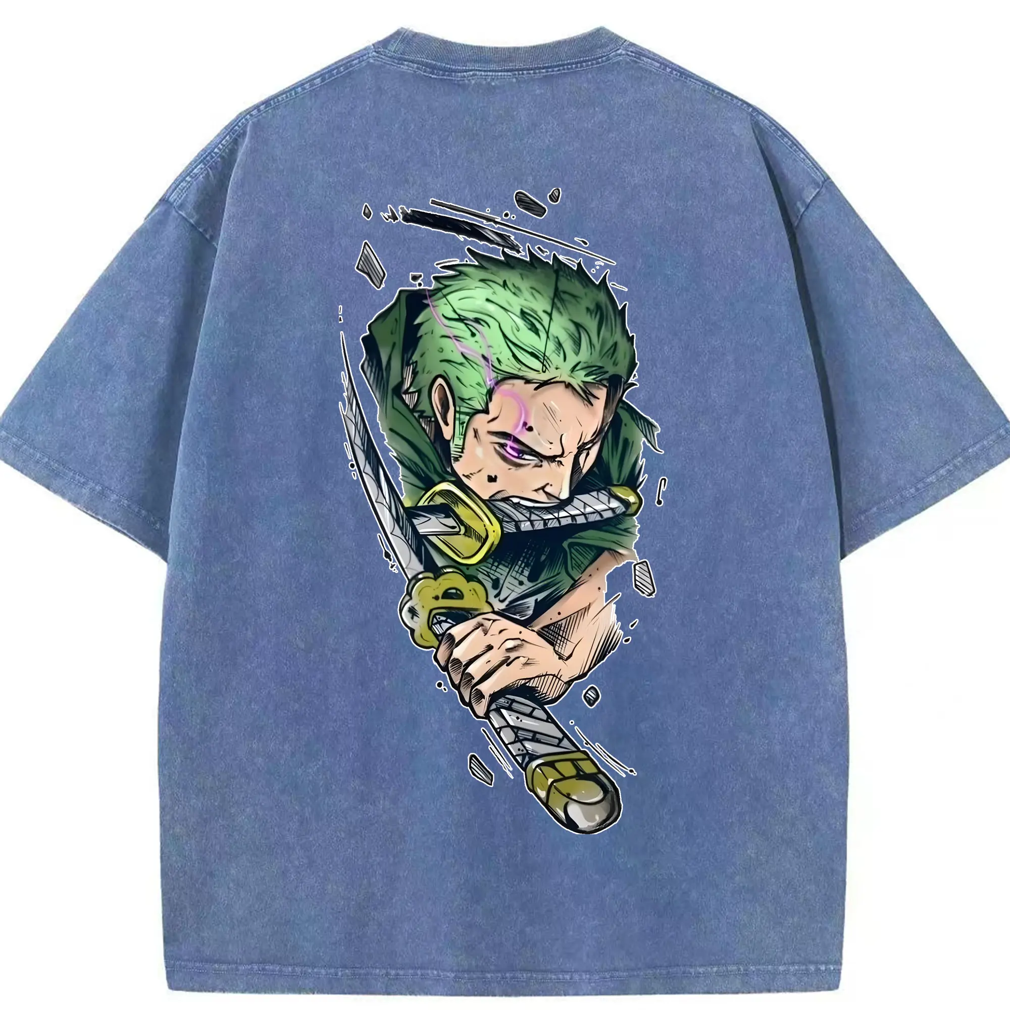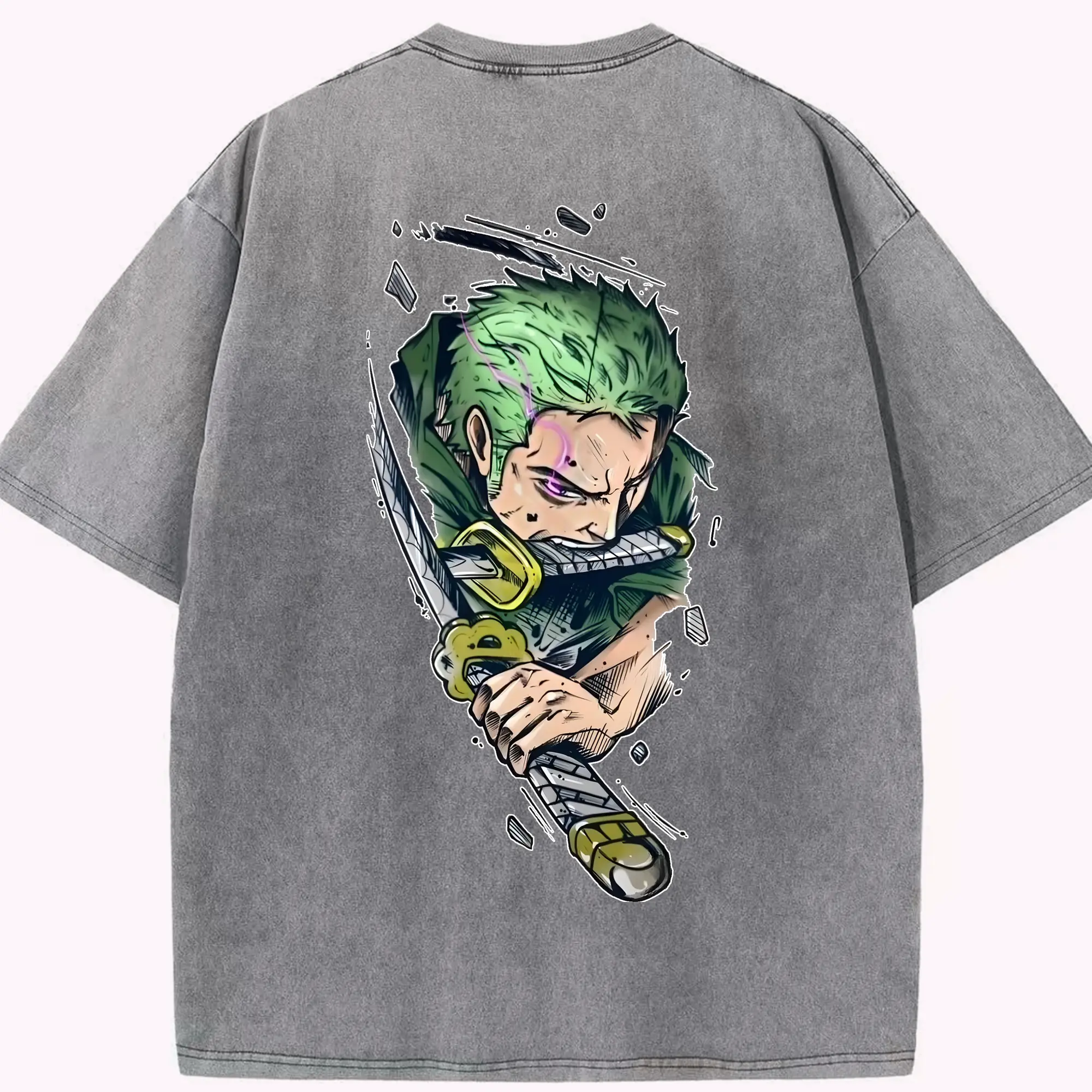 ワンピース グッズ ロロノア・ゾロ - 綿100% ヴィンテージ風 半袖Tシャツ ・ フロントプリント ・ 柔らか肌触り ・ 通気性 快適 ・ スポーツ カジュアル 外出用