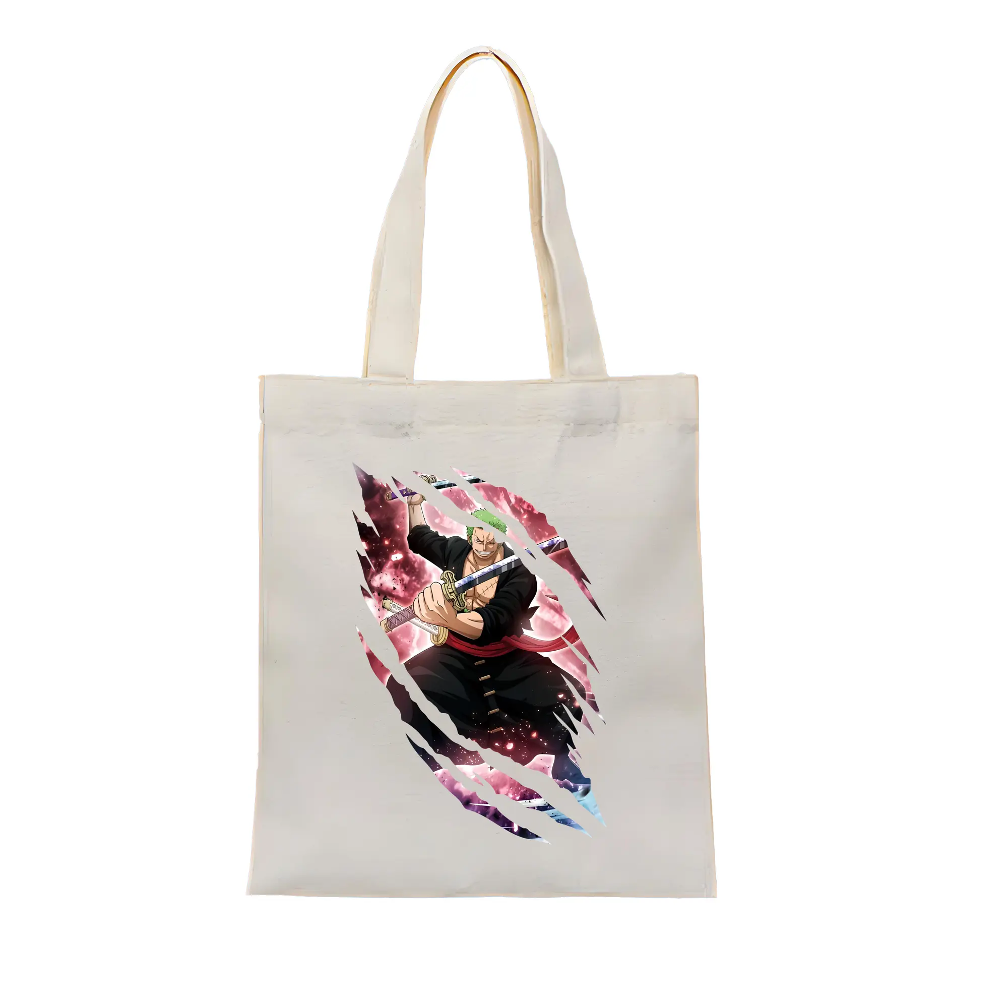 ワンピース グッズ ロロノア・ゾロ - 縦型キャンバス手提げバッグ(トートバッグ) ・ キャンバス素材 ・ ショッピング用 ・ 軽量 丈夫 お手入れ簡単