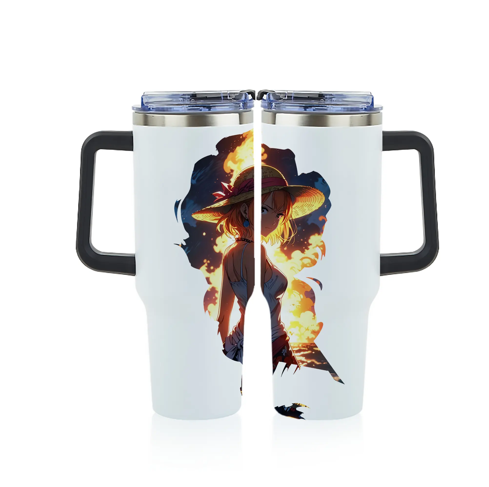 ワンピース グッズ ナミ - 1200mL フルプリント車用タンブラー ・ 304ステンレス 内側 ・ 201ステンレス 外側 ・ 保温 保冷 ・ 通勤 ドライブ アウトドア用