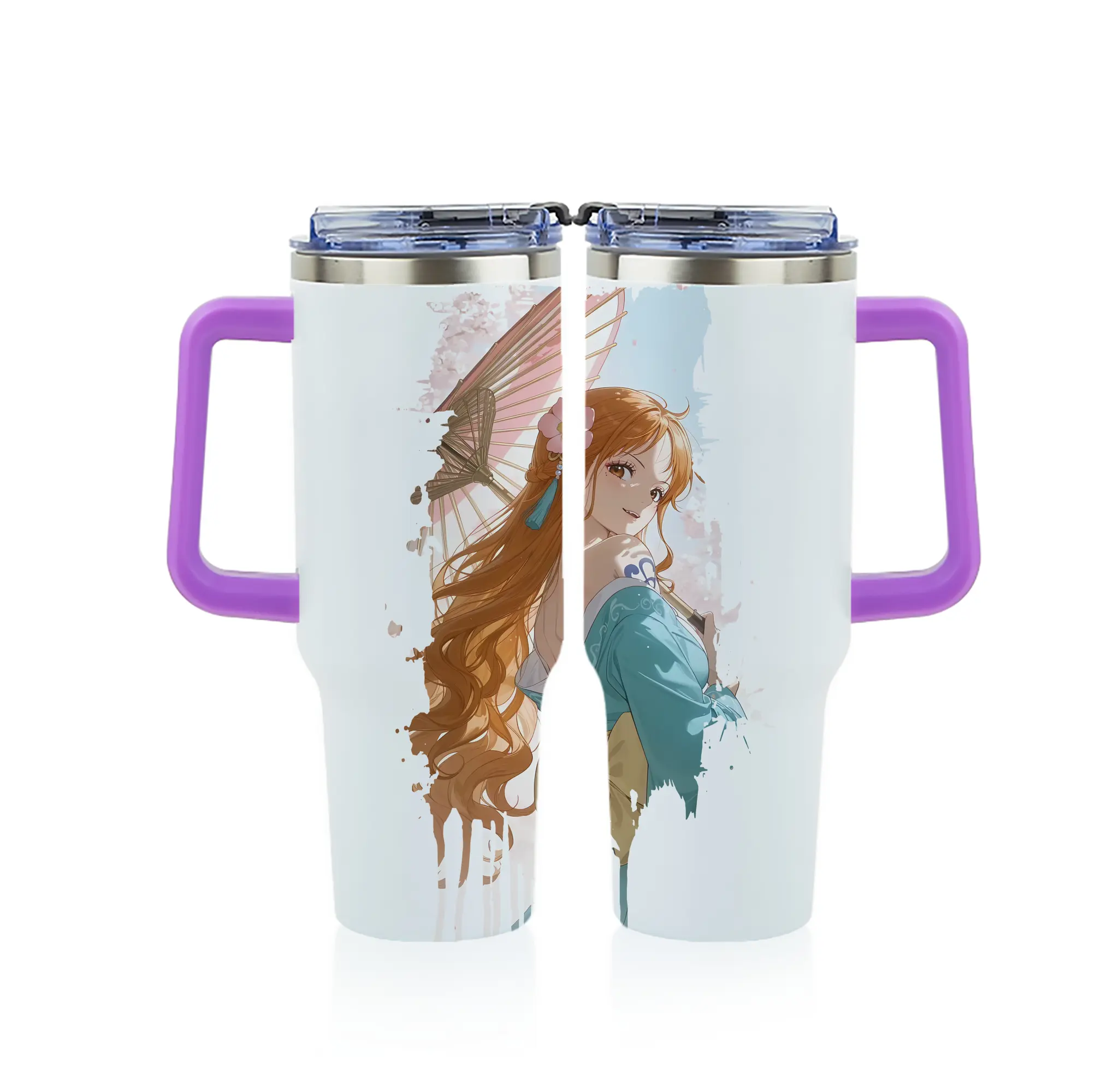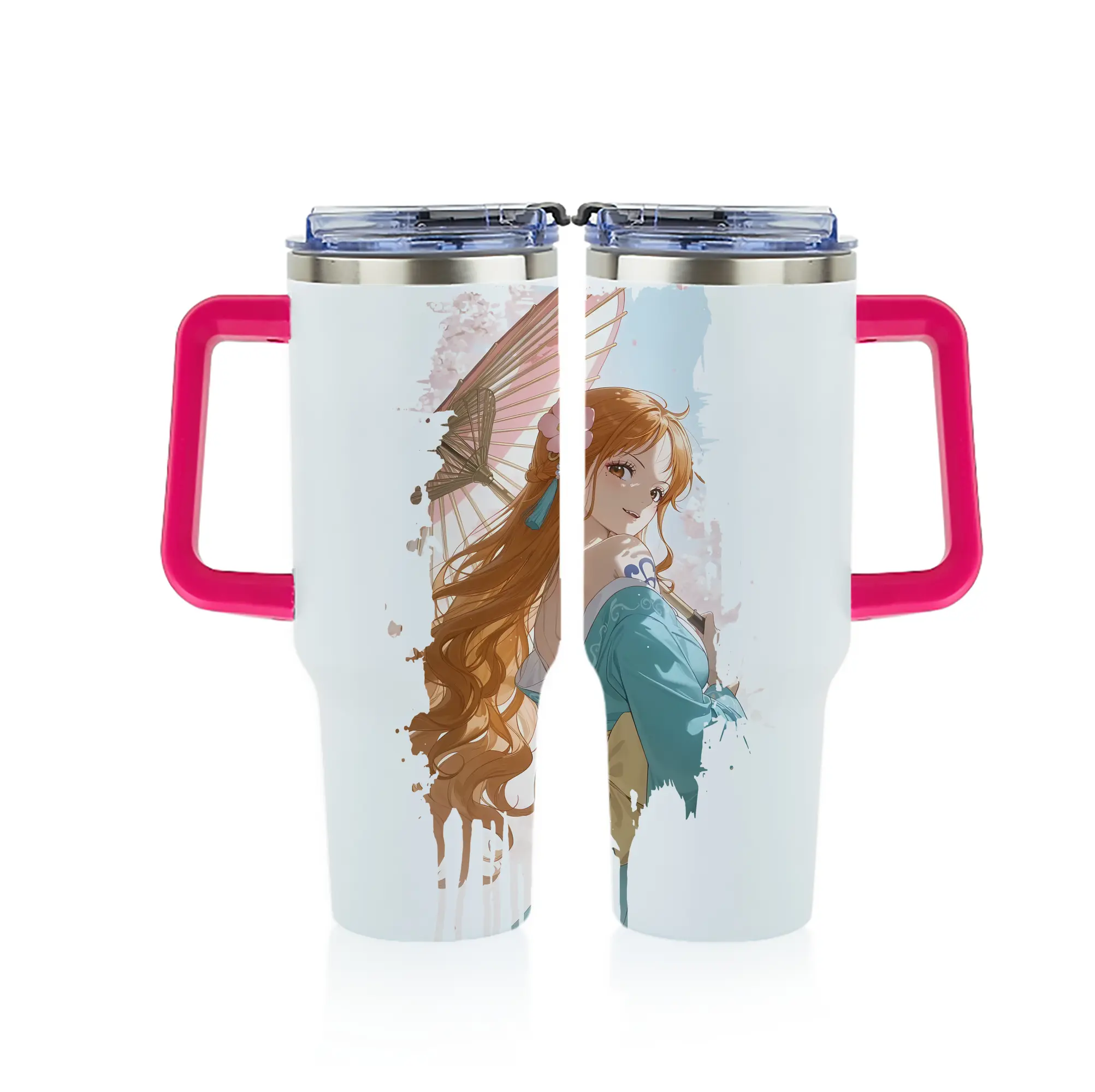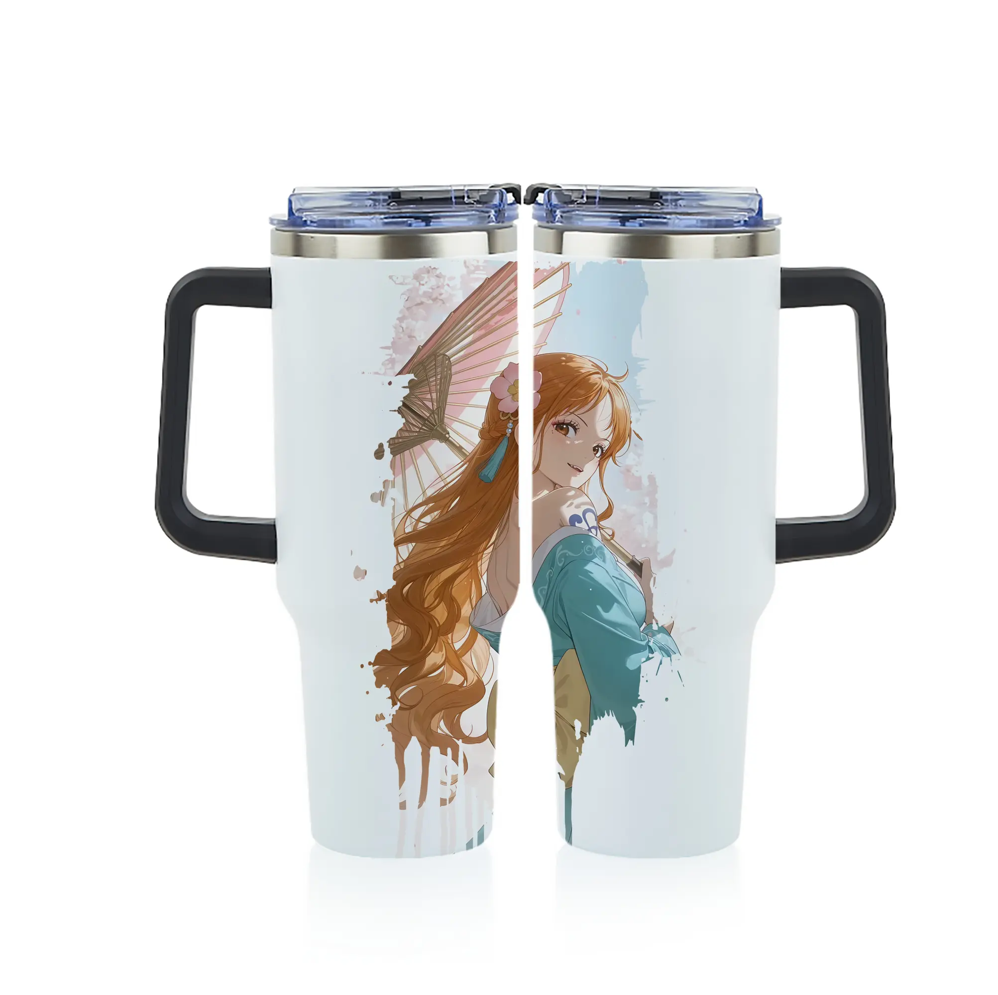 ワンピース グッズ ナミ - 1200mL フルプリント車用タンブラー ・ 304ステンレス 内側 ・ 201ステンレス 外側 ・ 保温 保冷 ・ 通勤 ドライブ アウトドア用