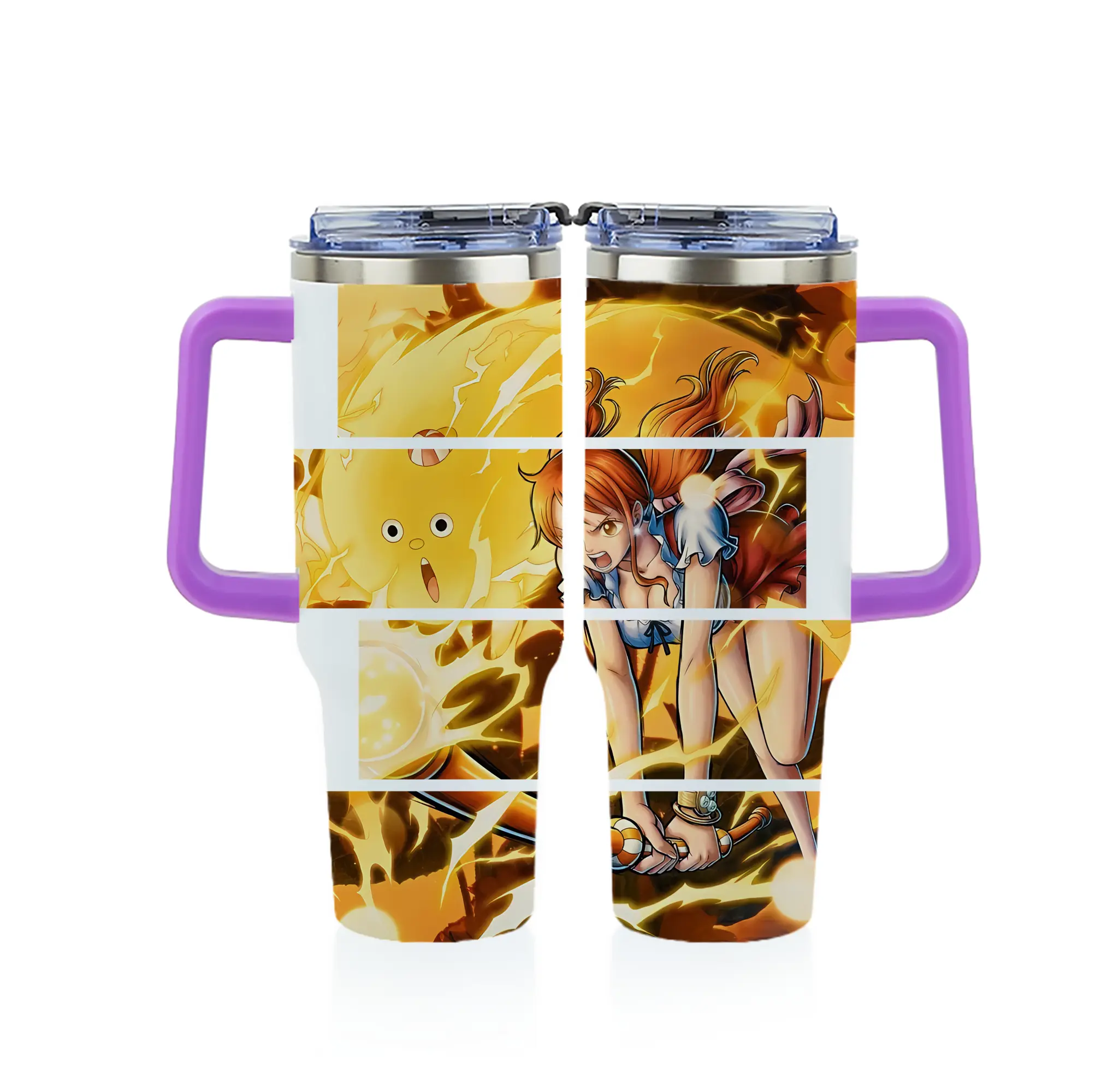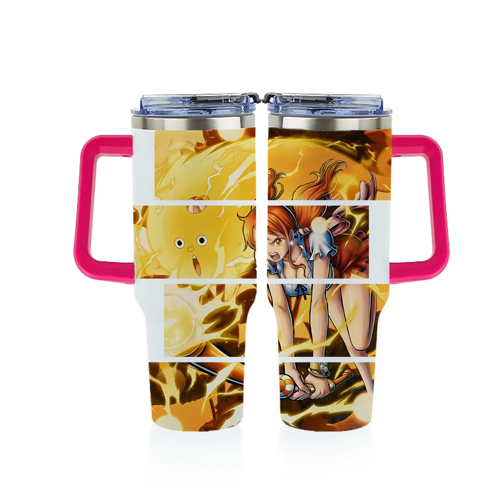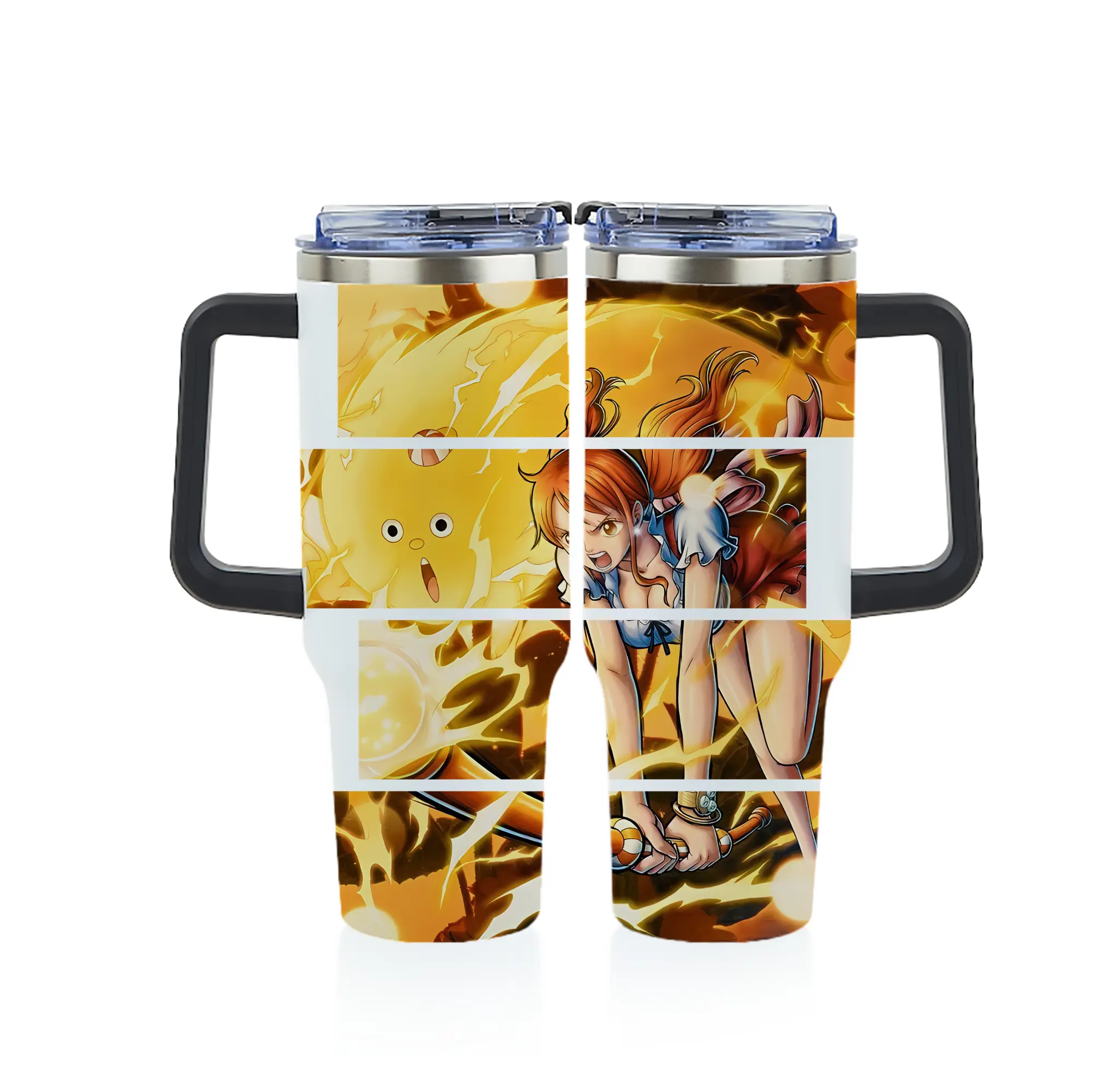 ワンピース グッズ ナミ - 1200mL フルプリント車用タンブラー ・ 304ステンレス 内側 ・ 201ステンレス 外側 ・ 保温 保冷 ・ 通勤 ドライブ アウトドア用