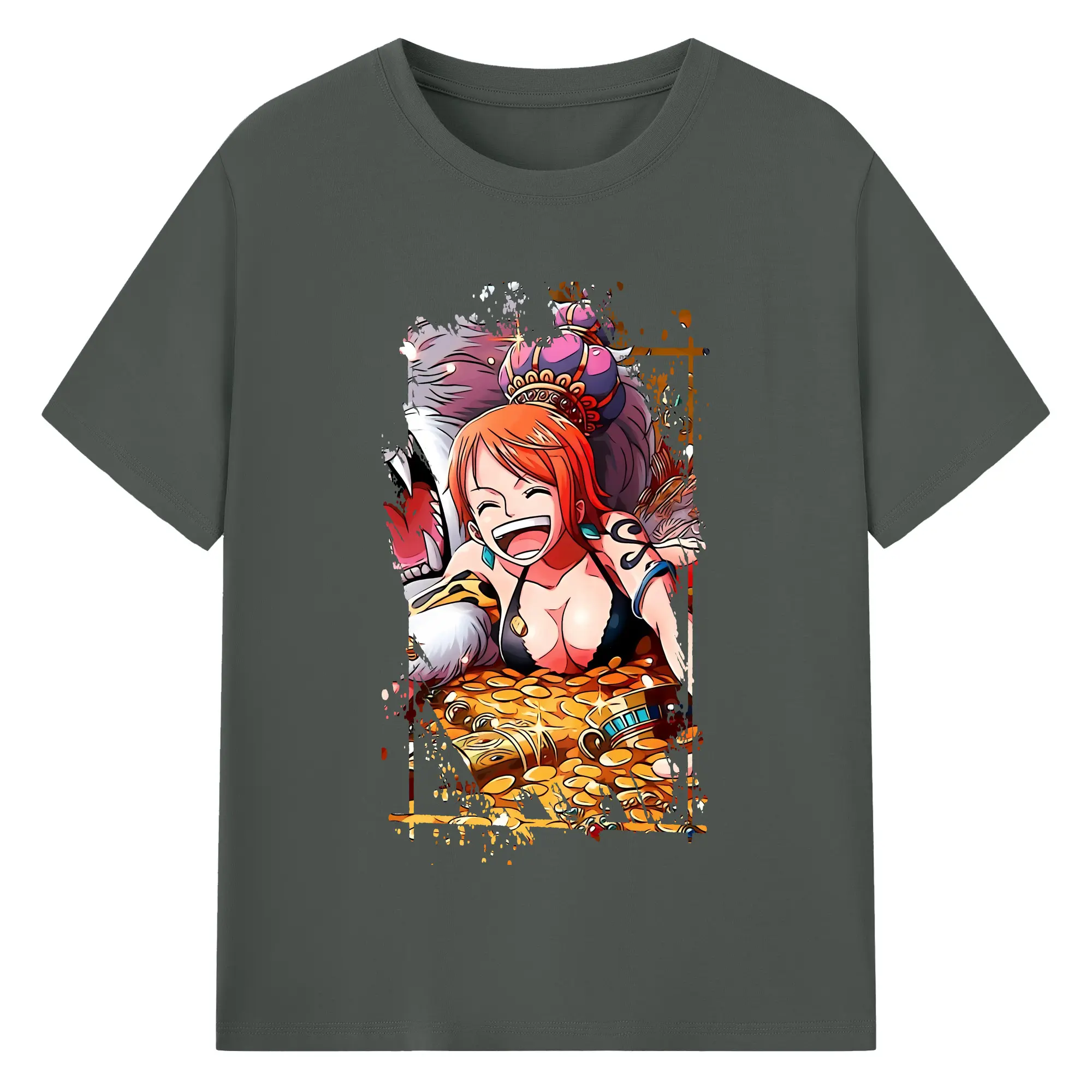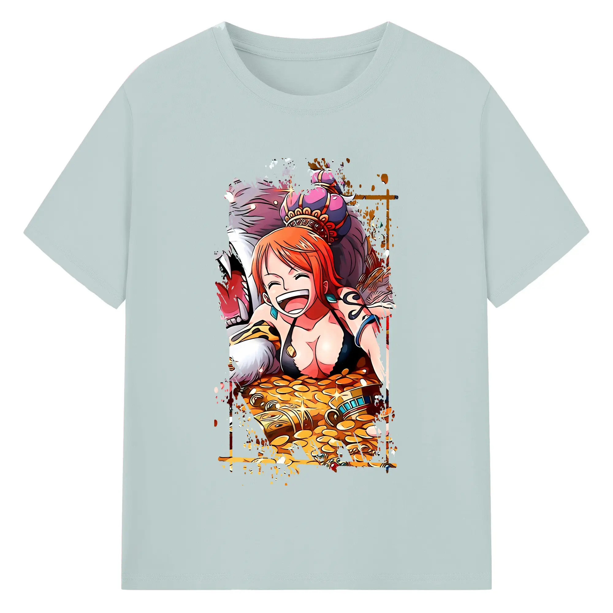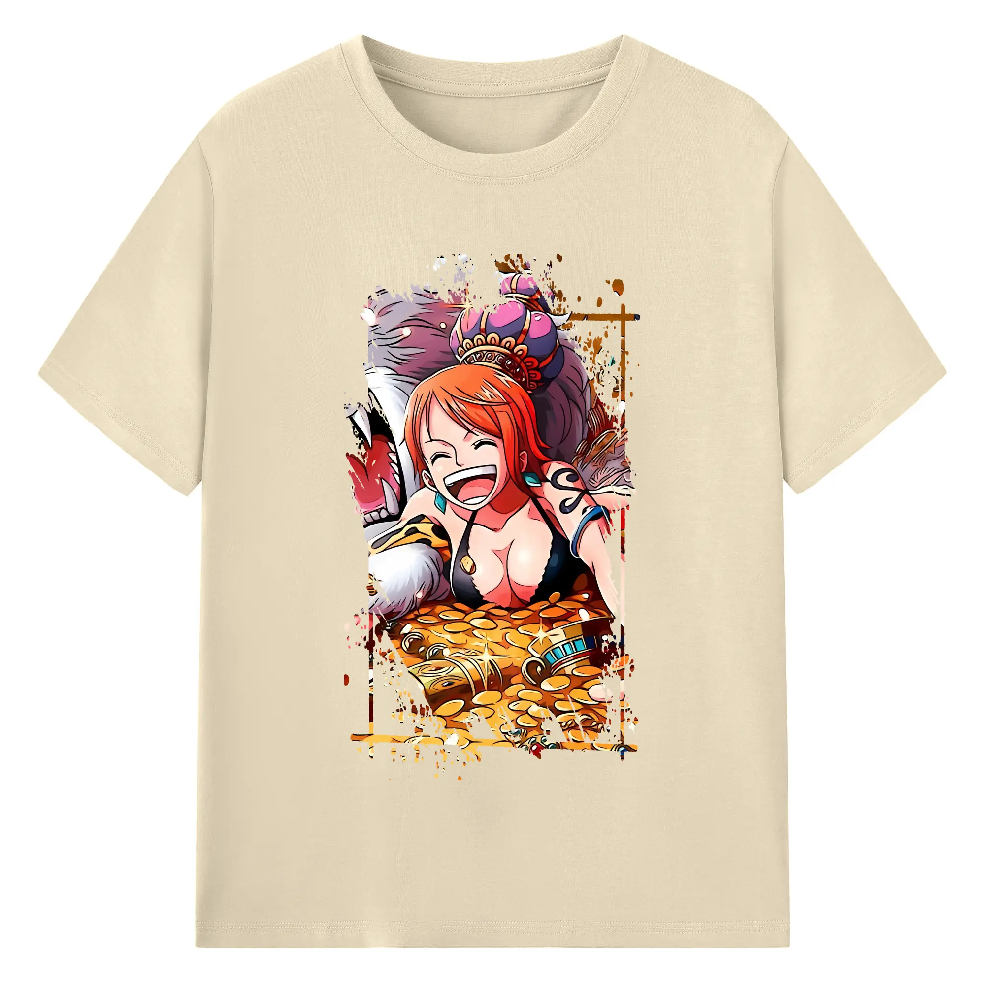 ワンピース グッズ ナミ - 綿100% ヴィンテージ風 半袖Tシャツ ・ フロントプリント ・ 柔らか肌触り ・ 通気性 快適 ・ スポーツ カジュアル 外出用