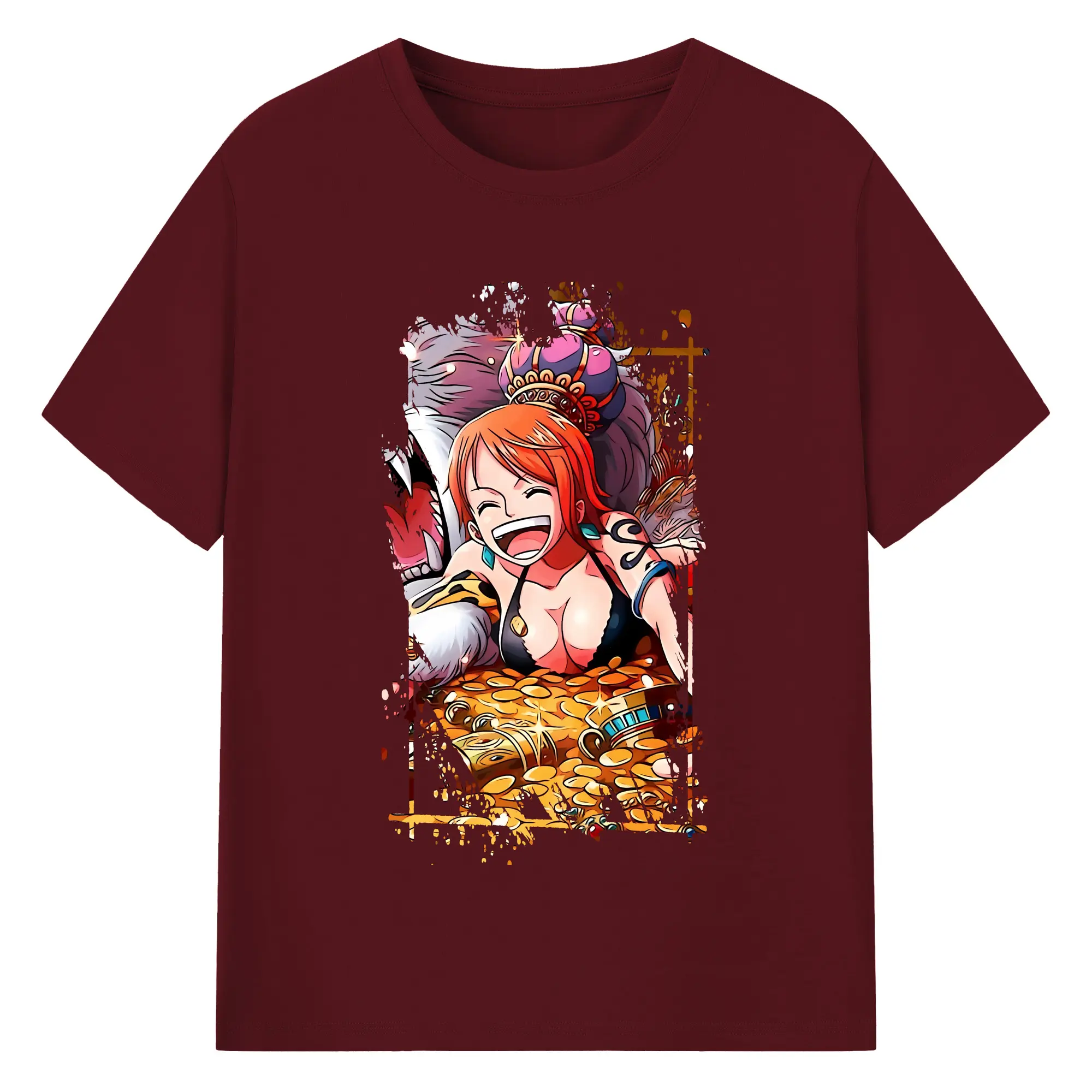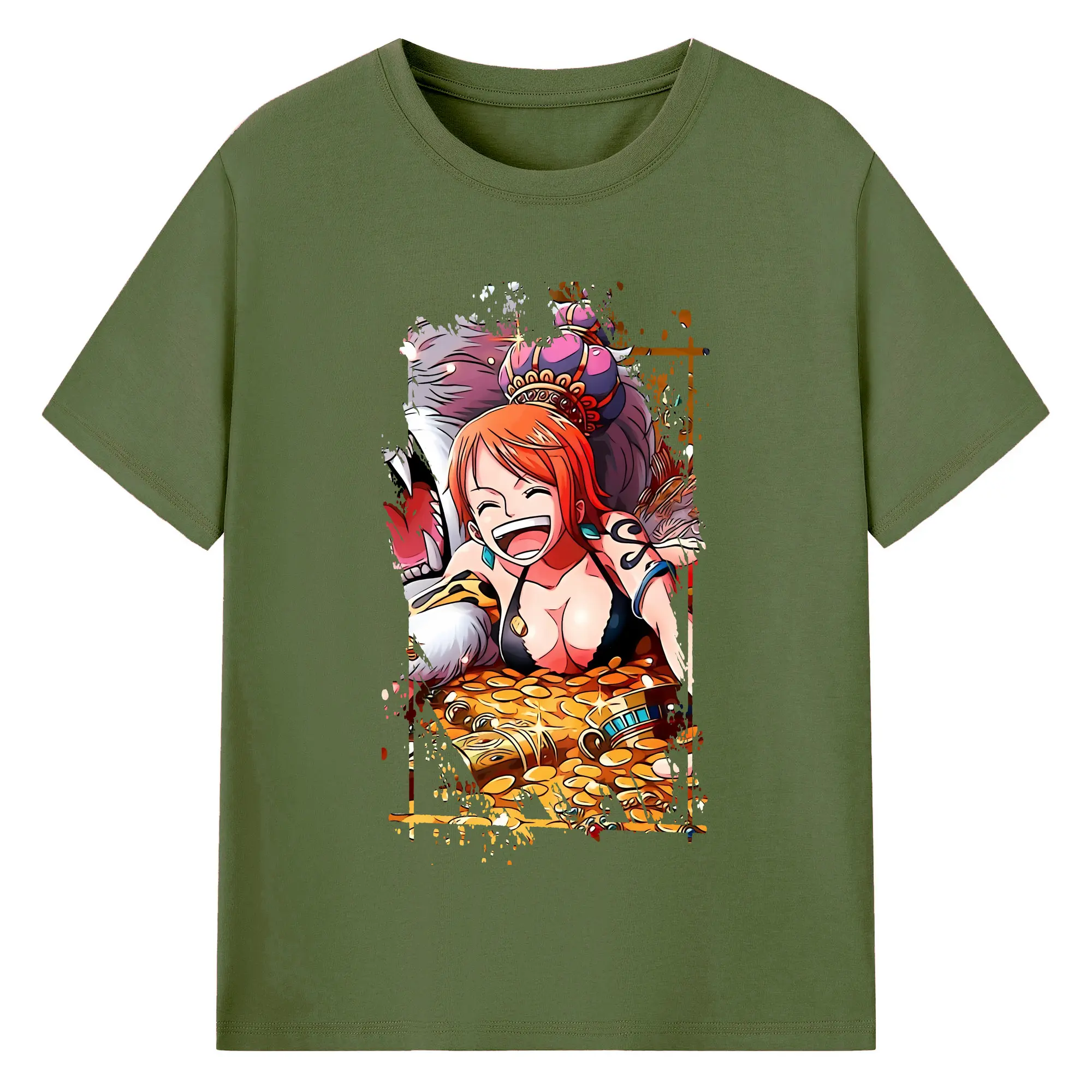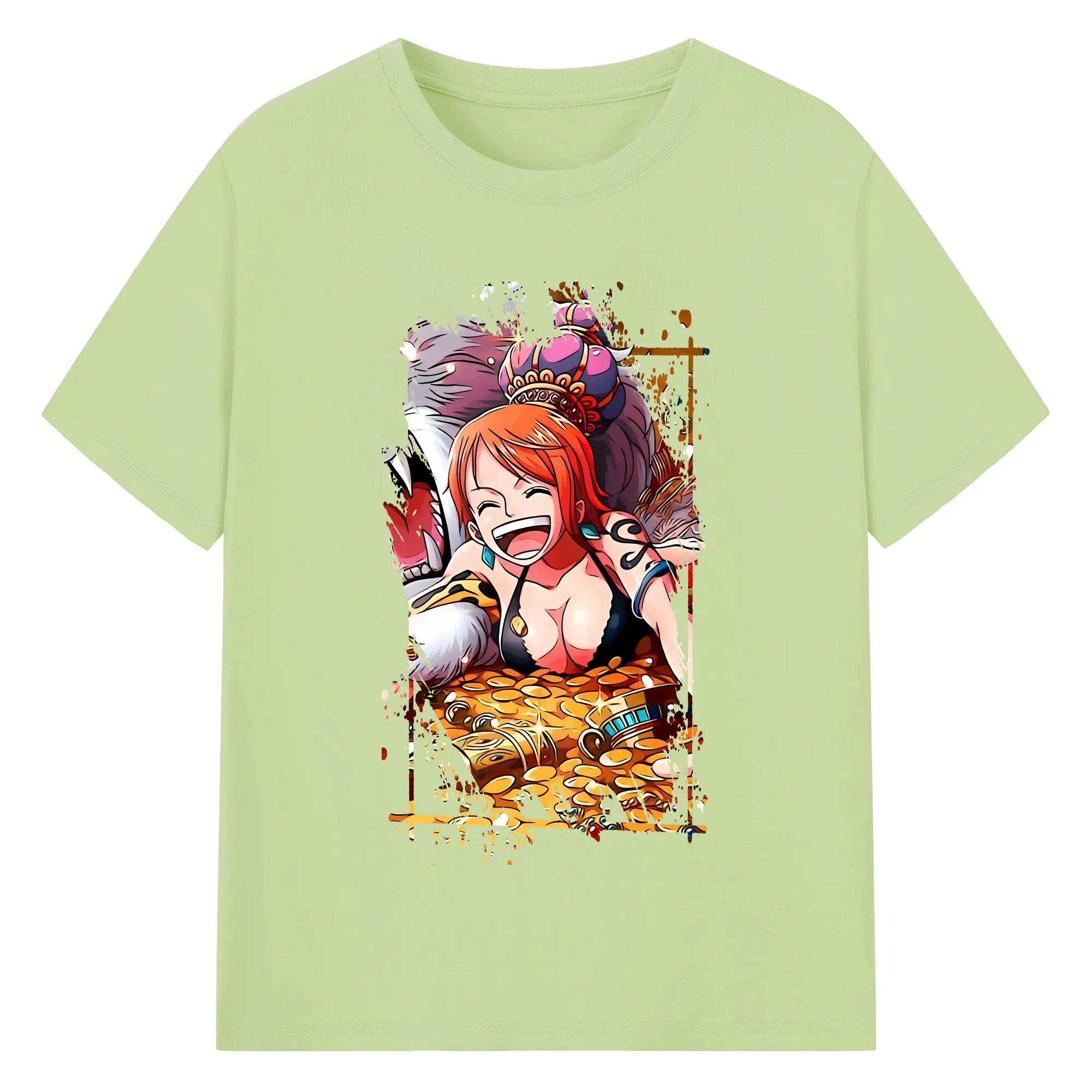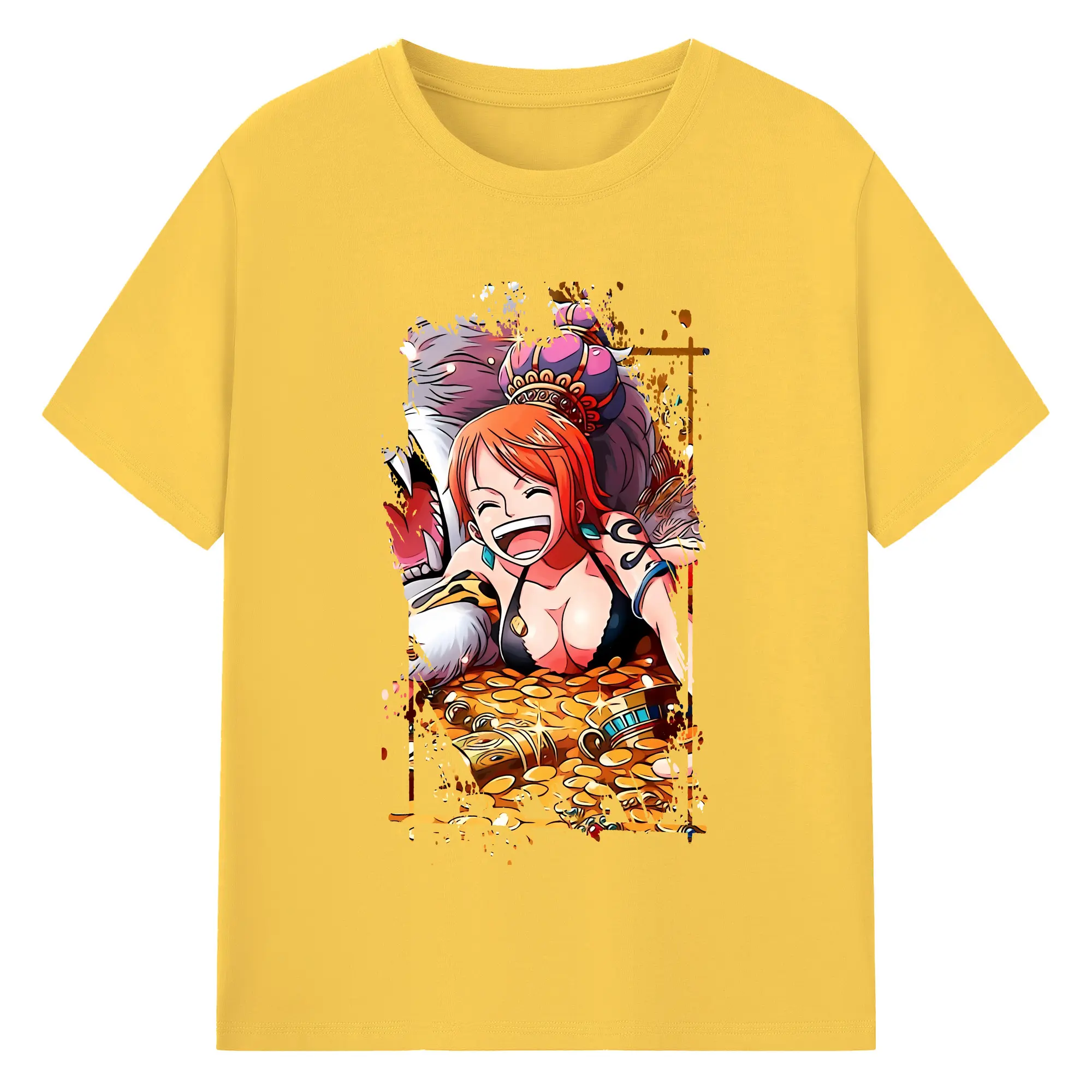 ワンピース グッズ ナミ - 綿100% ヴィンテージ風 半袖Tシャツ ・ フロントプリント ・ 柔らか肌触り ・ 通気性 快適 ・ スポーツ カジュアル 外出用