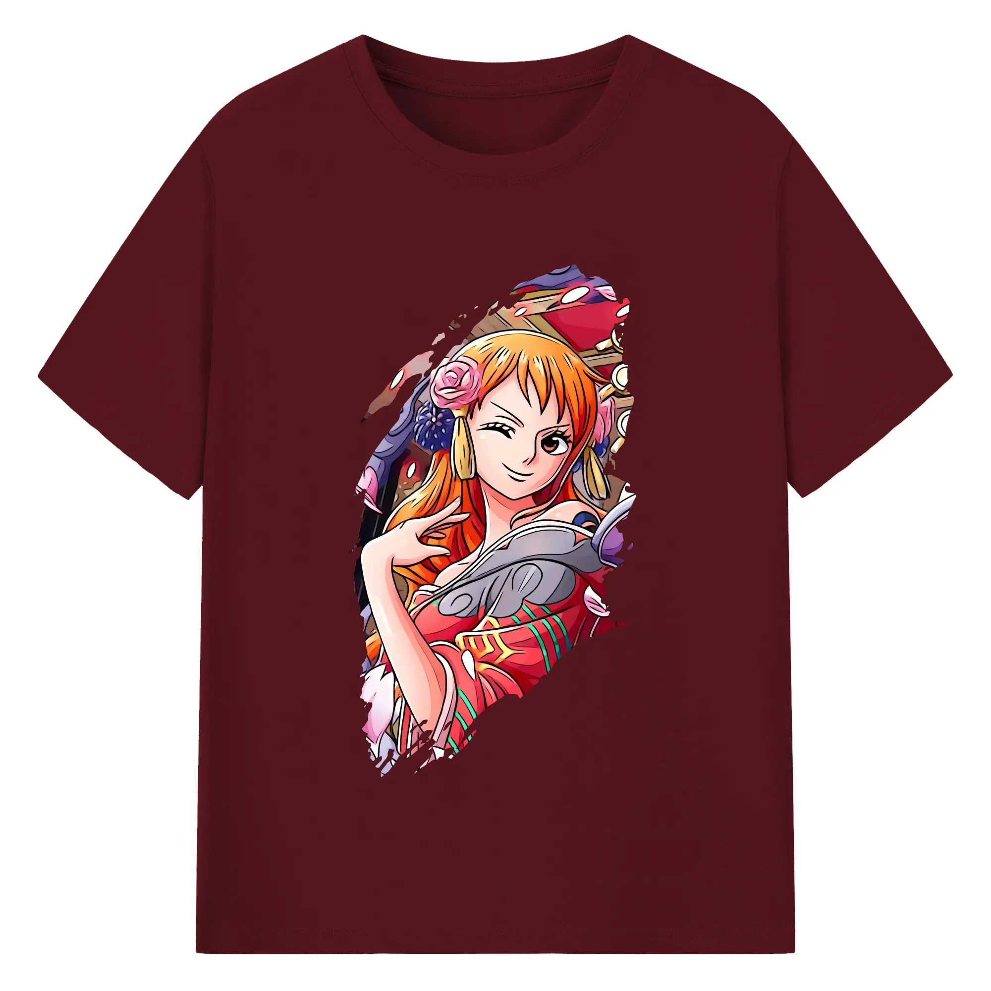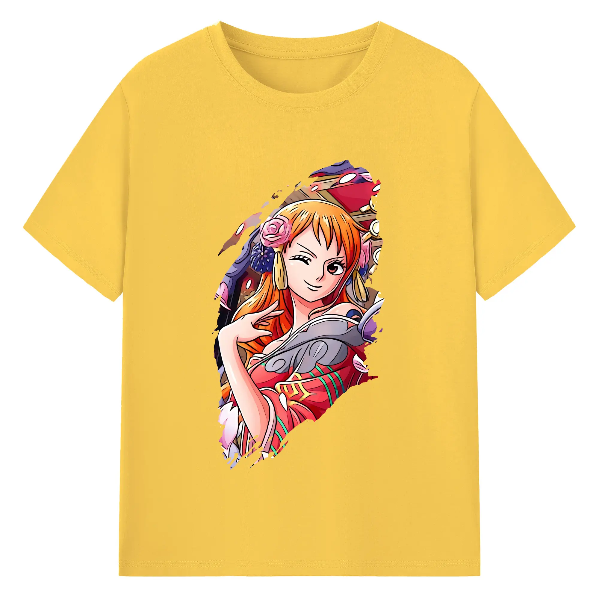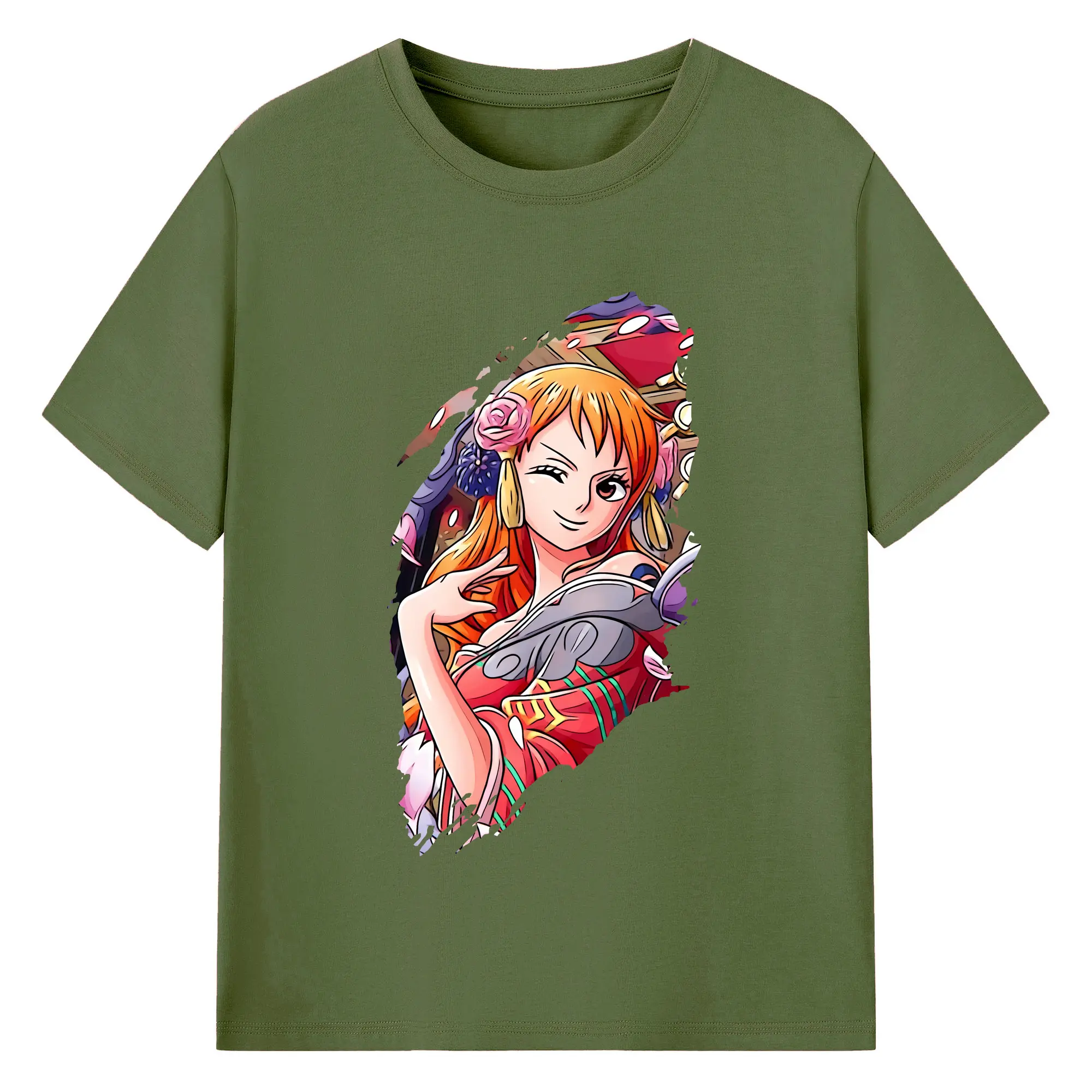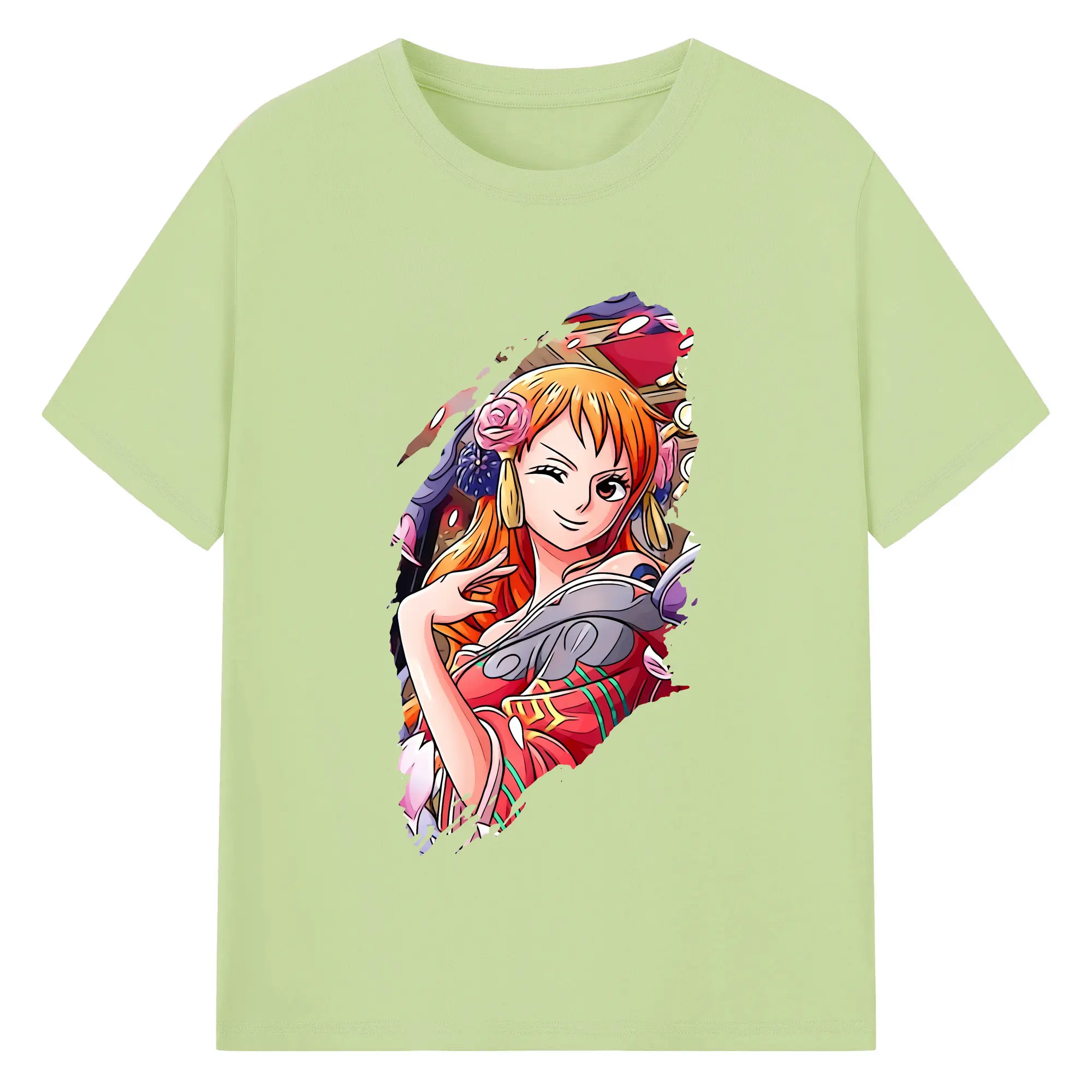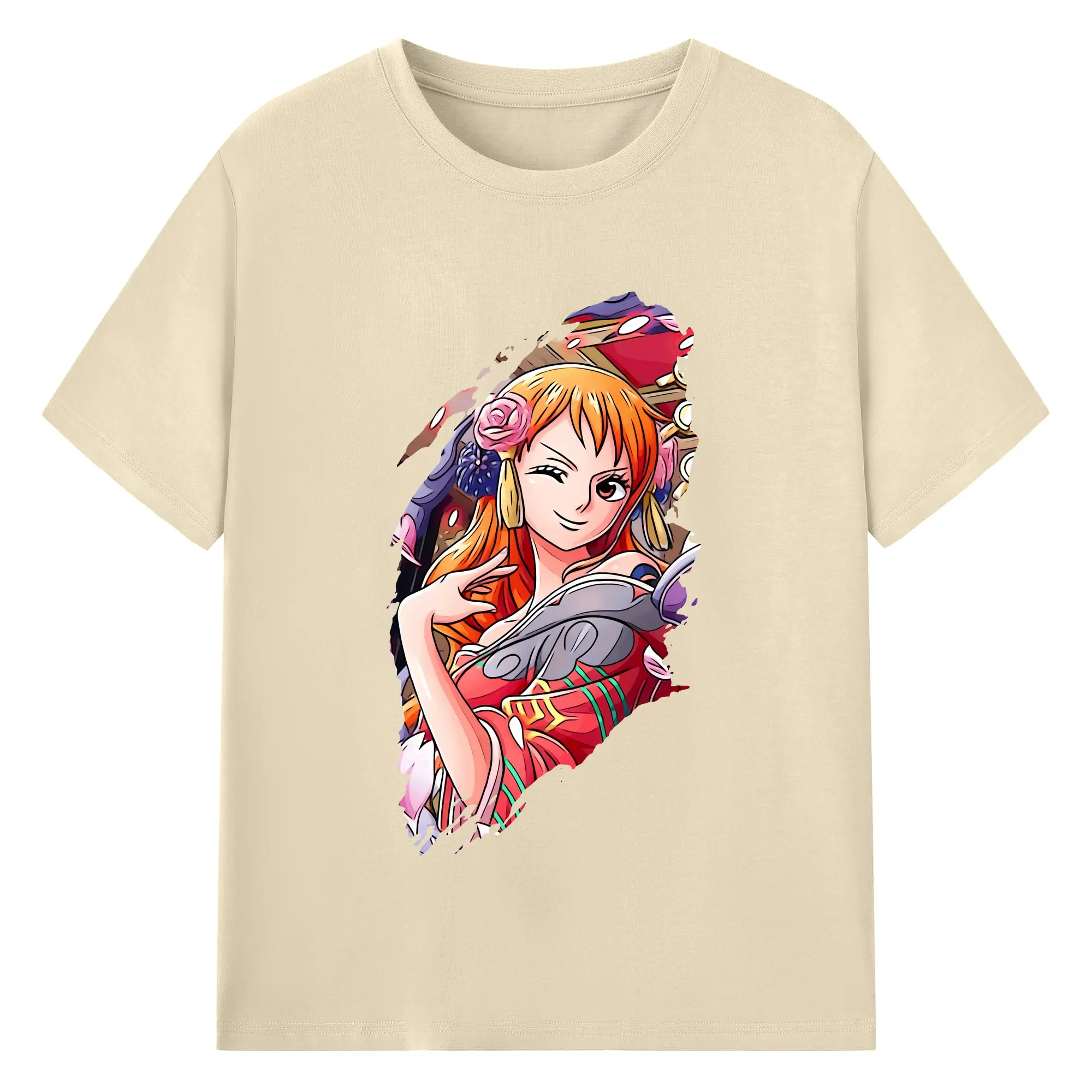 ワンピース グッズ ナミ - 綿100% ヴィンテージ風 半袖Tシャツ ・ フロントプリント ・ 柔らか肌触り ・ 通気性 快適 ・ スポーツ カジュアル 外出用