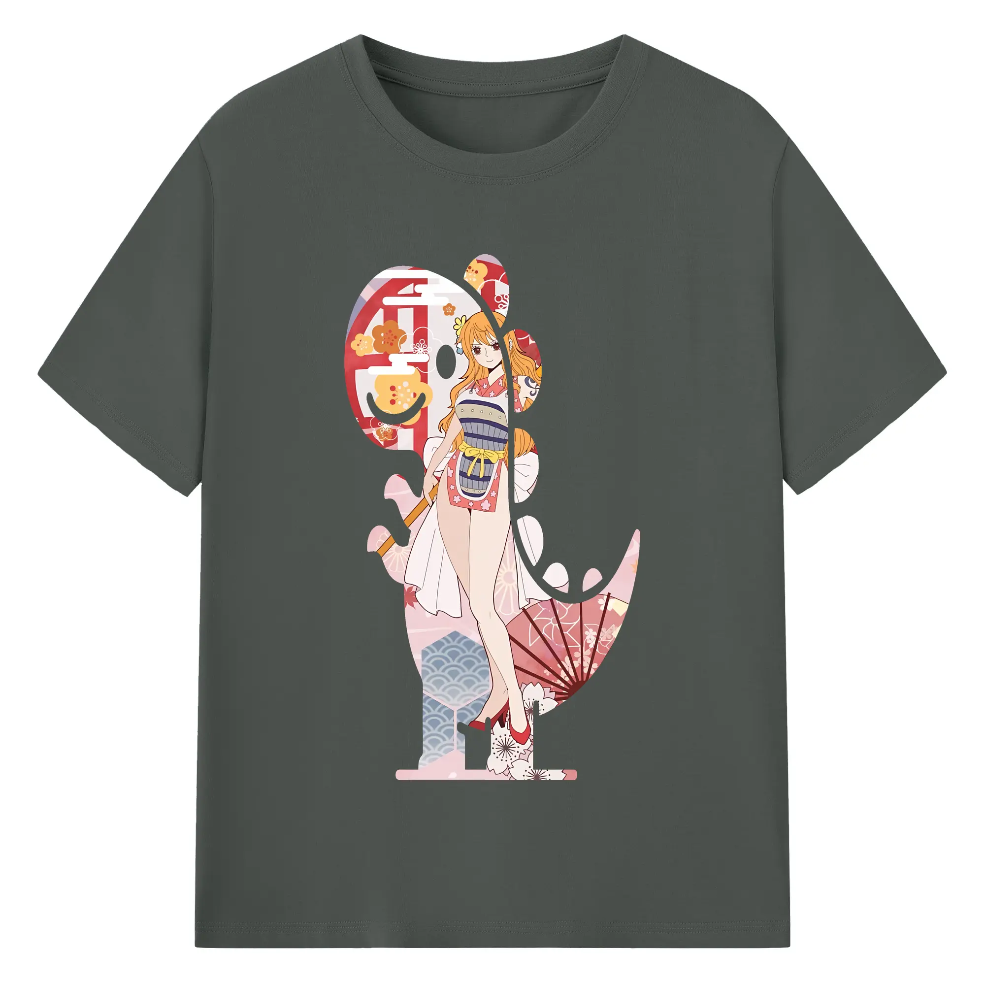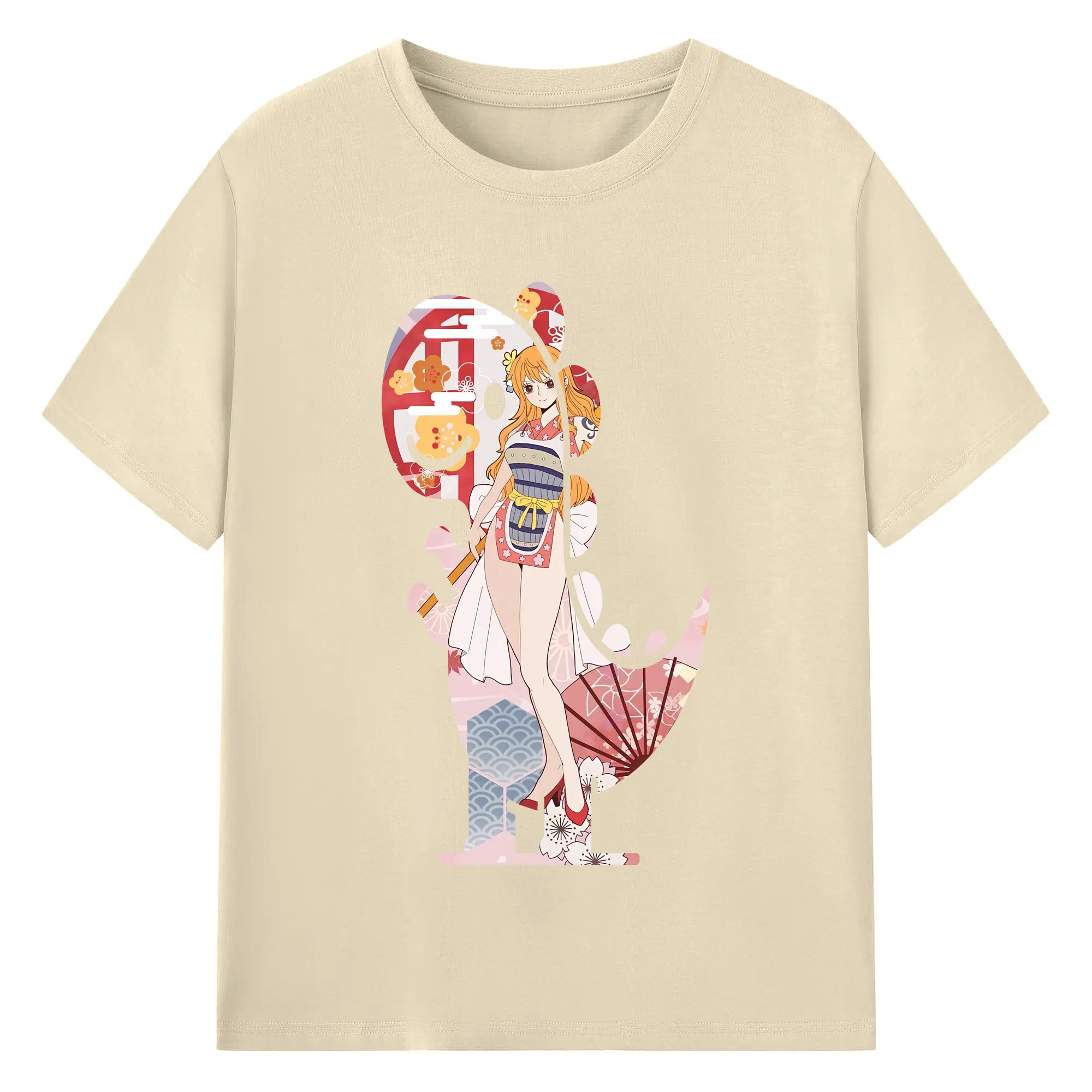 ワンピース グッズ ナミ - 綿100% ヴィンテージ風 半袖Tシャツ ・ フロントプリント ・ 柔らか肌触り ・ 通気性 快適 ・ スポーツ カジュアル 外出用