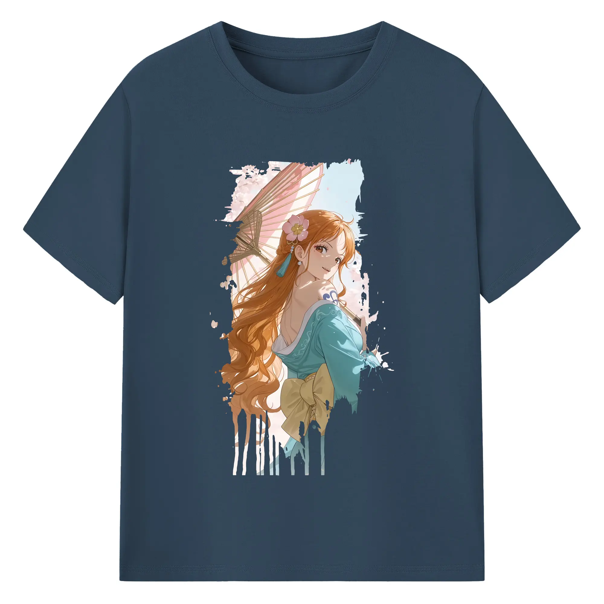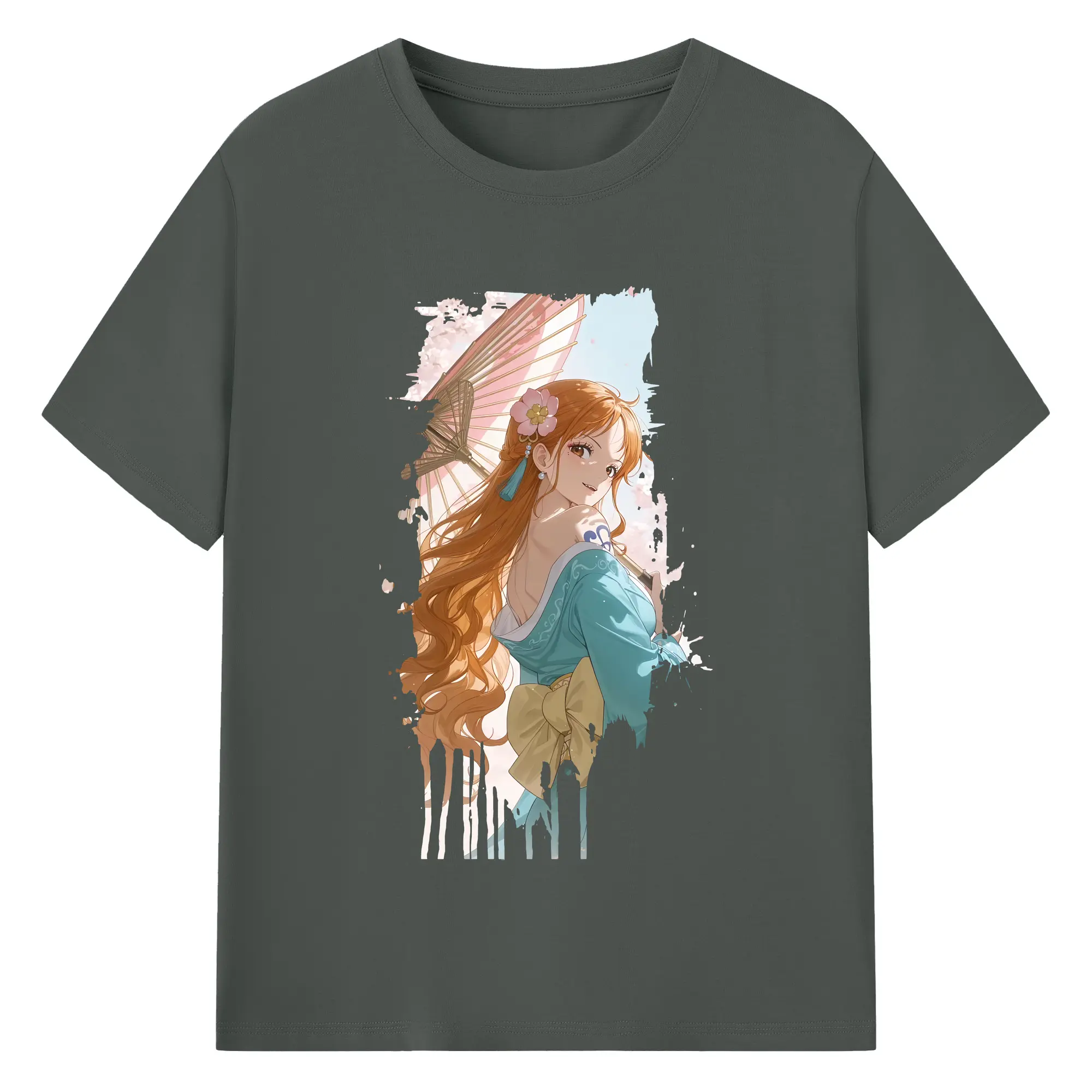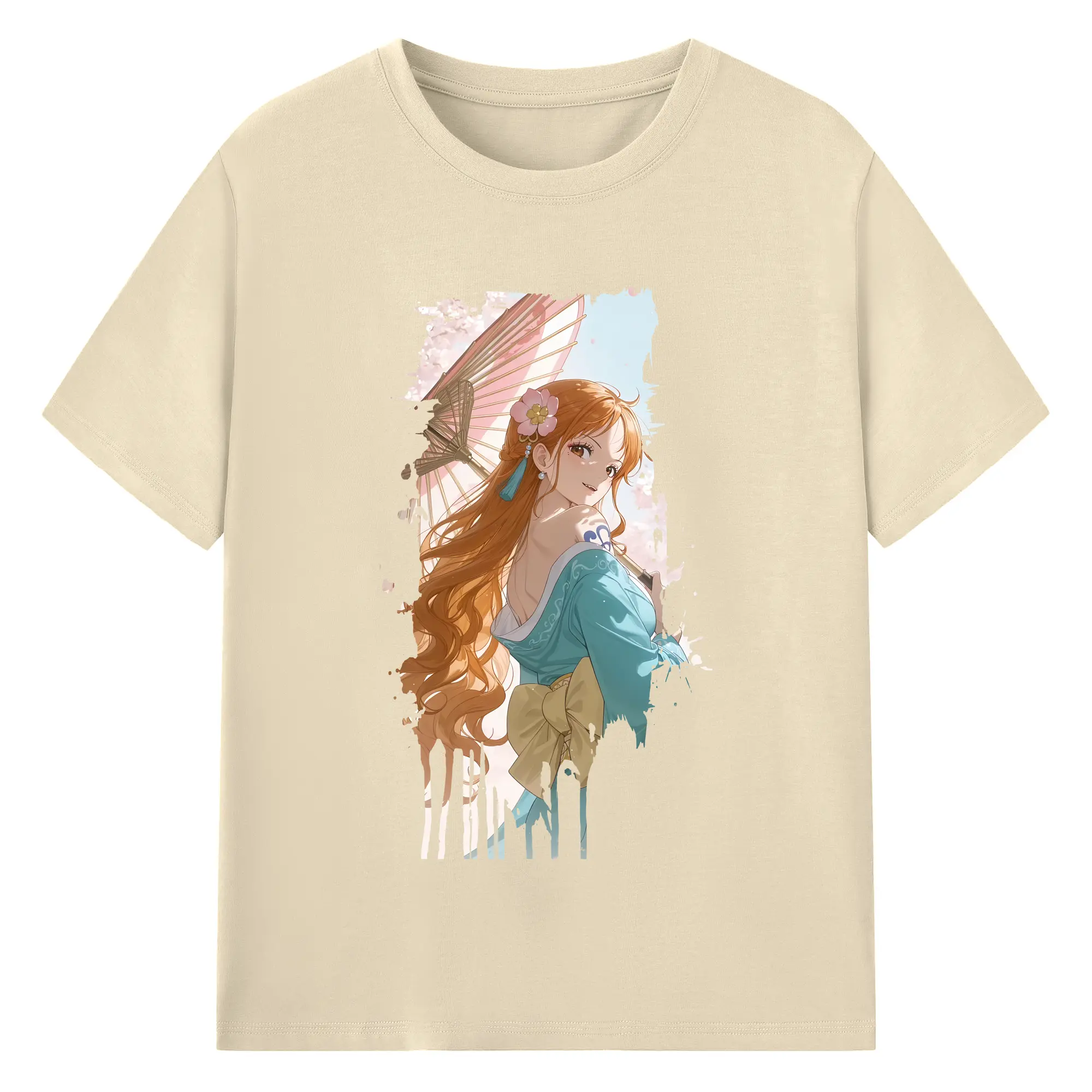 ワンピース グッズ ナミ - 綿100% ヴィンテージ風 半袖Tシャツ ・ フロントプリント ・ 柔らか肌触り ・ 通気性 快適 ・ スポーツ カジュアル 外出用