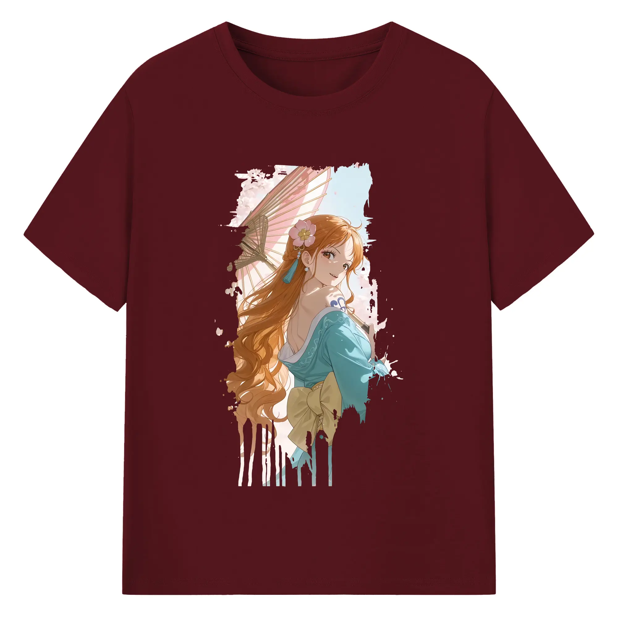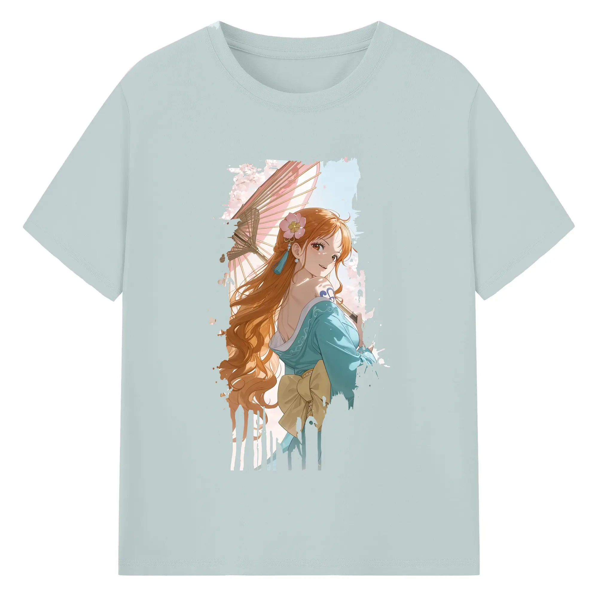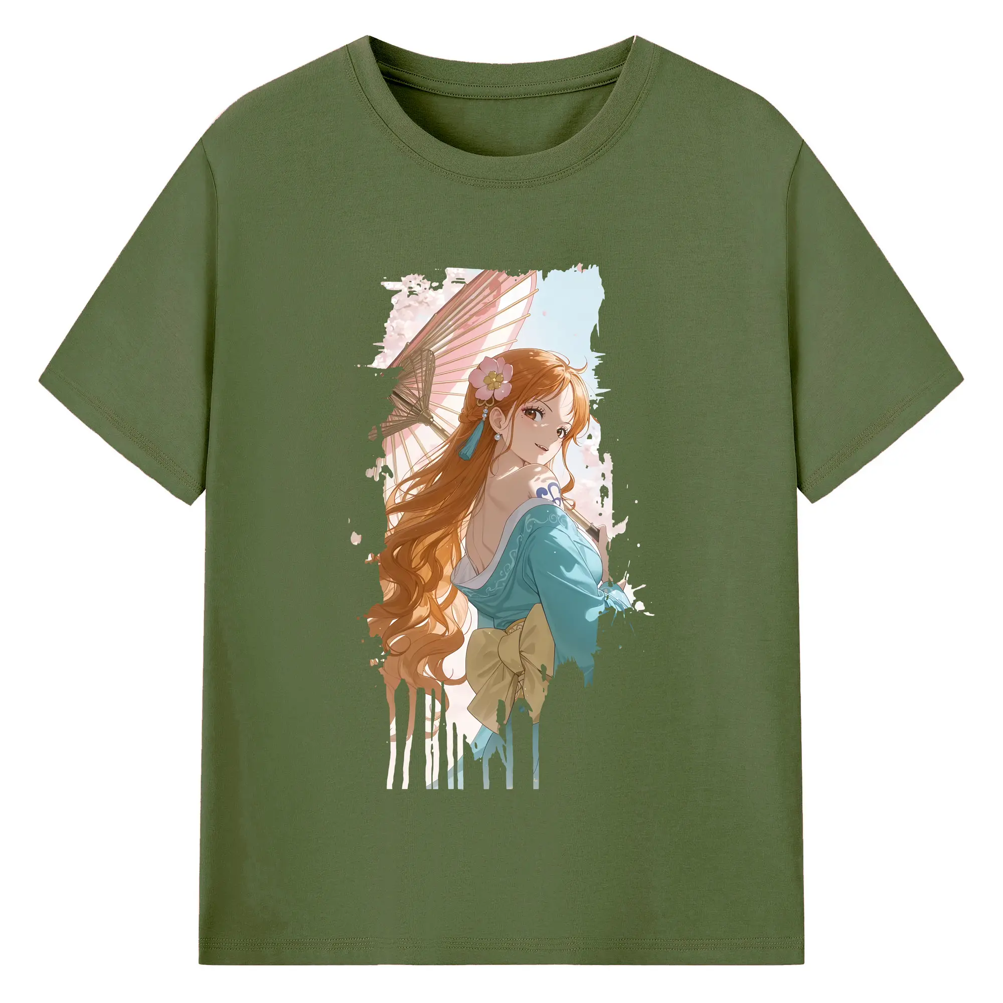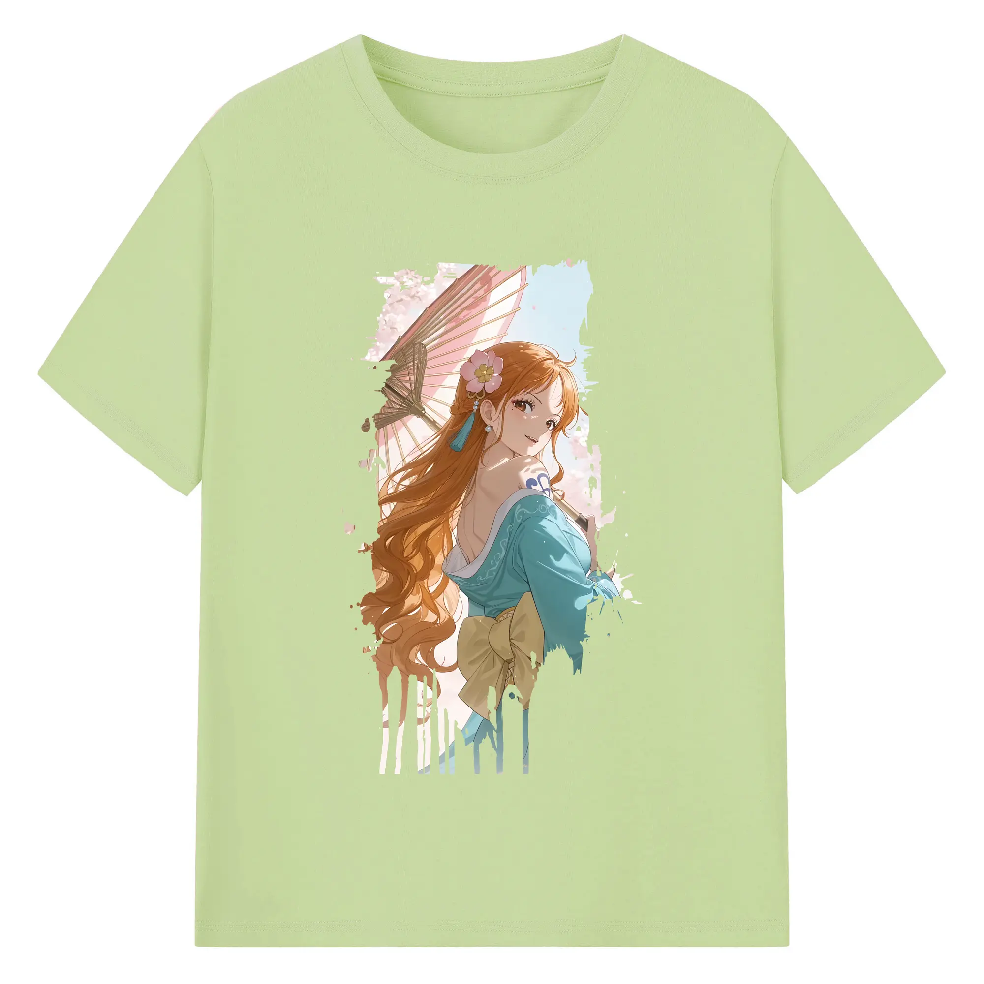 ワンピース グッズ ナミ - 綿100% ヴィンテージ風 半袖Tシャツ ・ フロントプリント ・ 柔らか肌触り ・ 通気性 快適 ・ スポーツ カジュアル 外出用