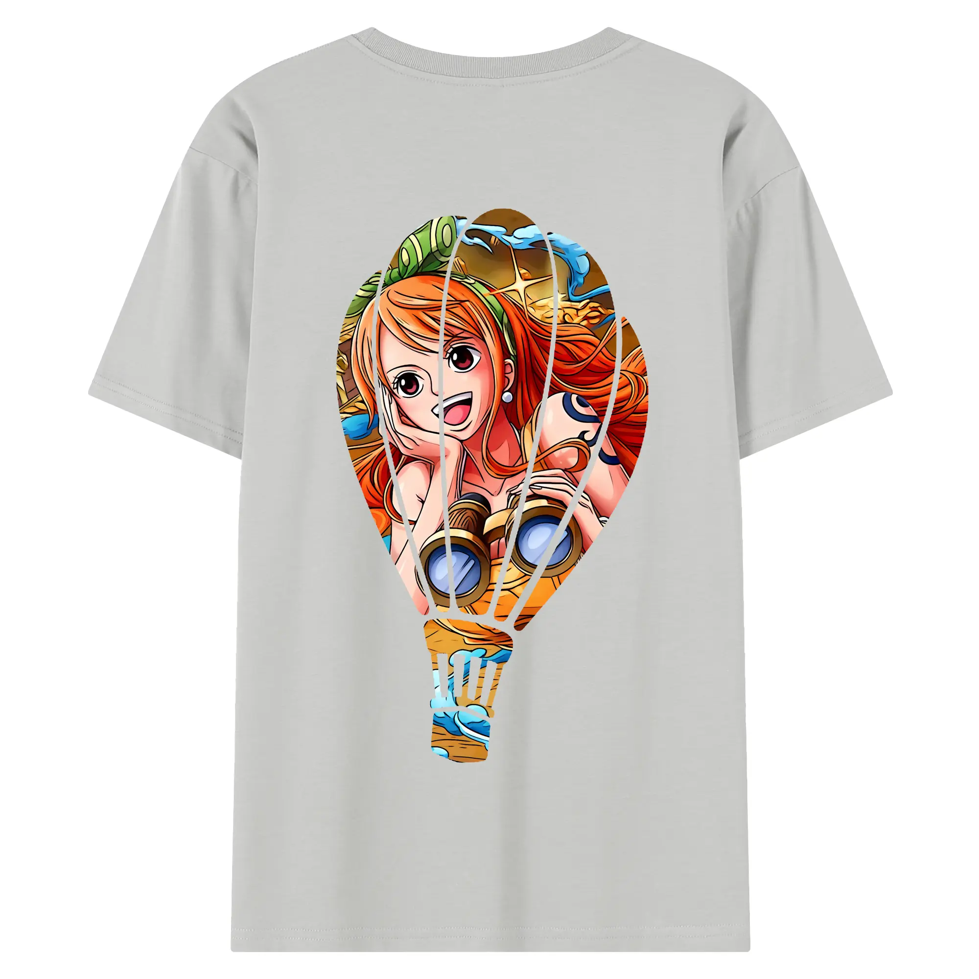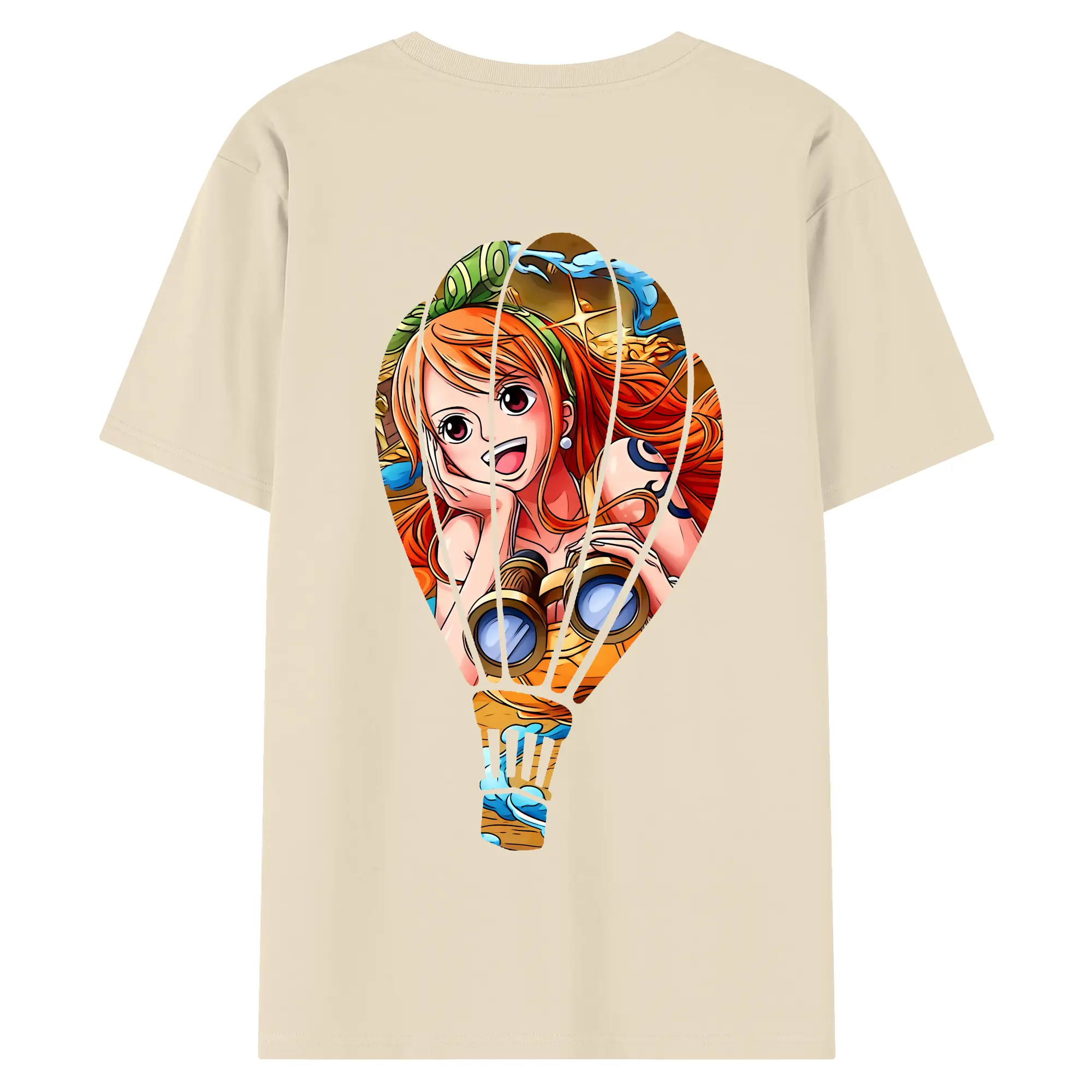 ワンピース グッズ ナミ - 綿100% ヴィンテージ風 半袖Tシャツ ・ 背面プリント ・ 柔らか肌触り ・ 通気性 快適 ・ スポーツ カジュアル 外出用