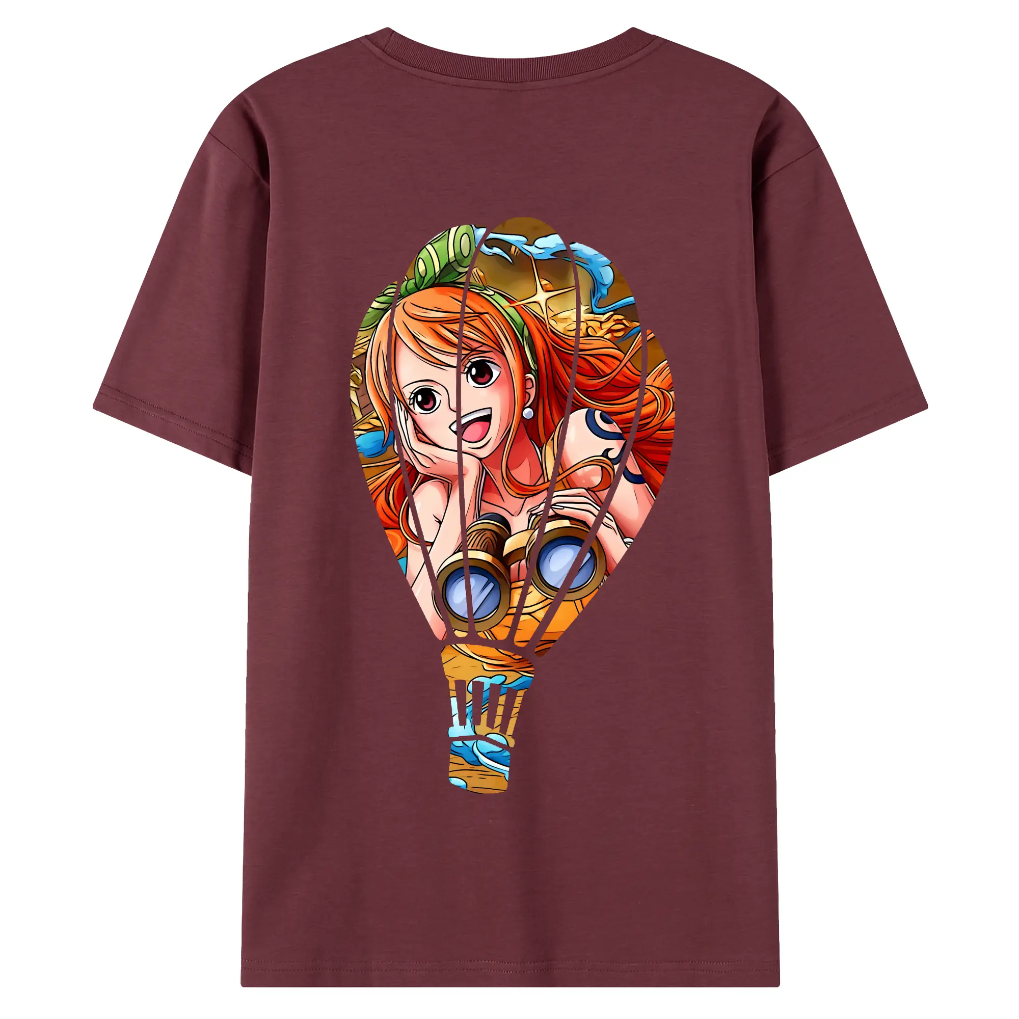 ワンピース グッズ ナミ - 綿100% ヴィンテージ風 半袖Tシャツ ・ フロントプリント ・ 柔らか肌触り ・ 通気性 快適 ・ スポーツ カジュアル 外出用