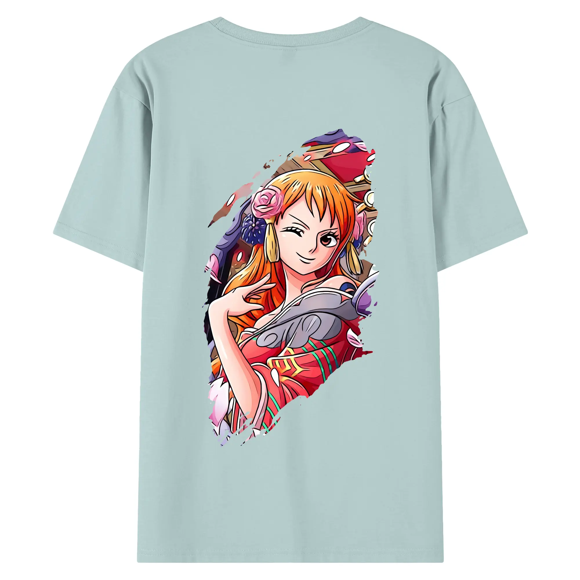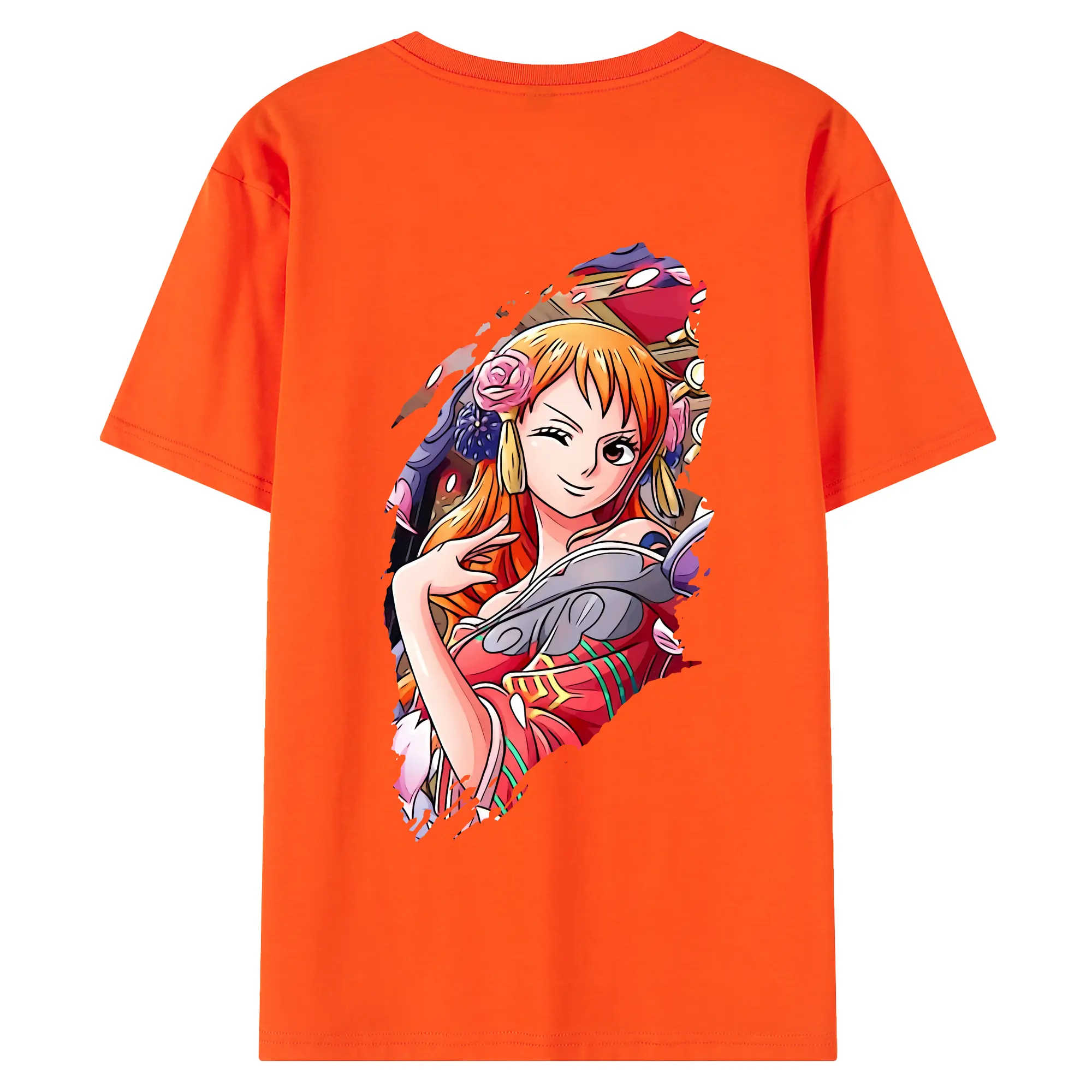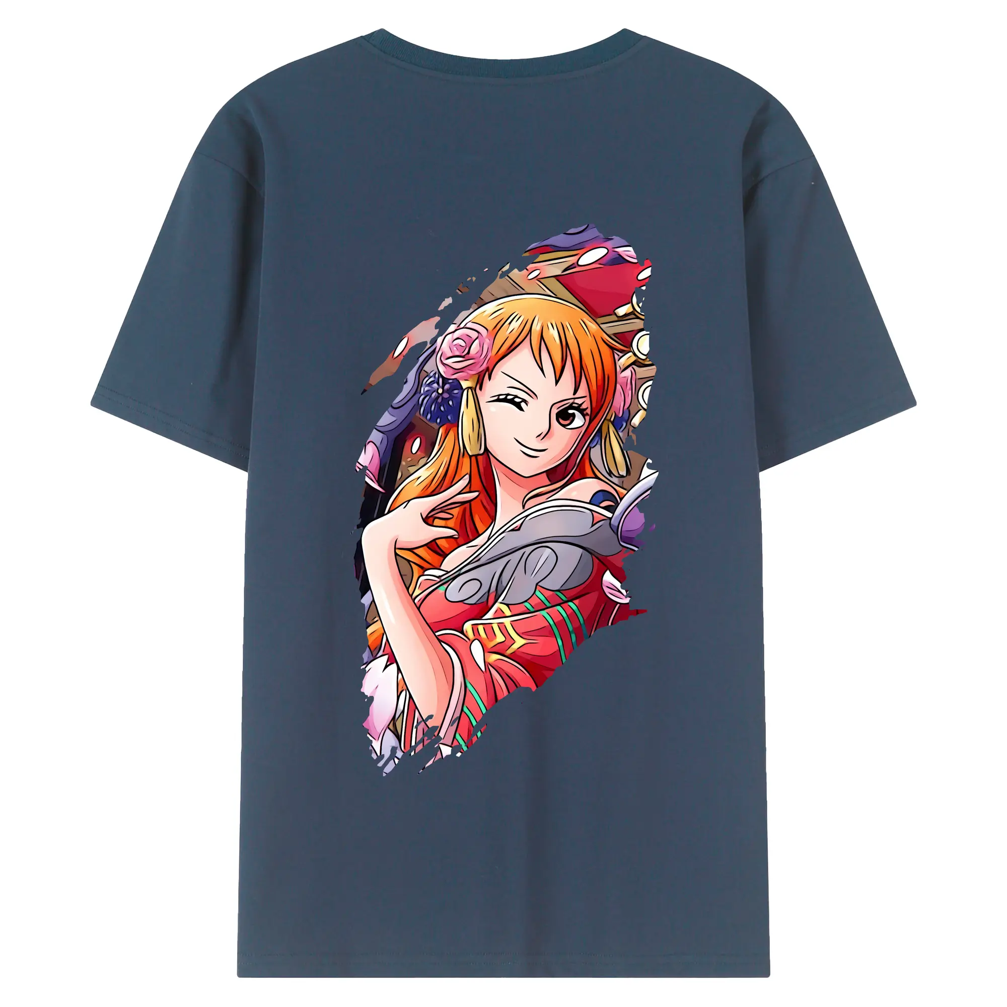 ワンピース グッズ ナミ - 綿100% ヴィンテージ風 半袖Tシャツ ・ 背面プリント ・ 柔らか肌触り ・ 通気性 快適 ・ スポーツ カジュアル 外出用