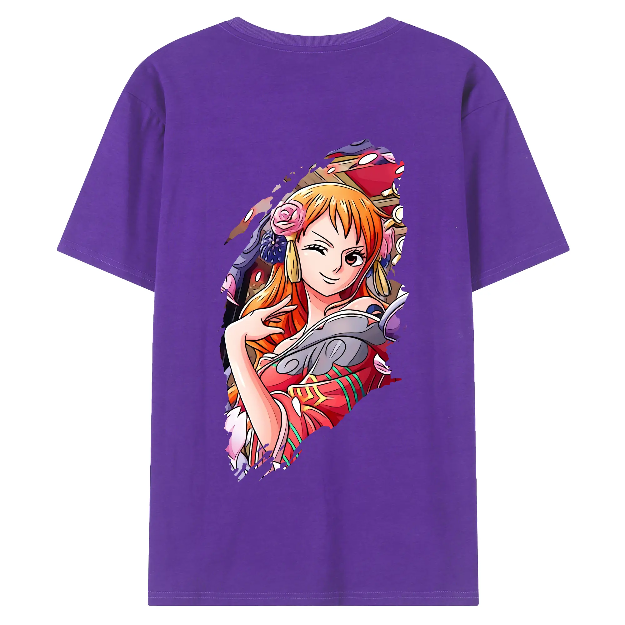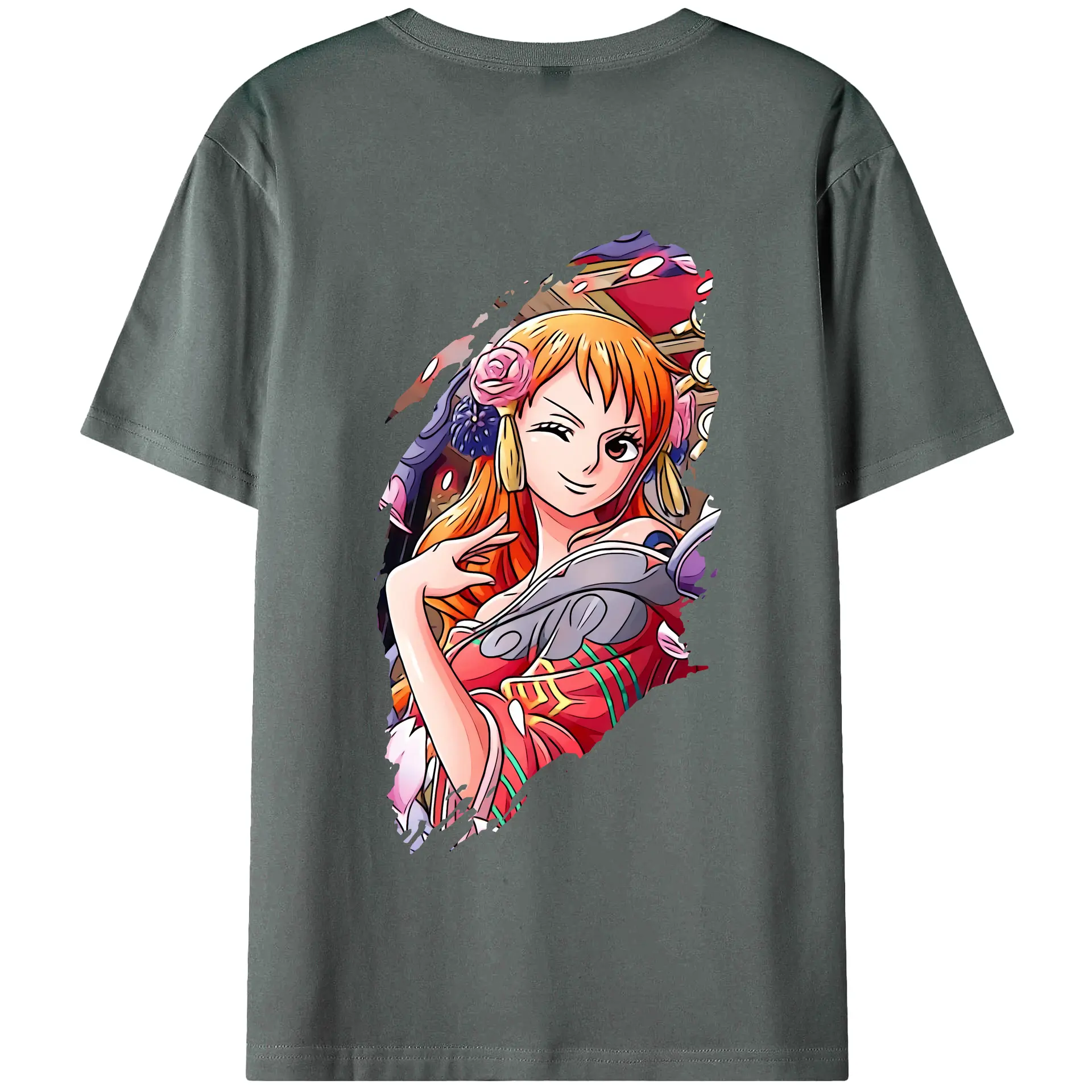 ワンピース グッズ ナミ - 綿100% 半袖Tシャツ ・ フロントプリント ・ 快適 通気性 ・ 日常使い 散歩 スポーツ用