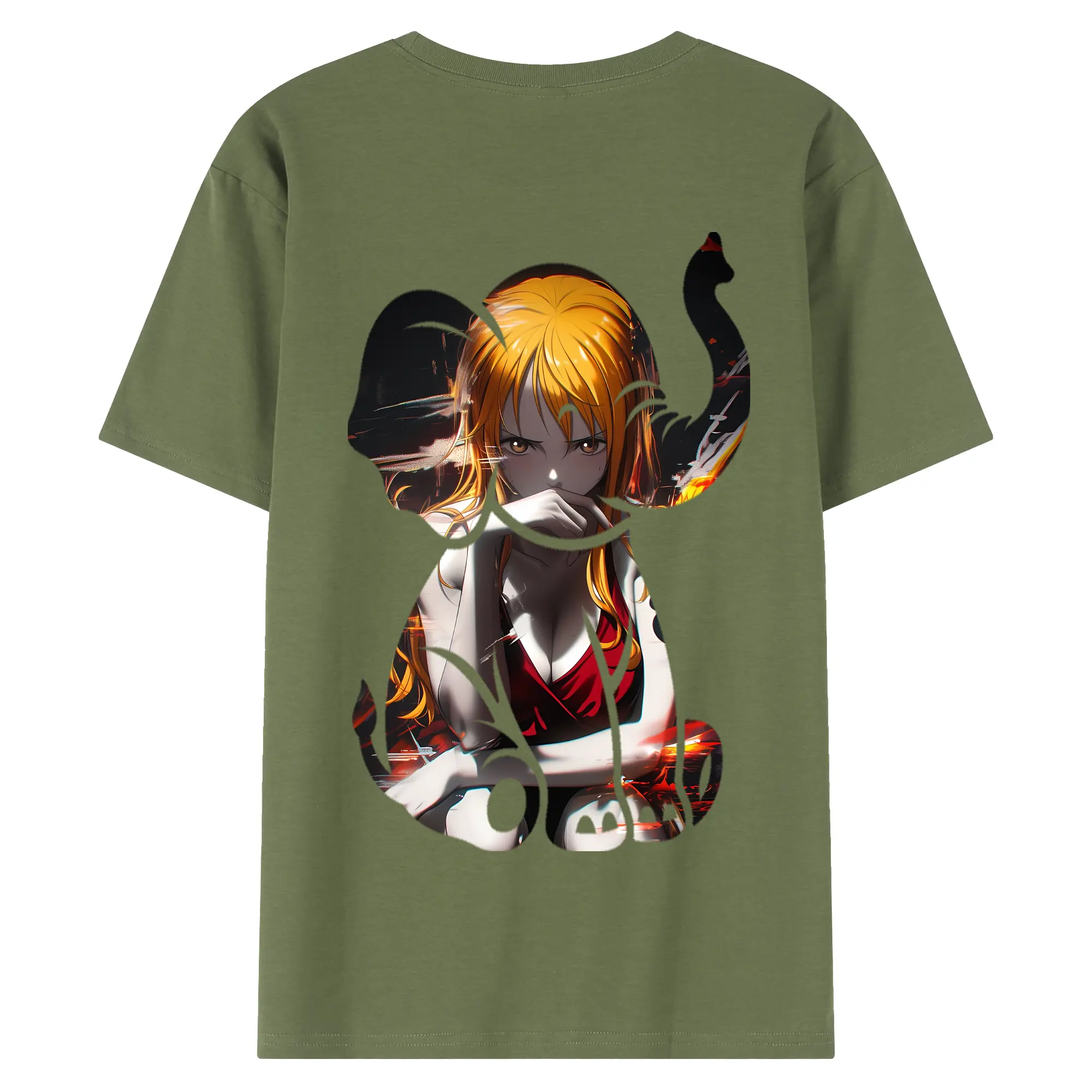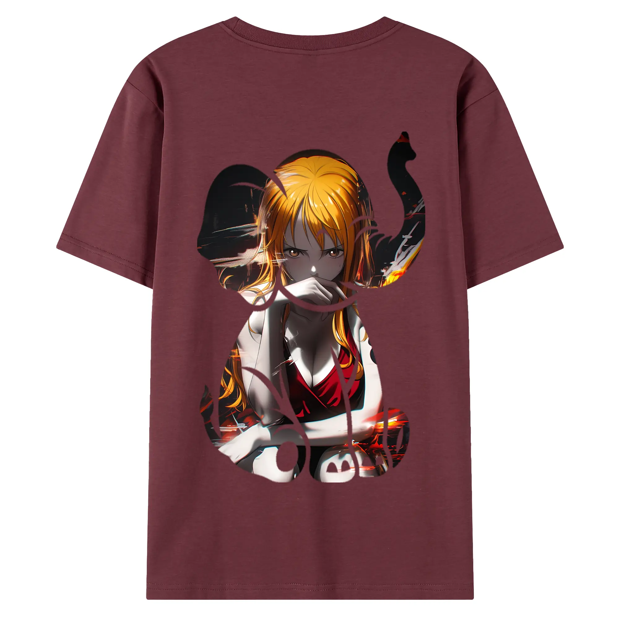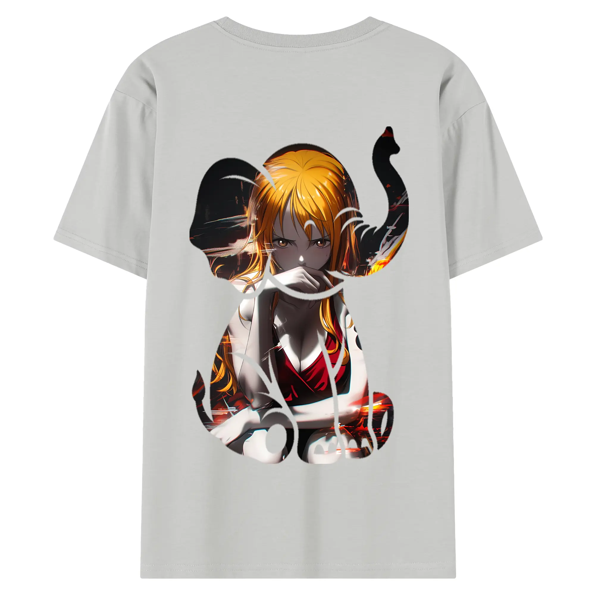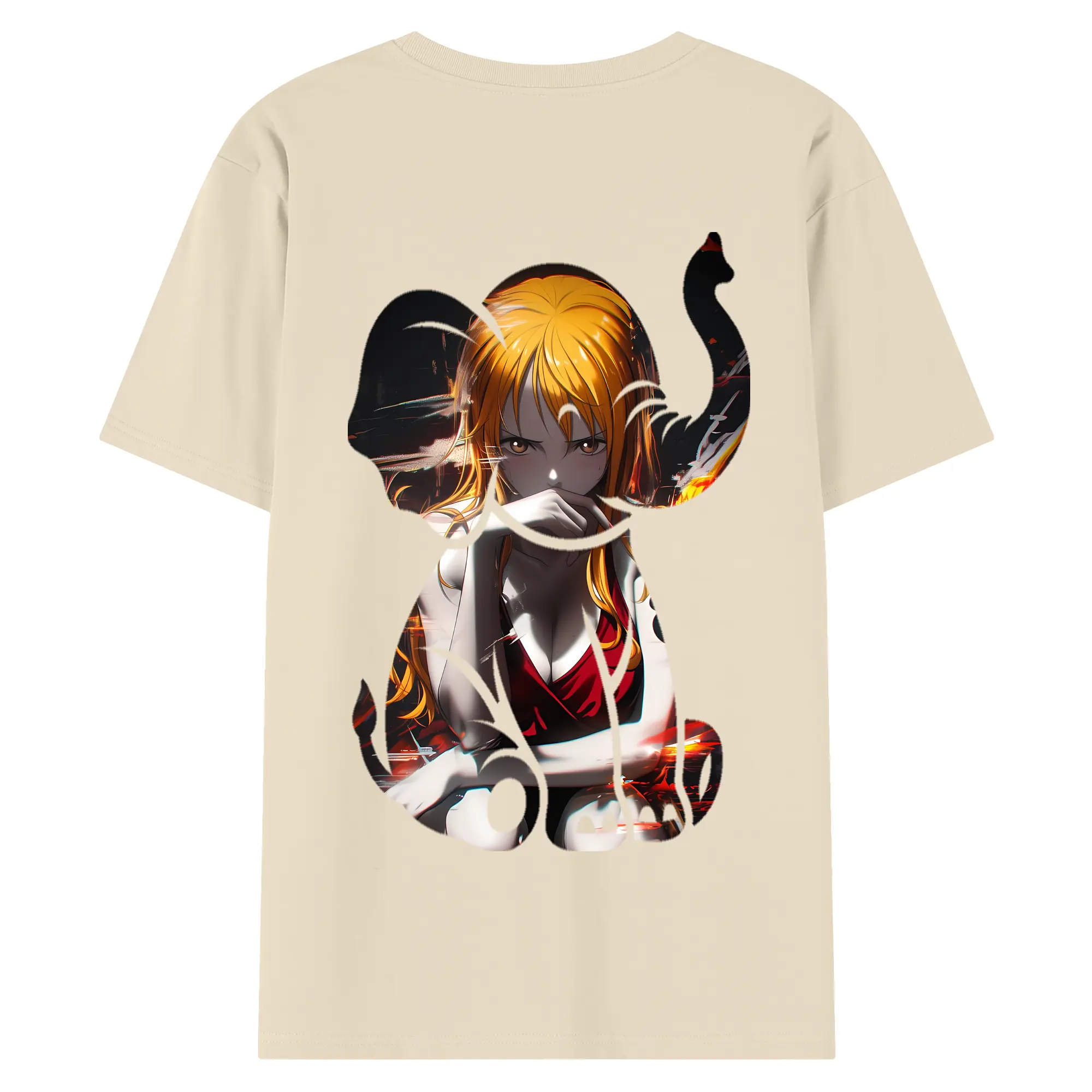 ワンピース グッズ ナミ - 綿100% ヴィンテージ風 半袖Tシャツ ・ 背面プリント ・ 柔らか肌触り ・ 通気性 快適 ・ スポーツ カジュアル 外出用