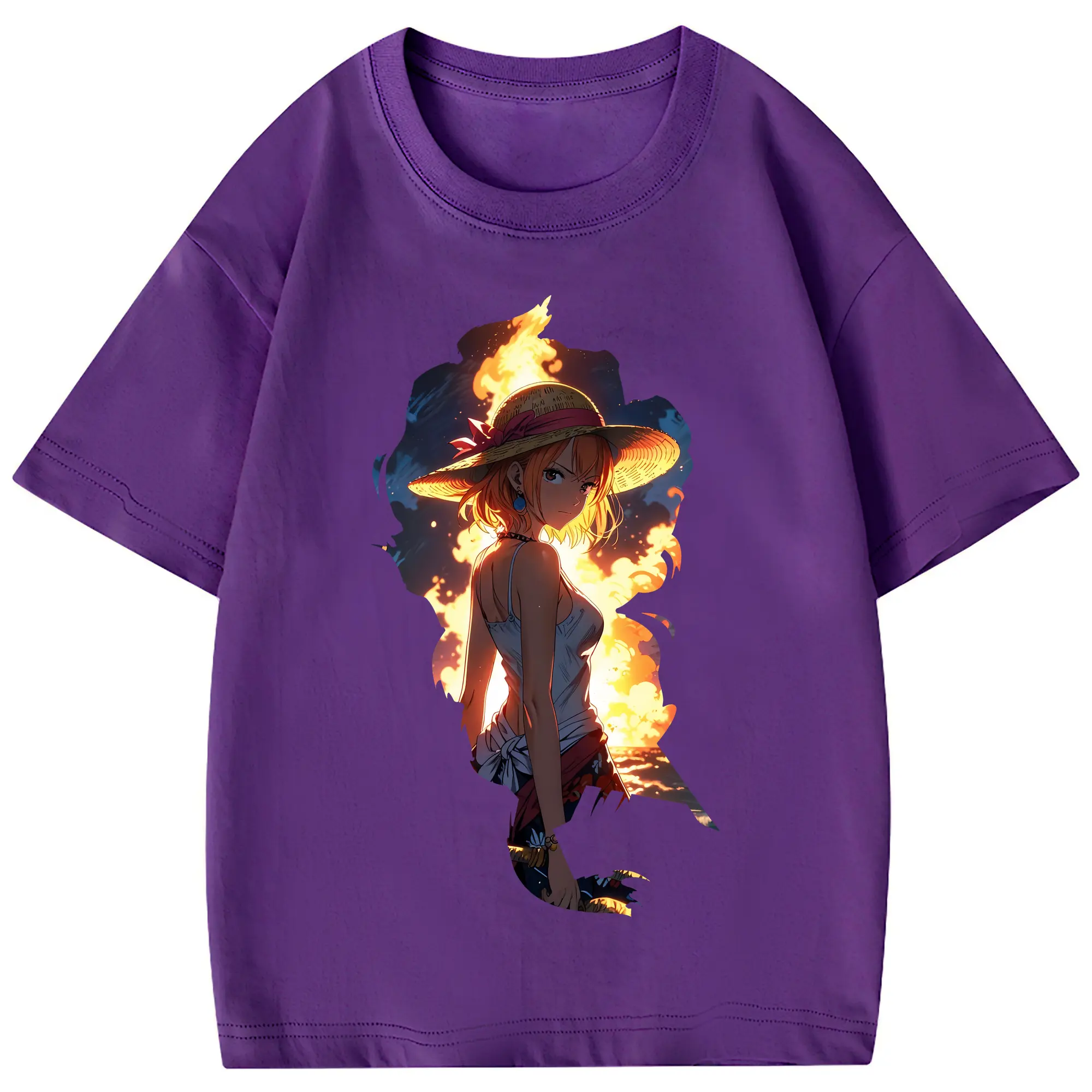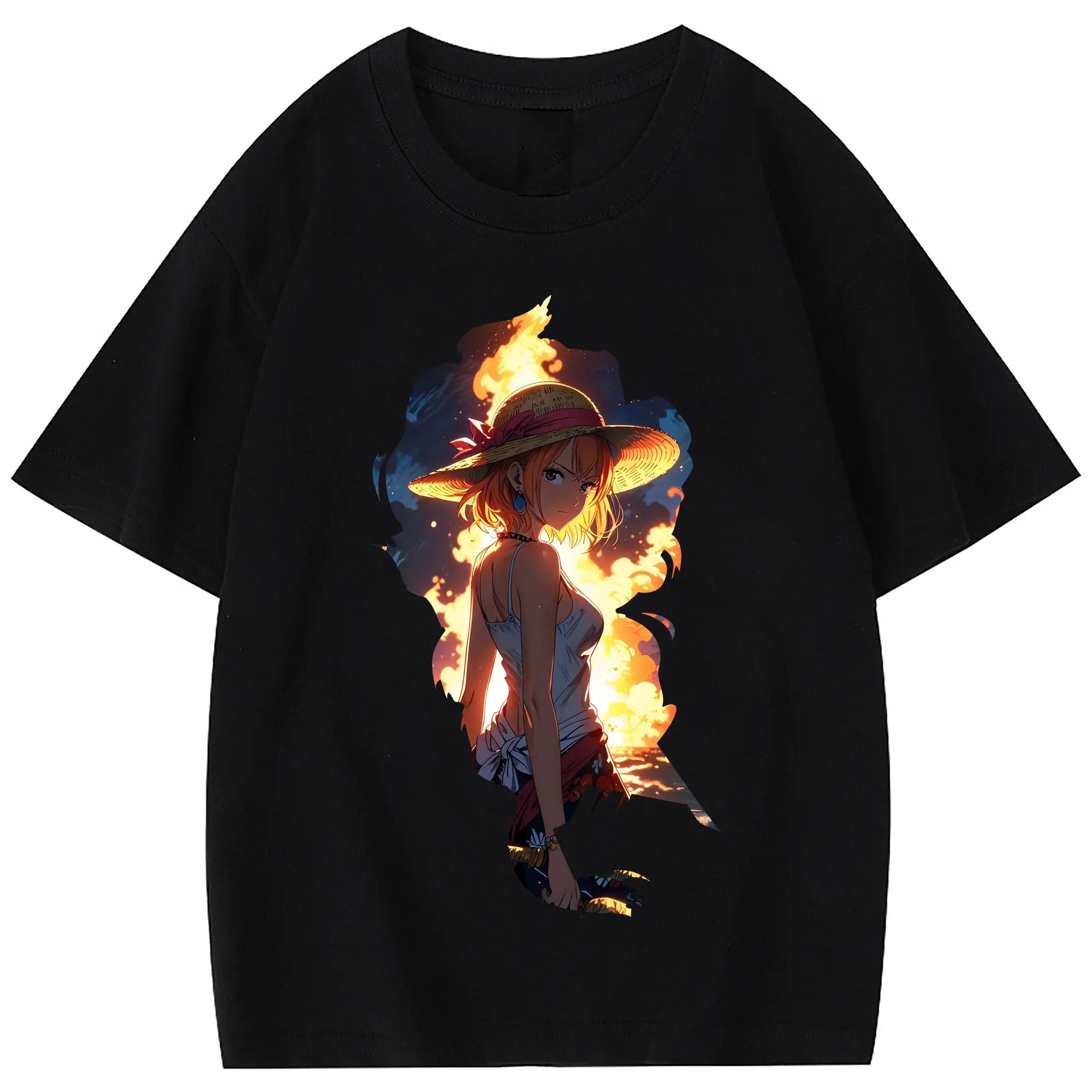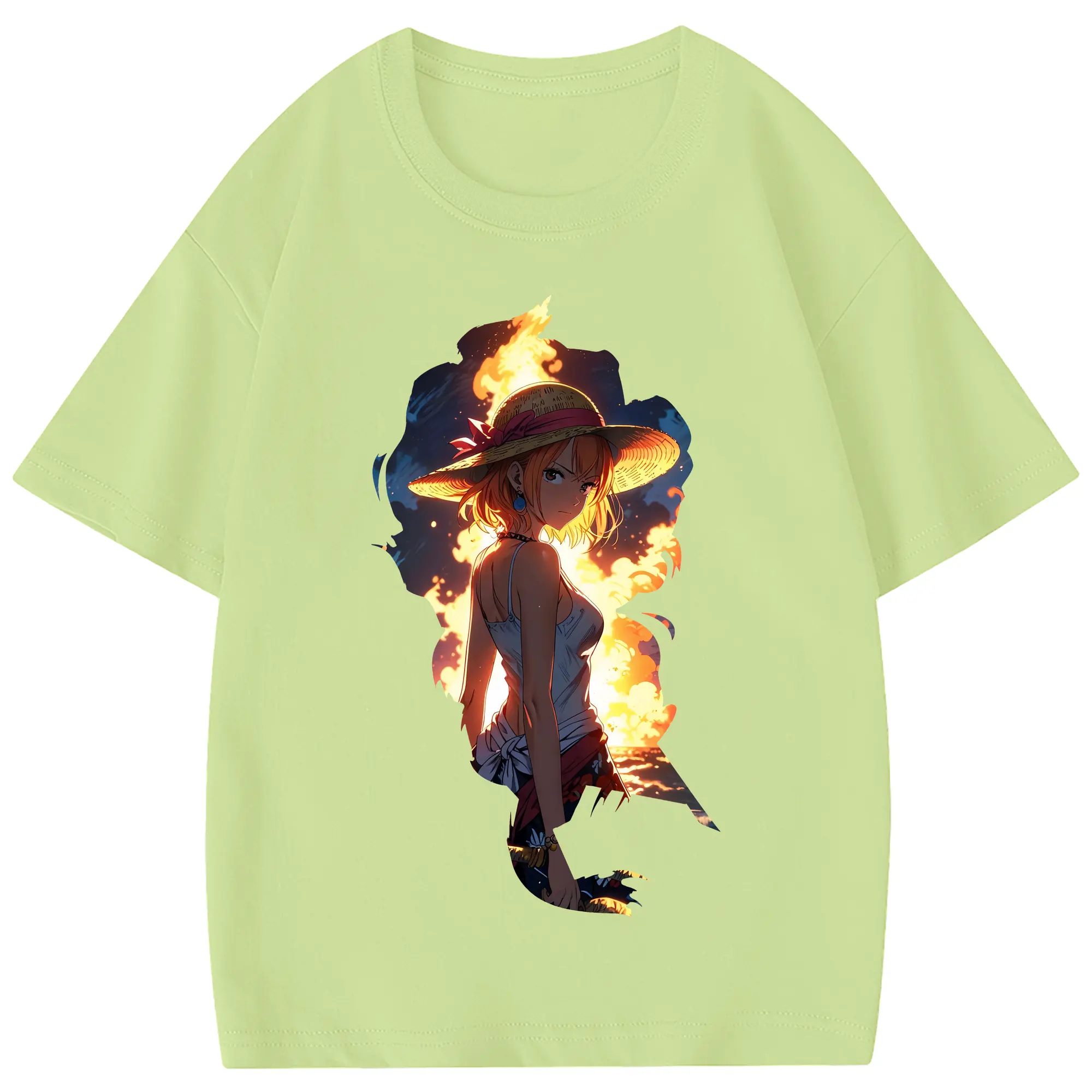 ワンピース グッズ ナミ - 綿100% 半袖Tシャツ ・ フロントプリント ・ 快適 通気性 ・ 日常使い 散歩 スポーツ用