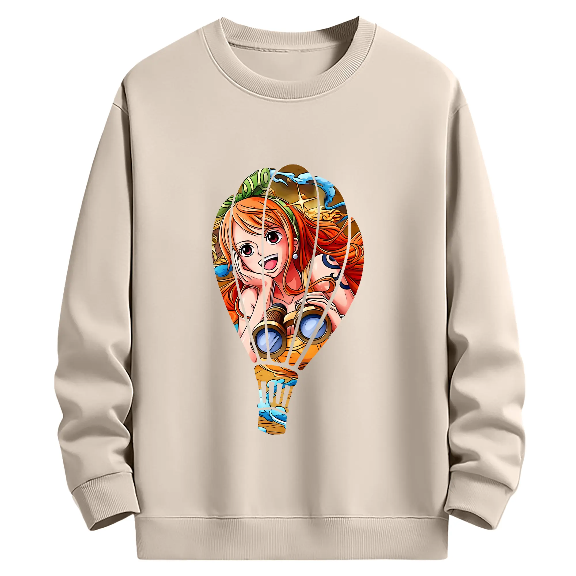 ワンピース グッズ ナミ - 薄手 クルーネック スウェット 裏毛260g · ポリエステル 春秋向け カジュアル 男女兼用 · トレーナー デイリー スポーツ 散歩に最適