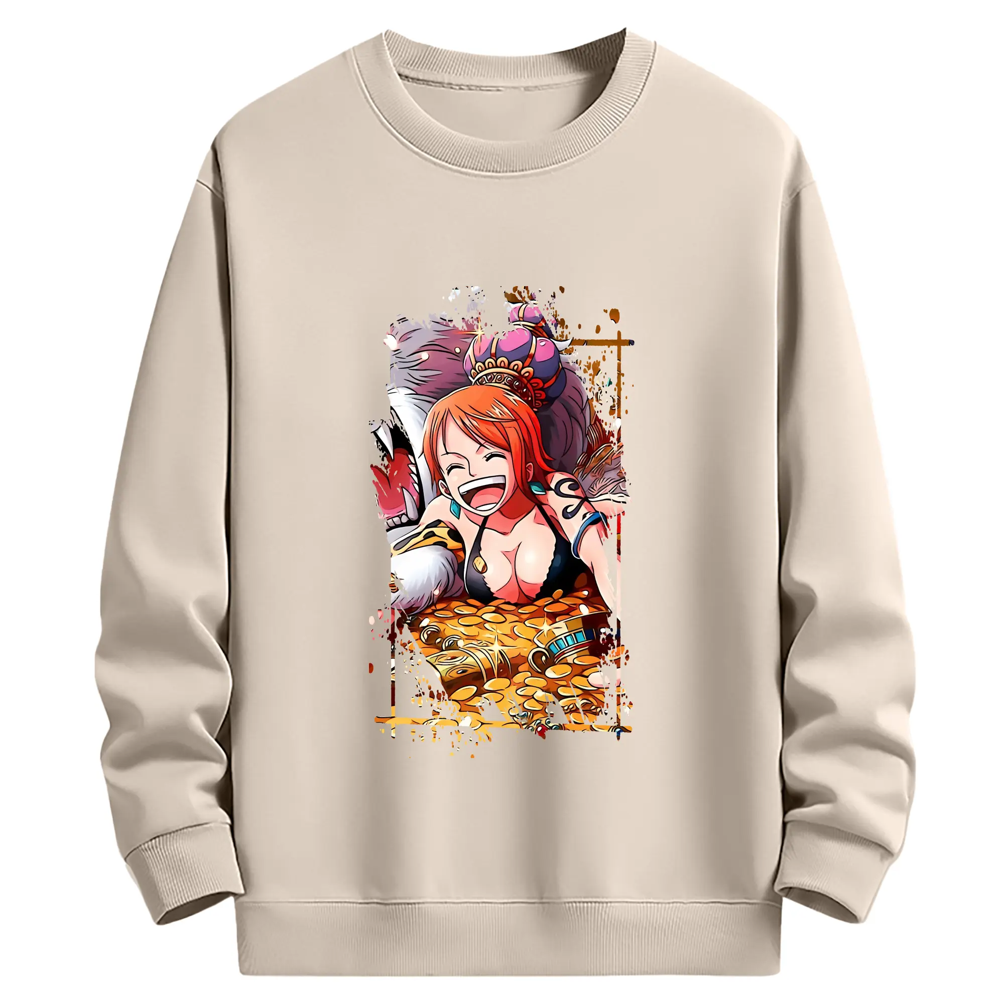 ワンピース グッズ ナミ - 薄手 クルーネック スウェット 裏毛260g · ポリエステル 春秋向け カジュアル 男女兼用 · トレーナー デイリー スポーツ 散歩に最適