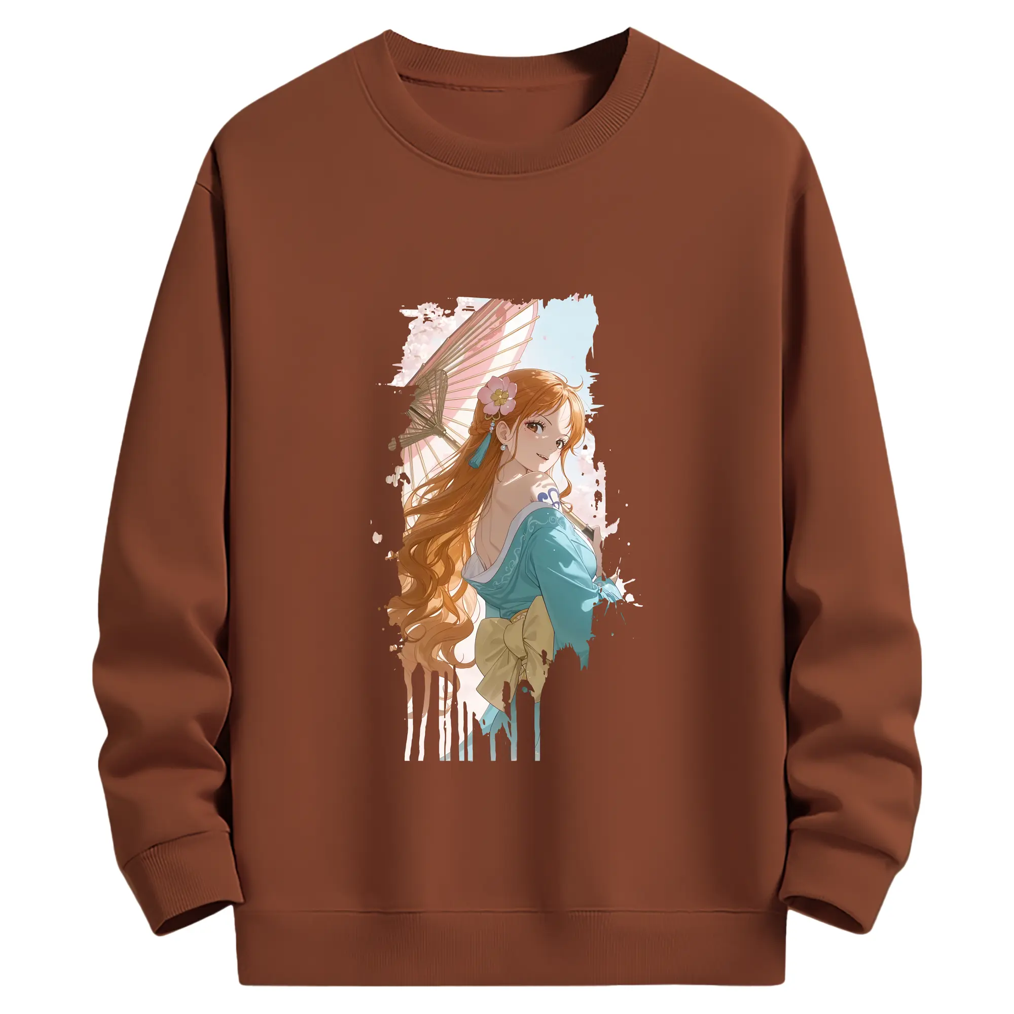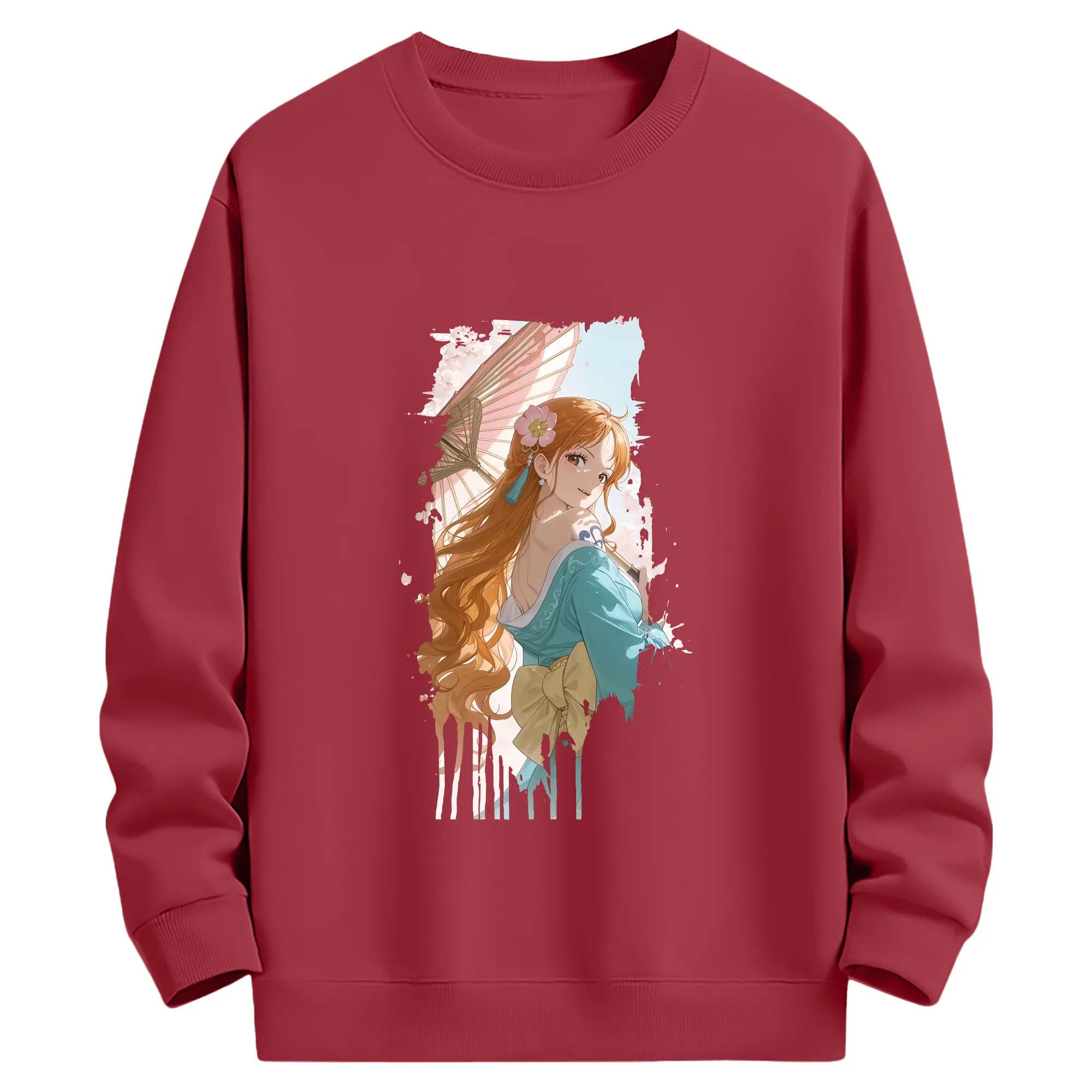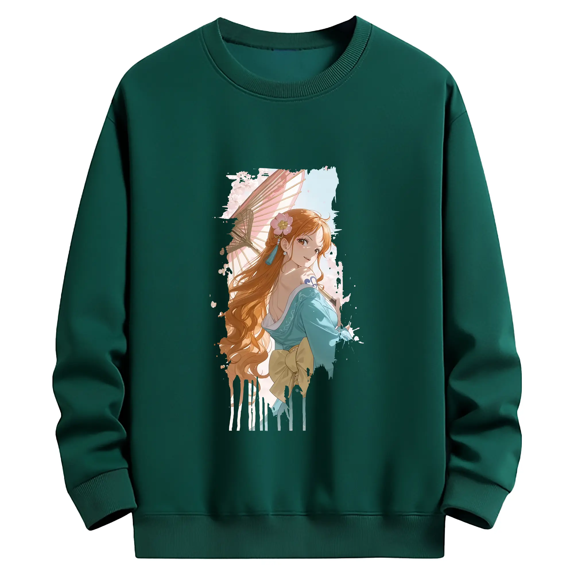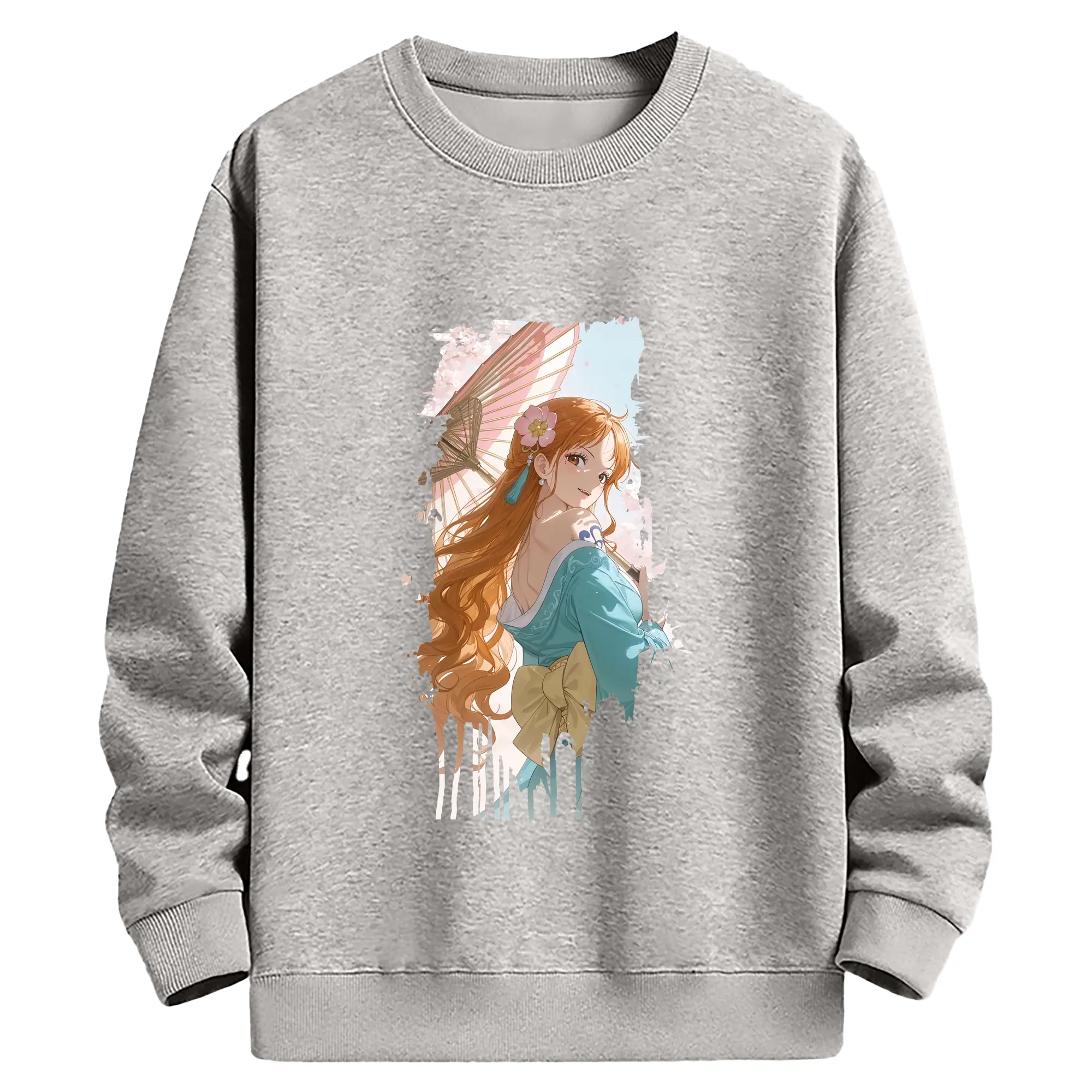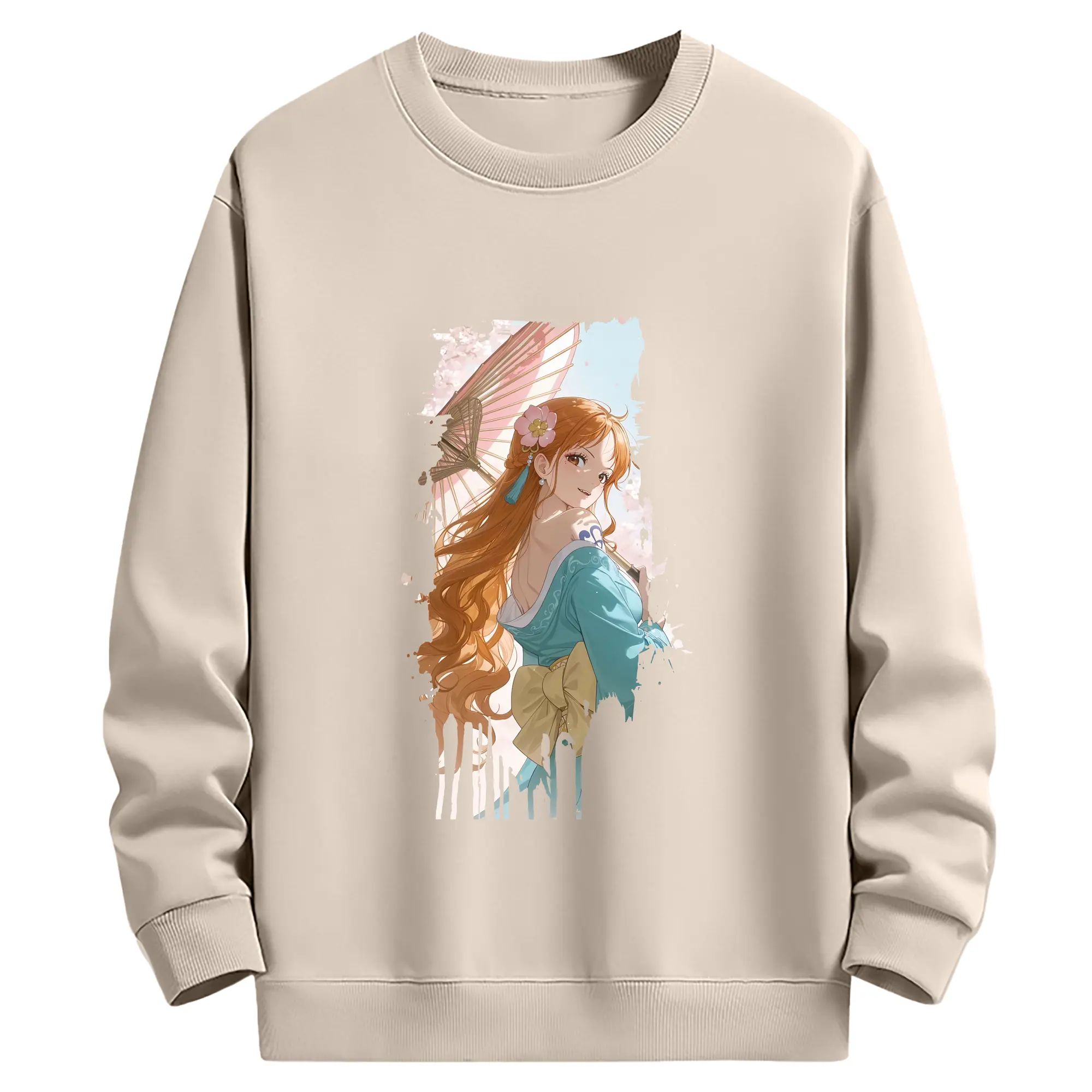 ワンピース グッズ ナミ - 薄手 クルーネック スウェット 裏毛260g · ポリエステル 春秋向け カジュアル 男女兼用 · トレーナー デイリー スポーツ 散歩に最適