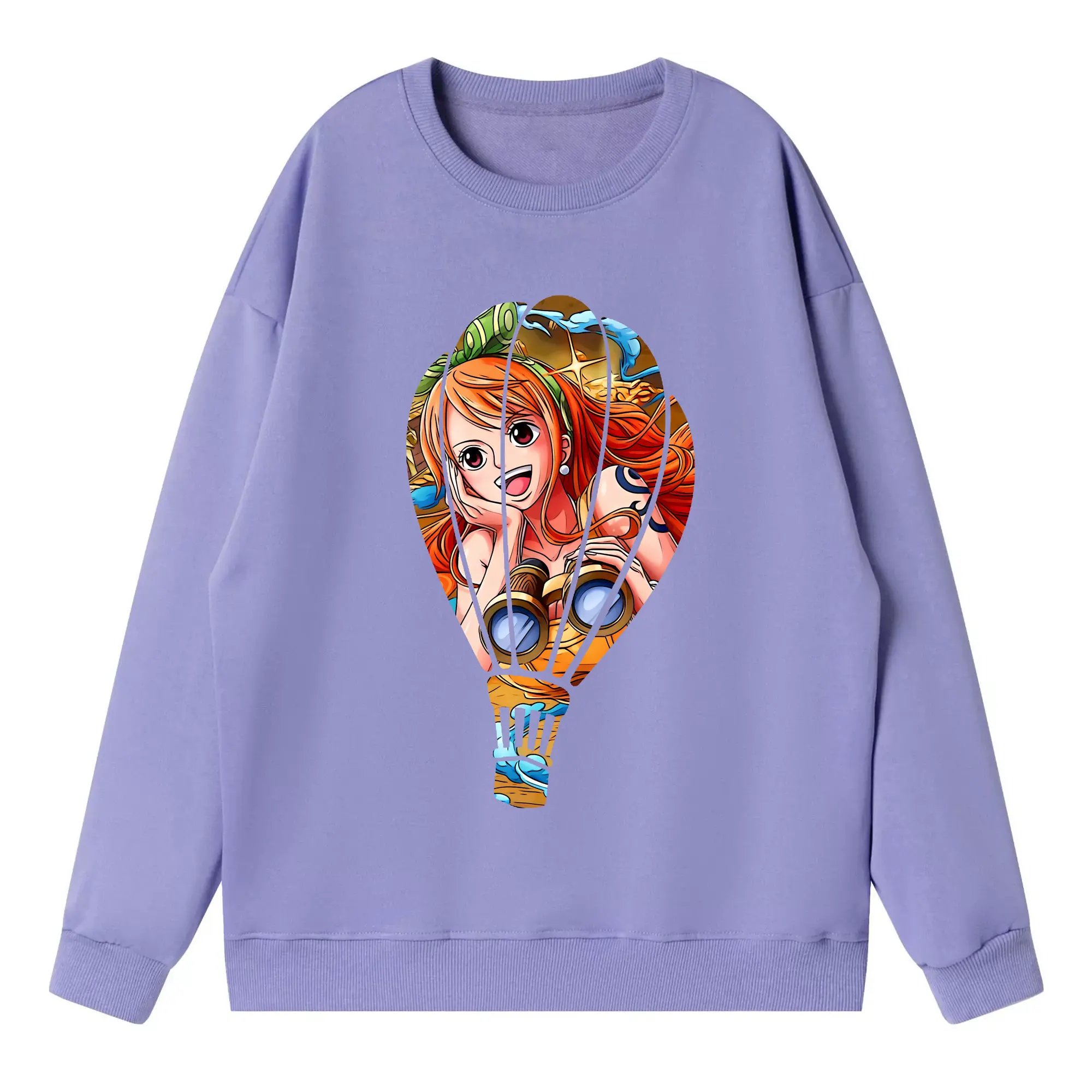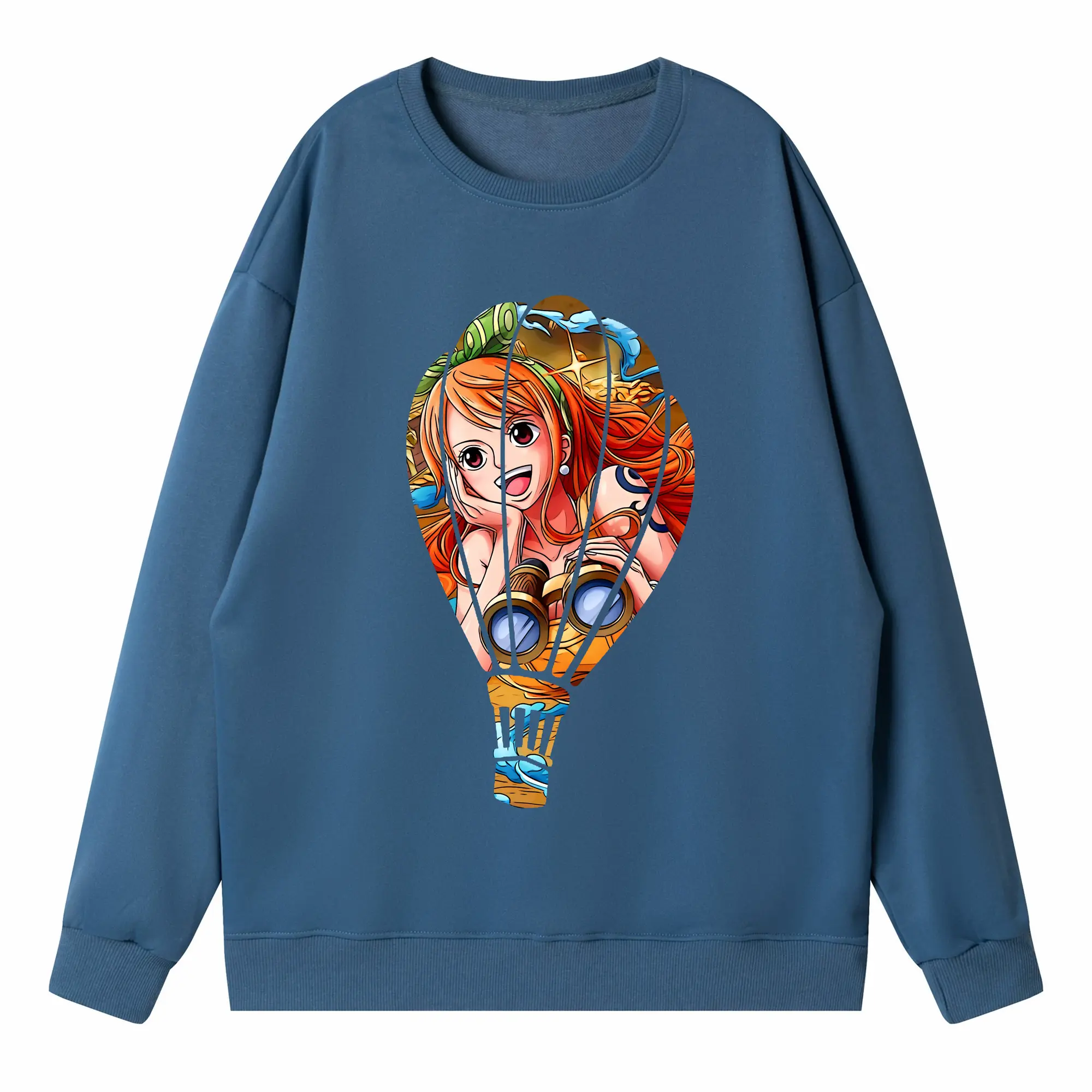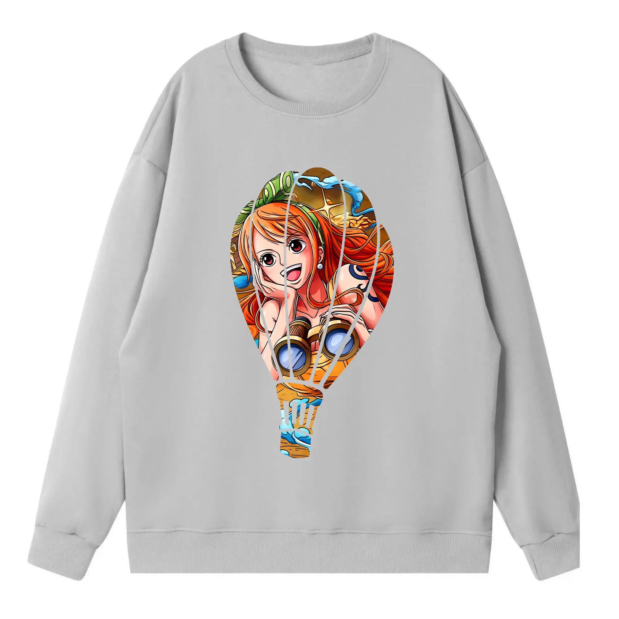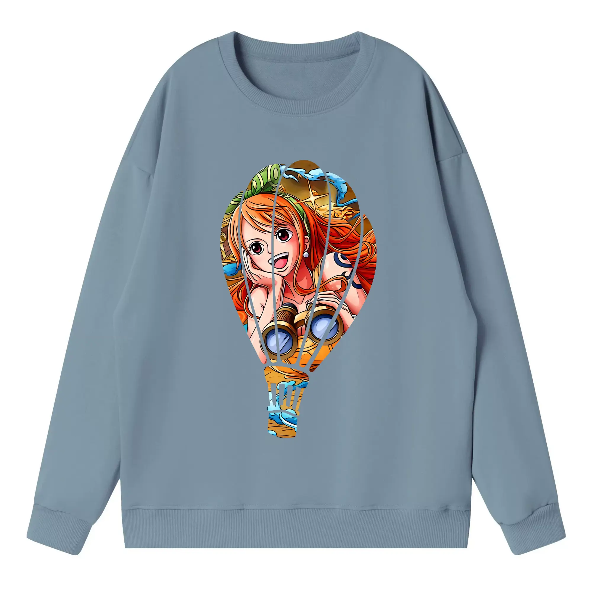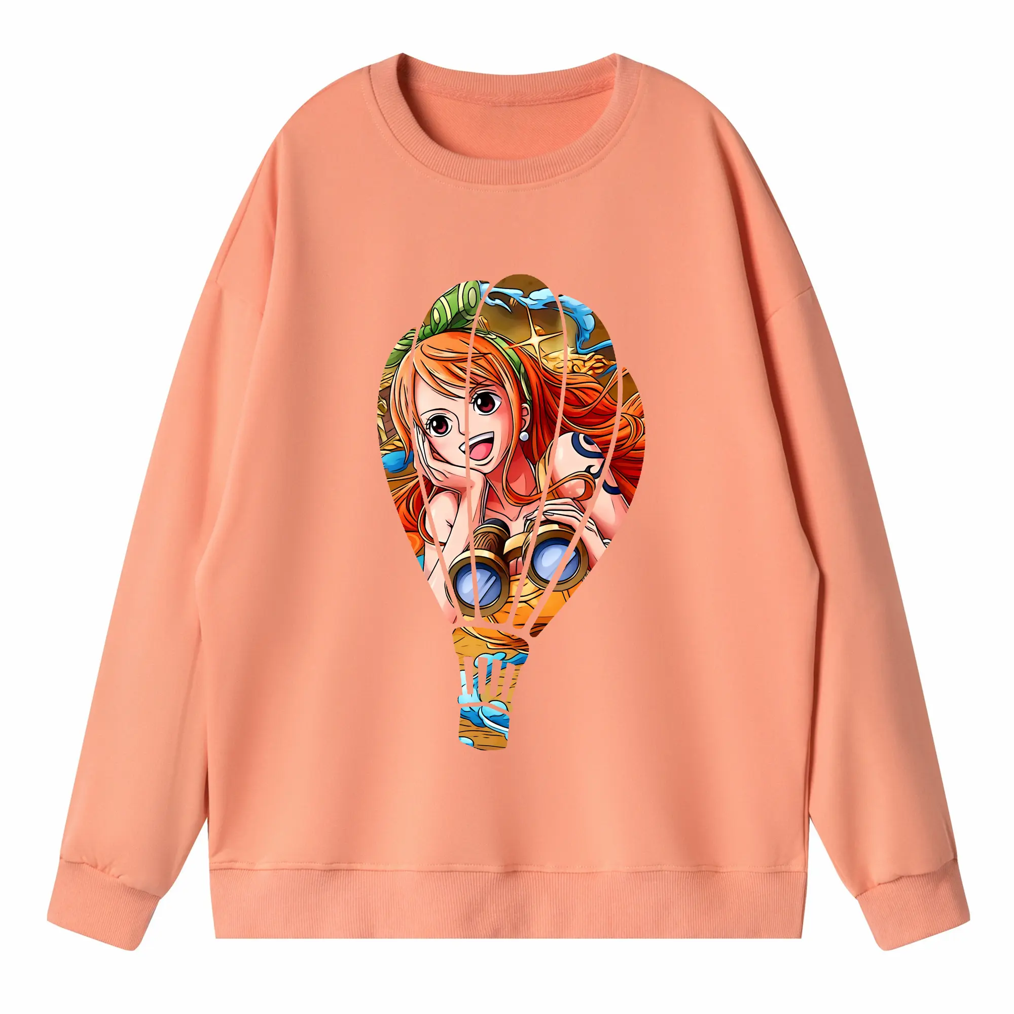 ワンピース グッズ ナミ - 高品質 クルーネック スウェット ・ コットン59% ポリエステル41% ・ ユニセックス 長袖 トレーナー ・ カジュアル デイリー スポーツ 散歩用
