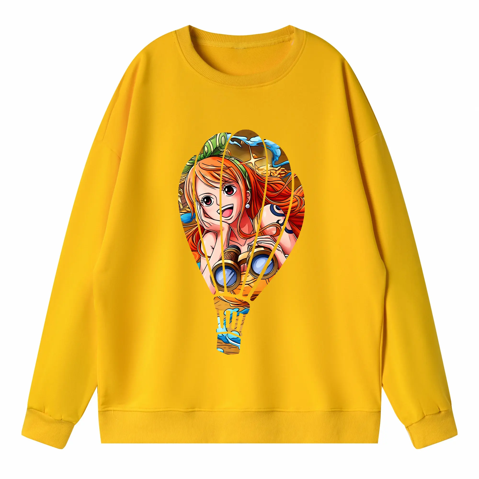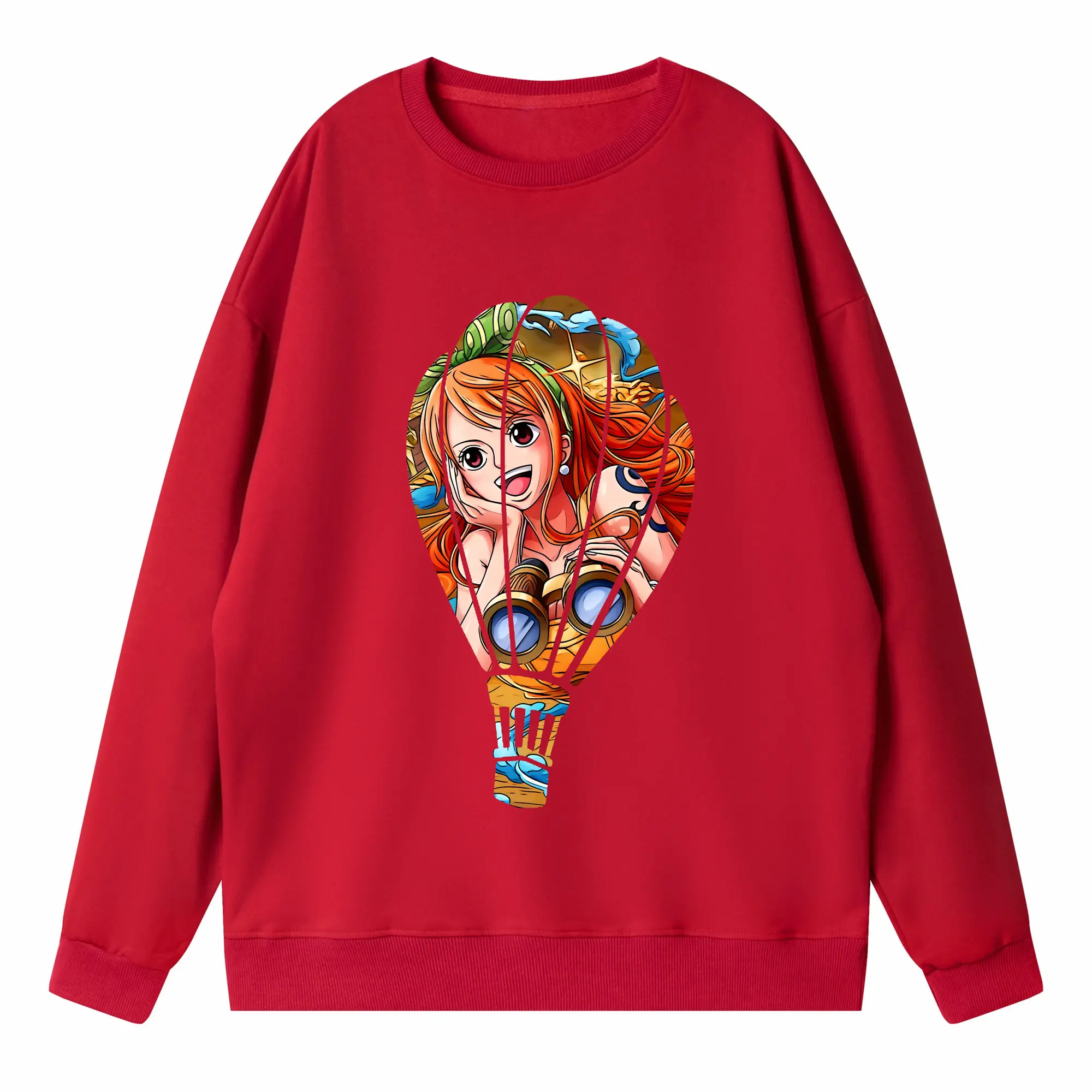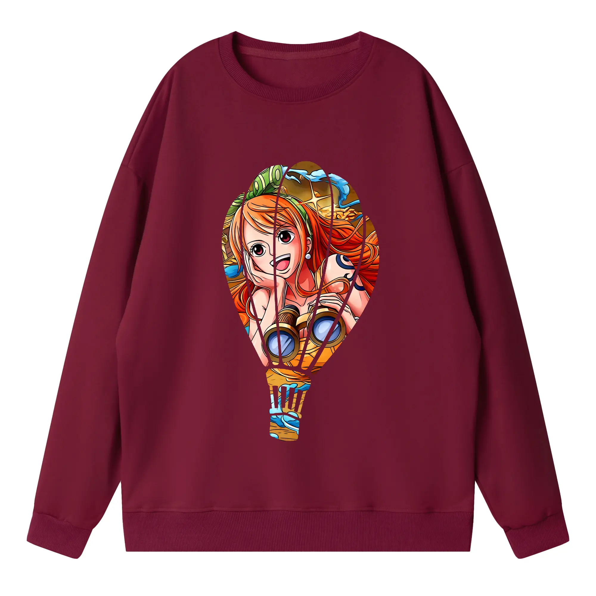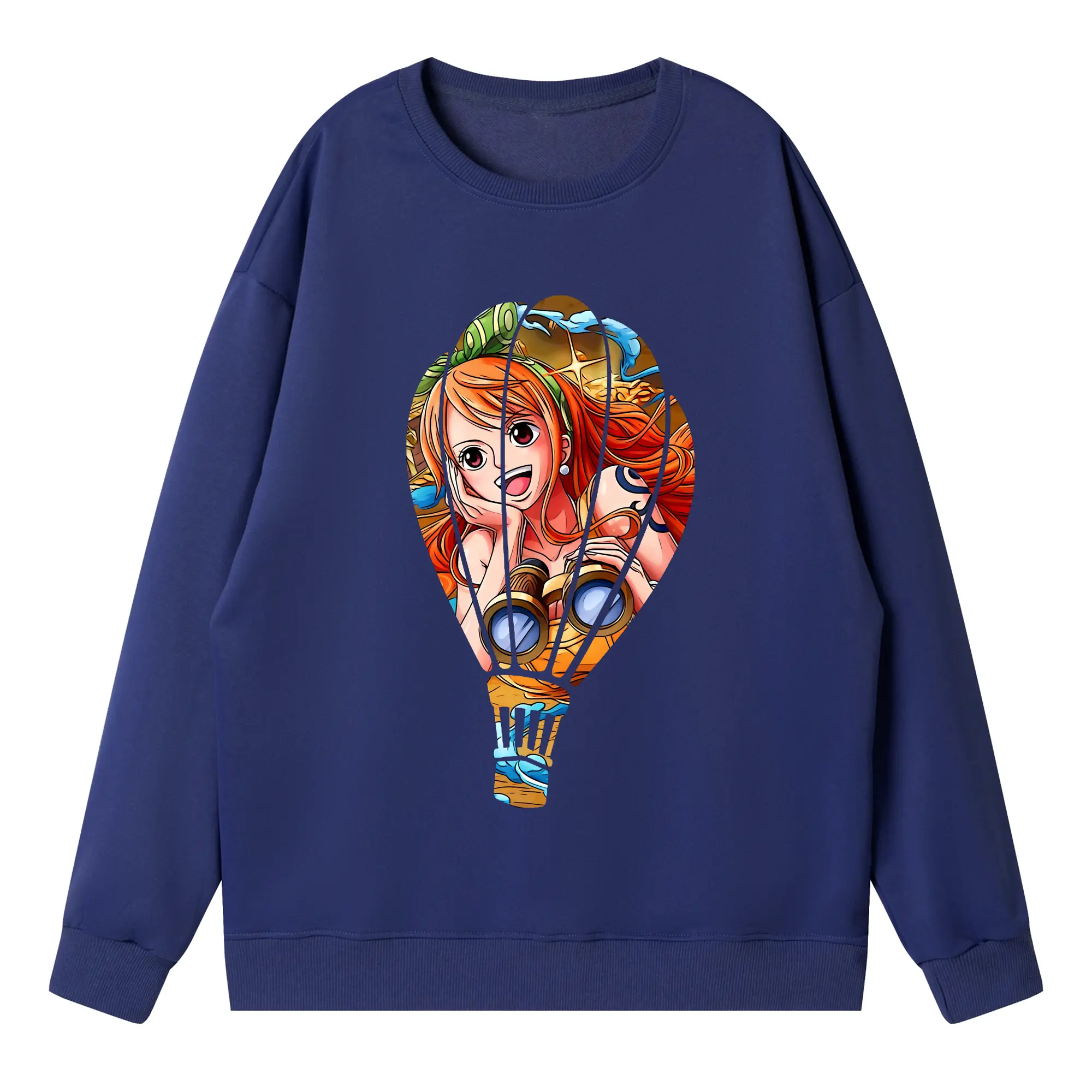 ワンピース グッズ ナミ - 高品質 クルーネック スウェット ・ コットン59% ポリエステル41% ・ ユニセックス 長袖 トレーナー ・ カジュアル デイリー スポーツ 散歩用
