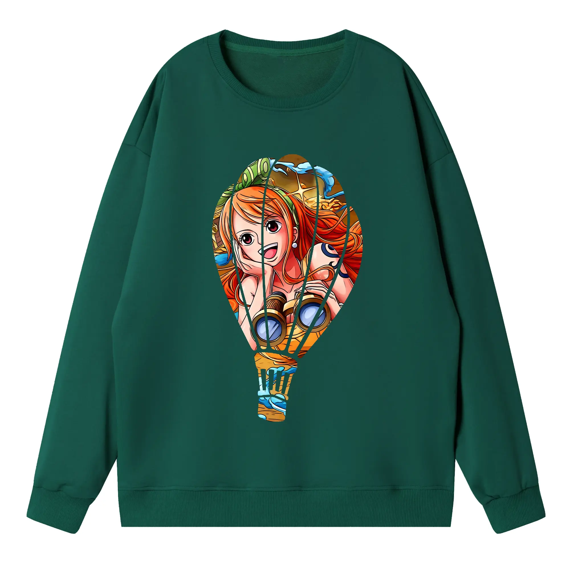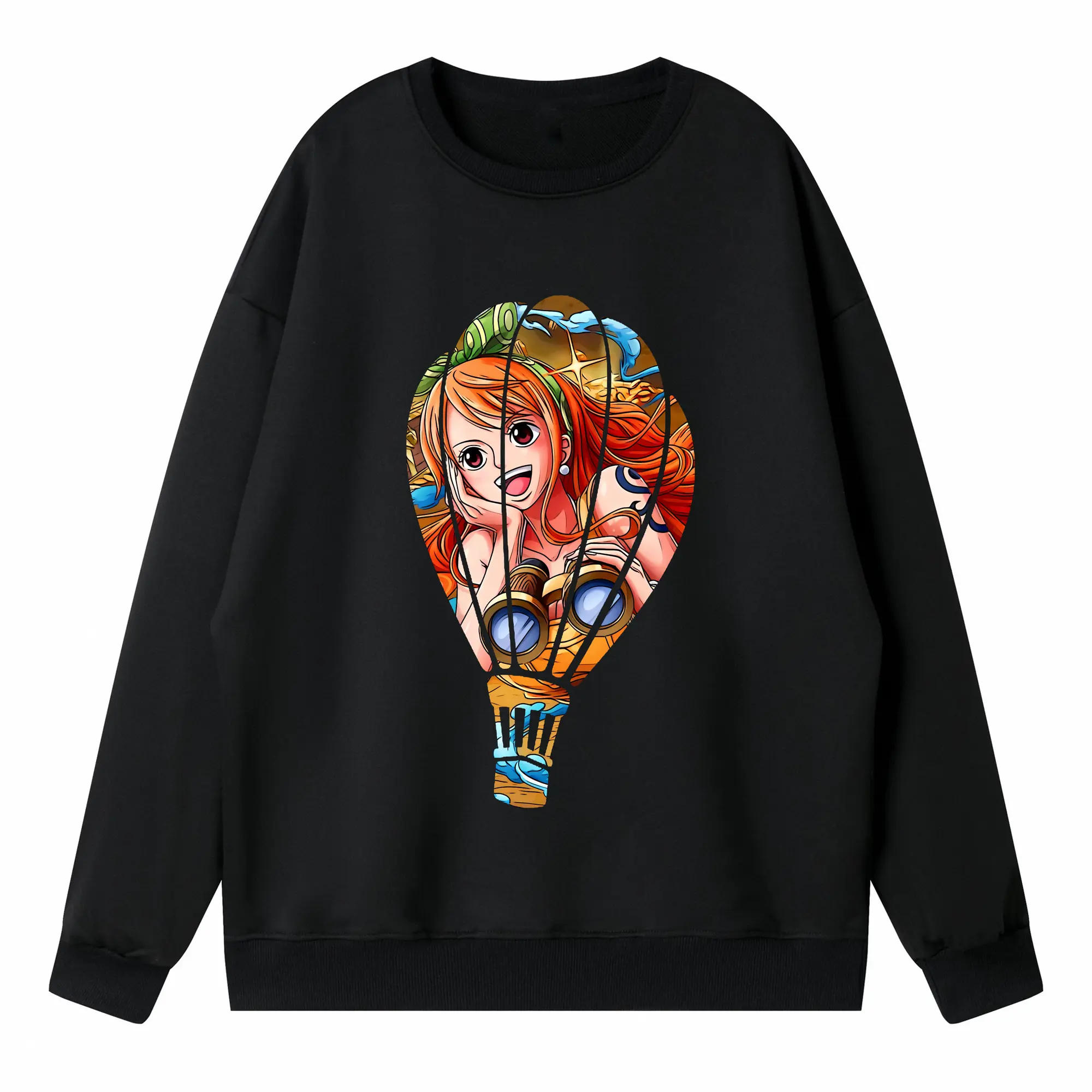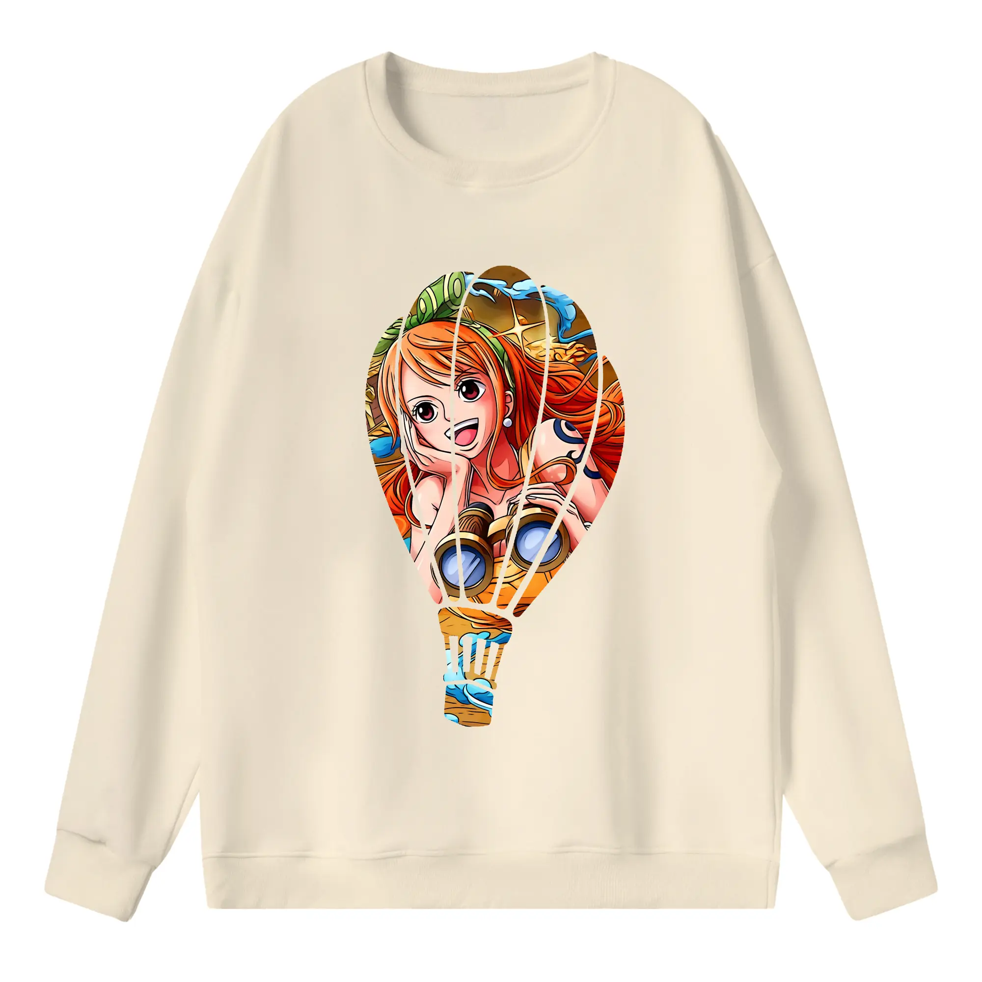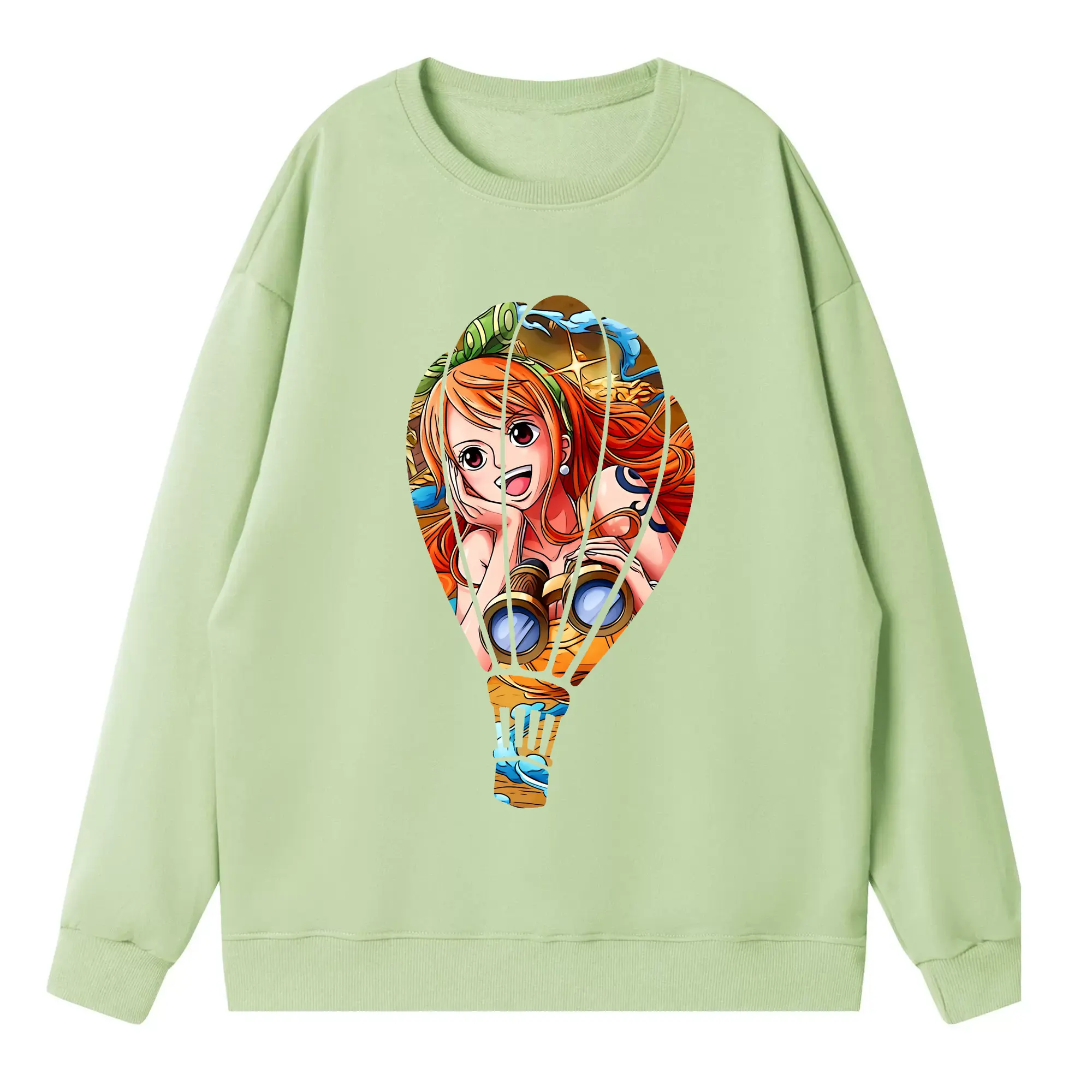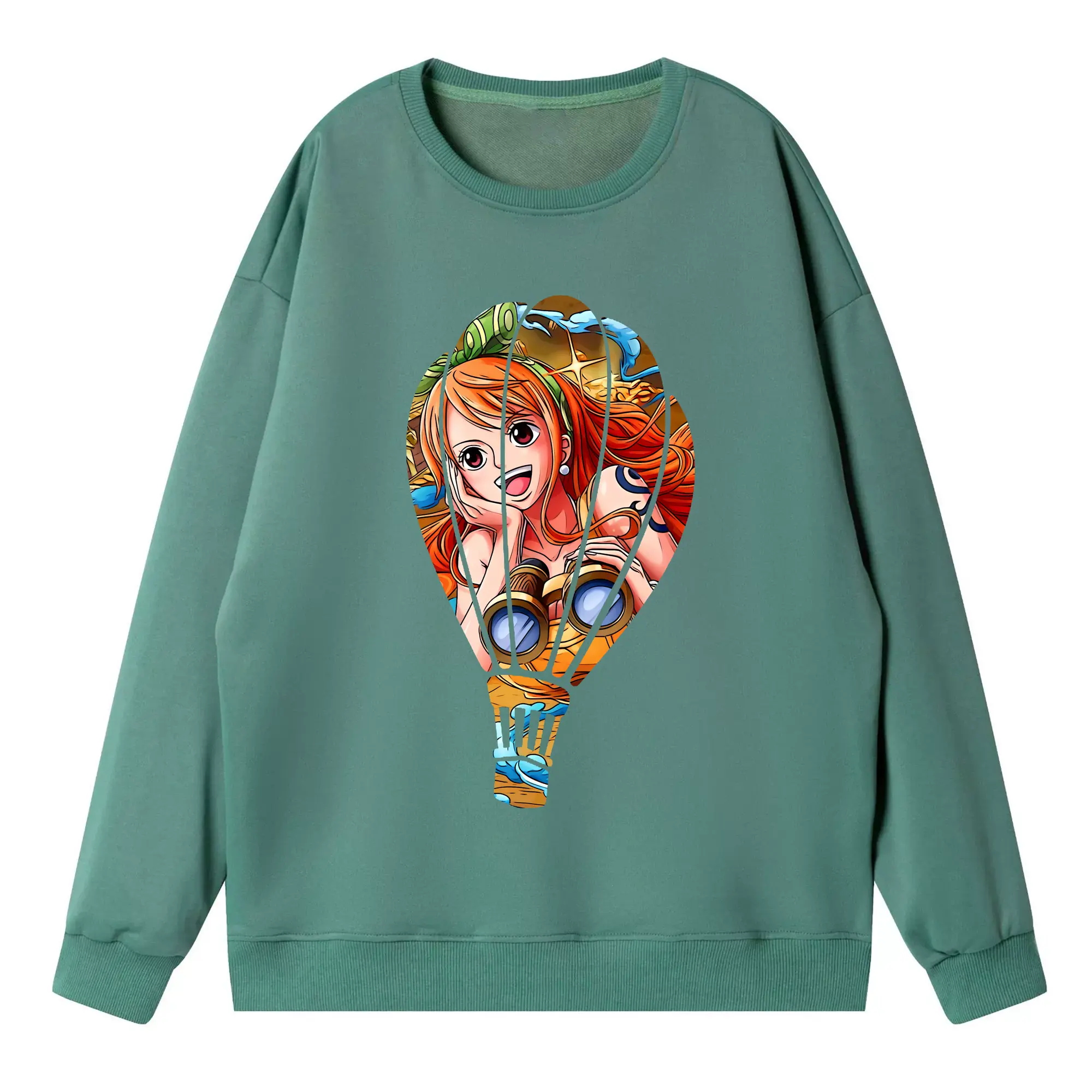 ワンピース グッズ ナミ - 高品質 クルーネック スウェット ・ コットン59% ポリエステル41% ・ ユニセックス 長袖 トレーナー ・ カジュアル デイリー スポーツ 散歩用