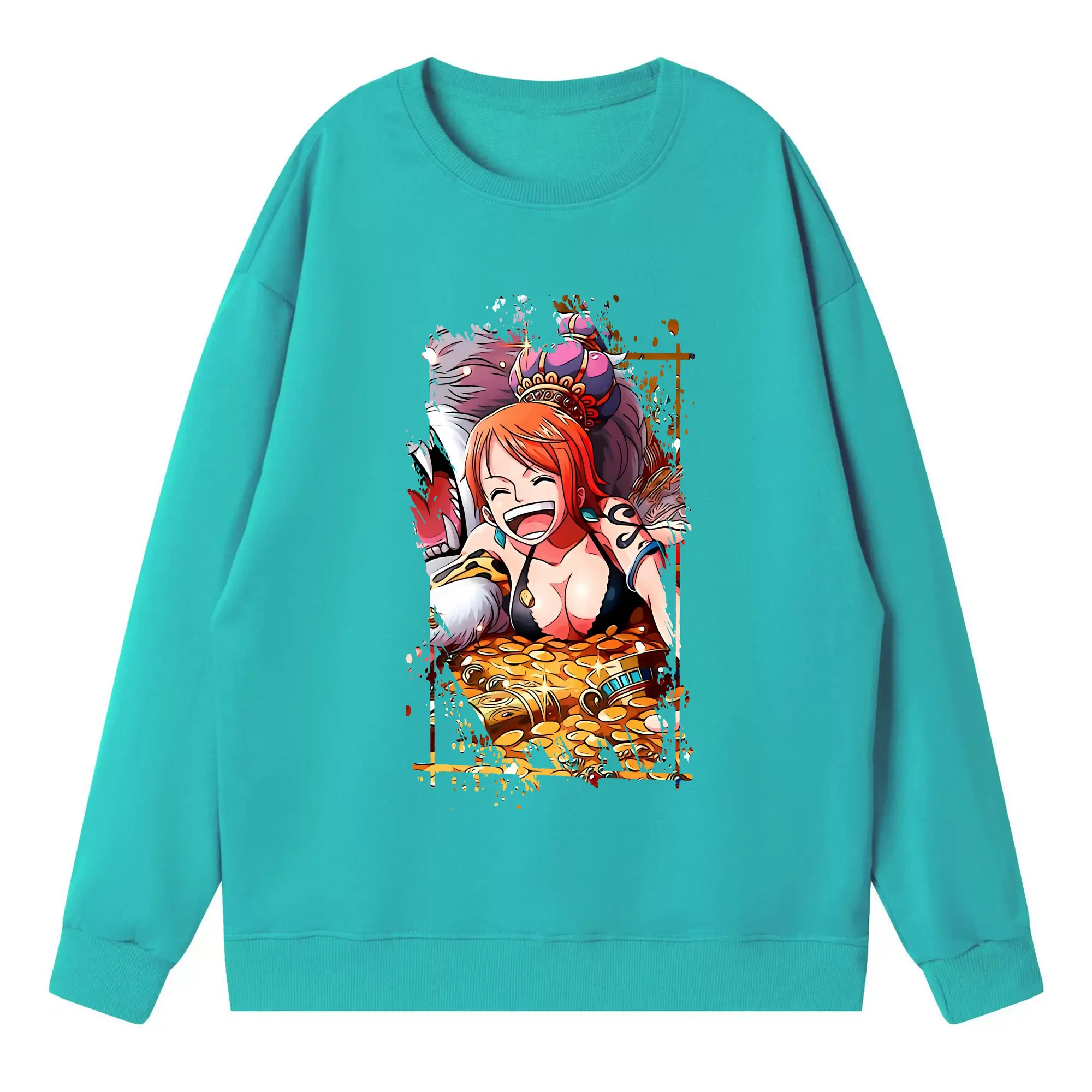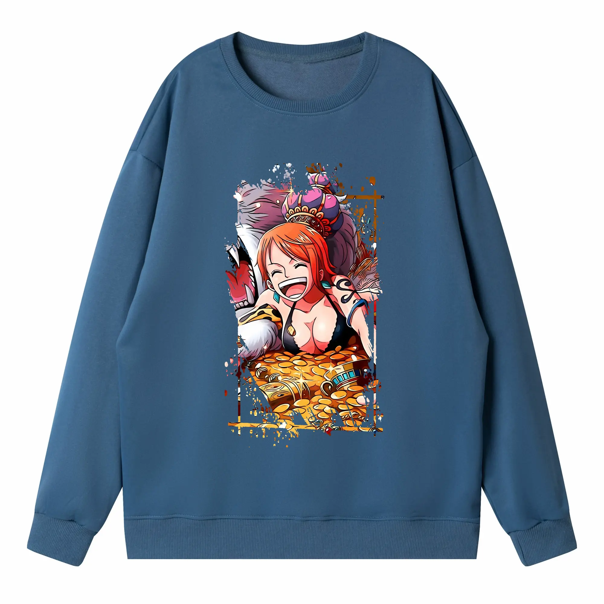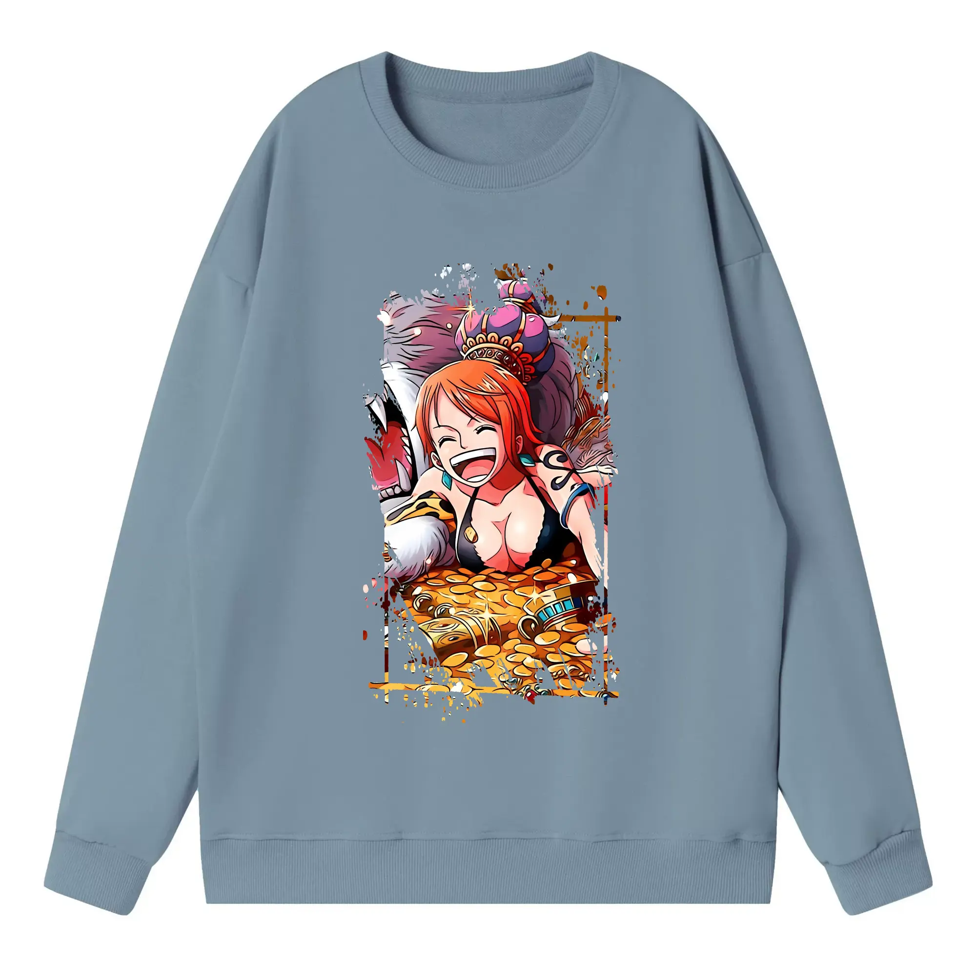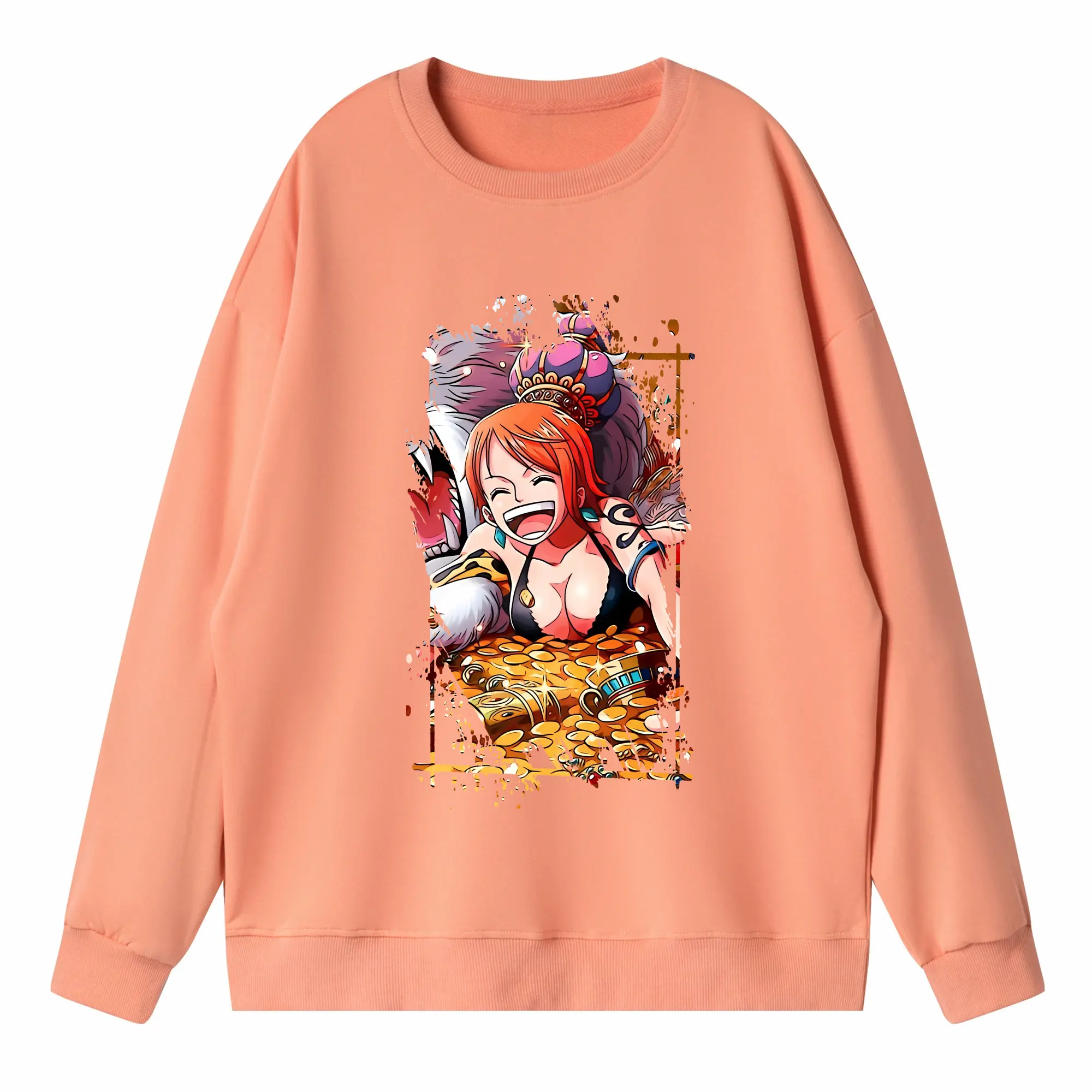 ワンピース グッズ ナミ - 高品質 クルーネック スウェット ・ コットン59% ポリエステル41% ・ ユニセックス 長袖 トレーナー ・ カジュアル デイリー スポーツ 散歩用