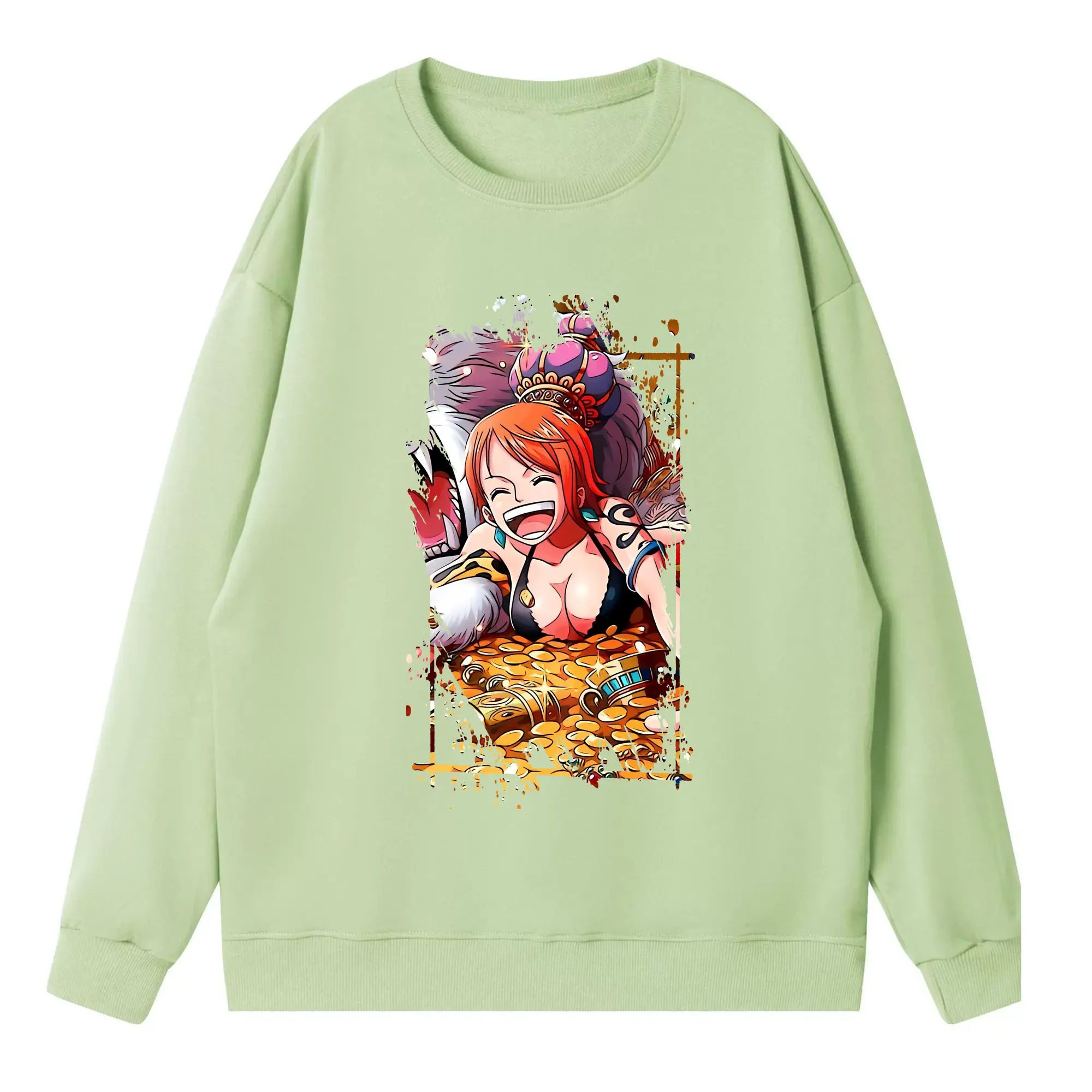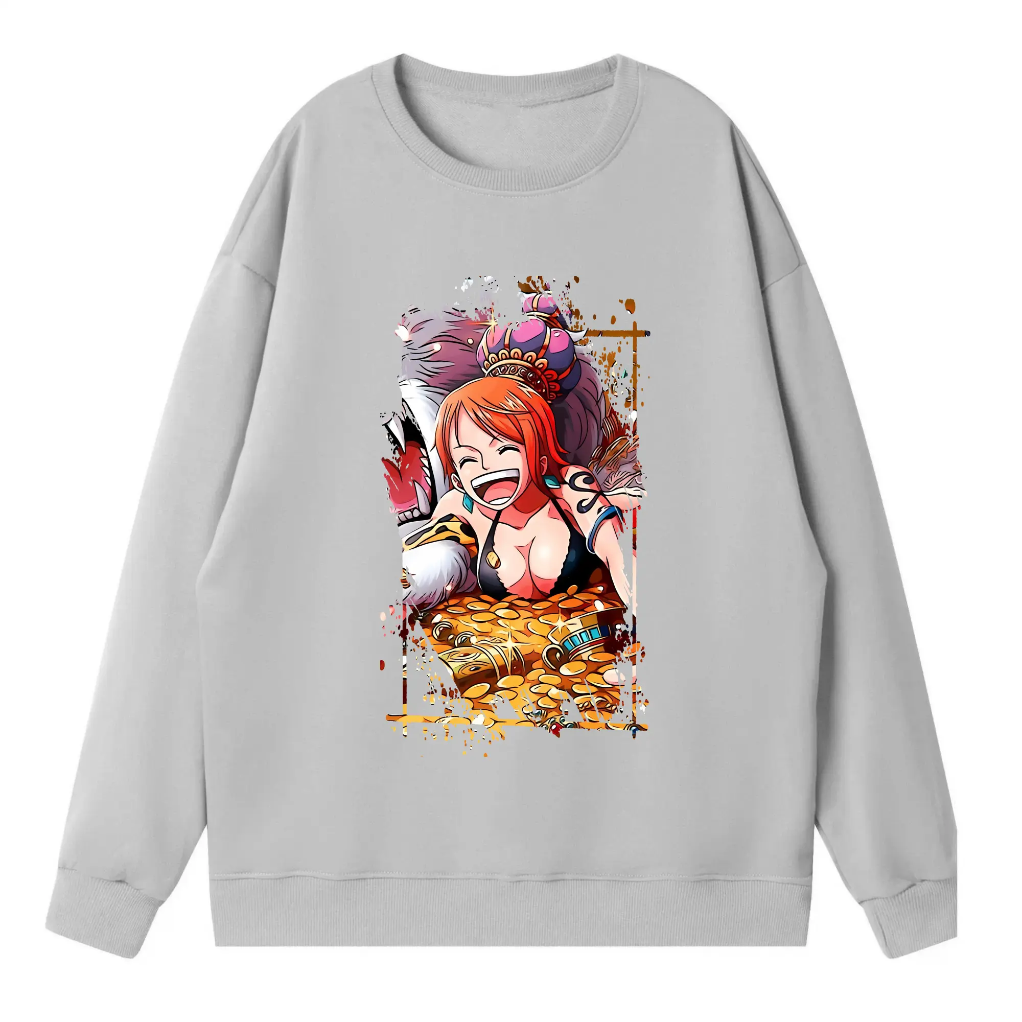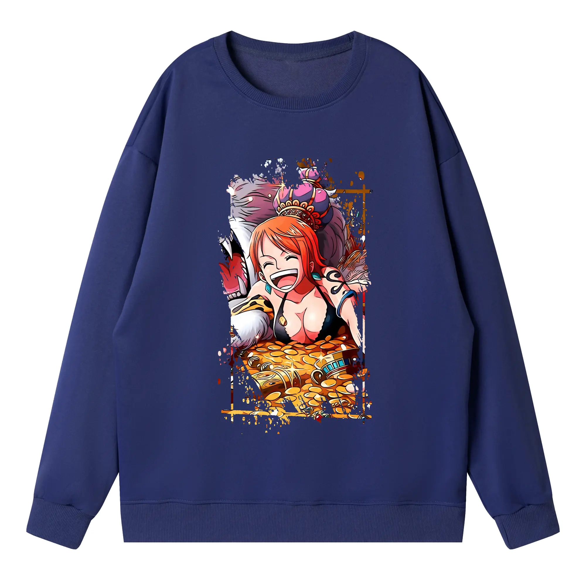 ワンピース グッズ ナミ - 高品質 クルーネック スウェット ・ コットン59% ポリエステル41% ・ ユニセックス 長袖 トレーナー ・ カジュアル デイリー スポーツ 散歩用