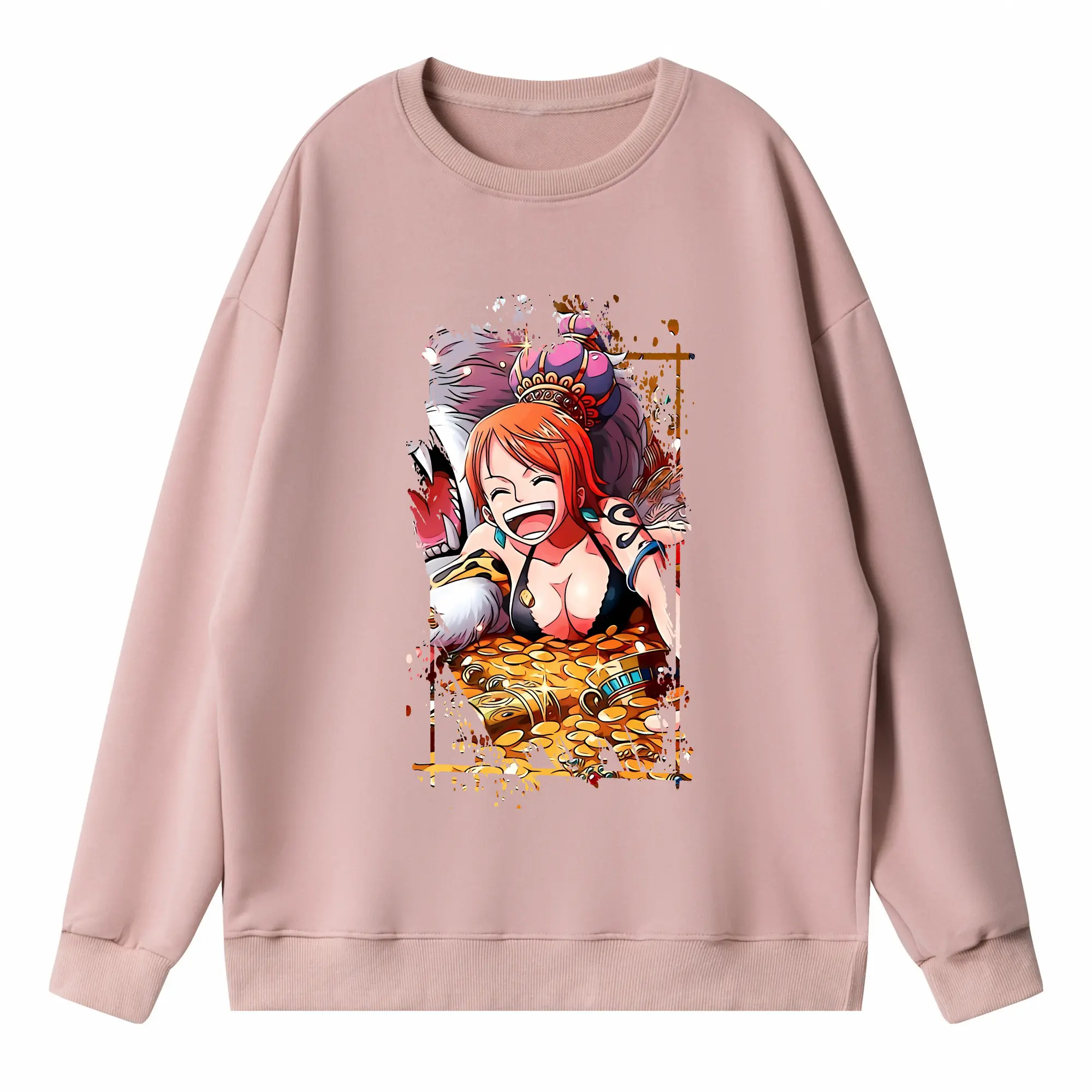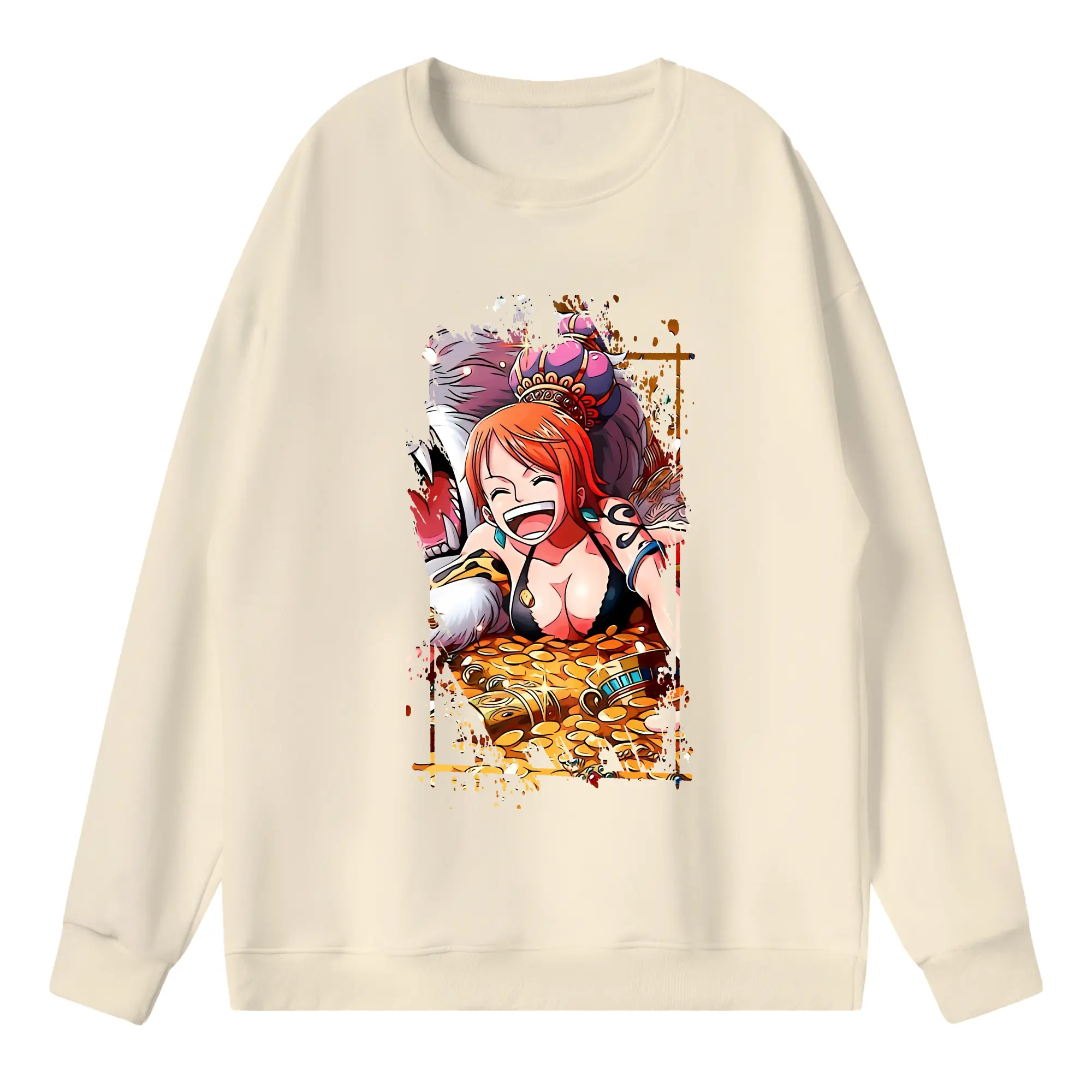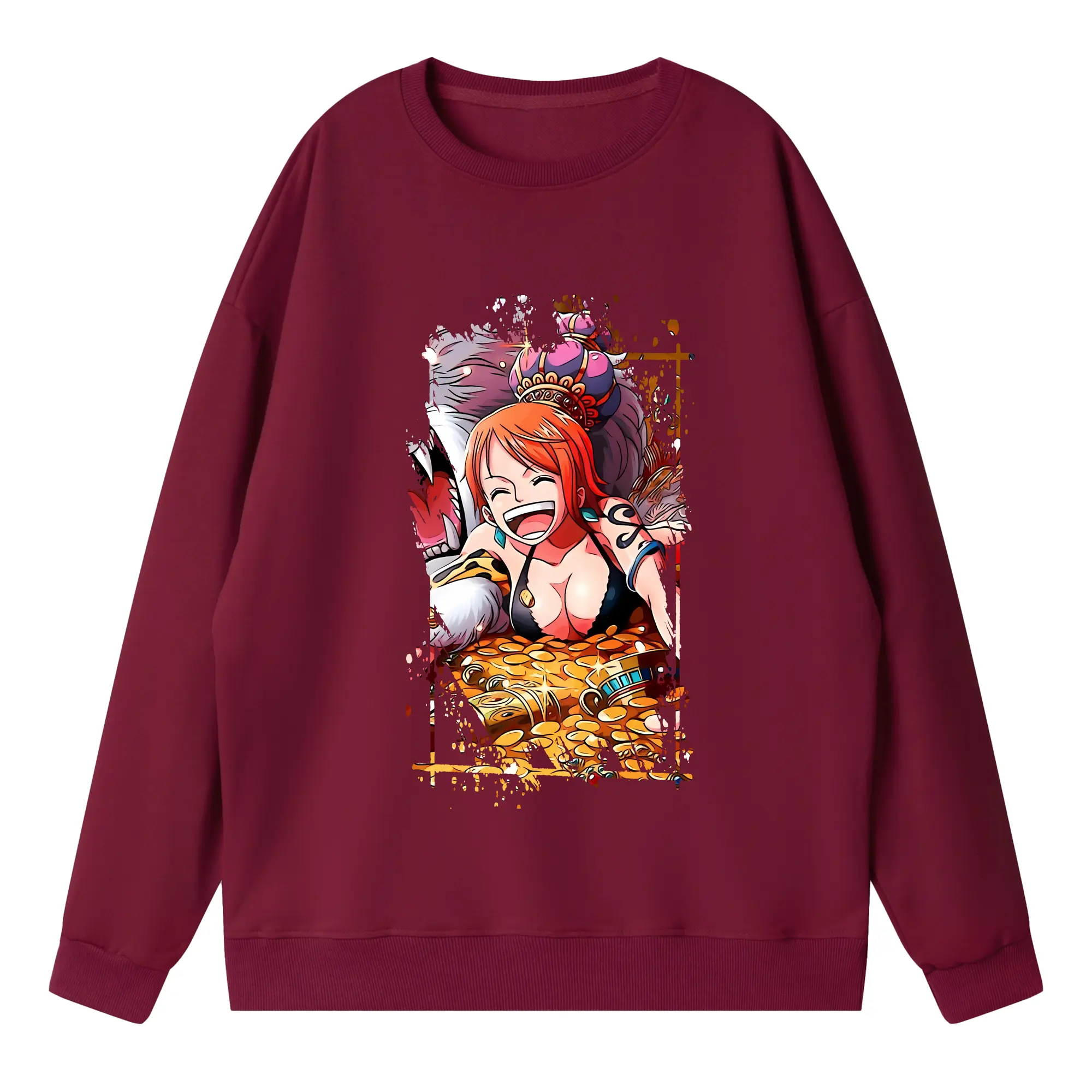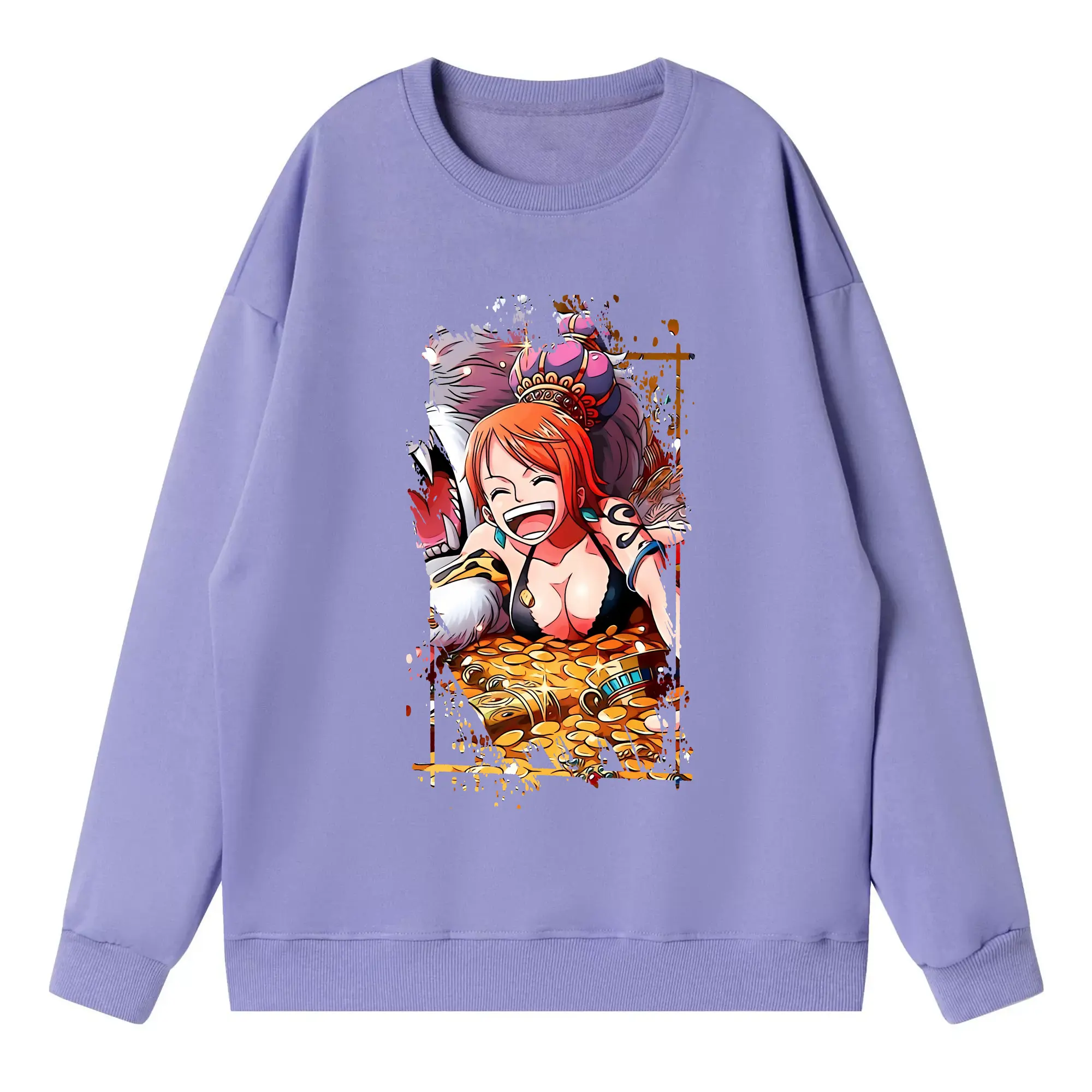 ワンピース グッズ ナミ - 高品質 クルーネック スウェット ・ コットン59% ポリエステル41% ・ ユニセックス 長袖 トレーナー ・ カジュアル デイリー スポーツ 散歩用